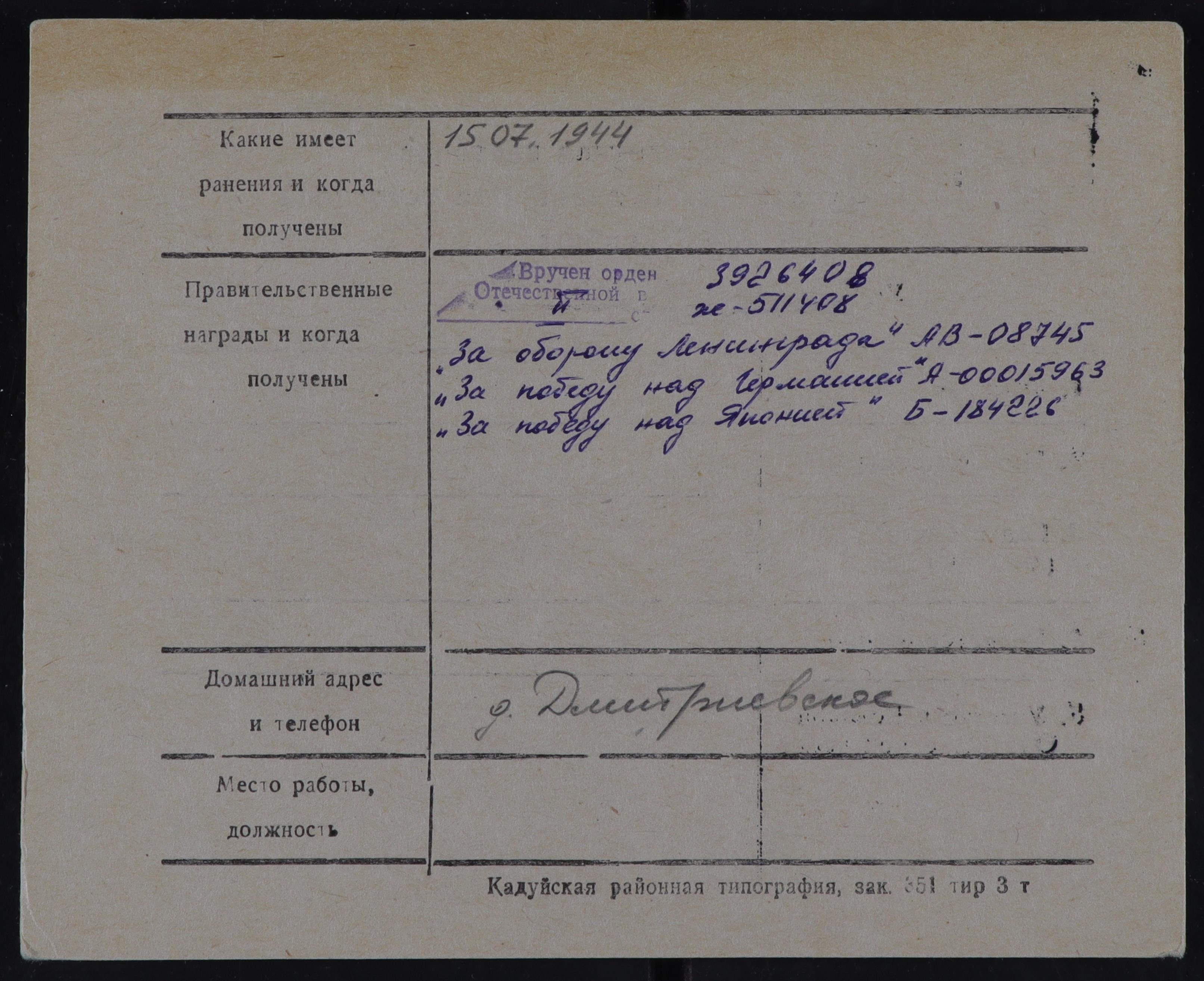 Область в годы войны