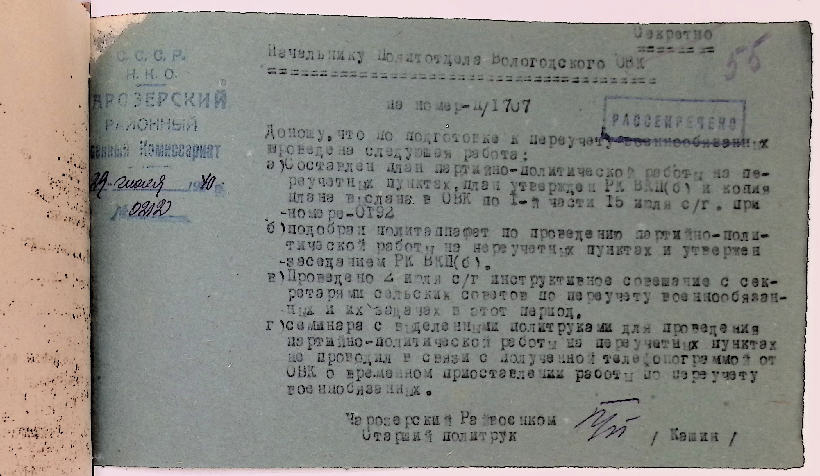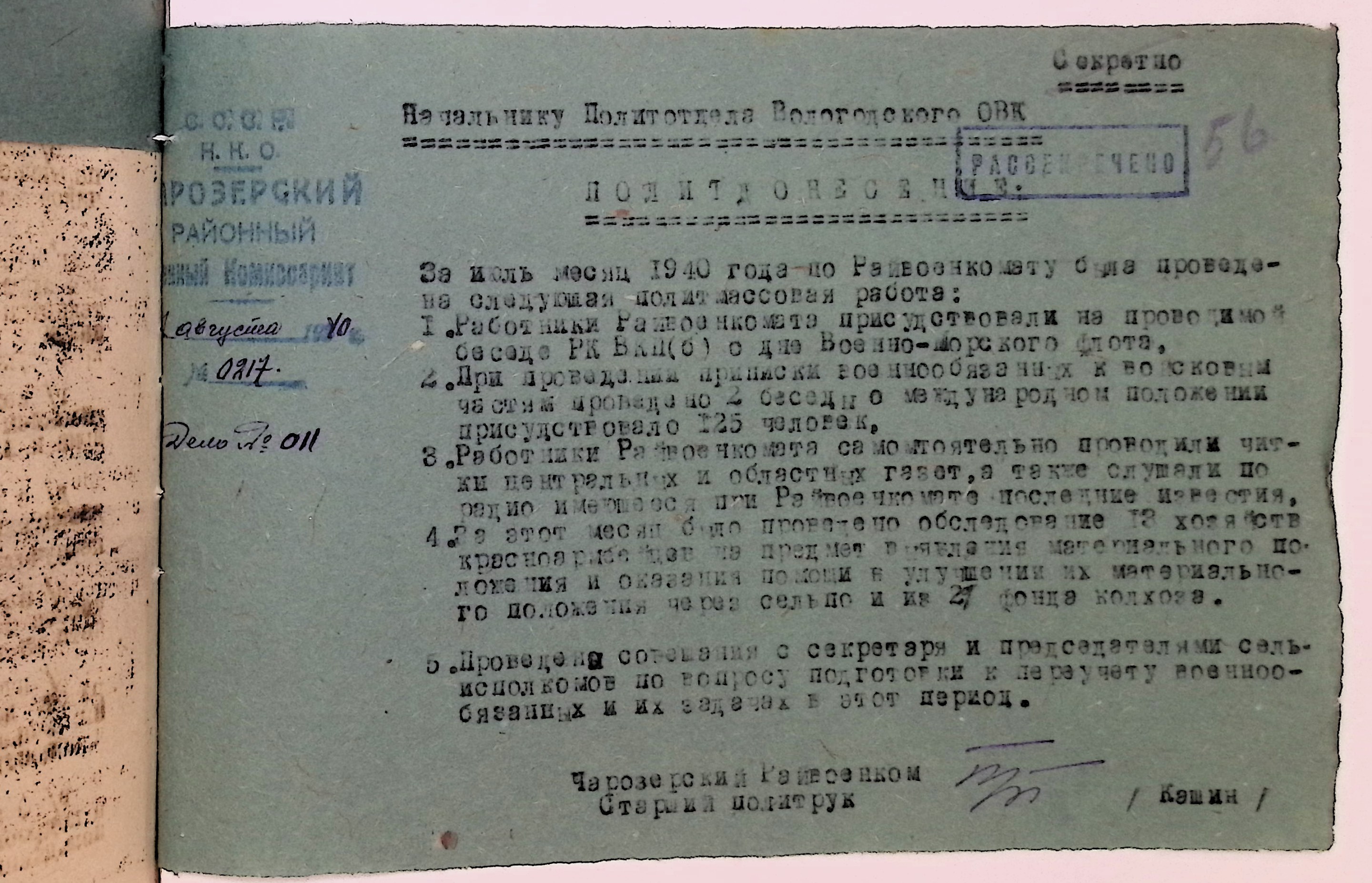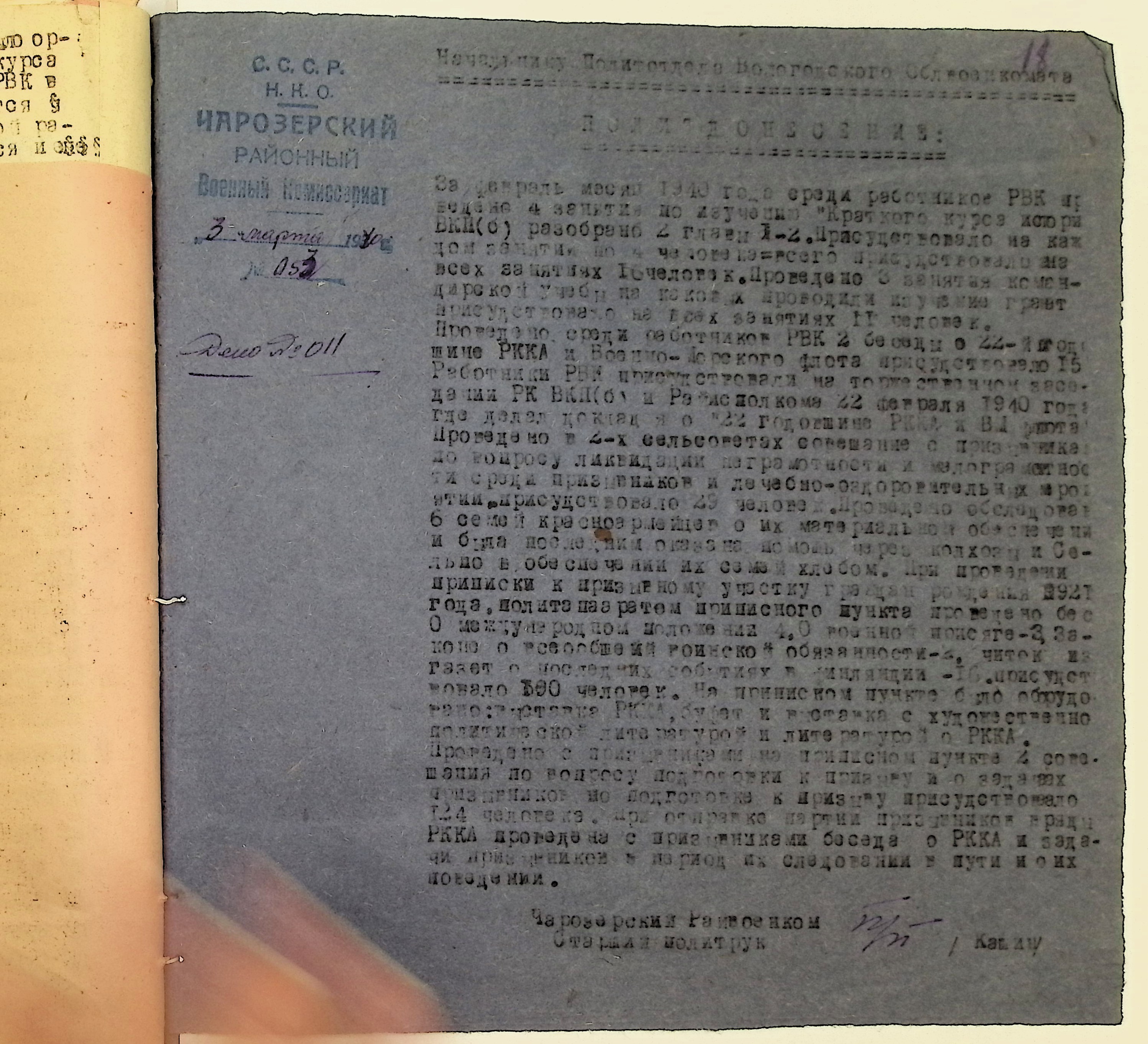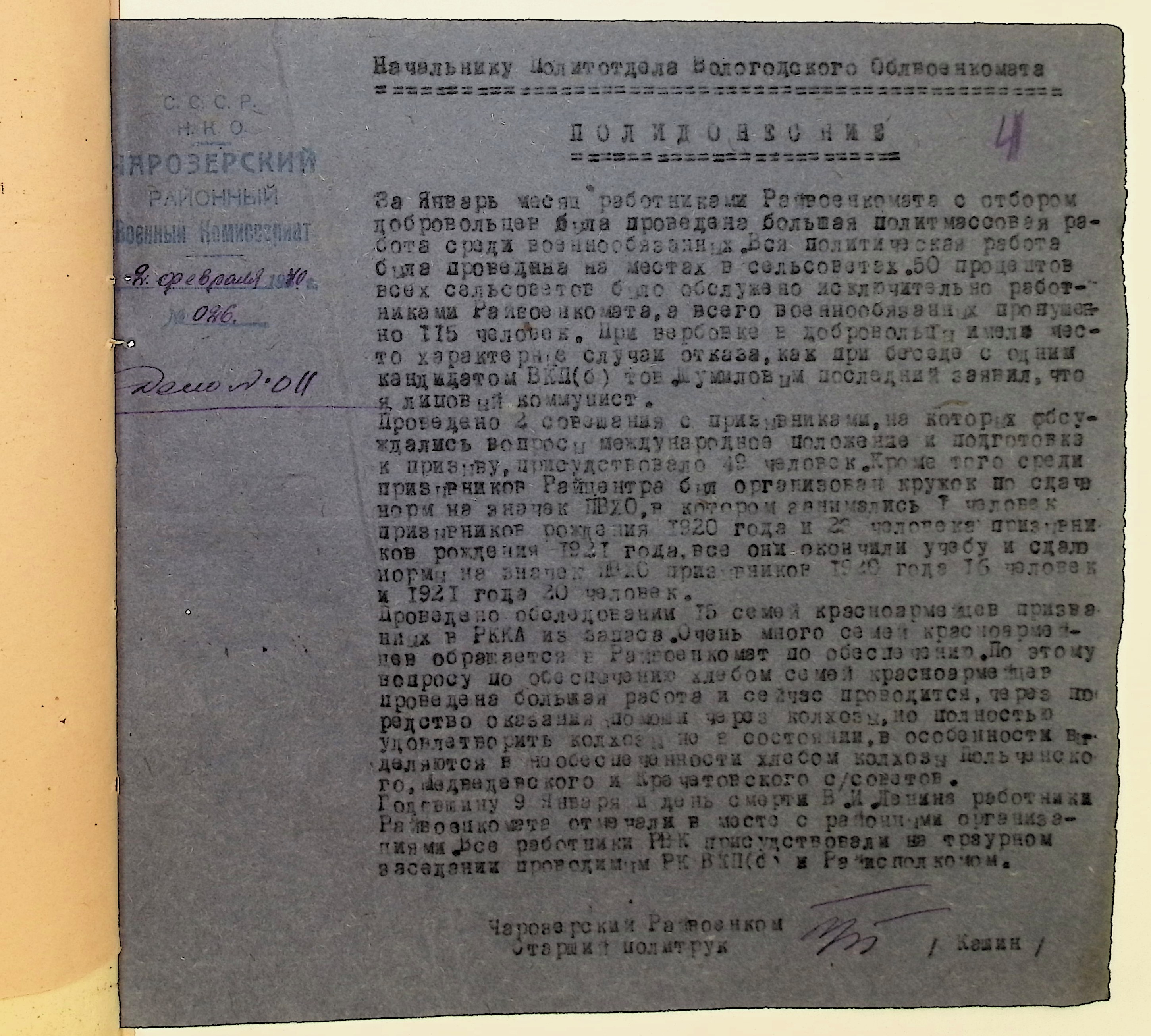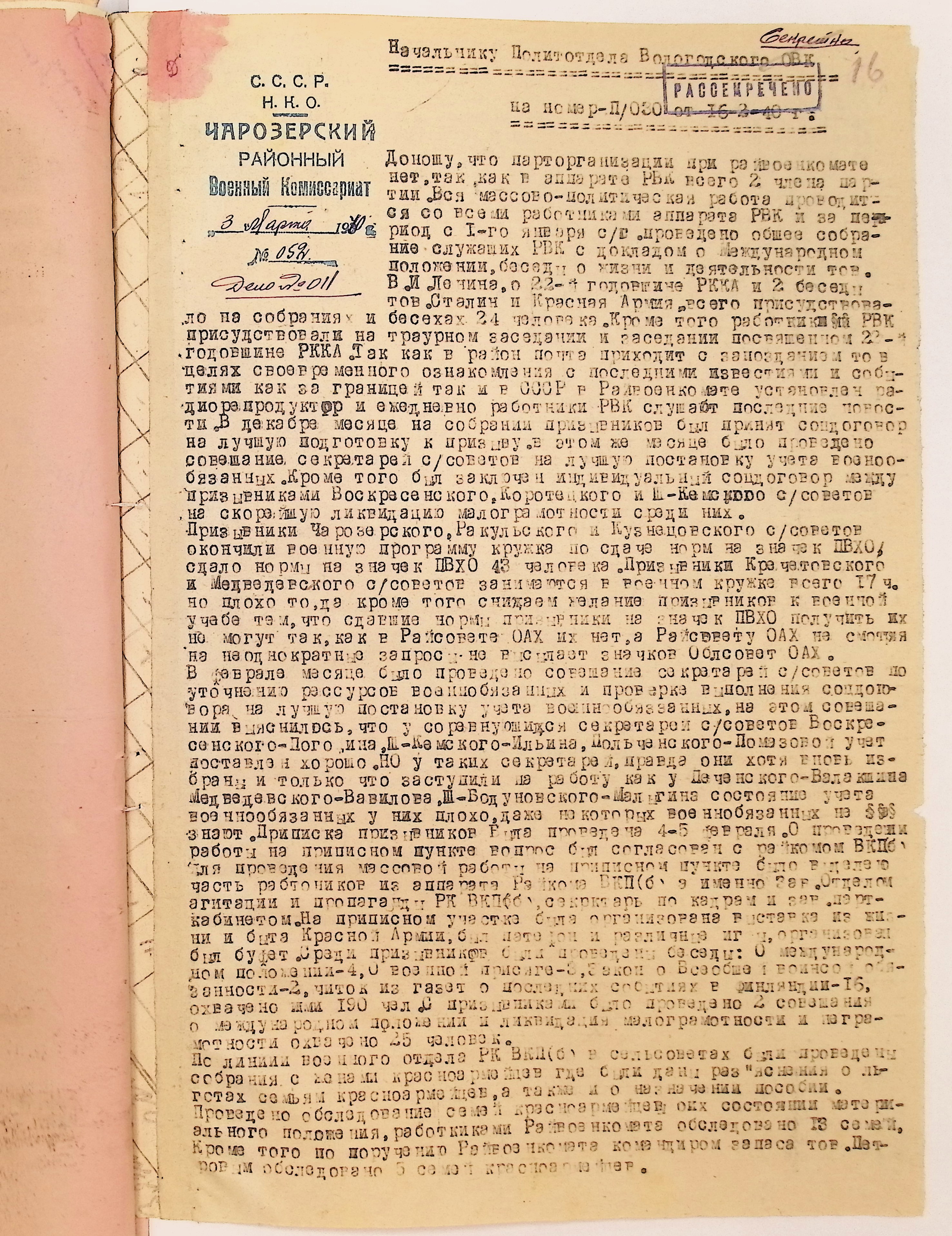 Директивы, отчеты, указания и переписка по политической части и о мобилизационной части. Чарозерский РВК (ГАВО. Ф. 1746 Оп. 1 Д. 7)