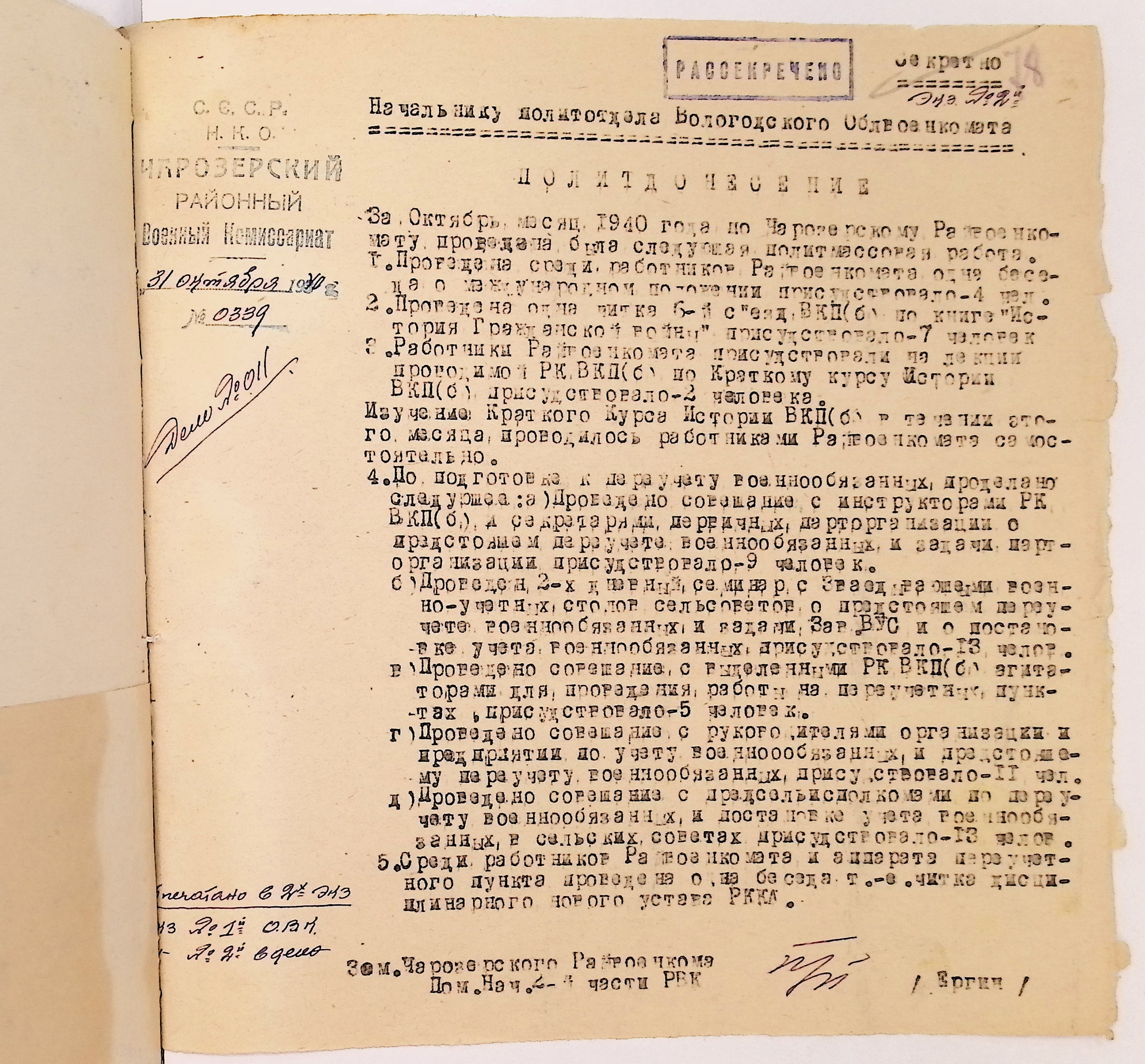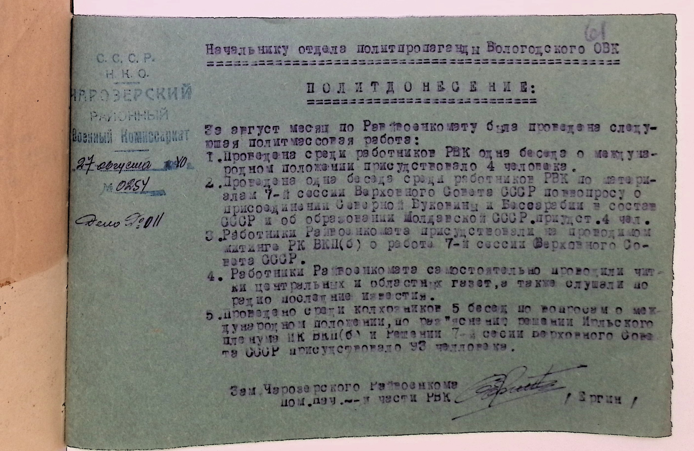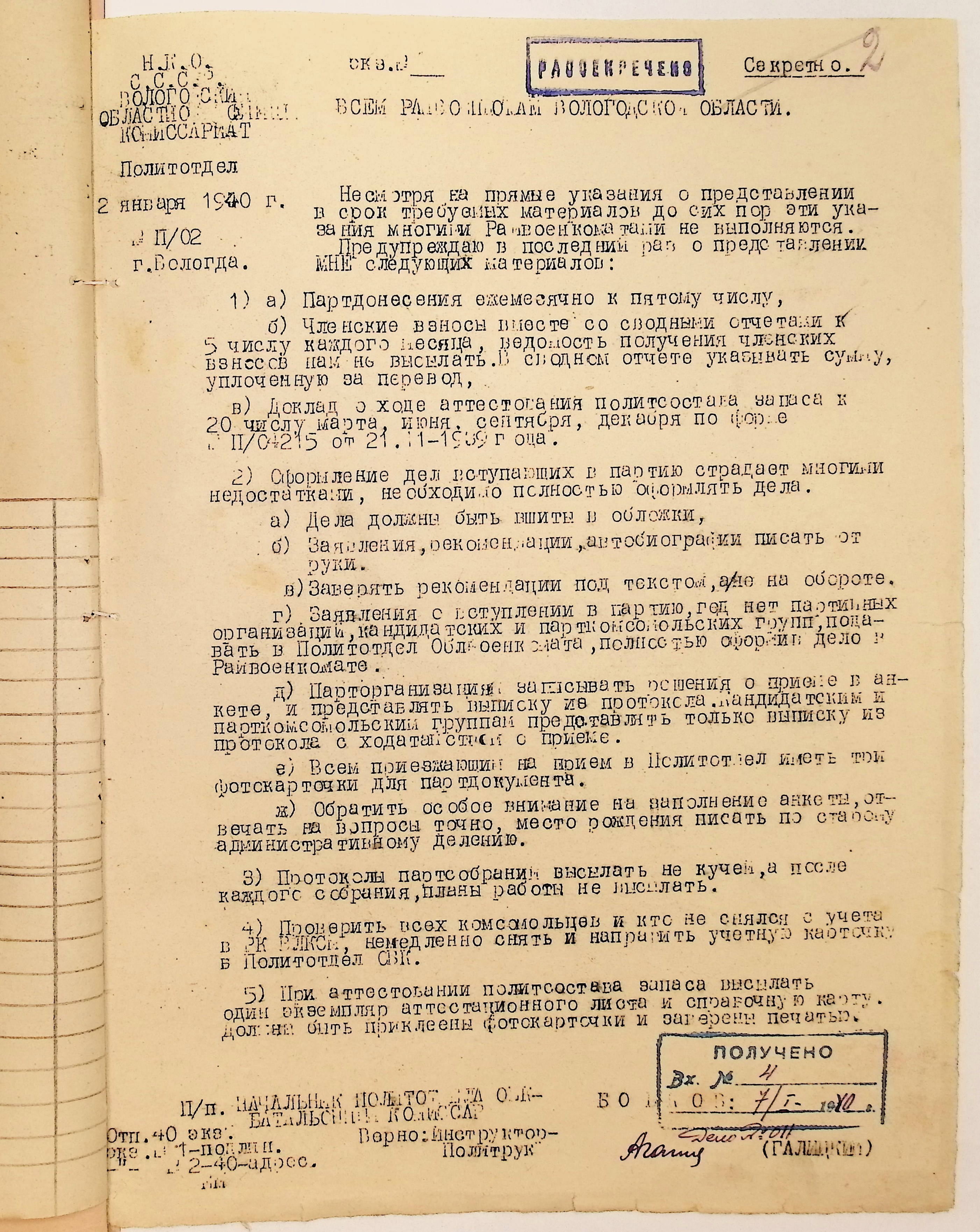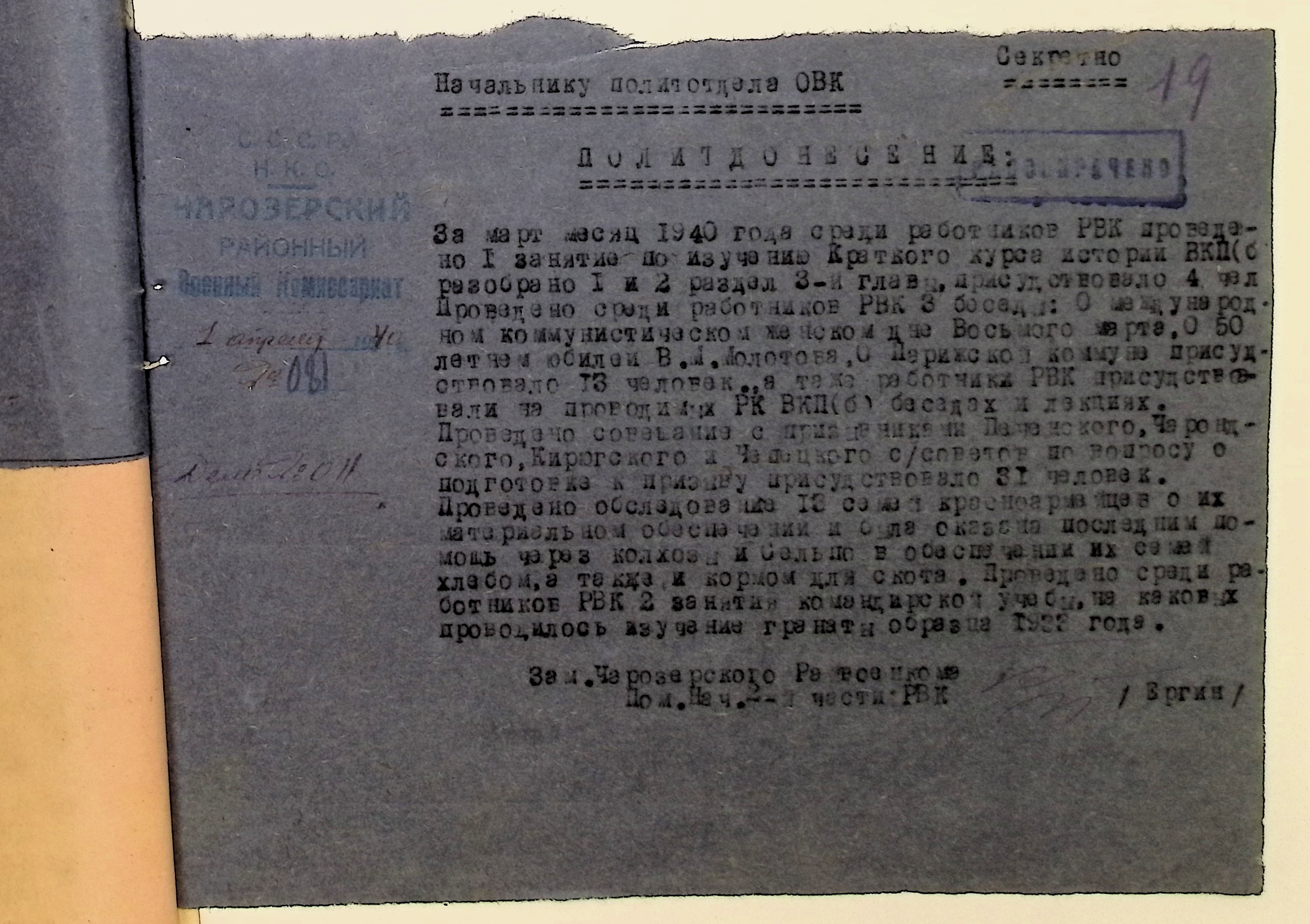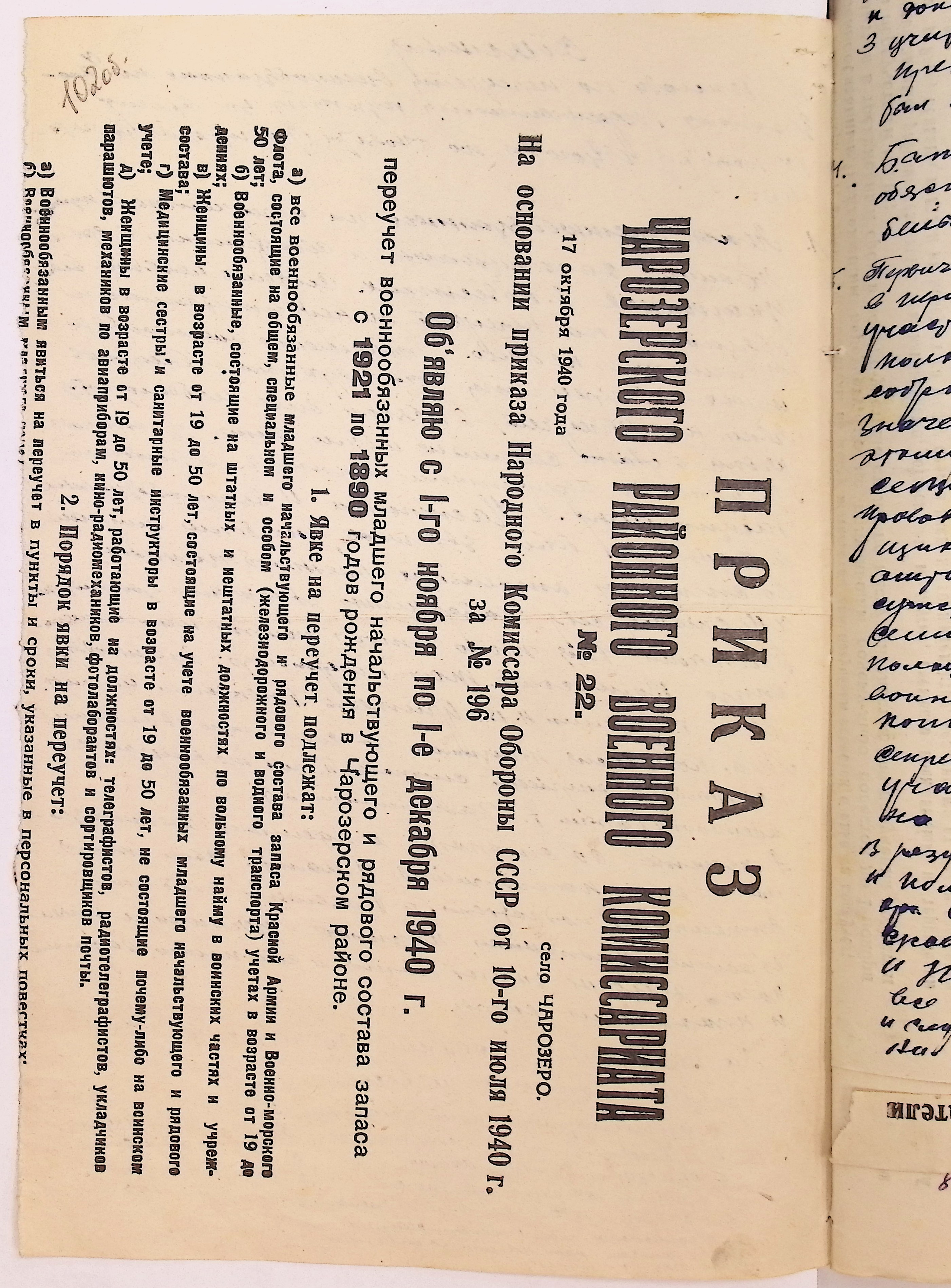 Директивы, отчеты, указания и переписка по политической части и о мобилизационной части. Чарозерский РВК (ГАВО. Ф. 1746 Оп. 1 Д. 7)