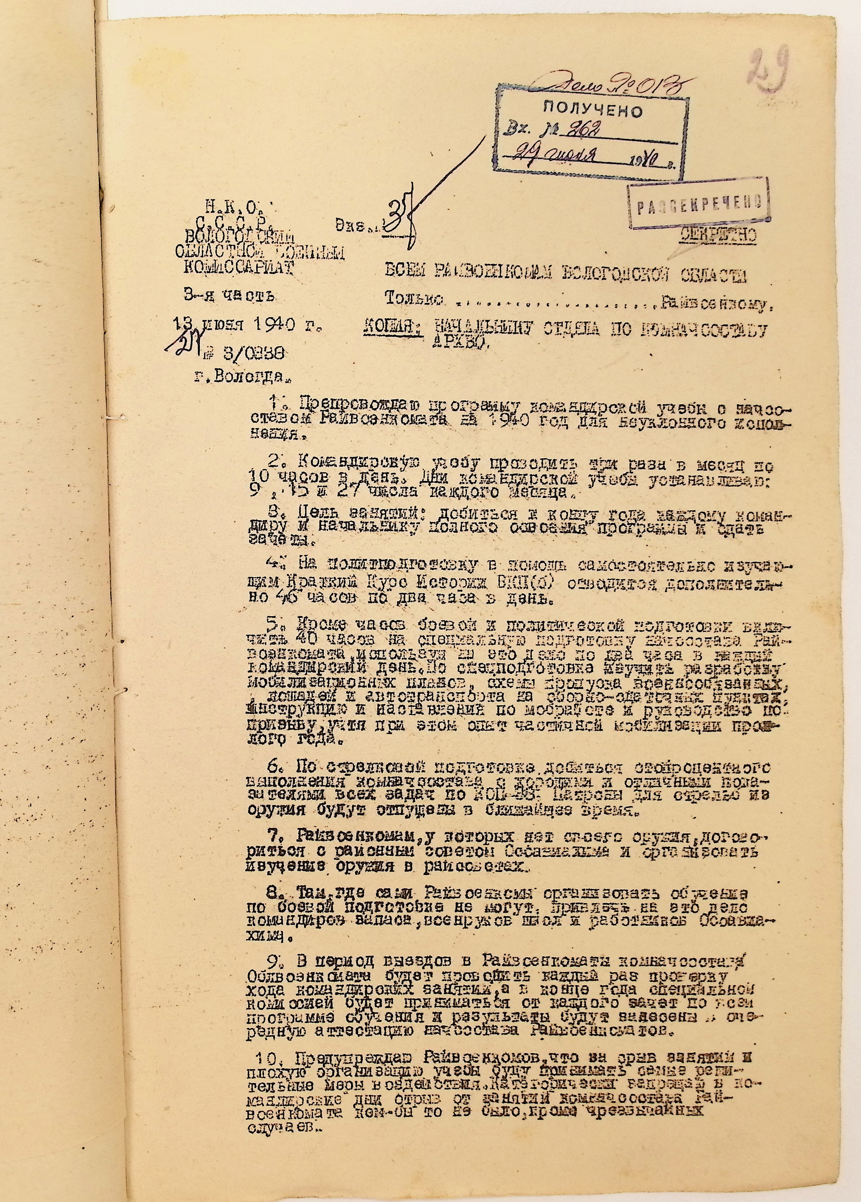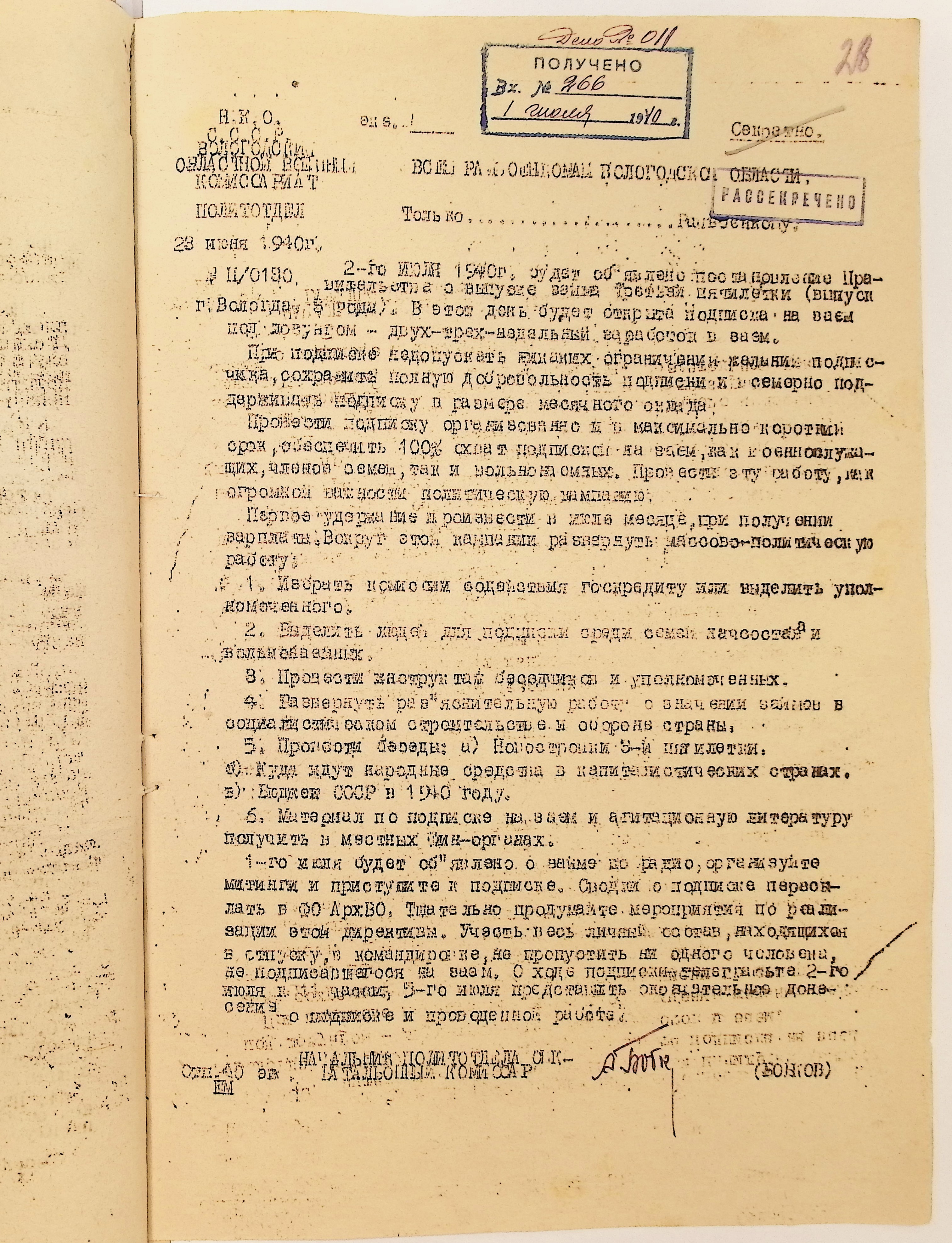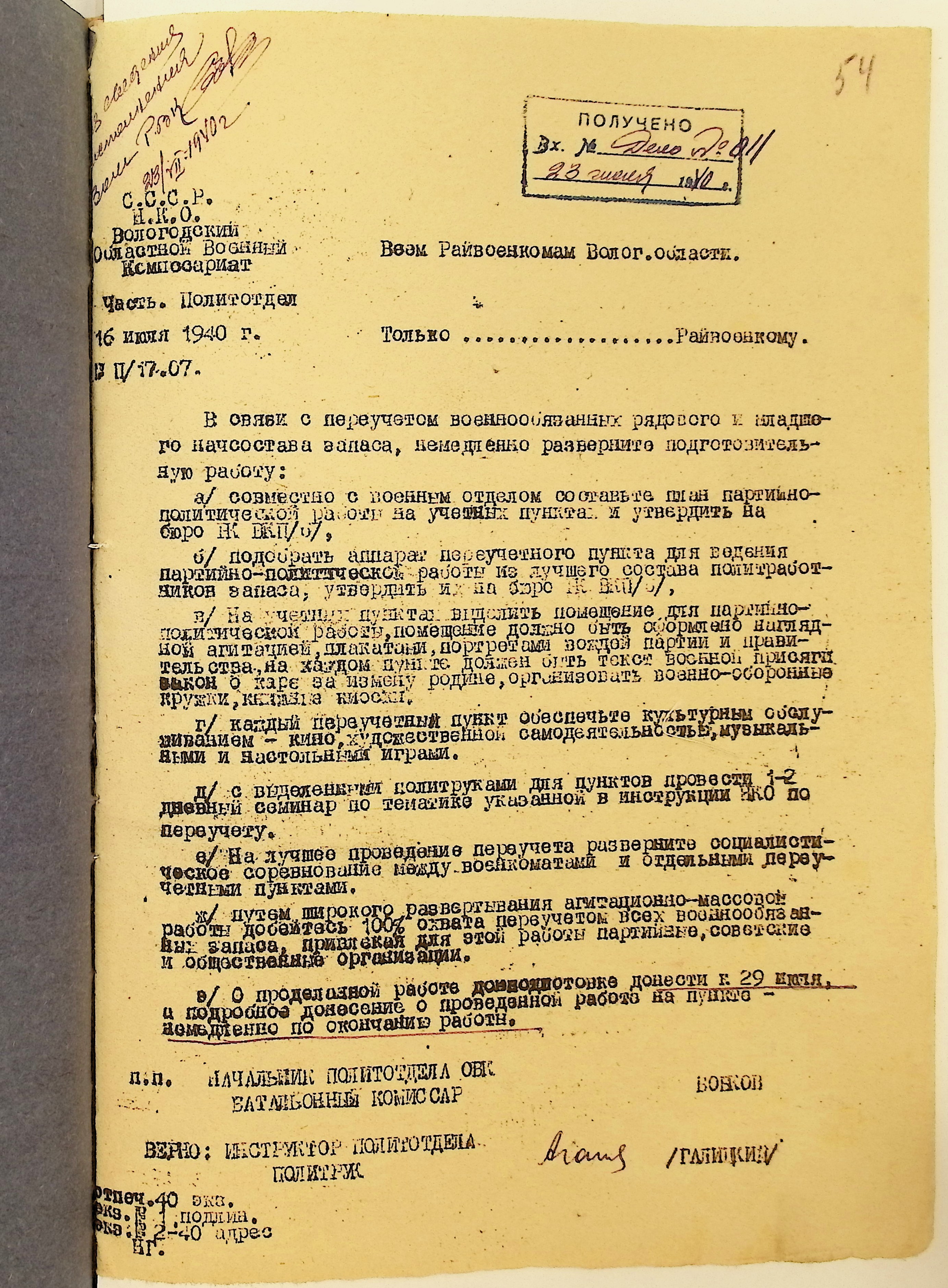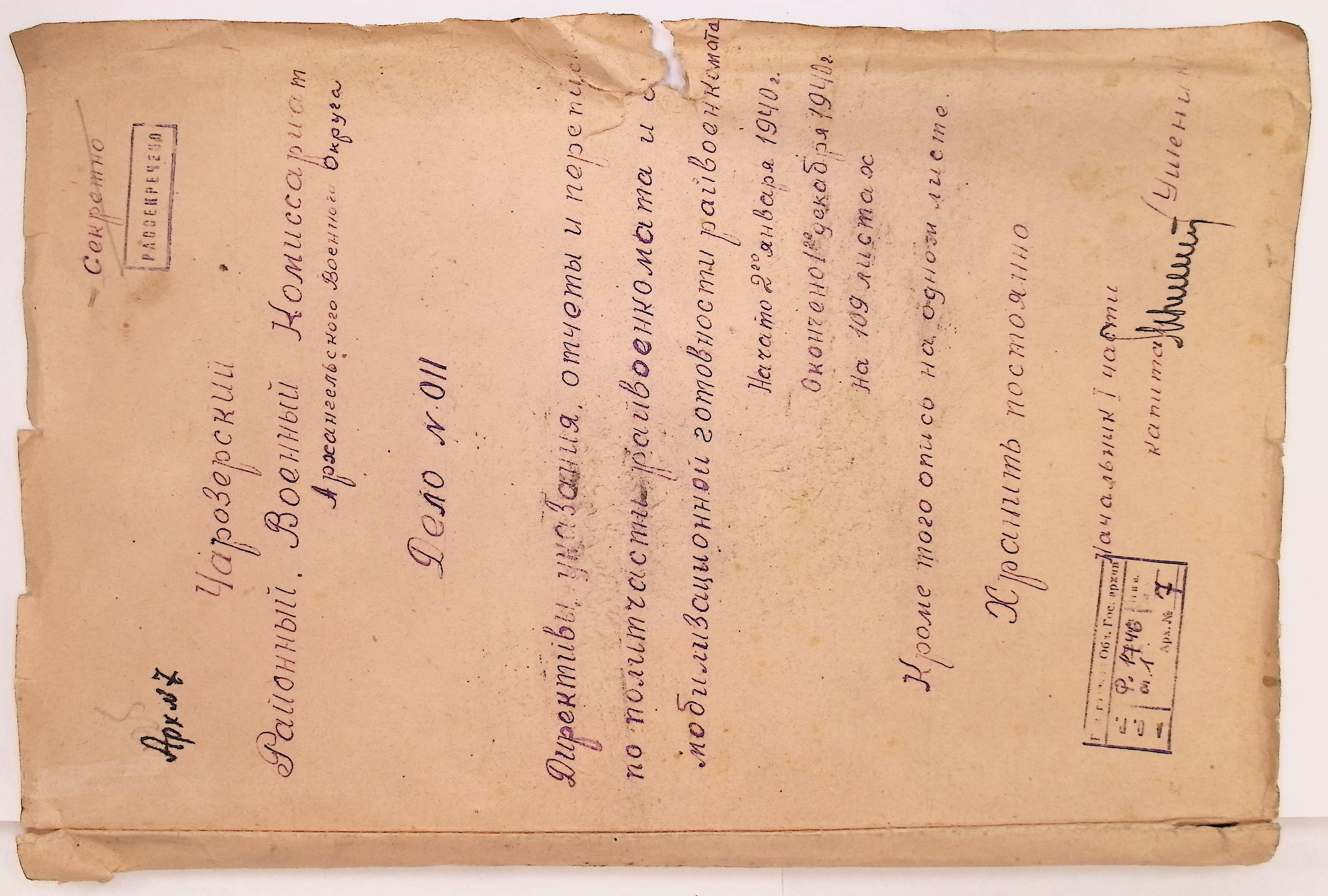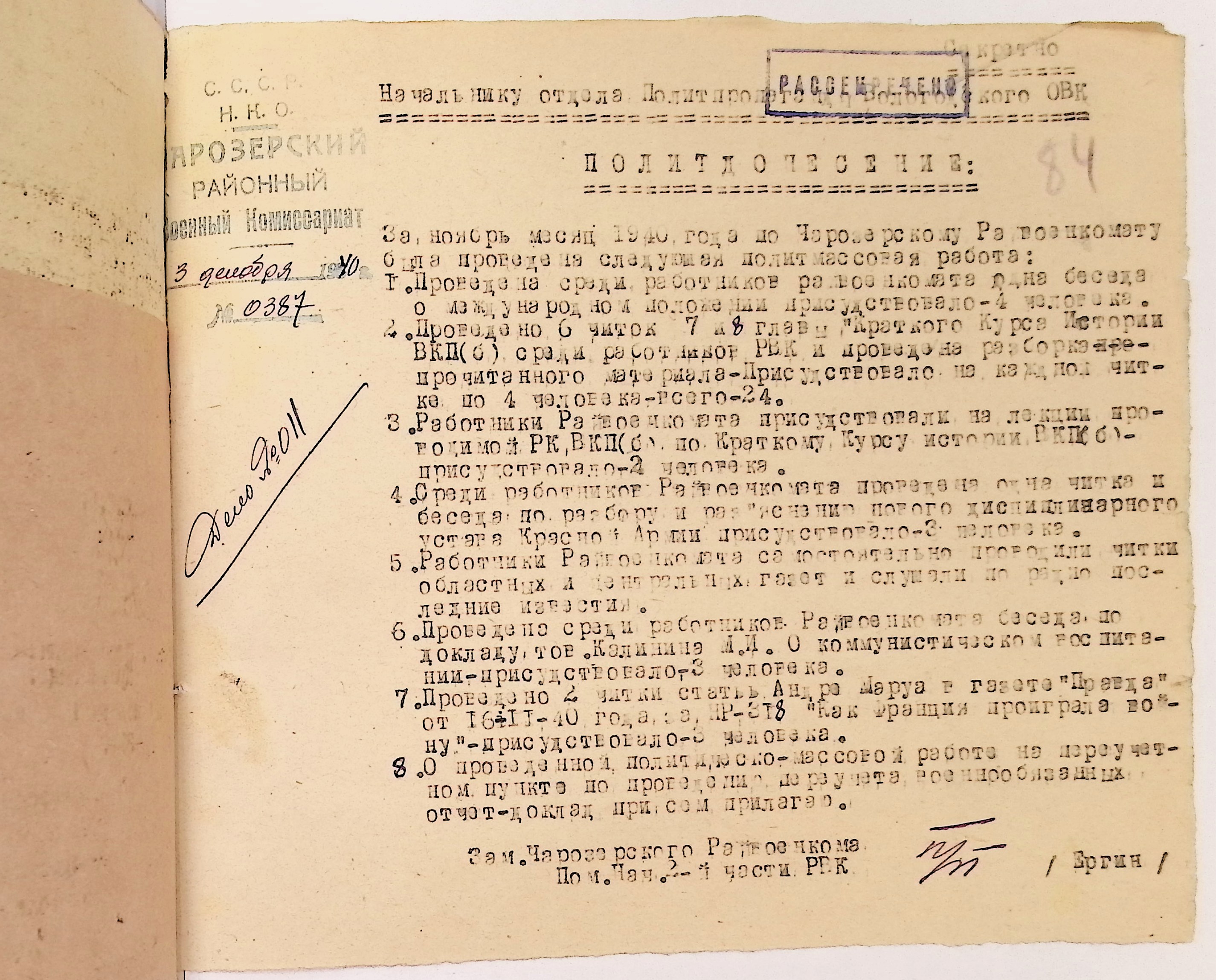 Директивы, отчеты, указания и переписка по политической части и о мобилизационной части. Чарозерский РВК (ГАВО. Ф. 1746 Оп. 1 Д. 7)