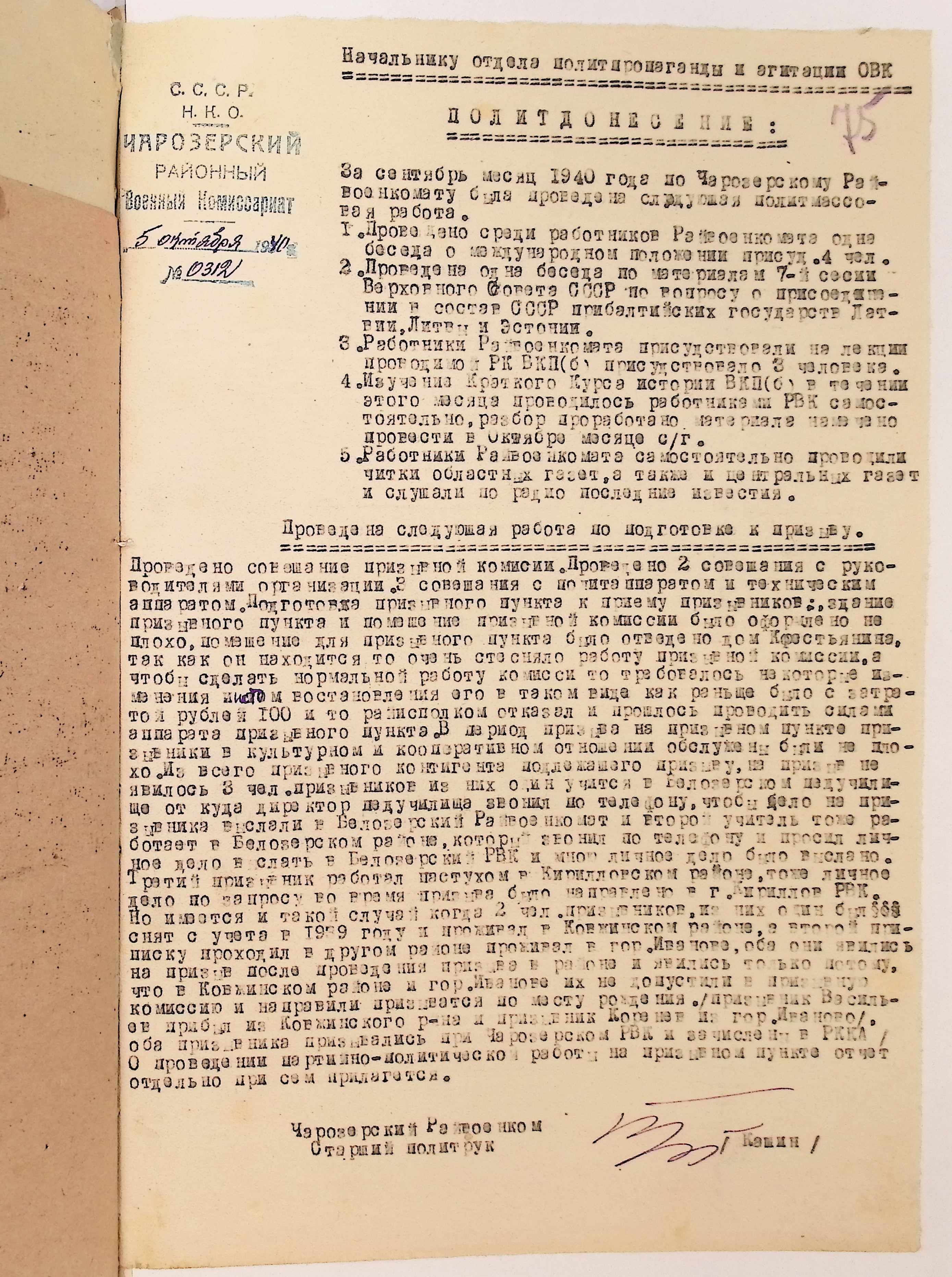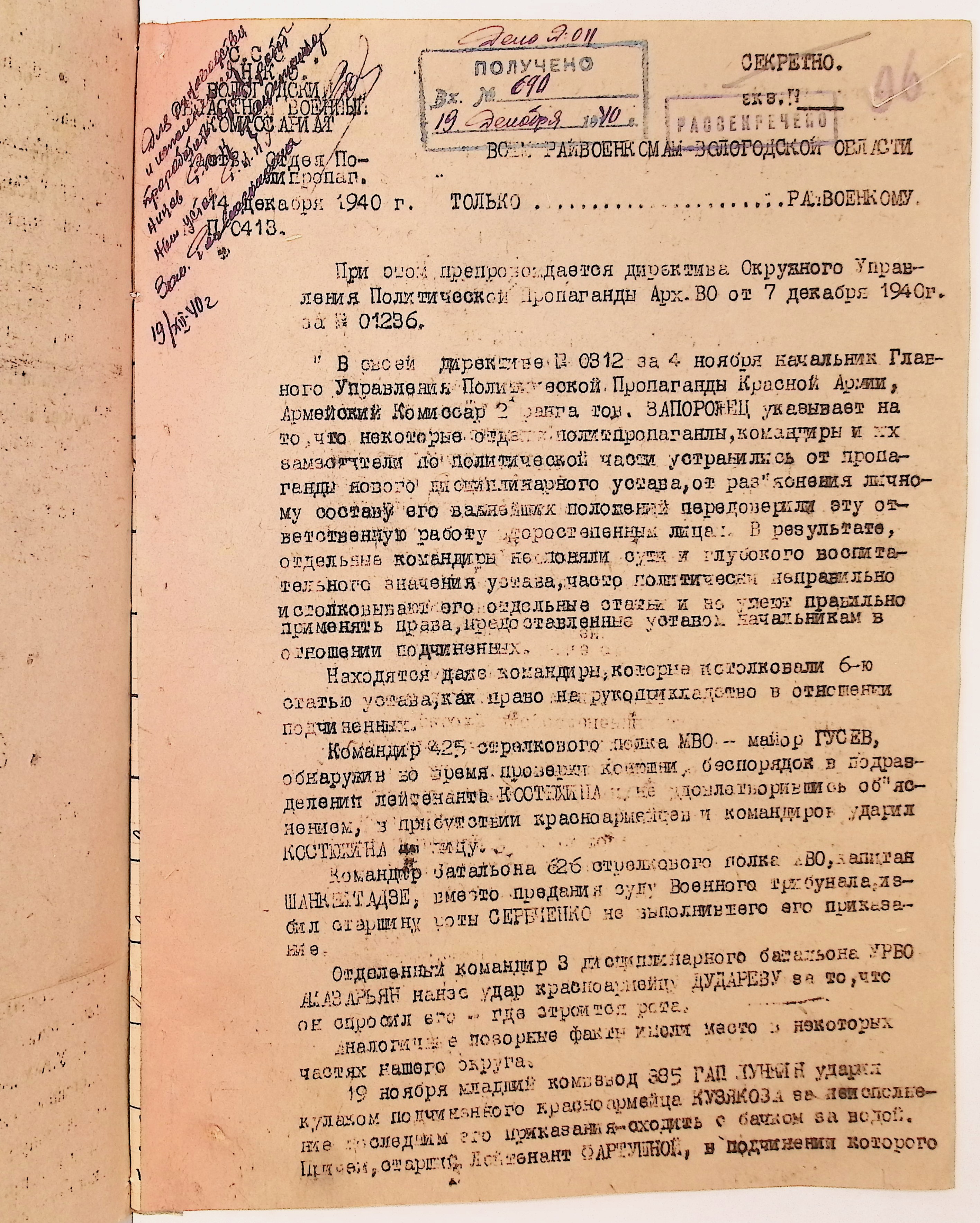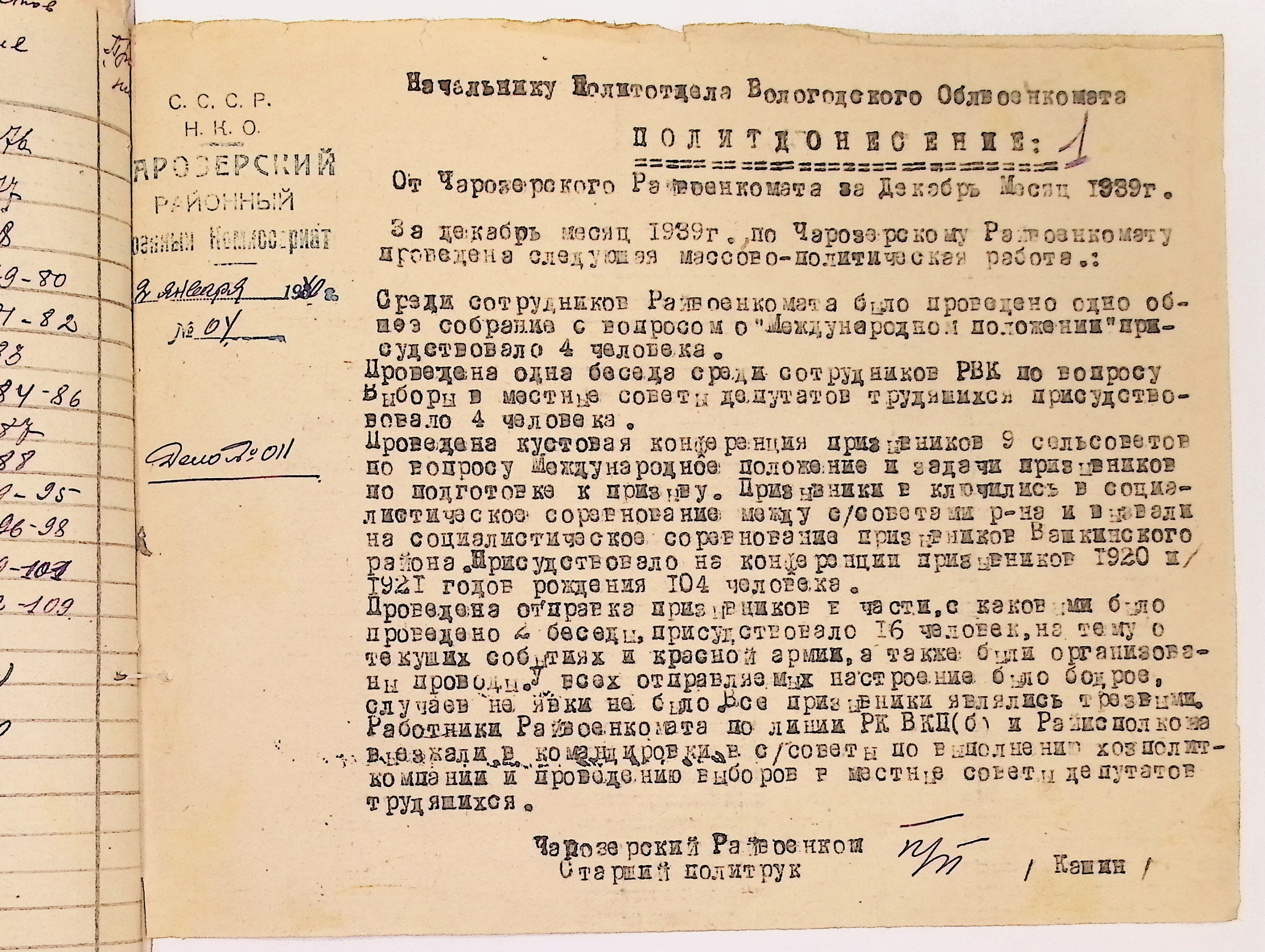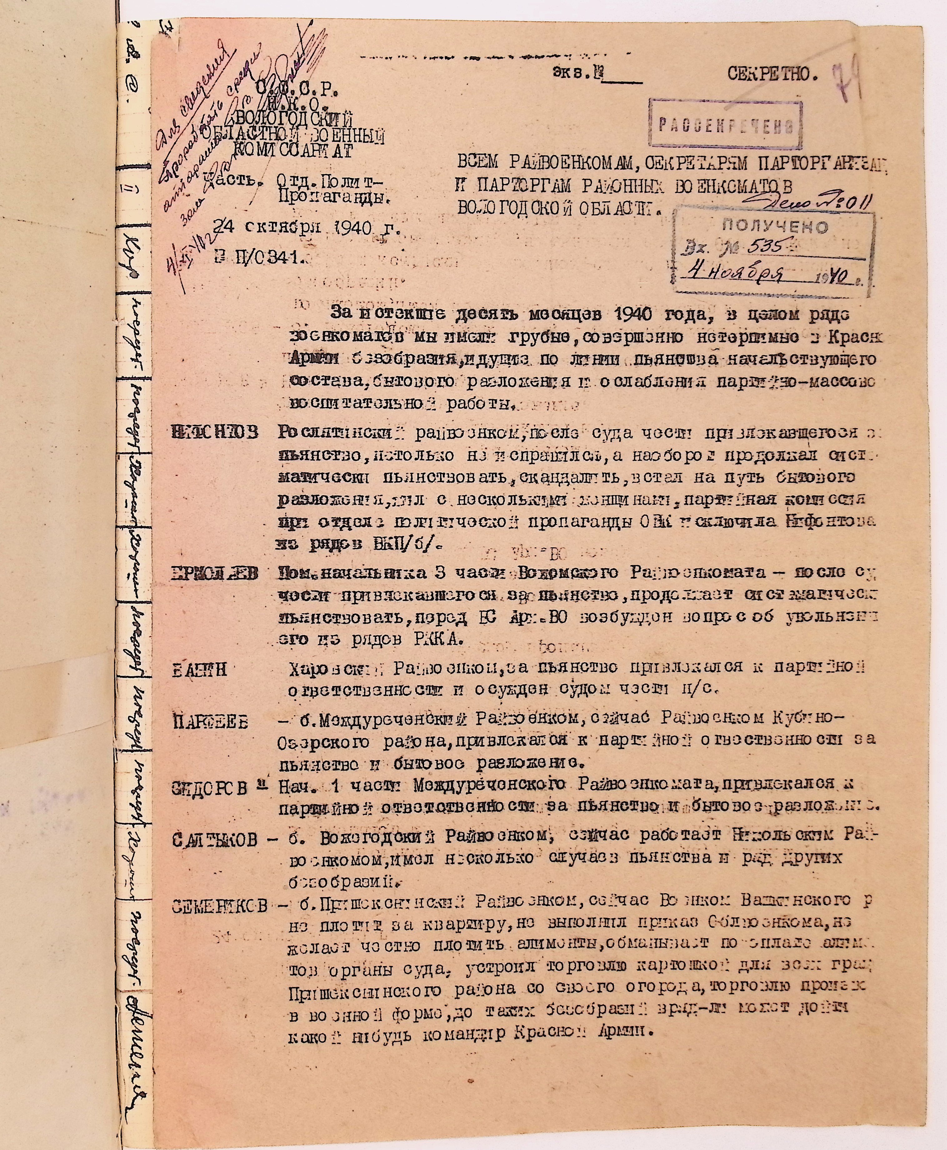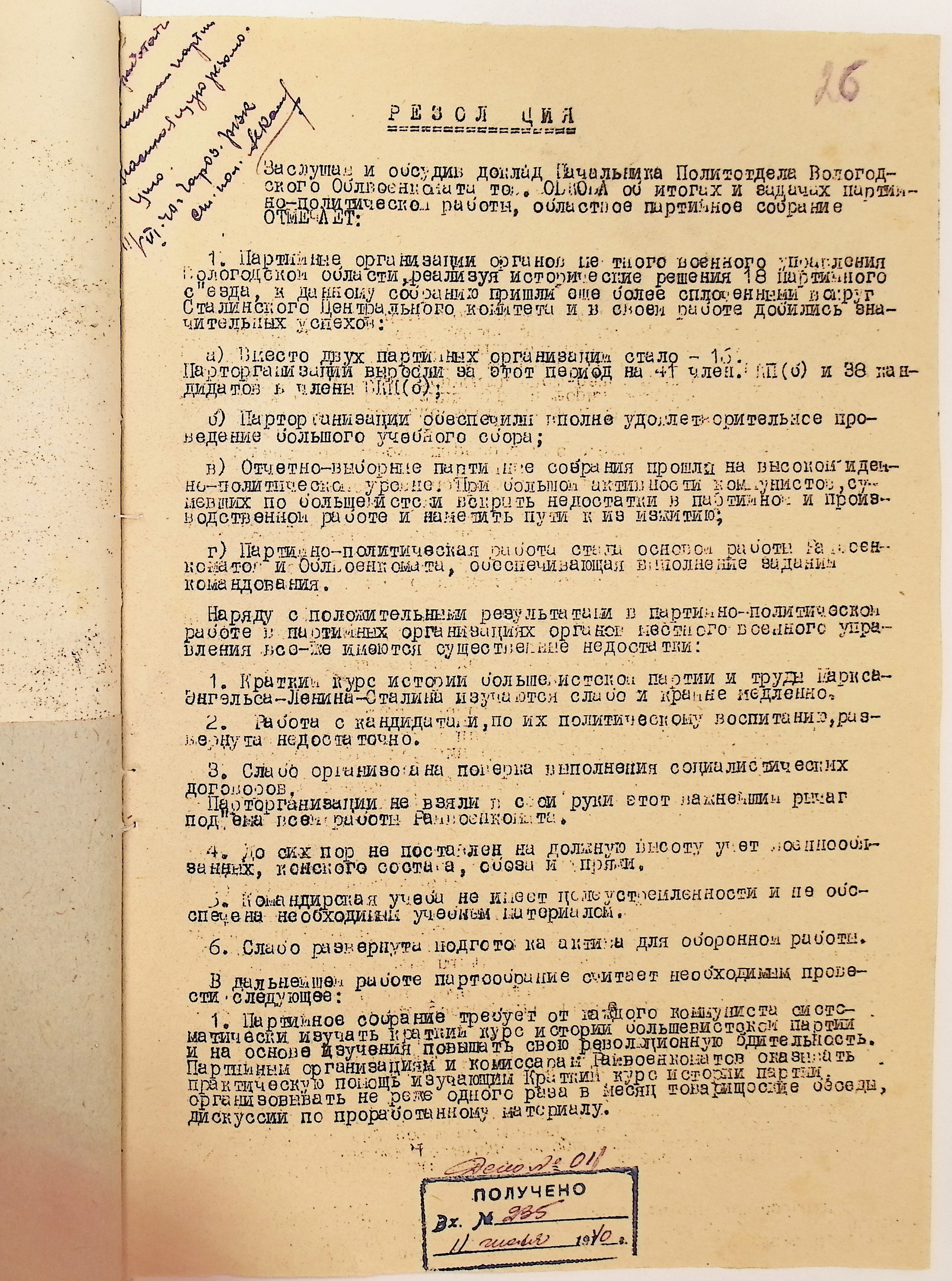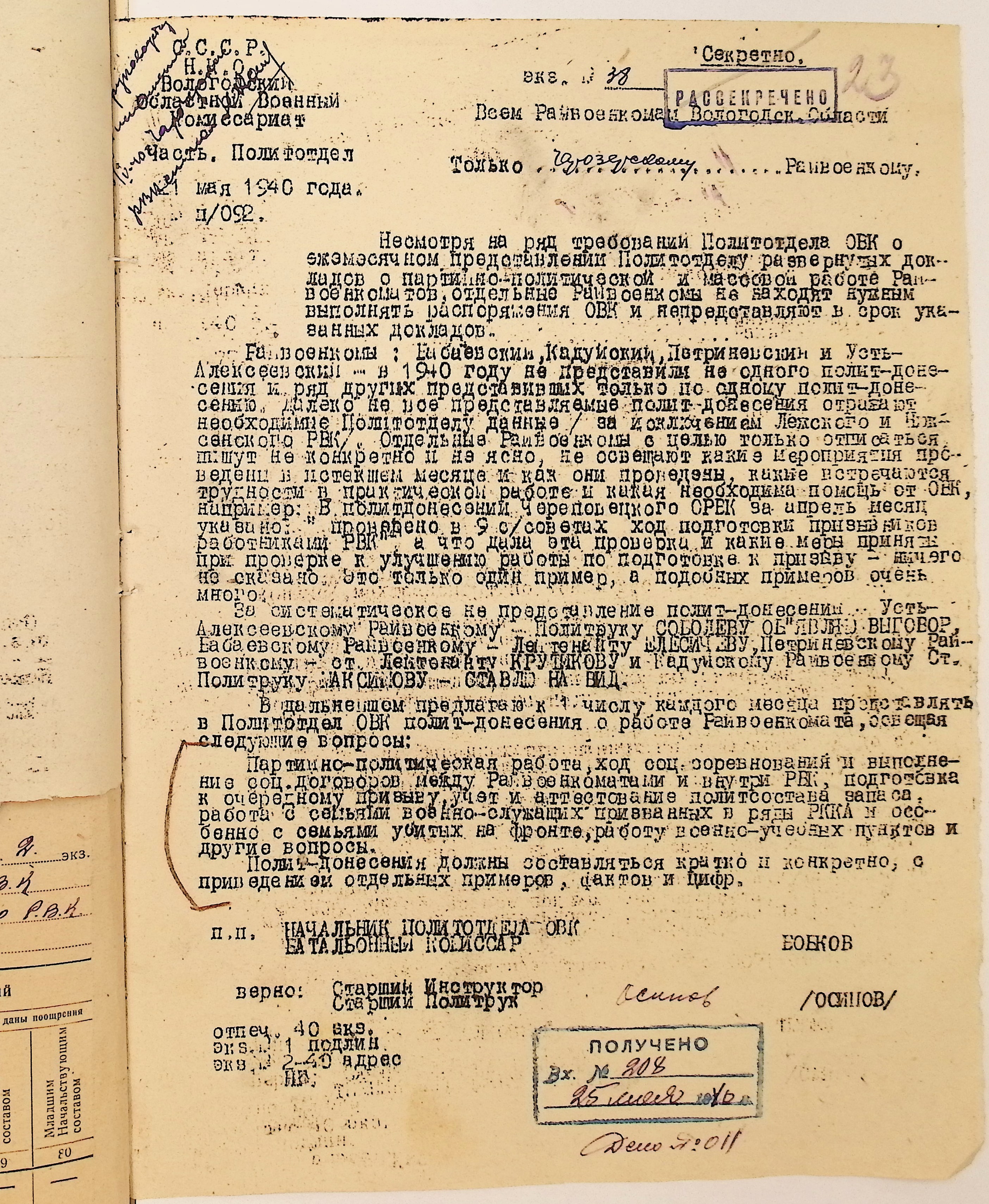Директивы, отчеты, указания и переписка по политической части и о мобилизационной части. Чарозерский РВК (ГАВО. Ф. 1746 Оп. 1 Д. 7)