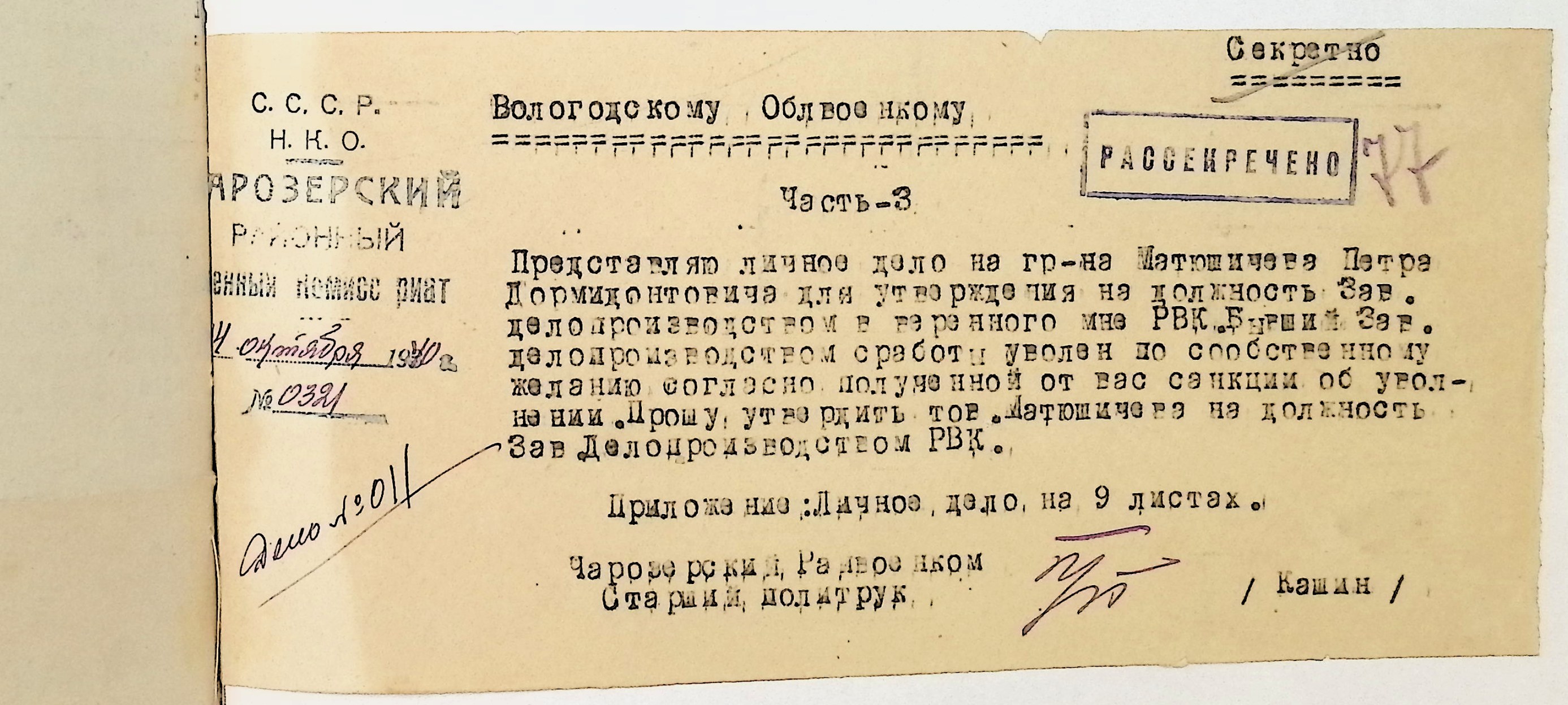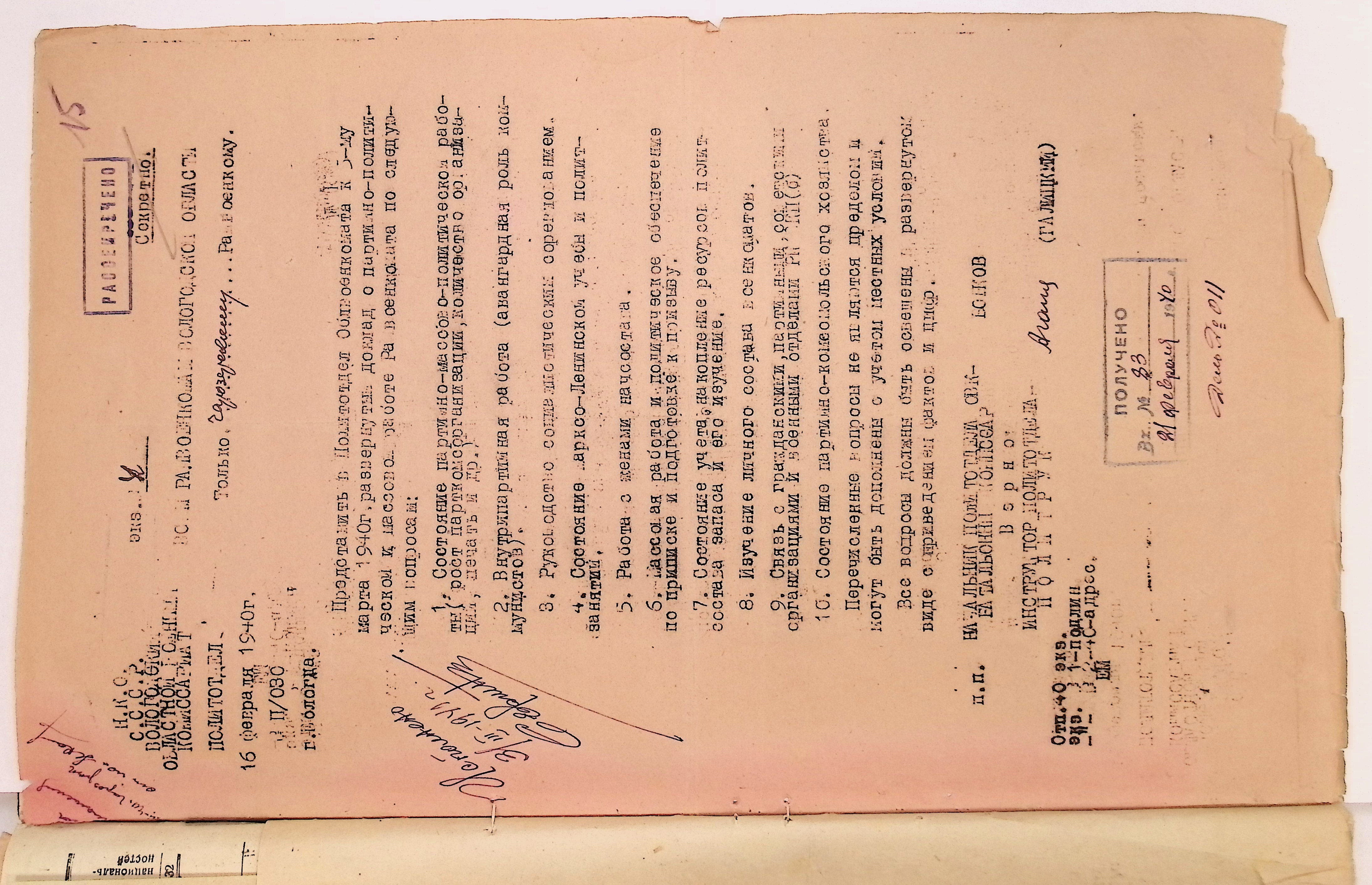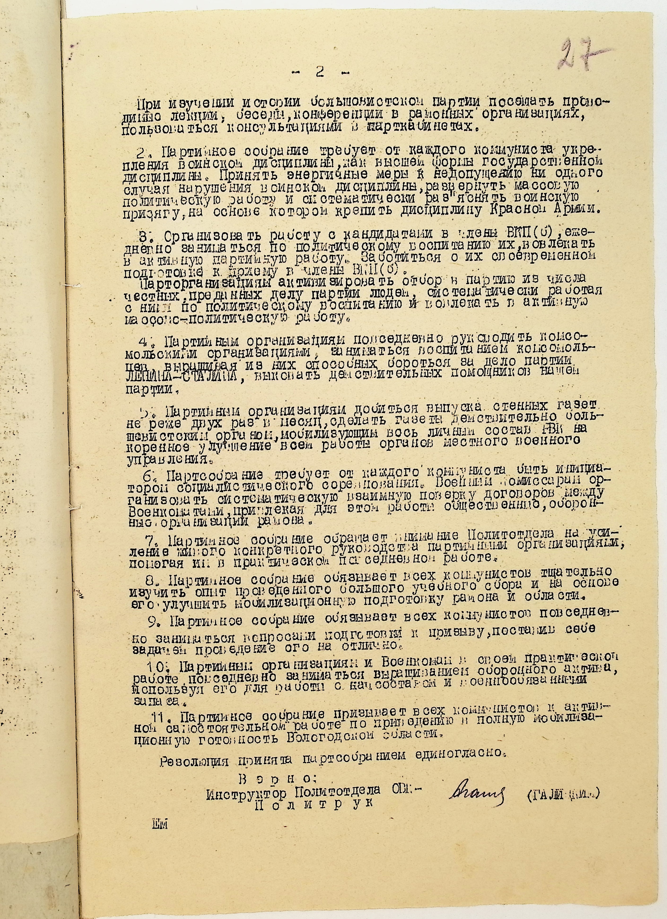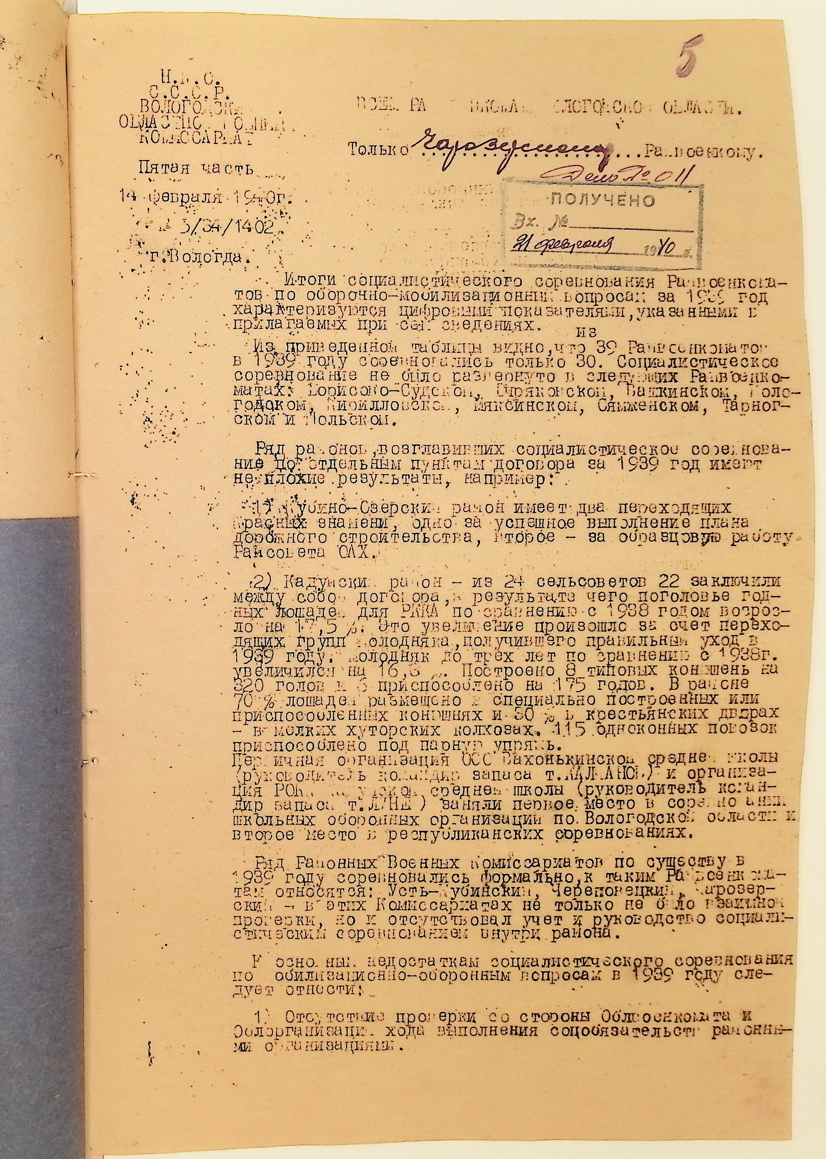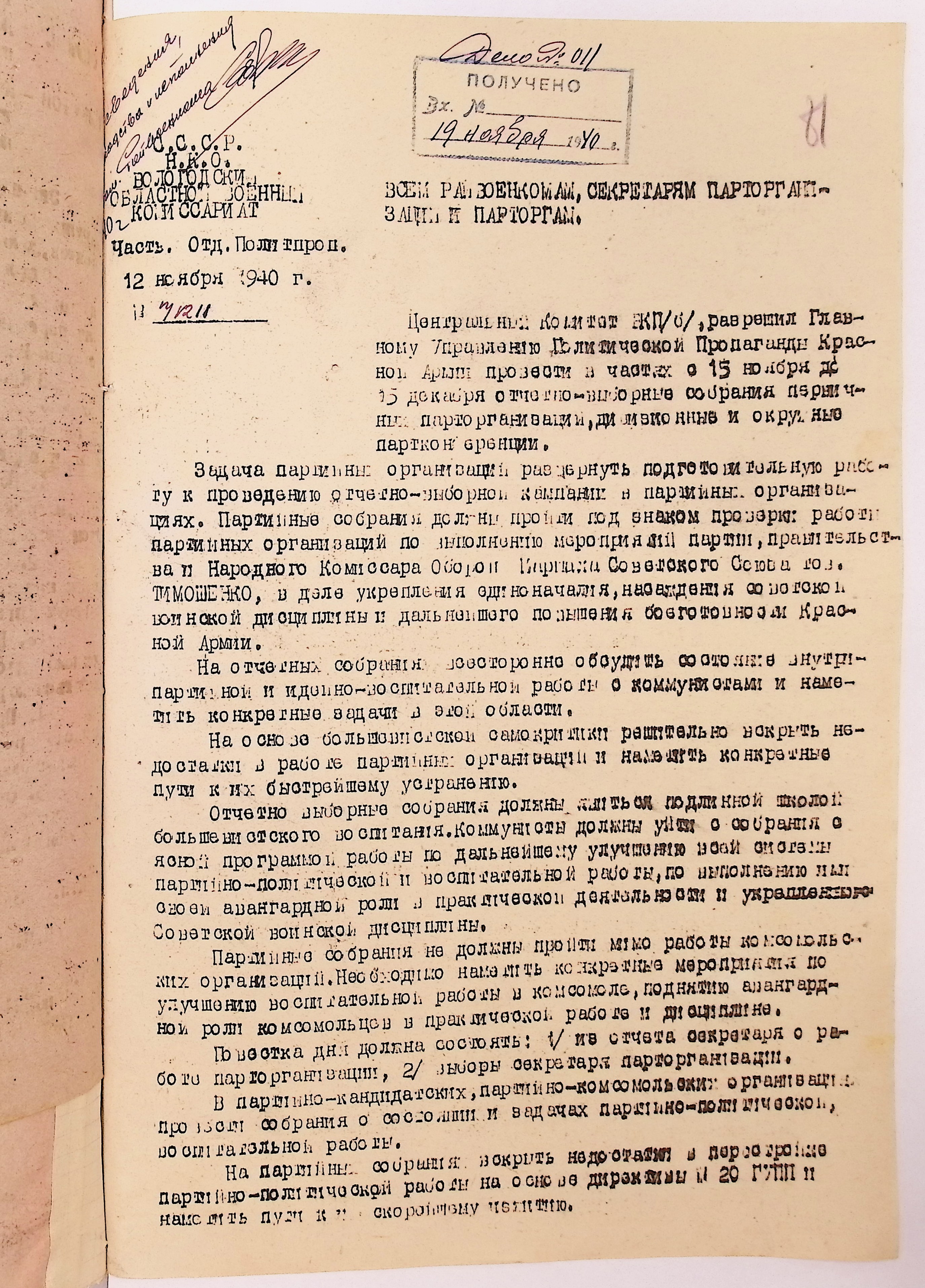Директивы, отчеты, указания и переписка по политической части и о мобилизационной части. Чарозерский РВК (ГАВО. Ф. 1746 Оп. 1 Д. 7)