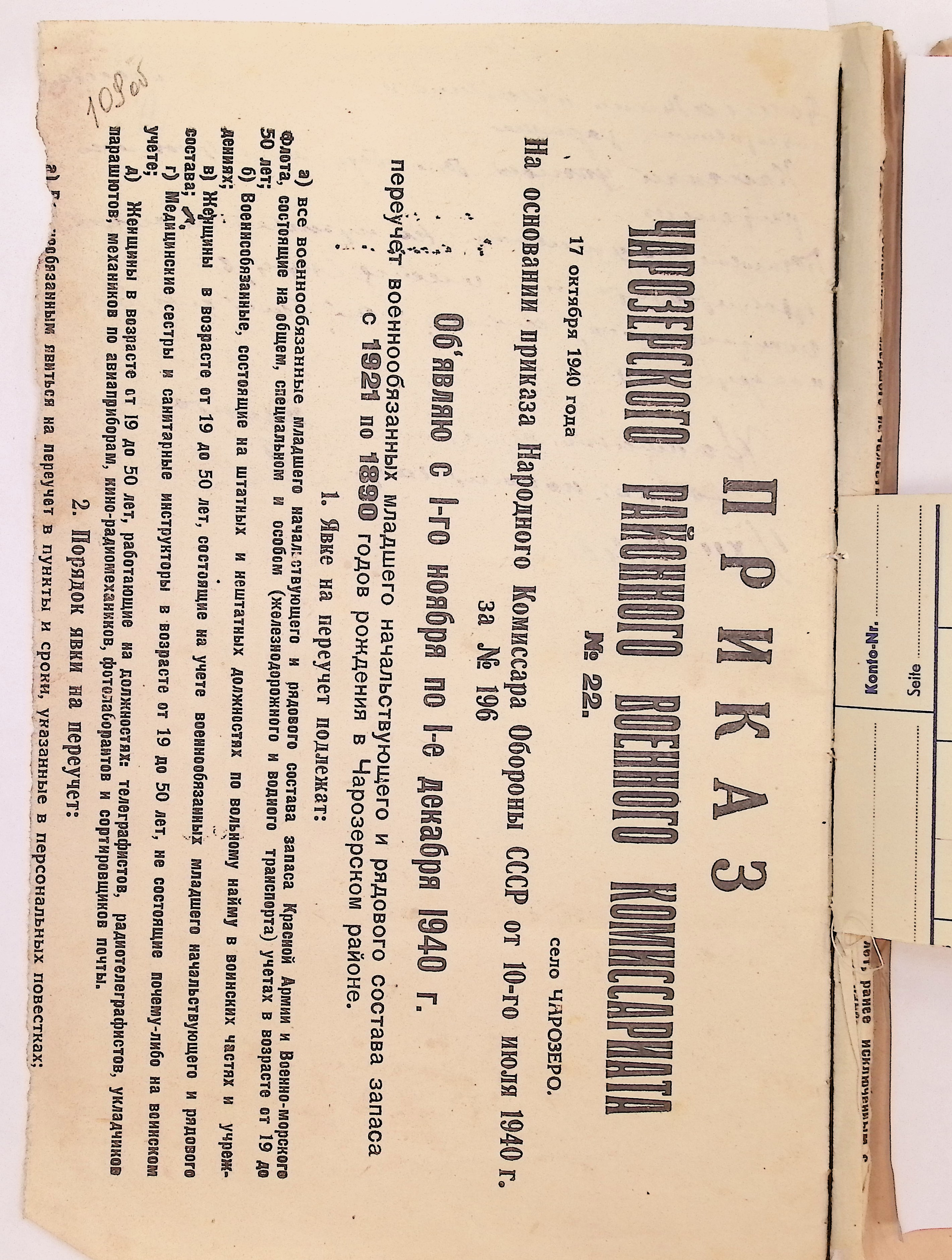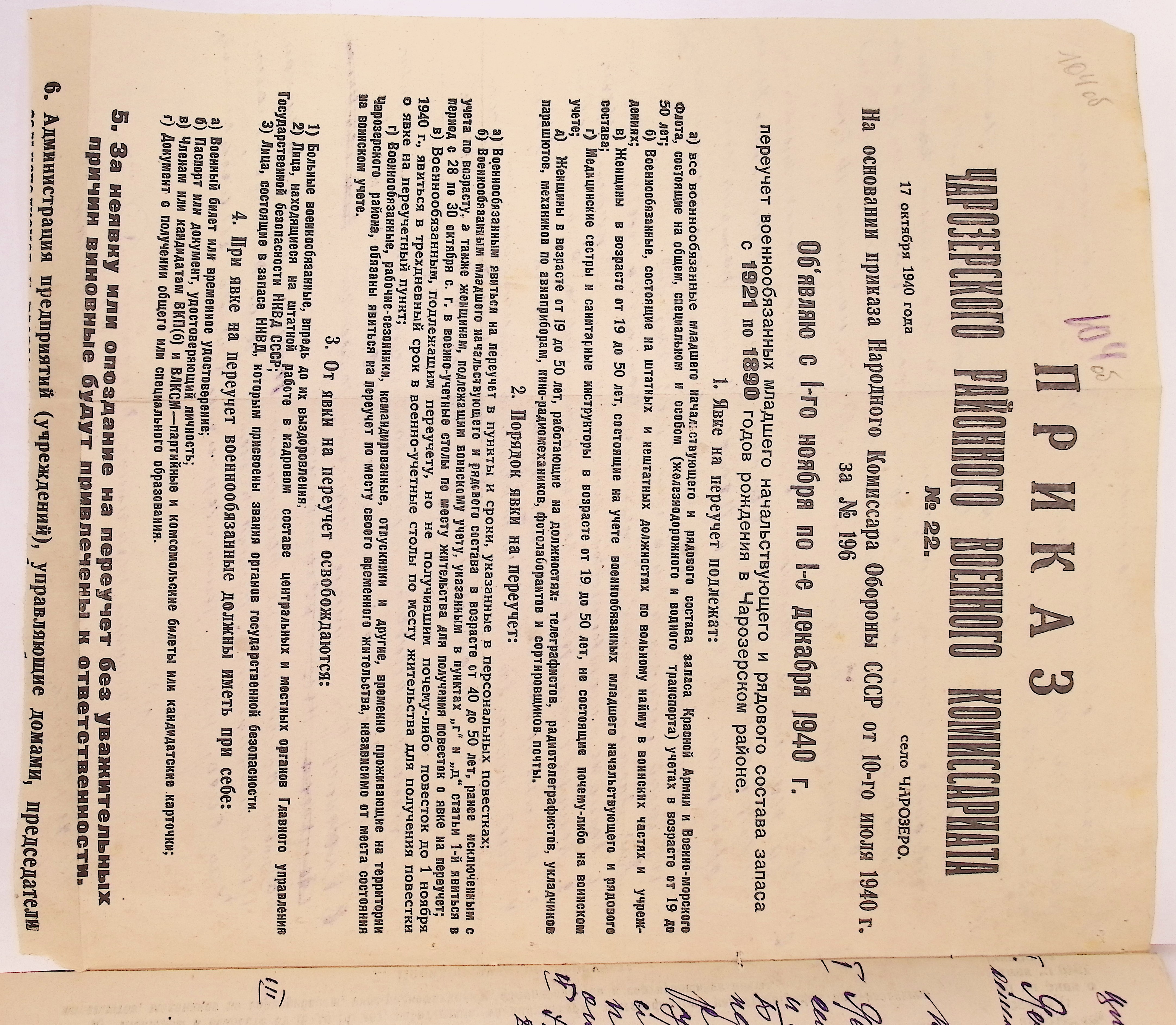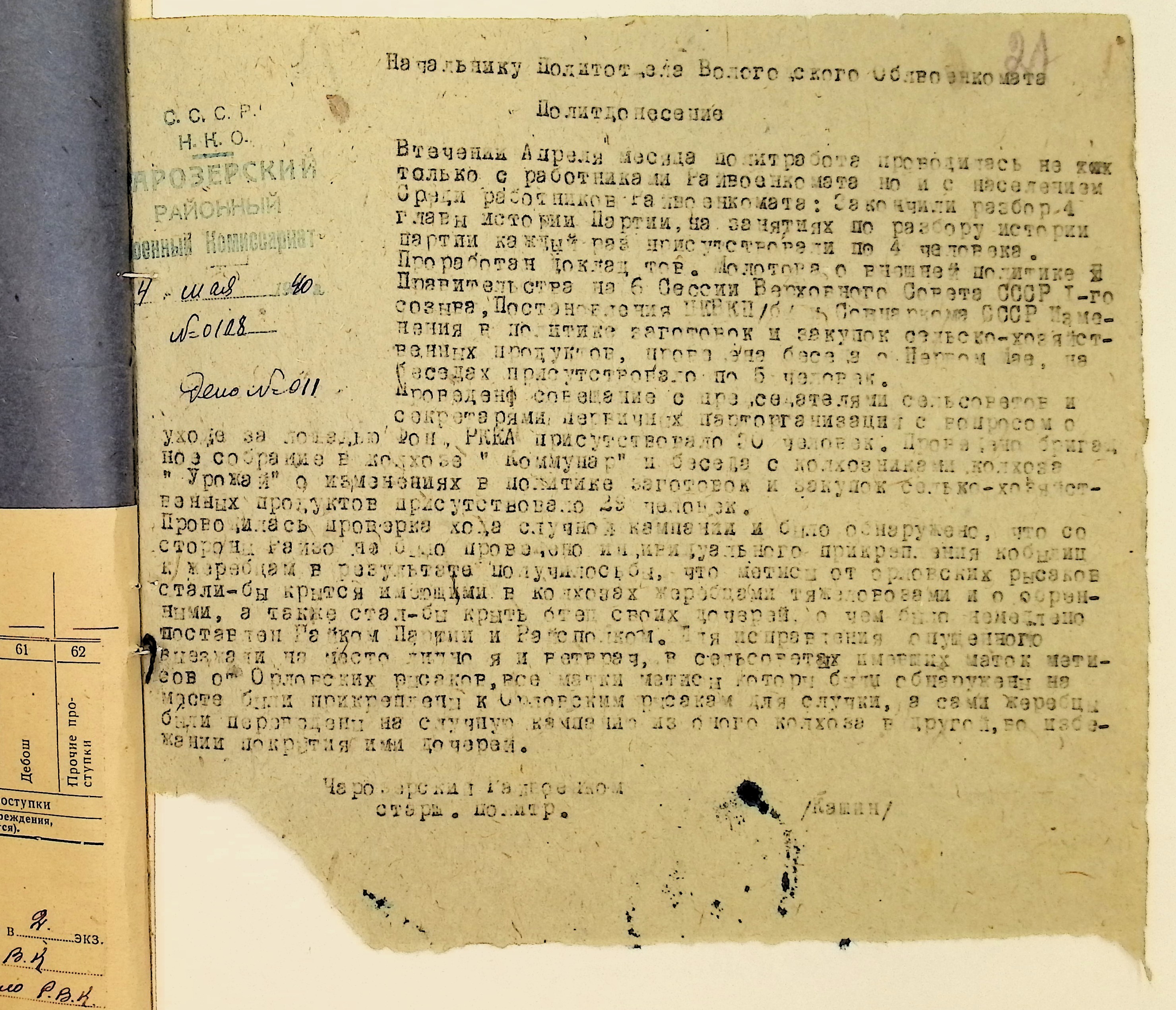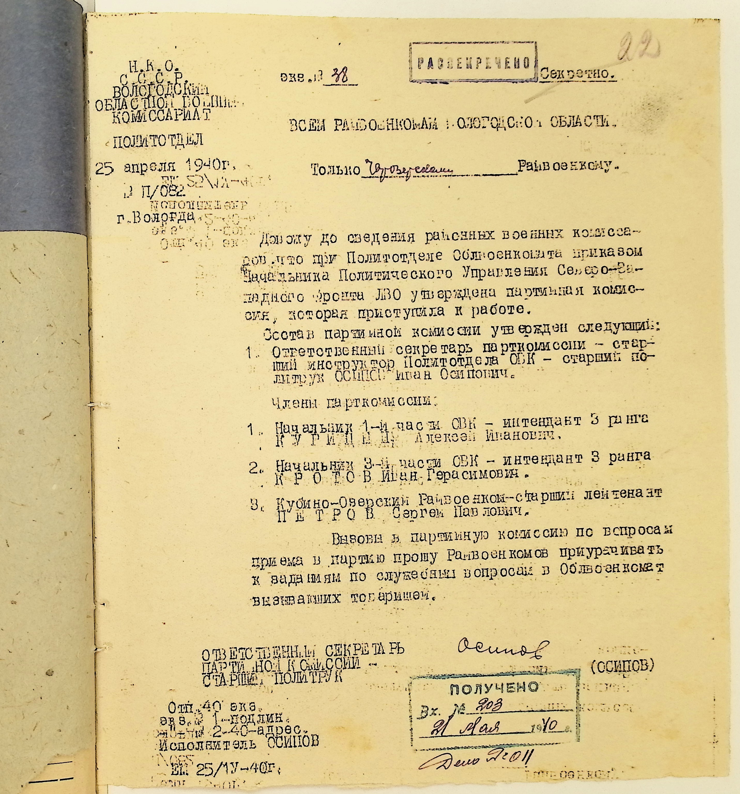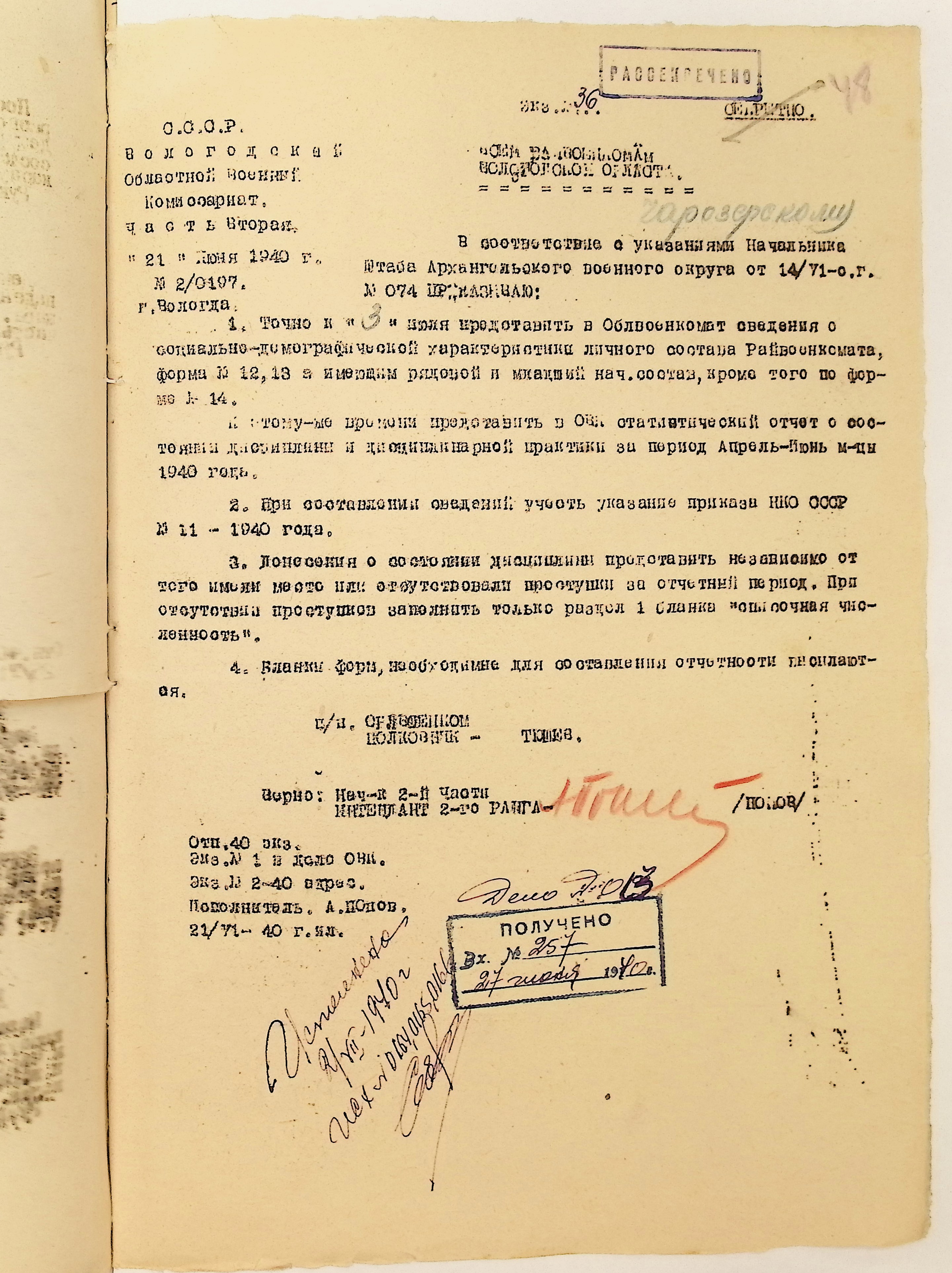 Директивы, отчеты, указания и переписка по политической части и о мобилизационной части. Чарозерский РВК (ГАВО. Ф. 1746 Оп. 1 Д. 7)