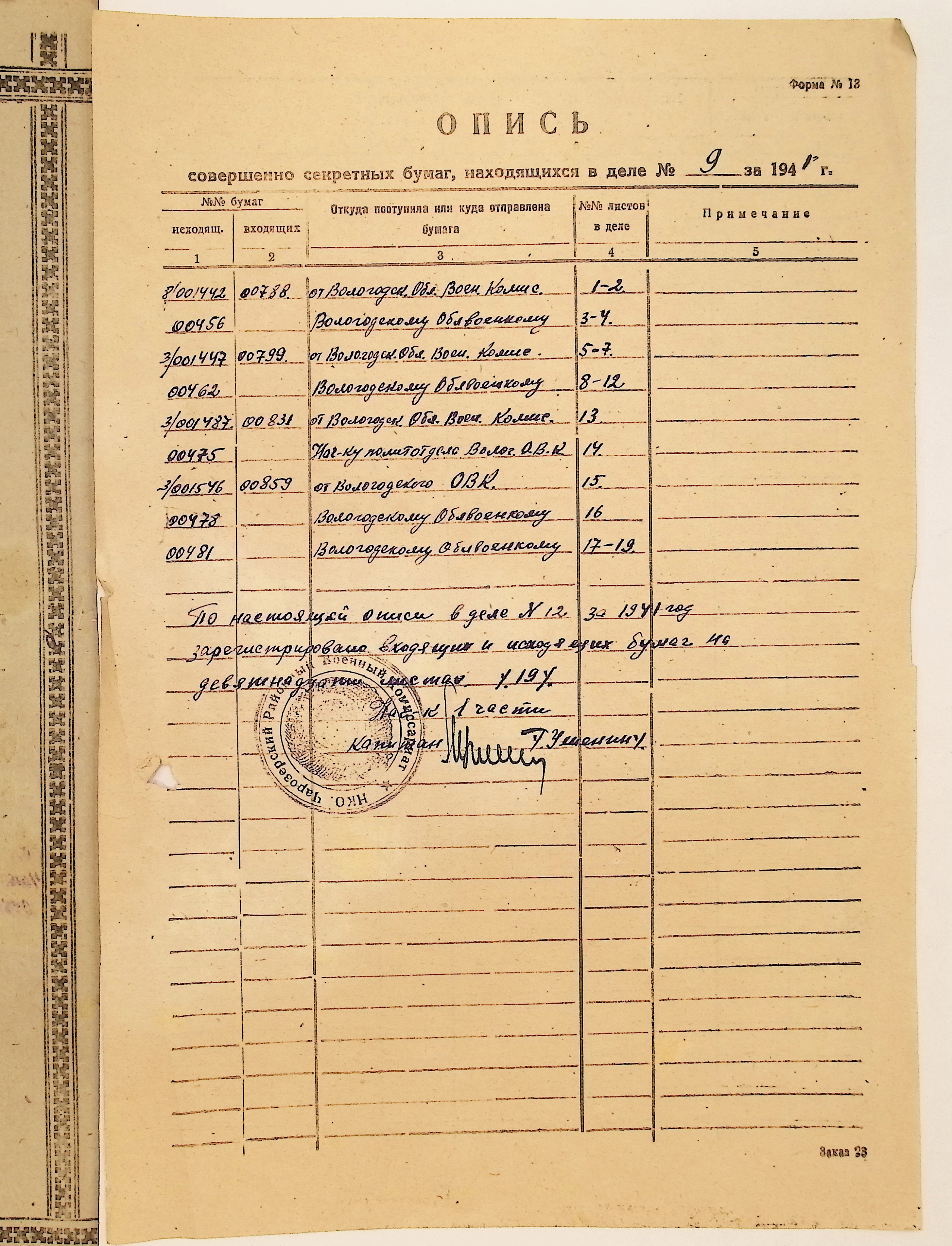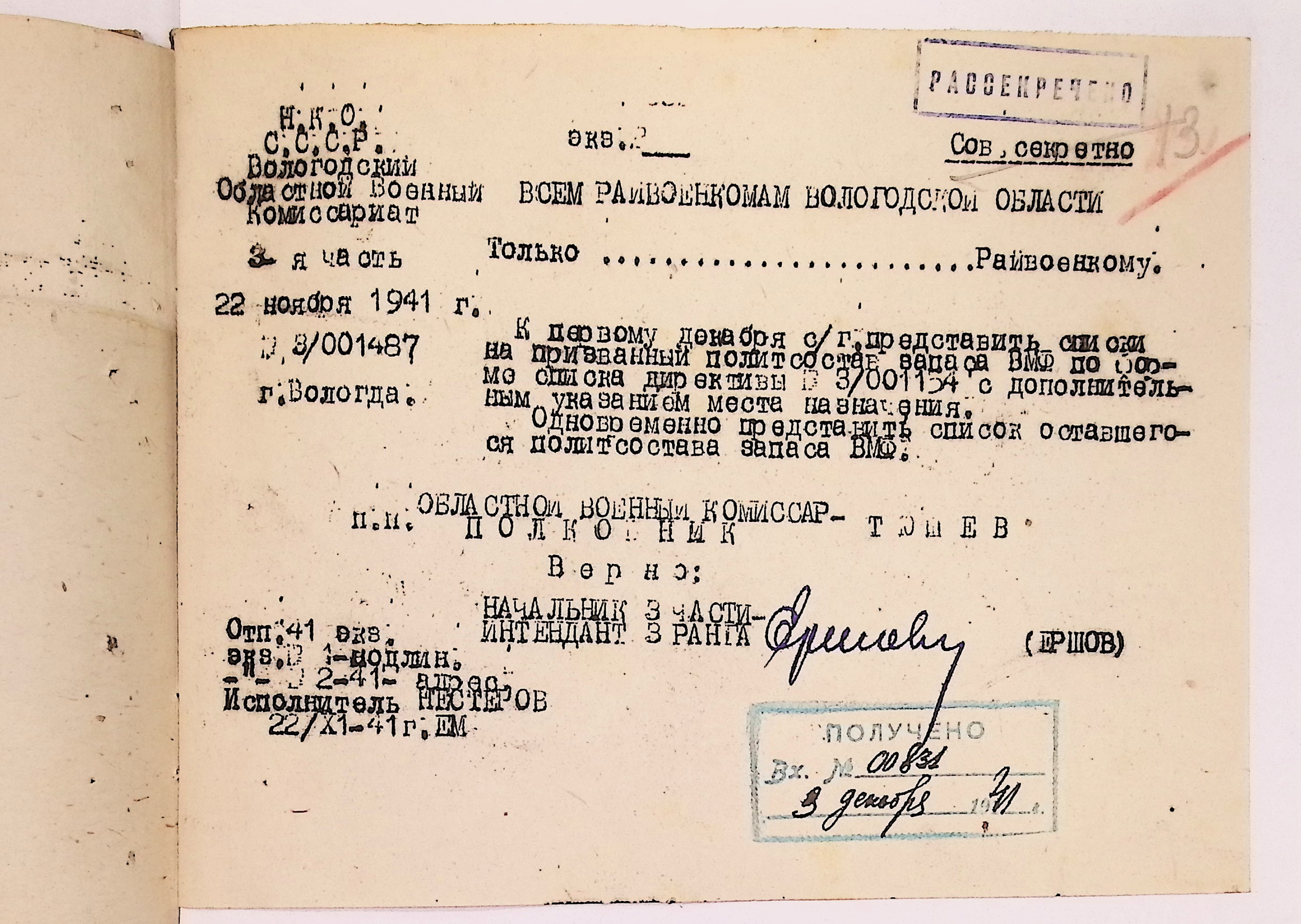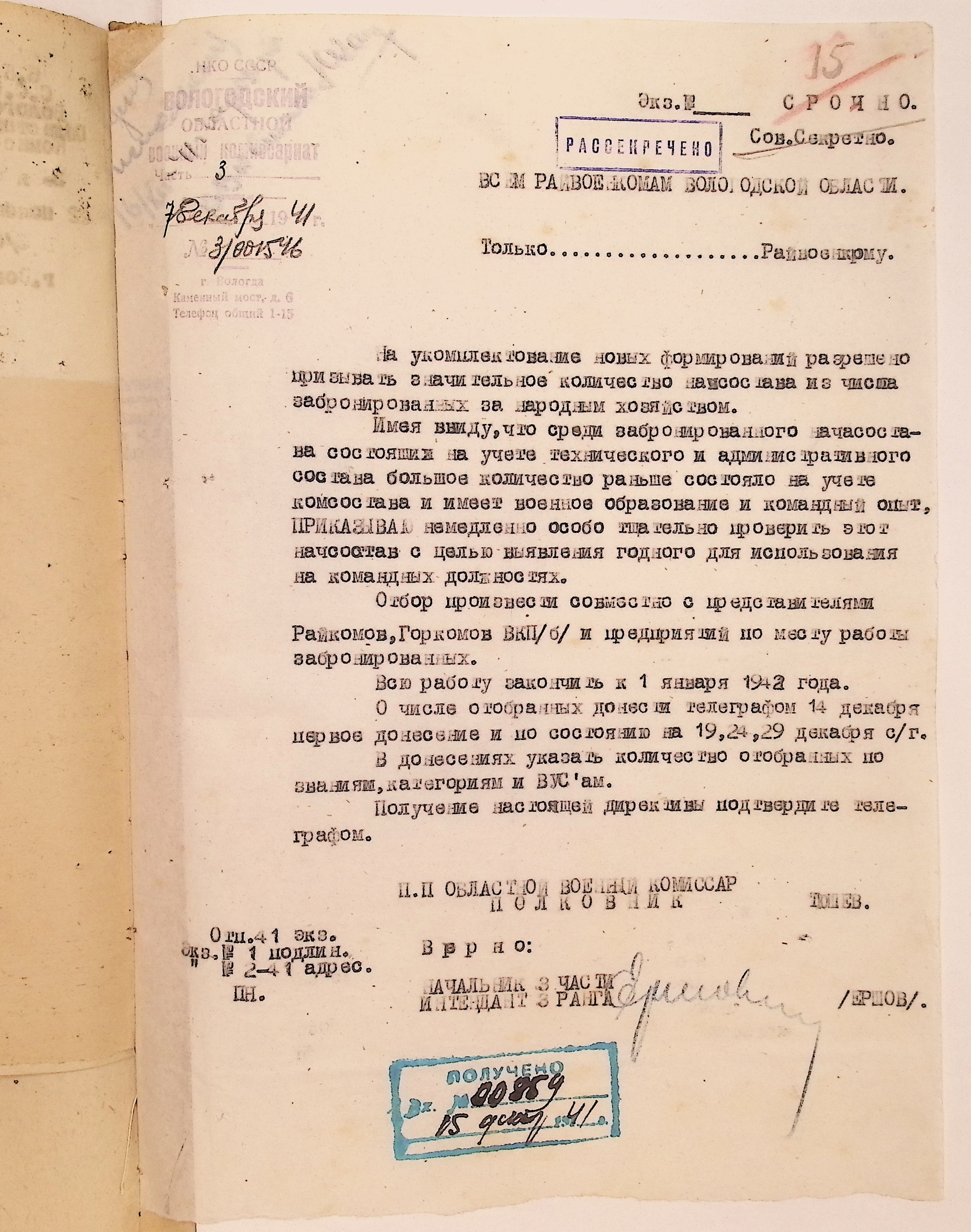 Руководящие указания по призыву. Чарозерский РВК (ГАВО. Ф. 1746 Оп. 1 Д. 11)