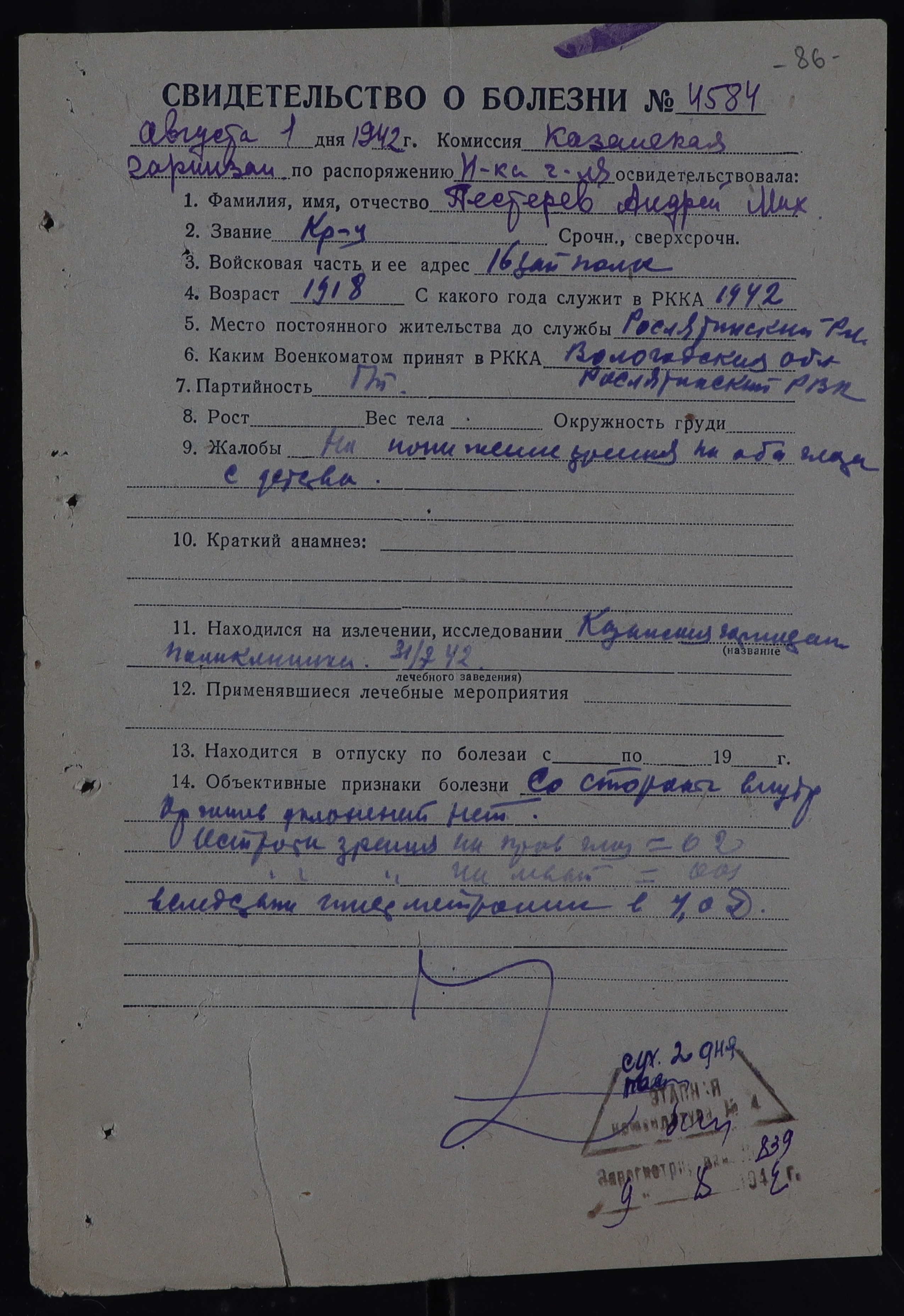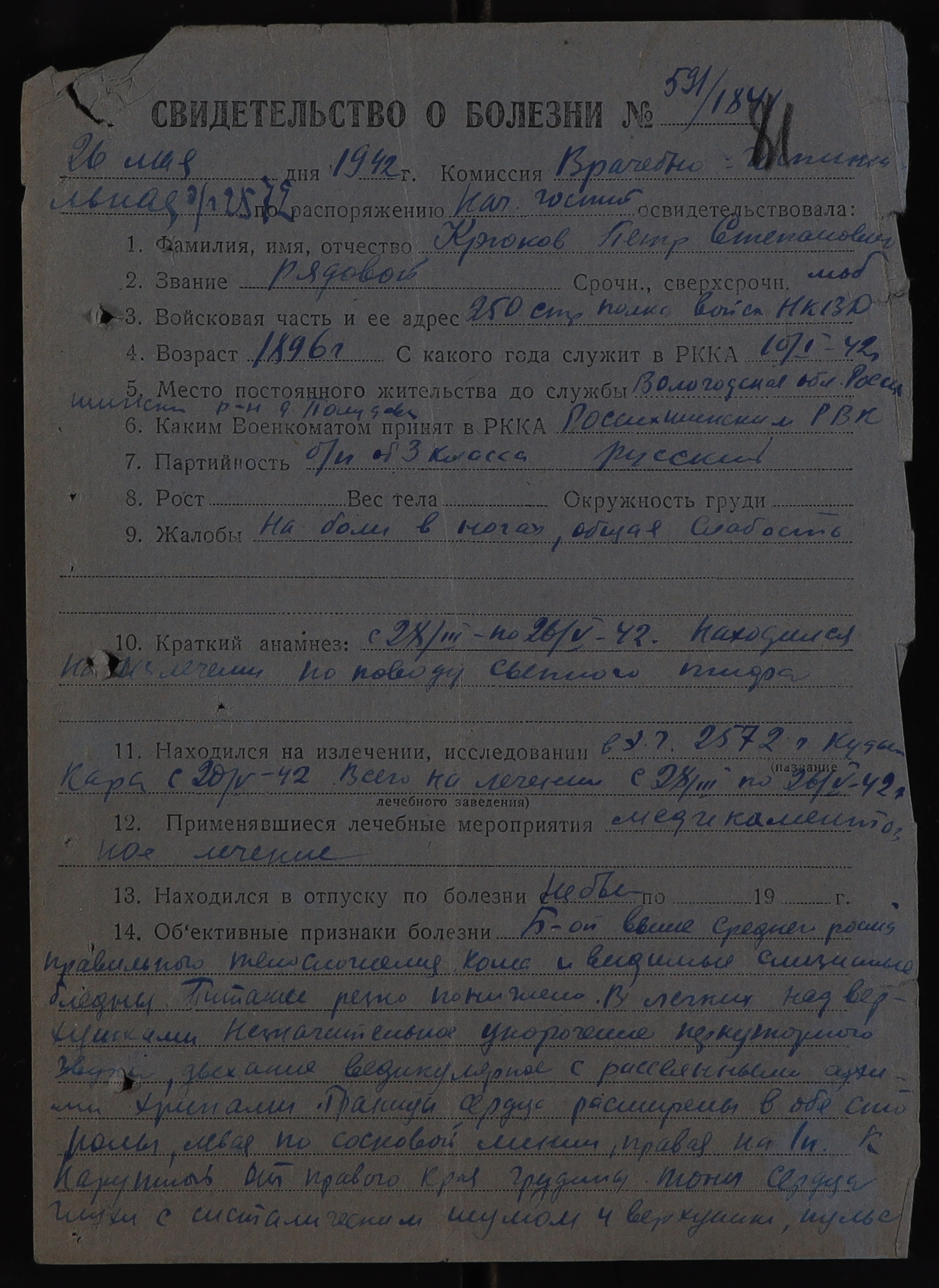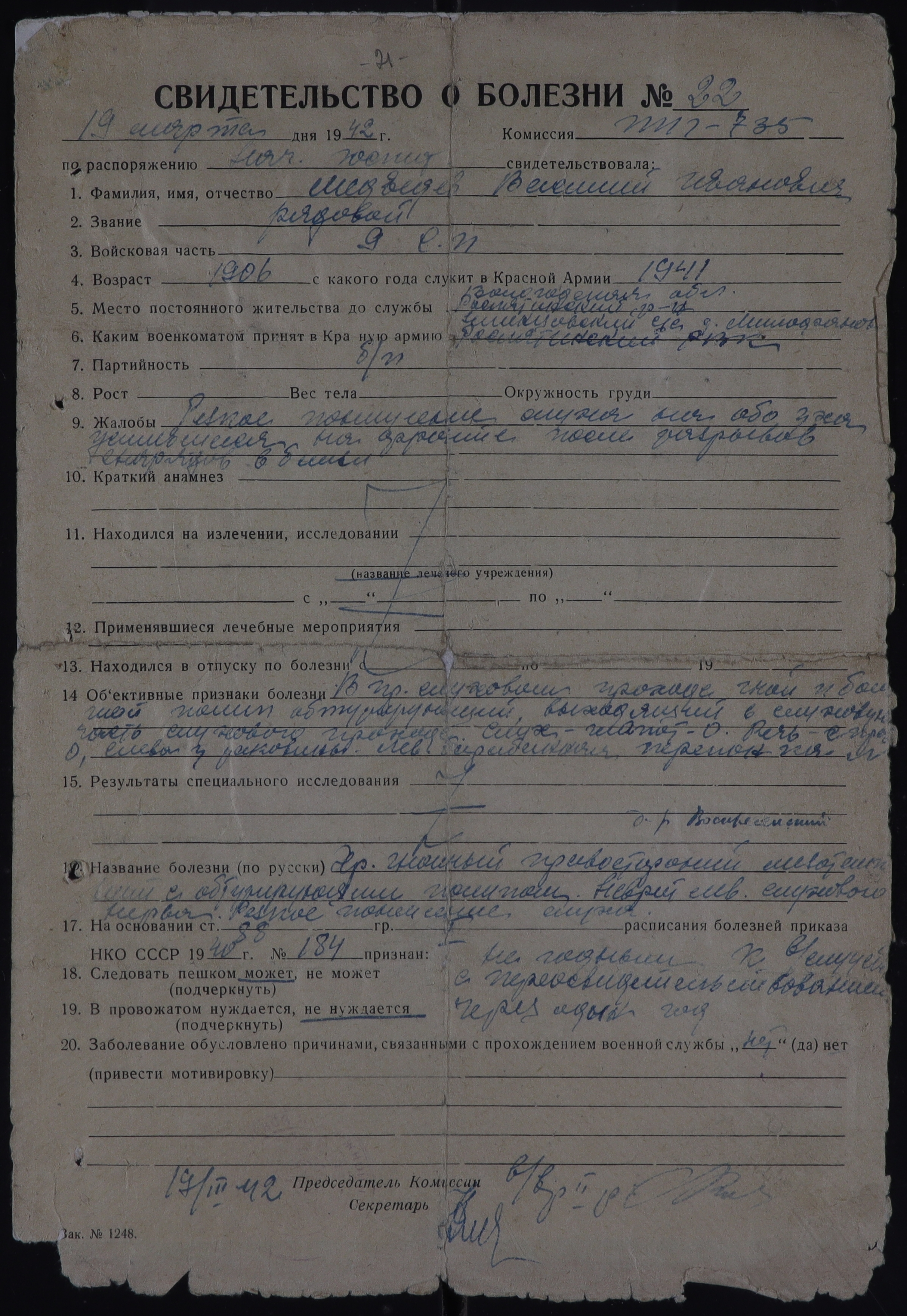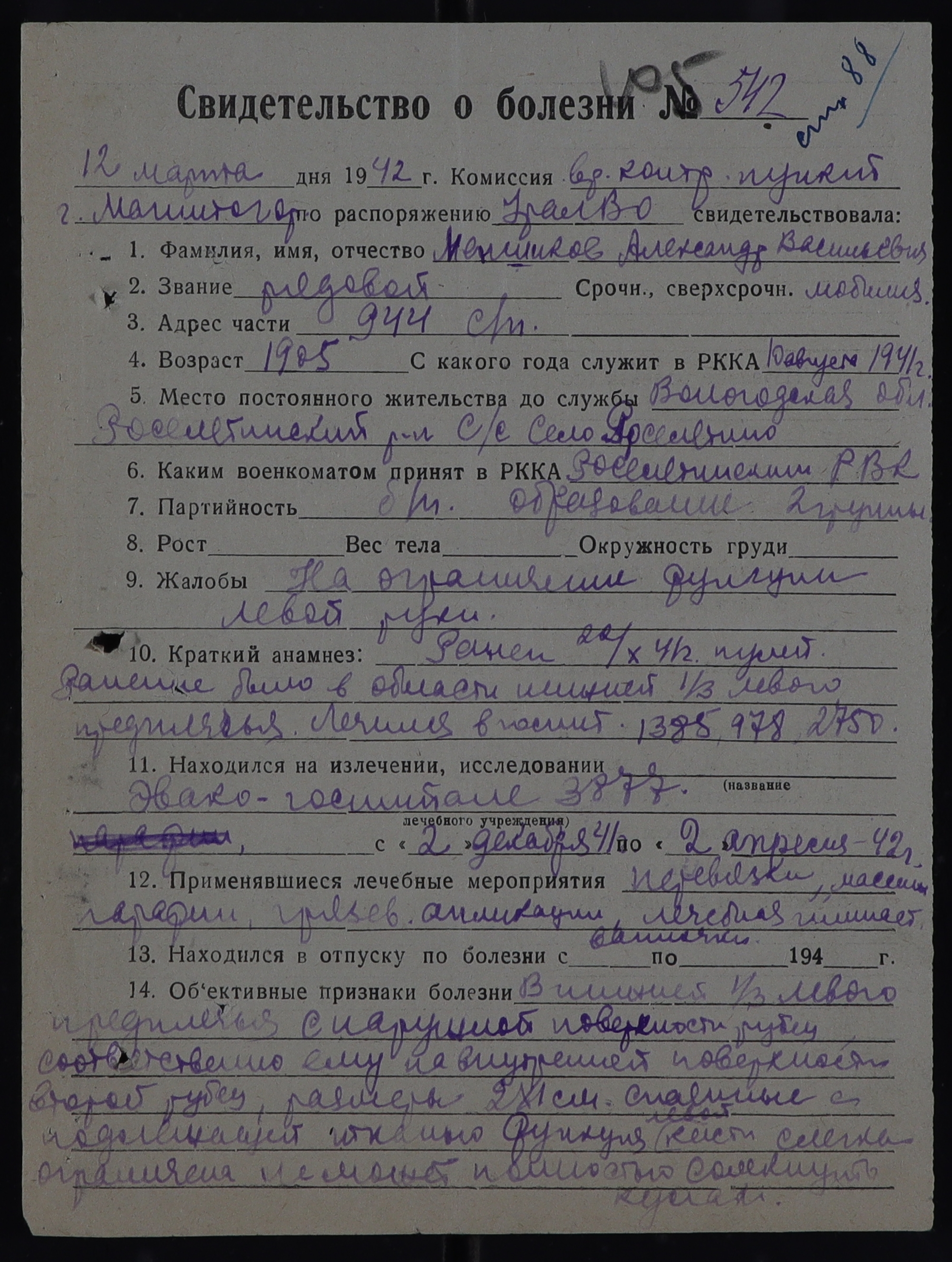 РОС_РВК_СВИДЕТЕЛЬСТВА О БОЛЕЗНИ_1942
