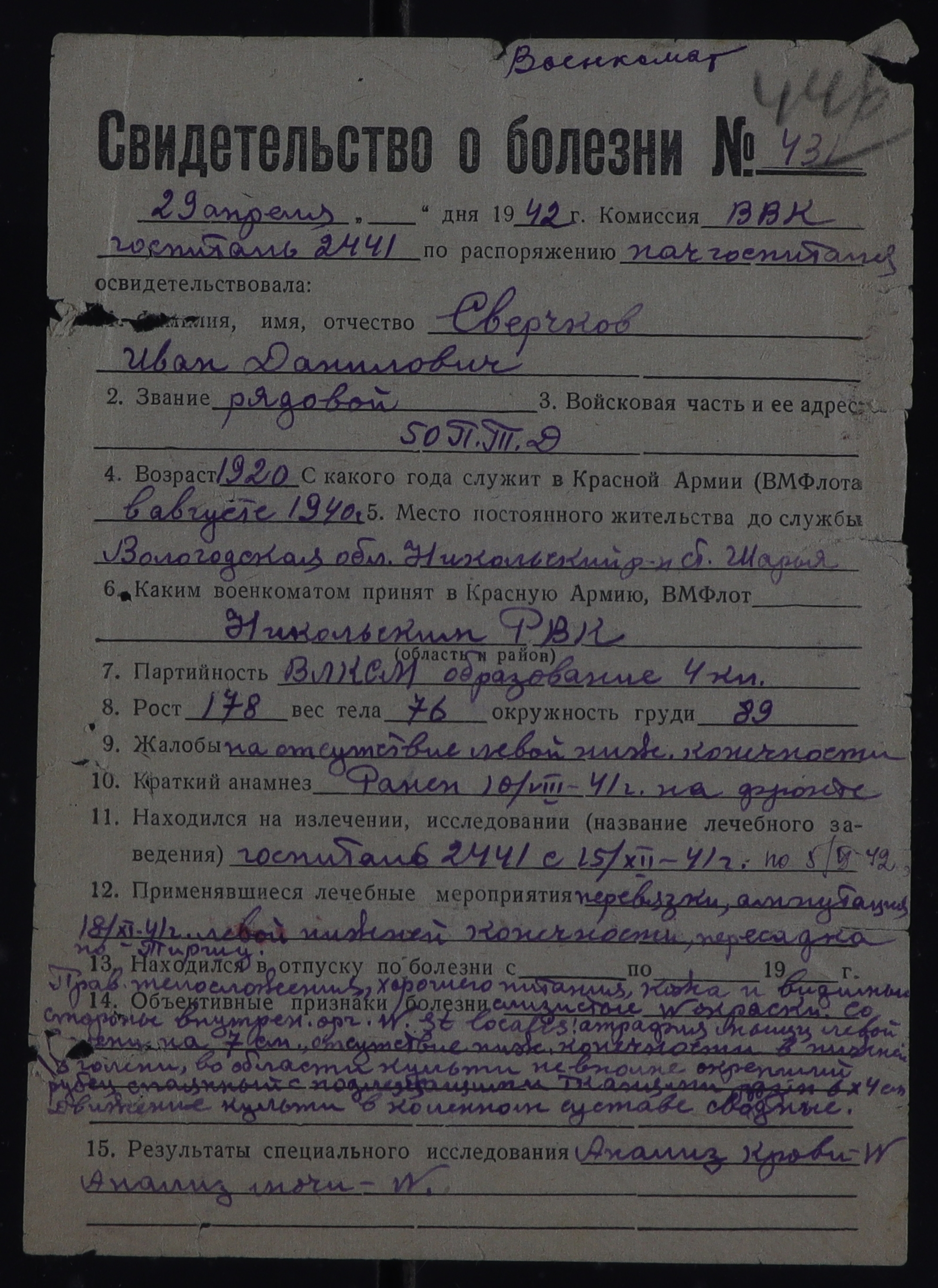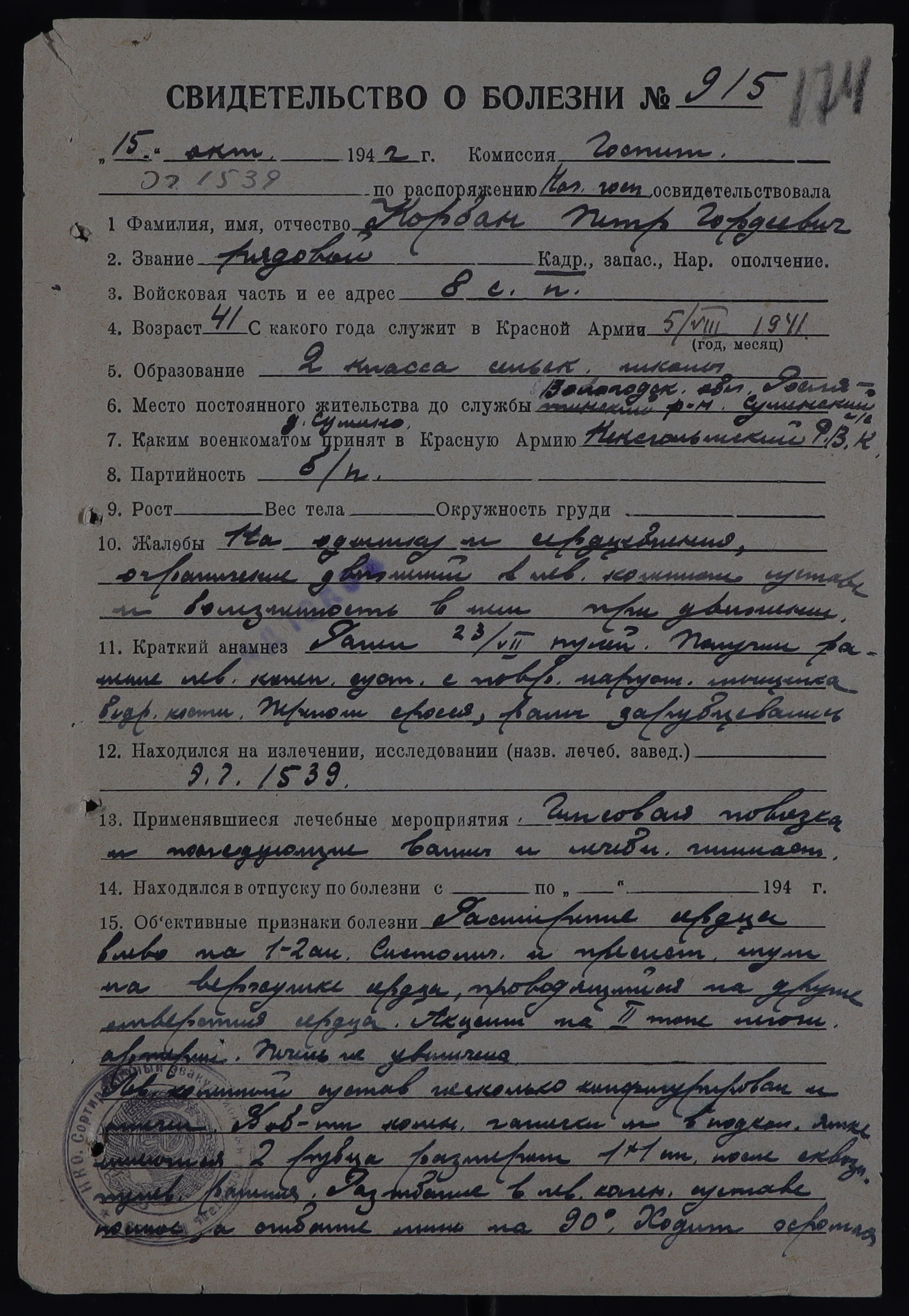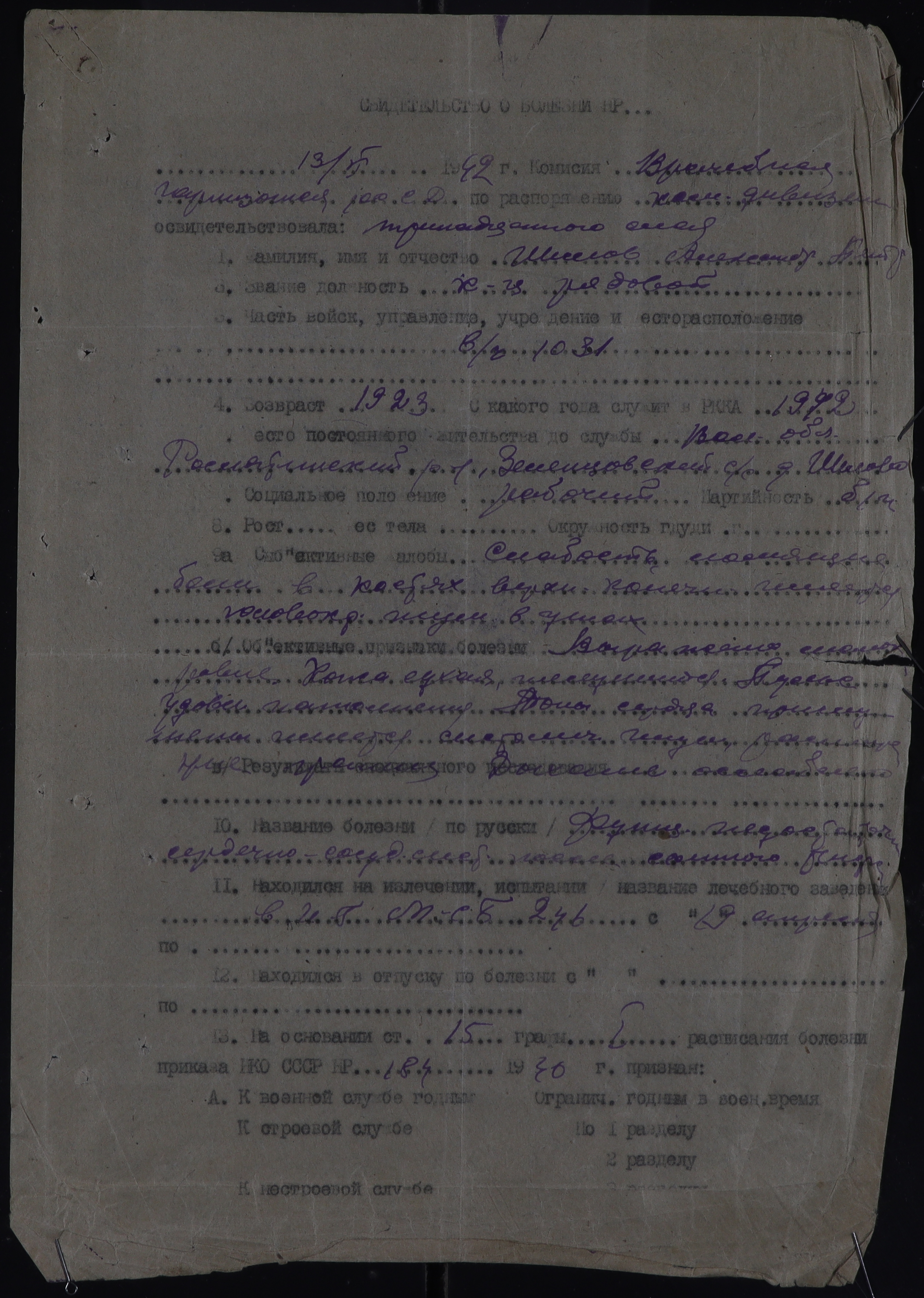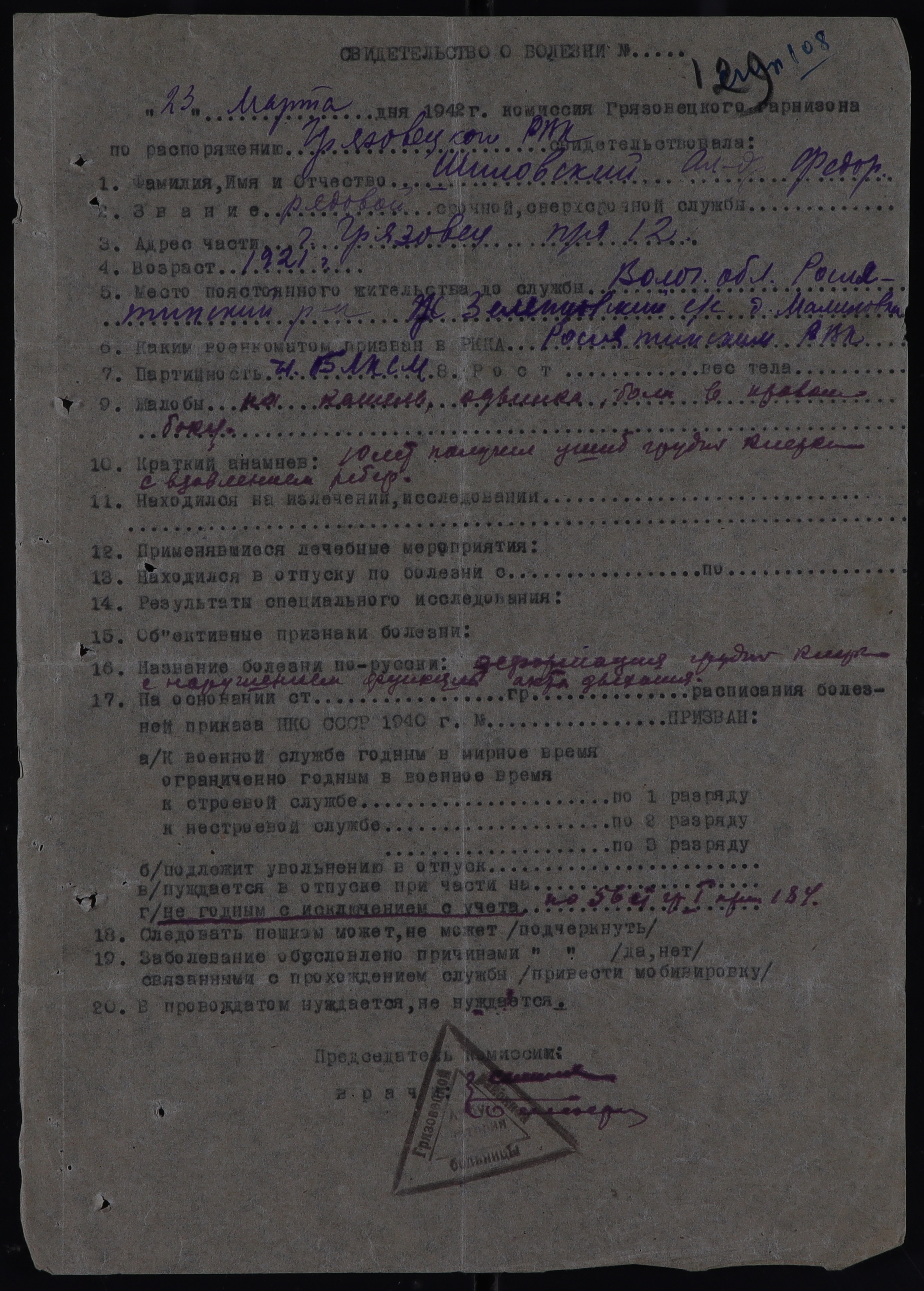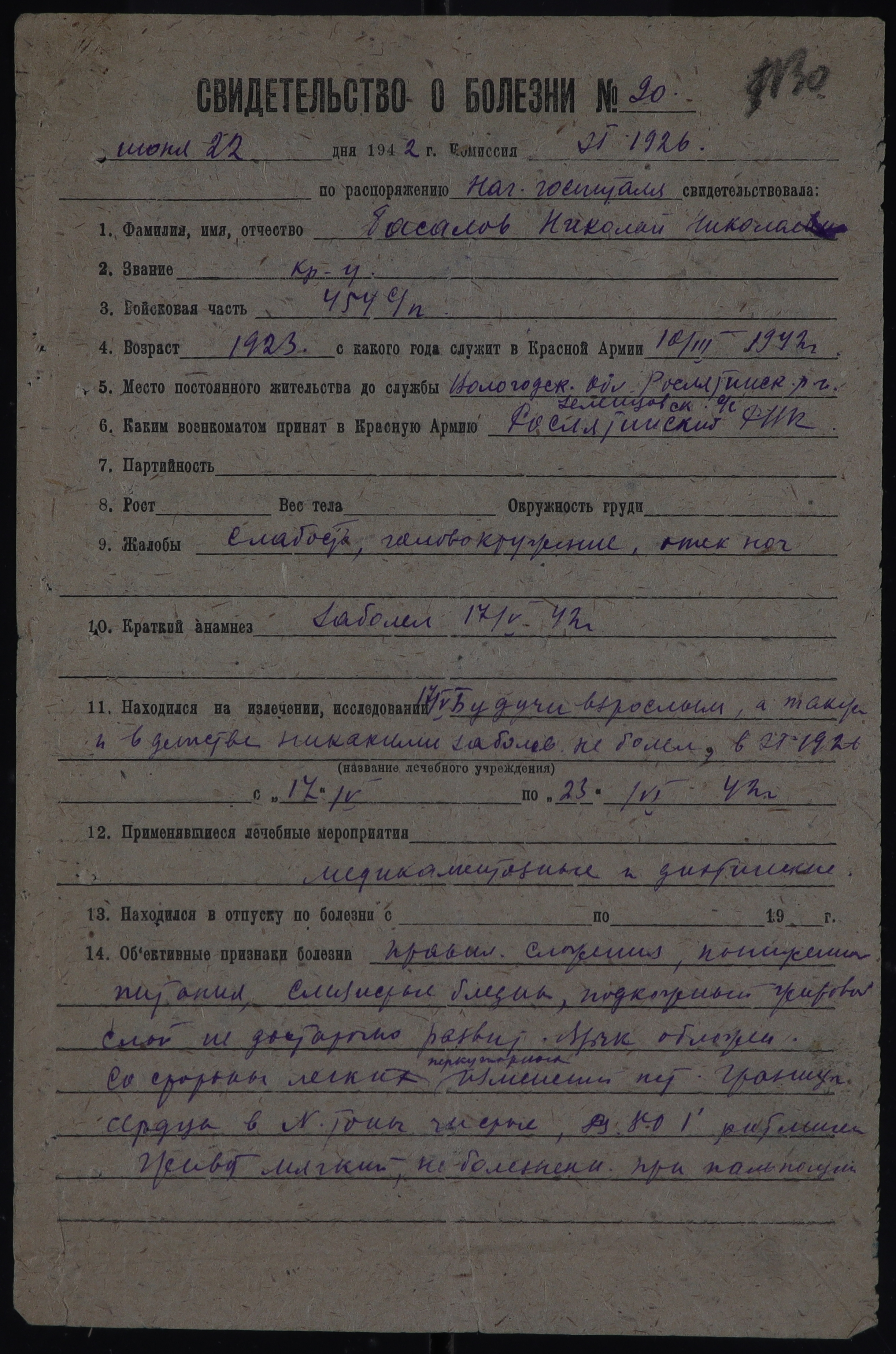 РОС_РВК_СВИДЕТЕЛЬСТВА О БОЛЕЗНИ_1942