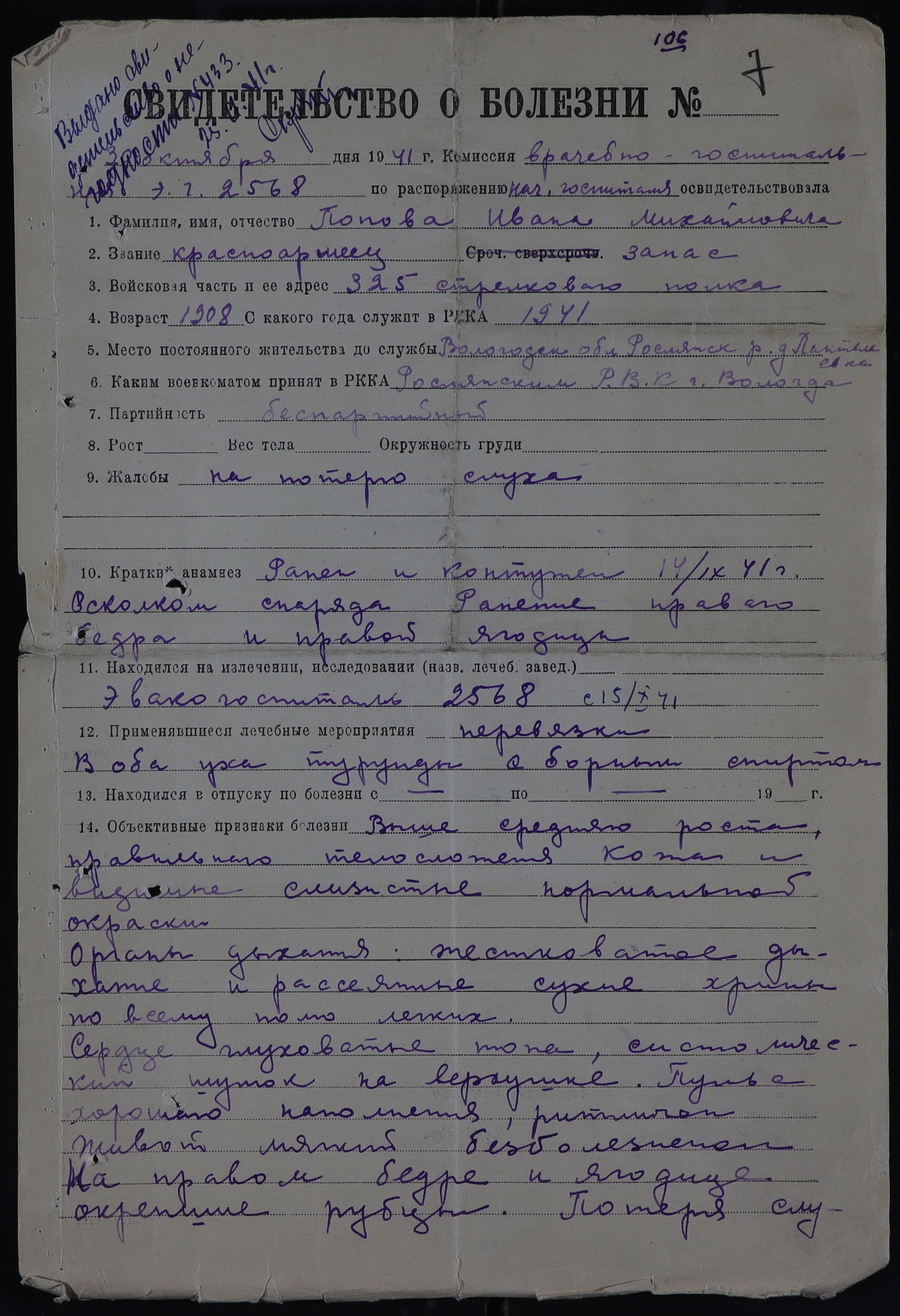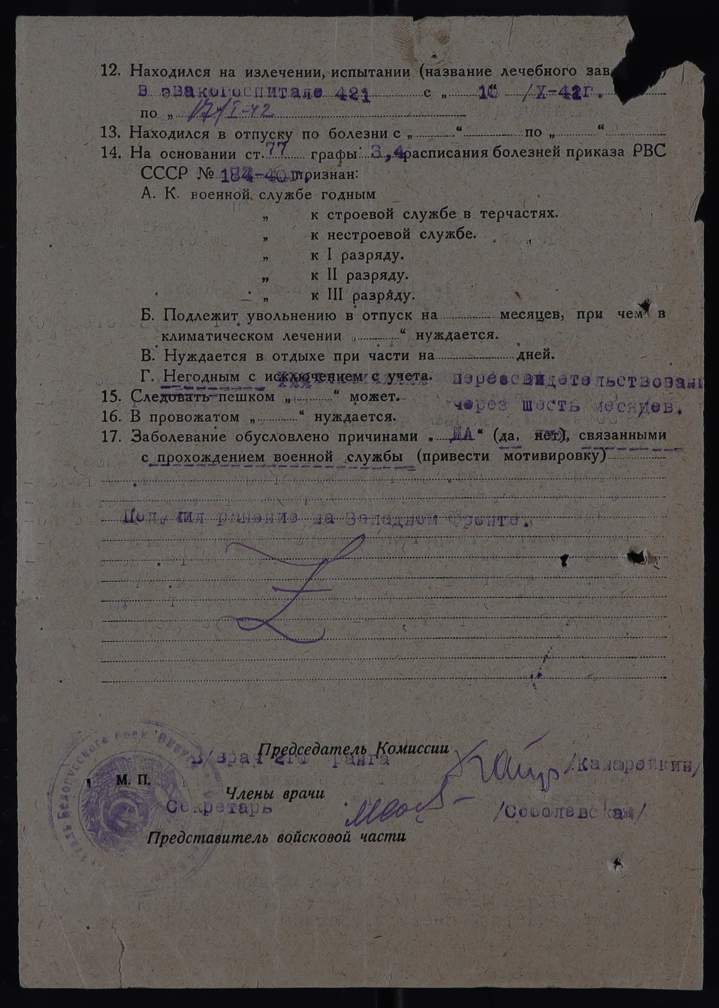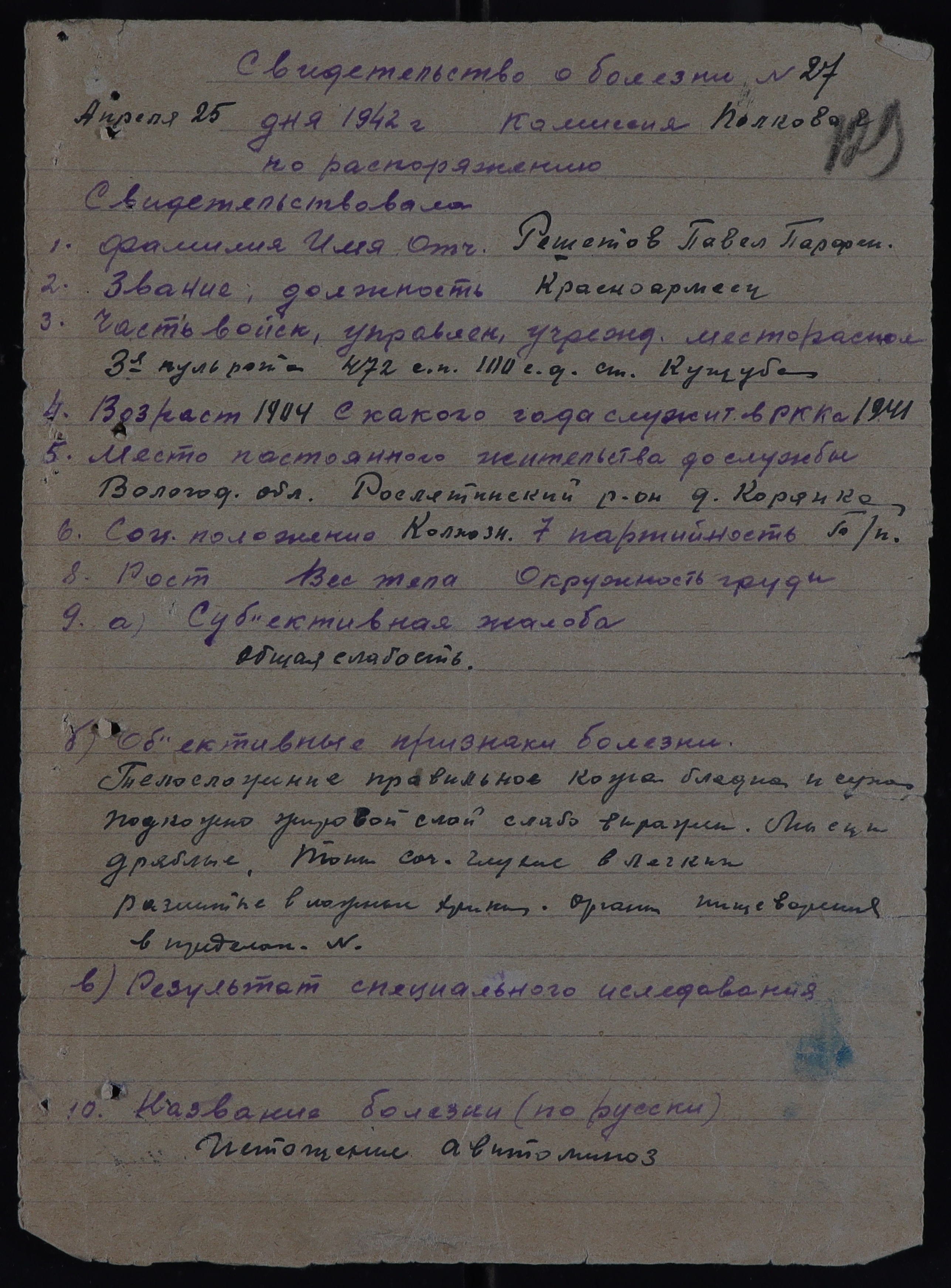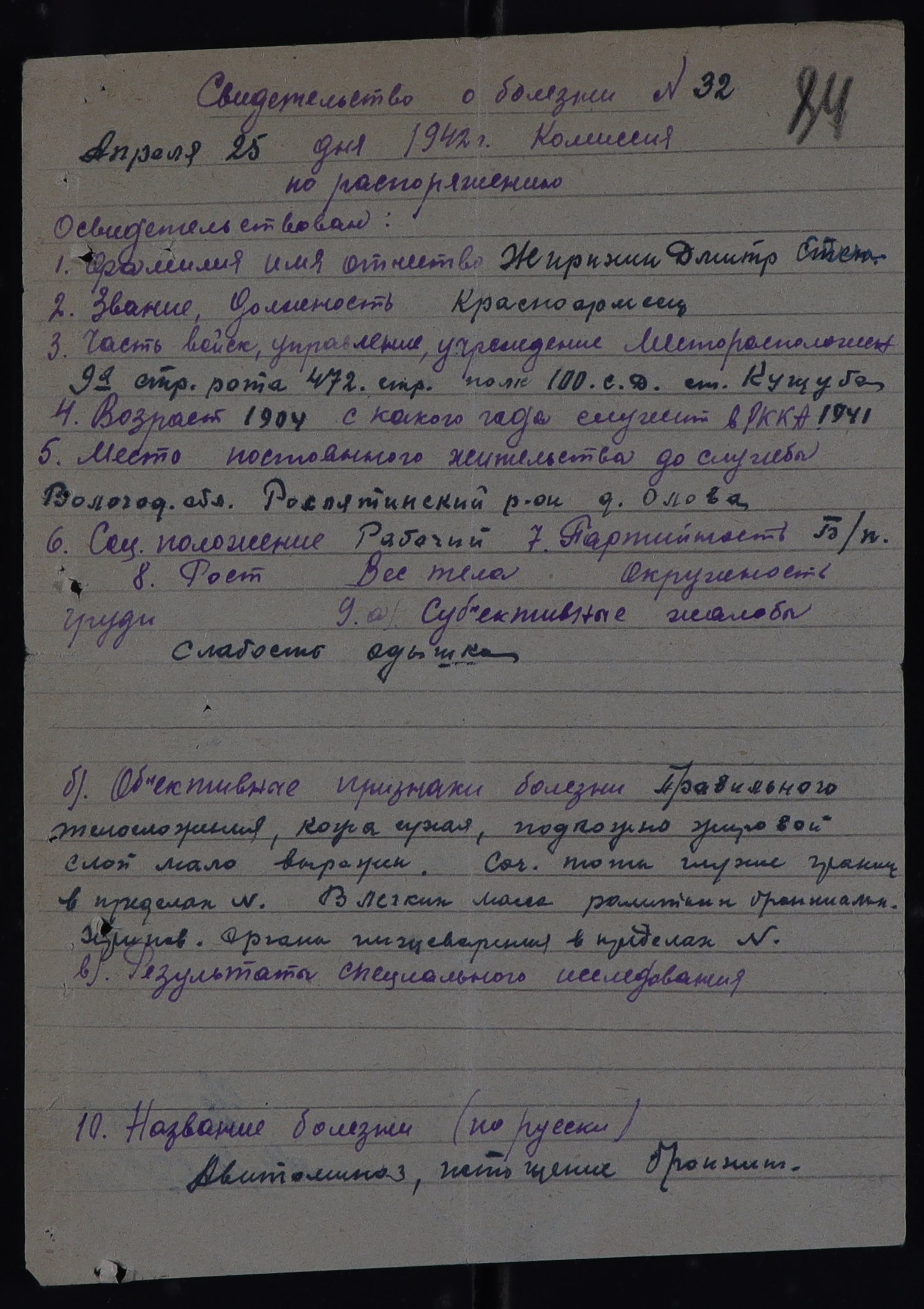 РОС_РВК_СВИДЕТЕЛЬСТВА О БОЛЕЗНИ_1942