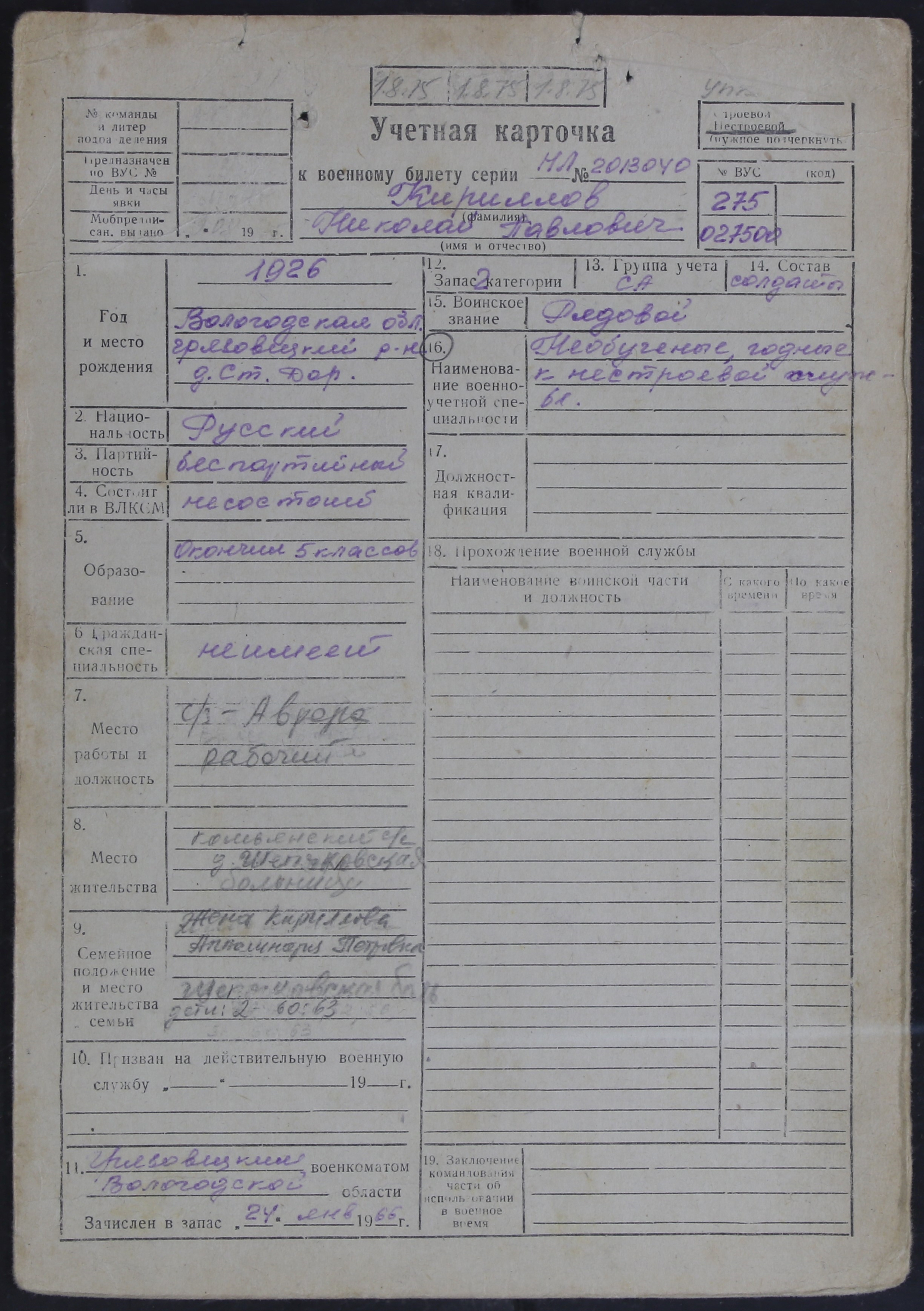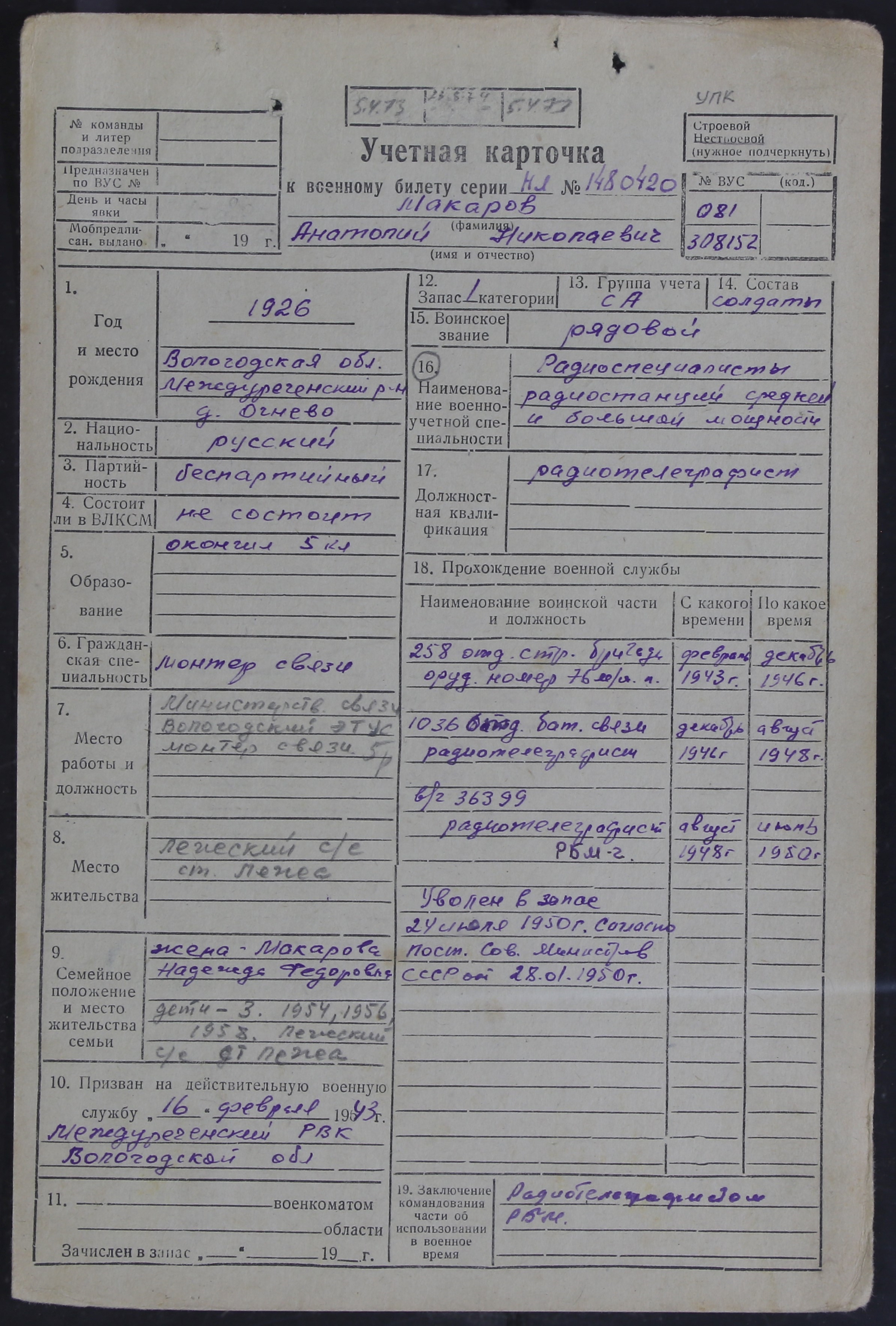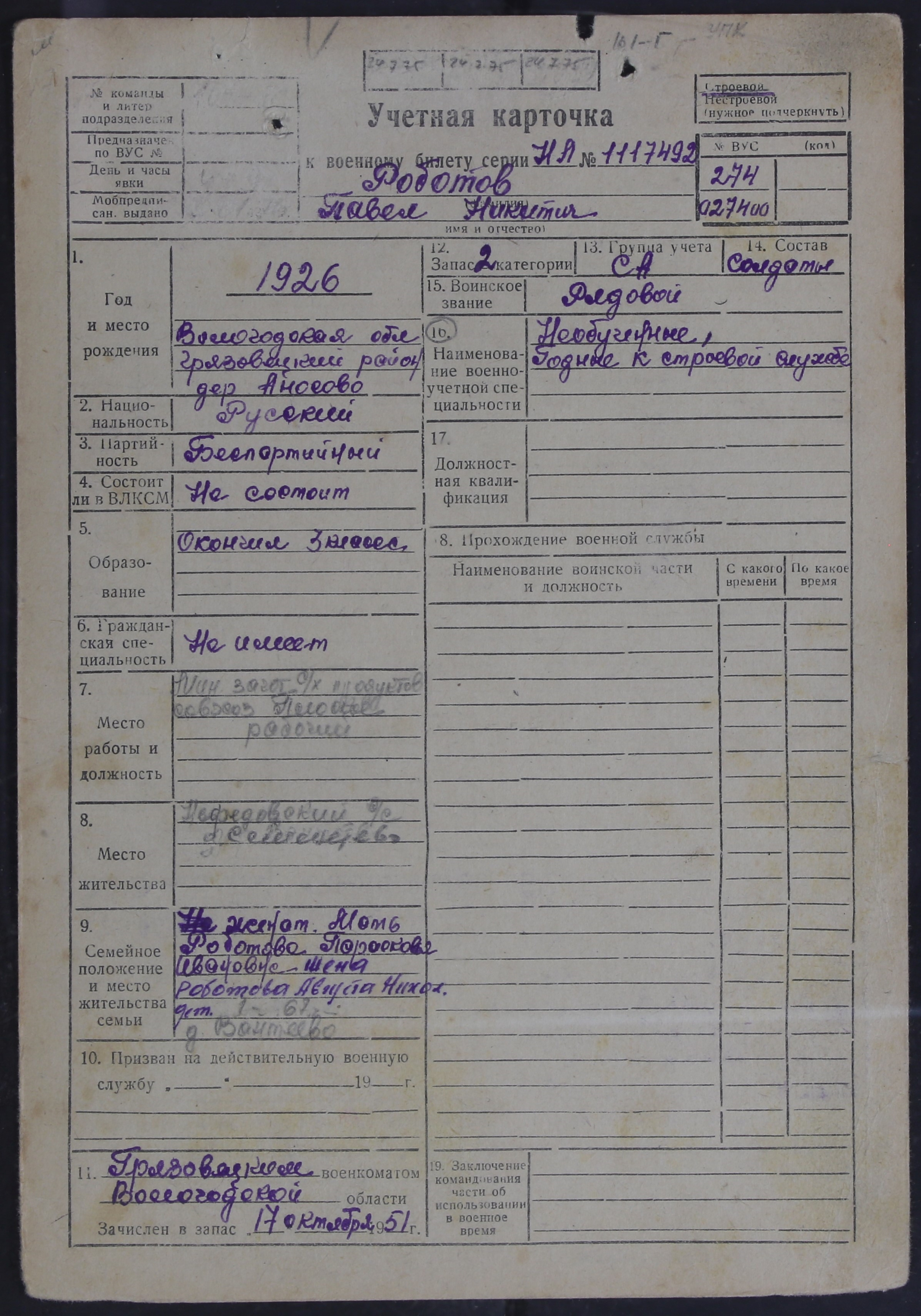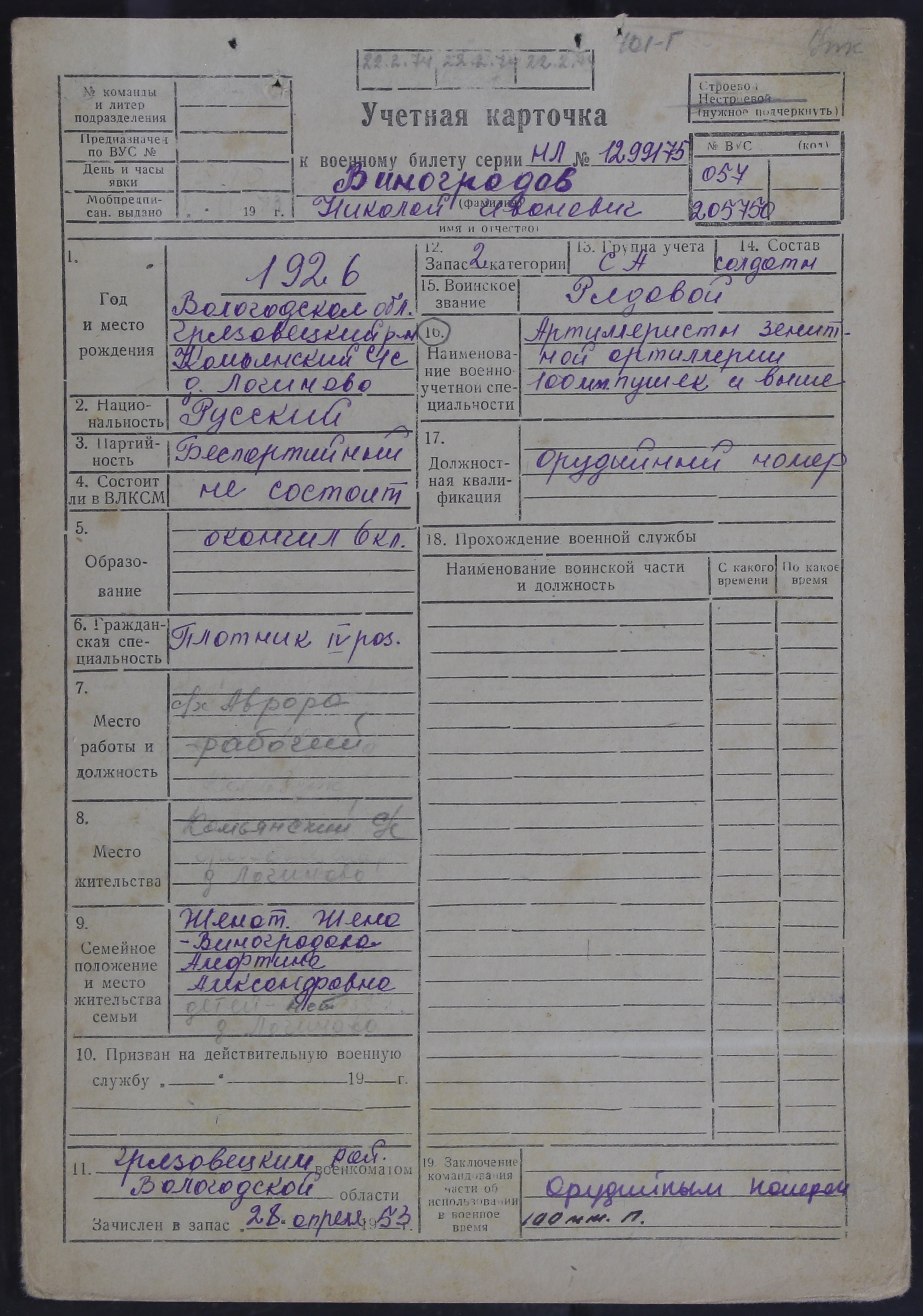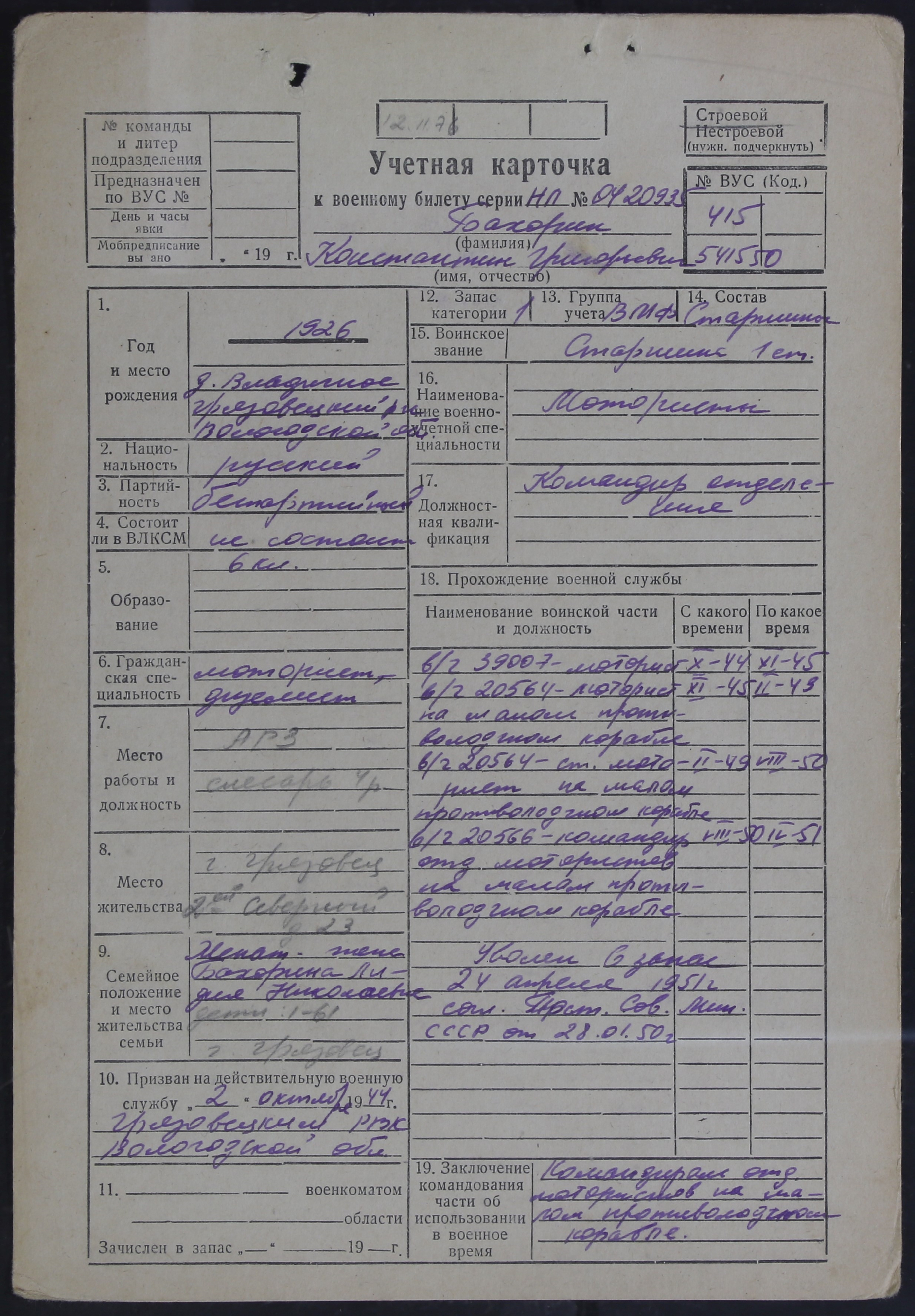 ЛЕЖ_РВК_УЧЕТНЫЕ КАРТОЧКИ_1926