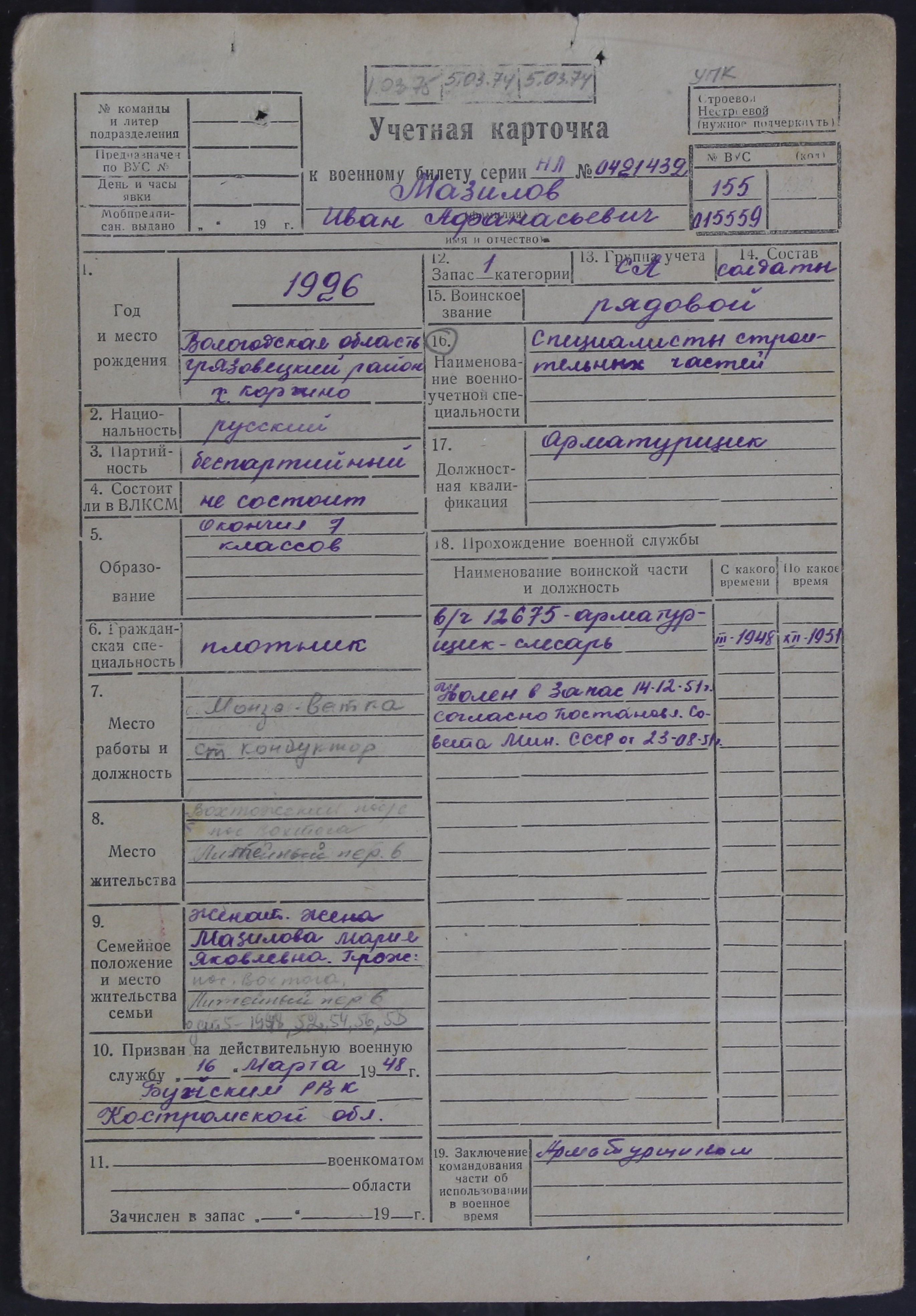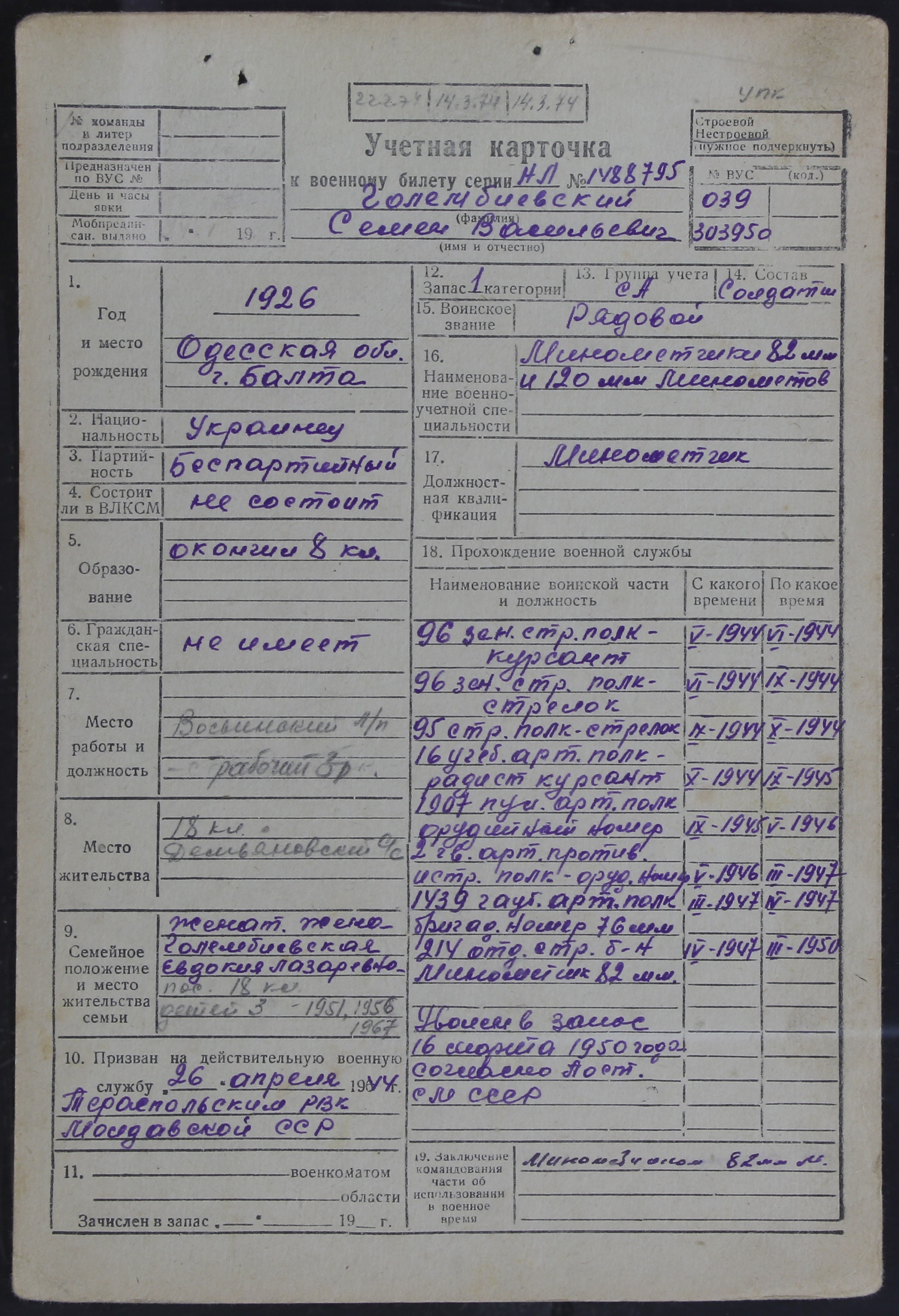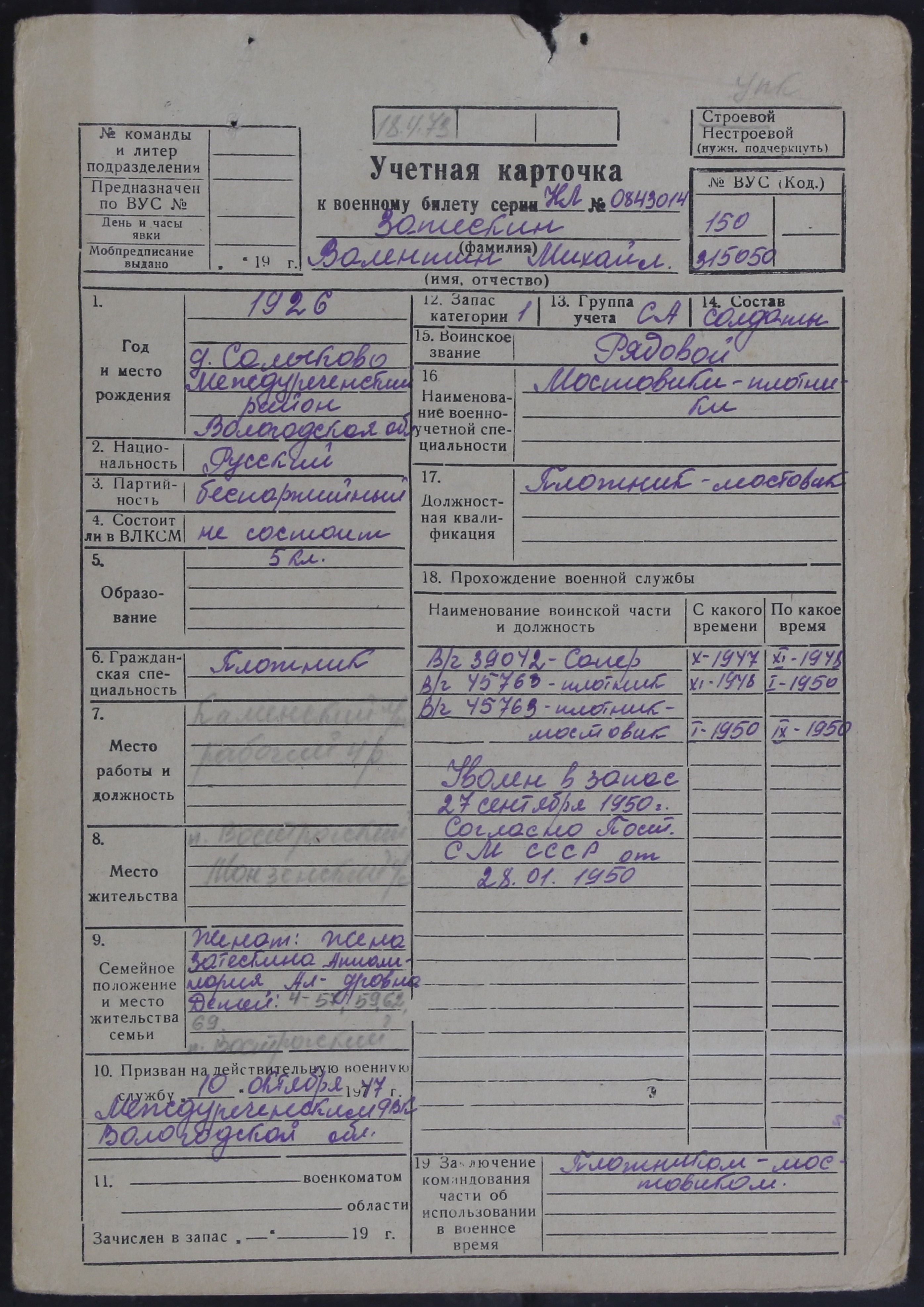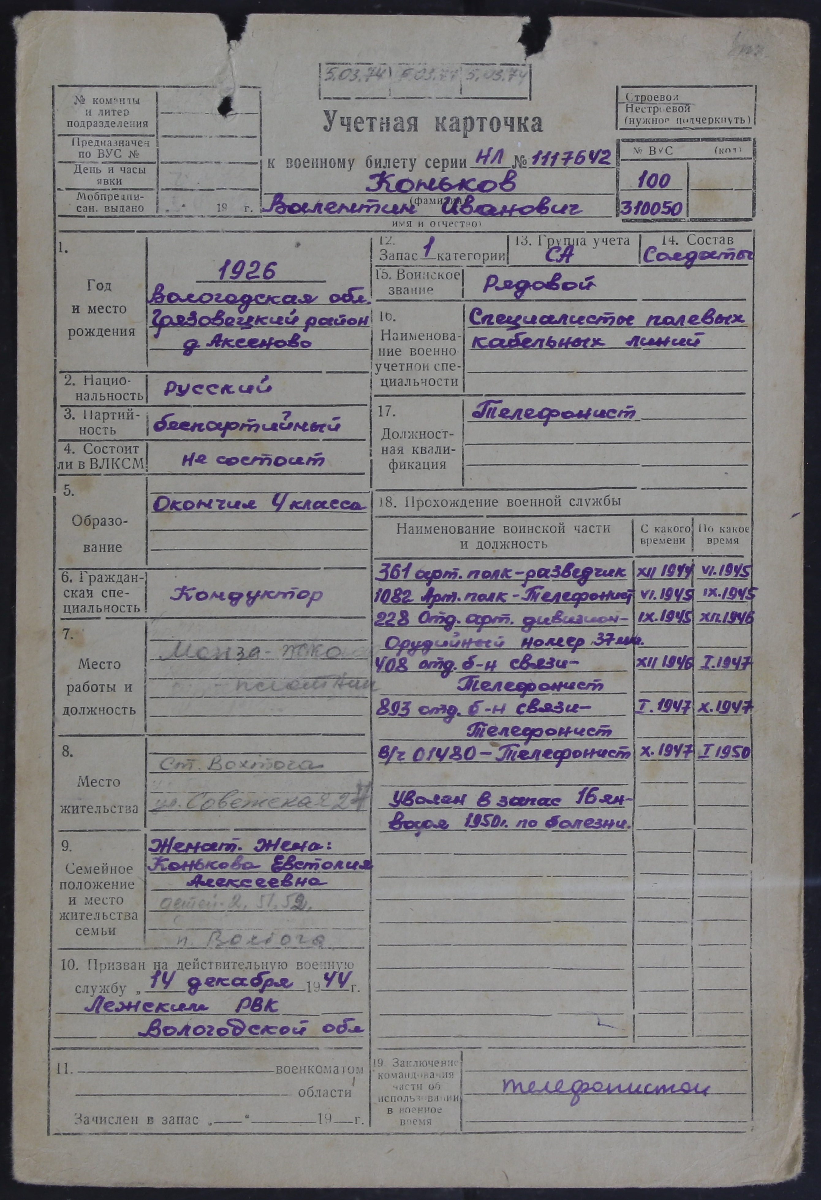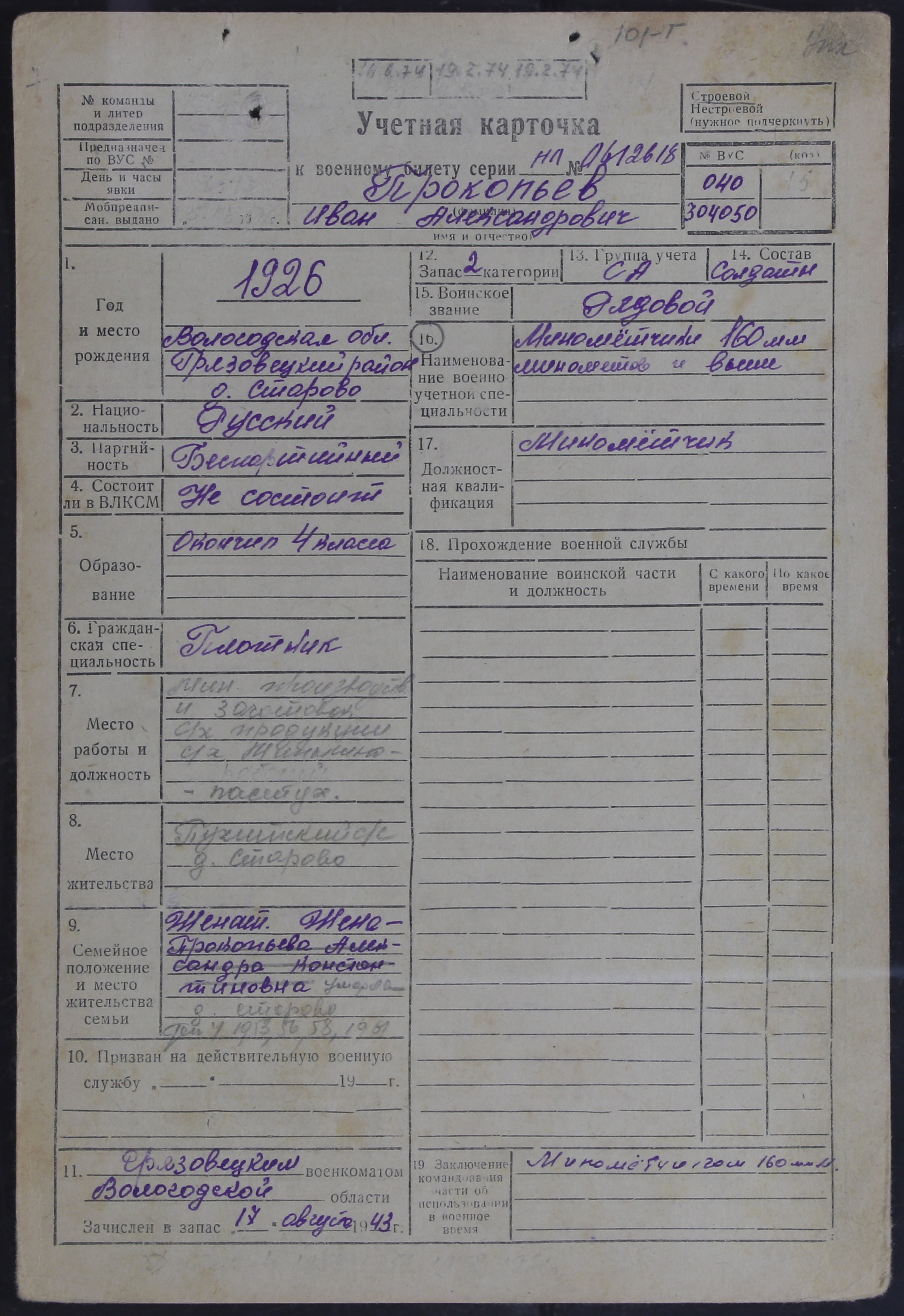 ЛЕЖ_РВК_УЧЕТНЫЕ КАРТОЧКИ_1926
