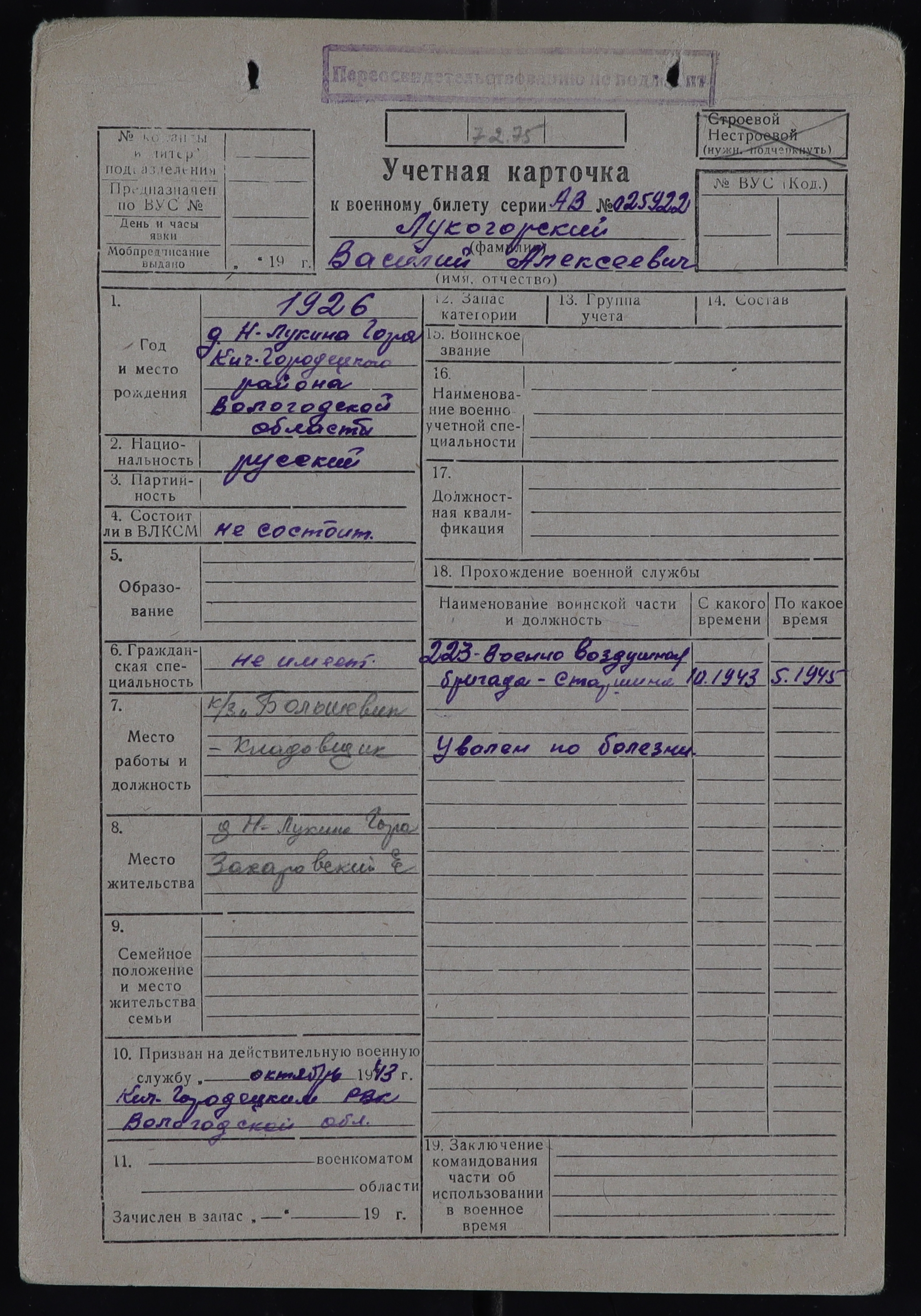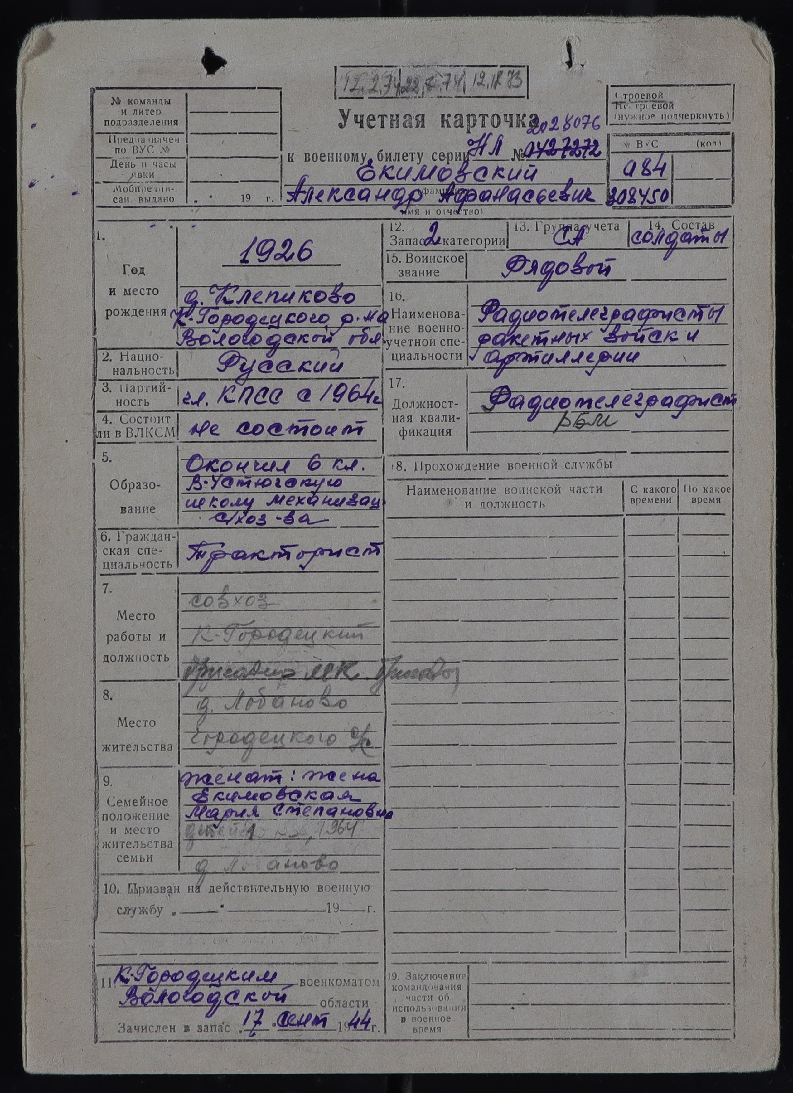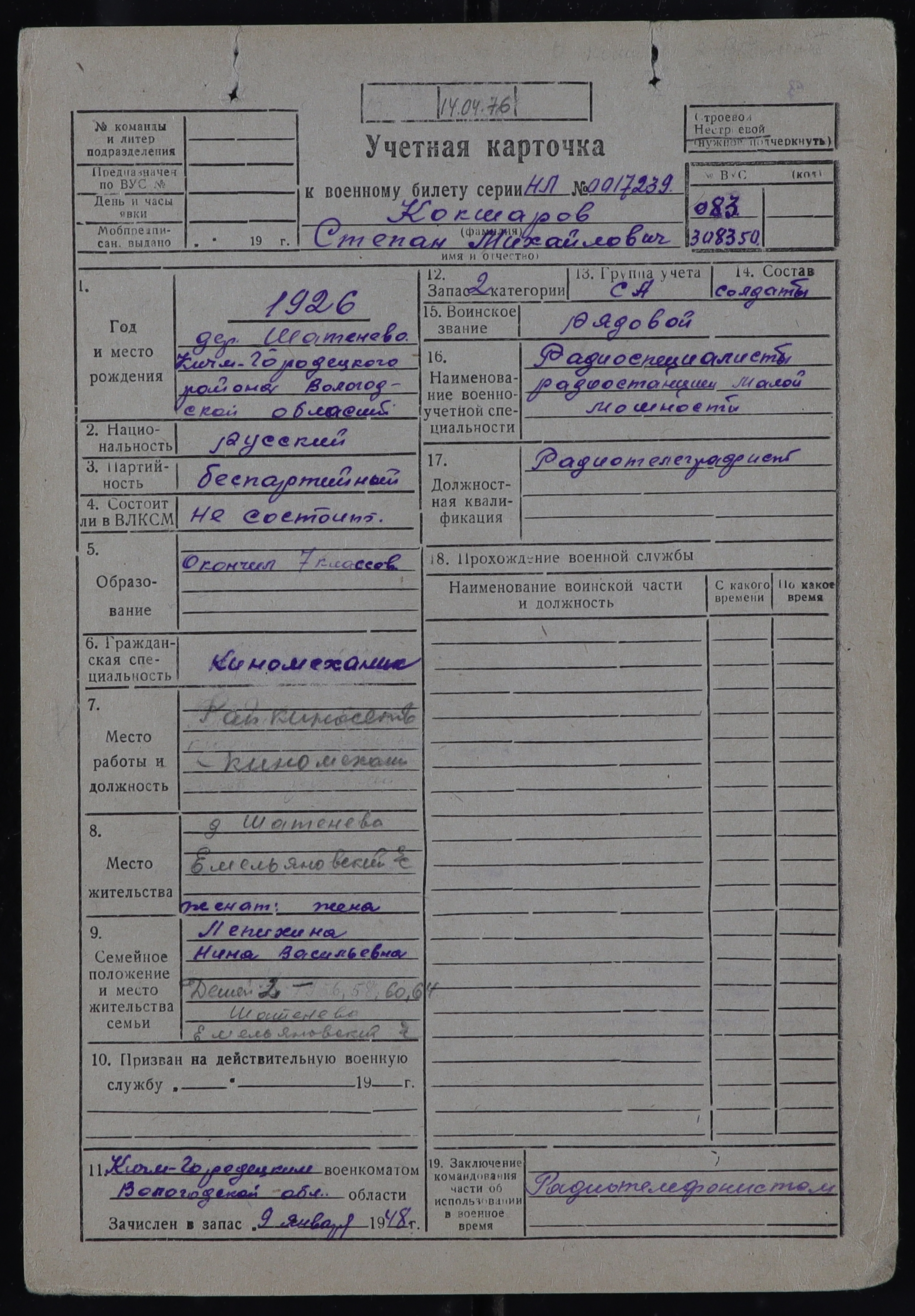 КИЧ-РВК_УЧЕТНЫЕ КАРТОЧКИ_1926