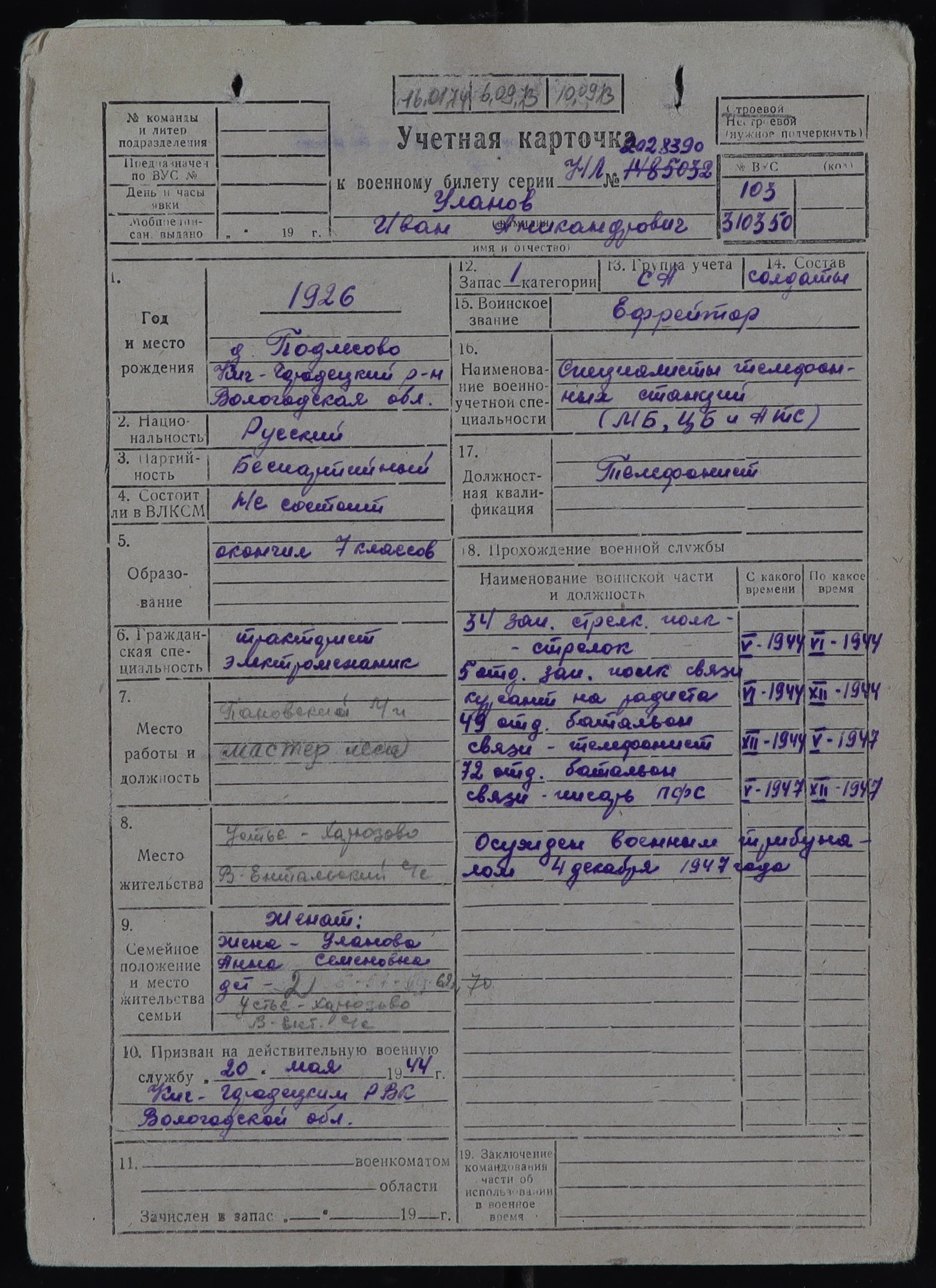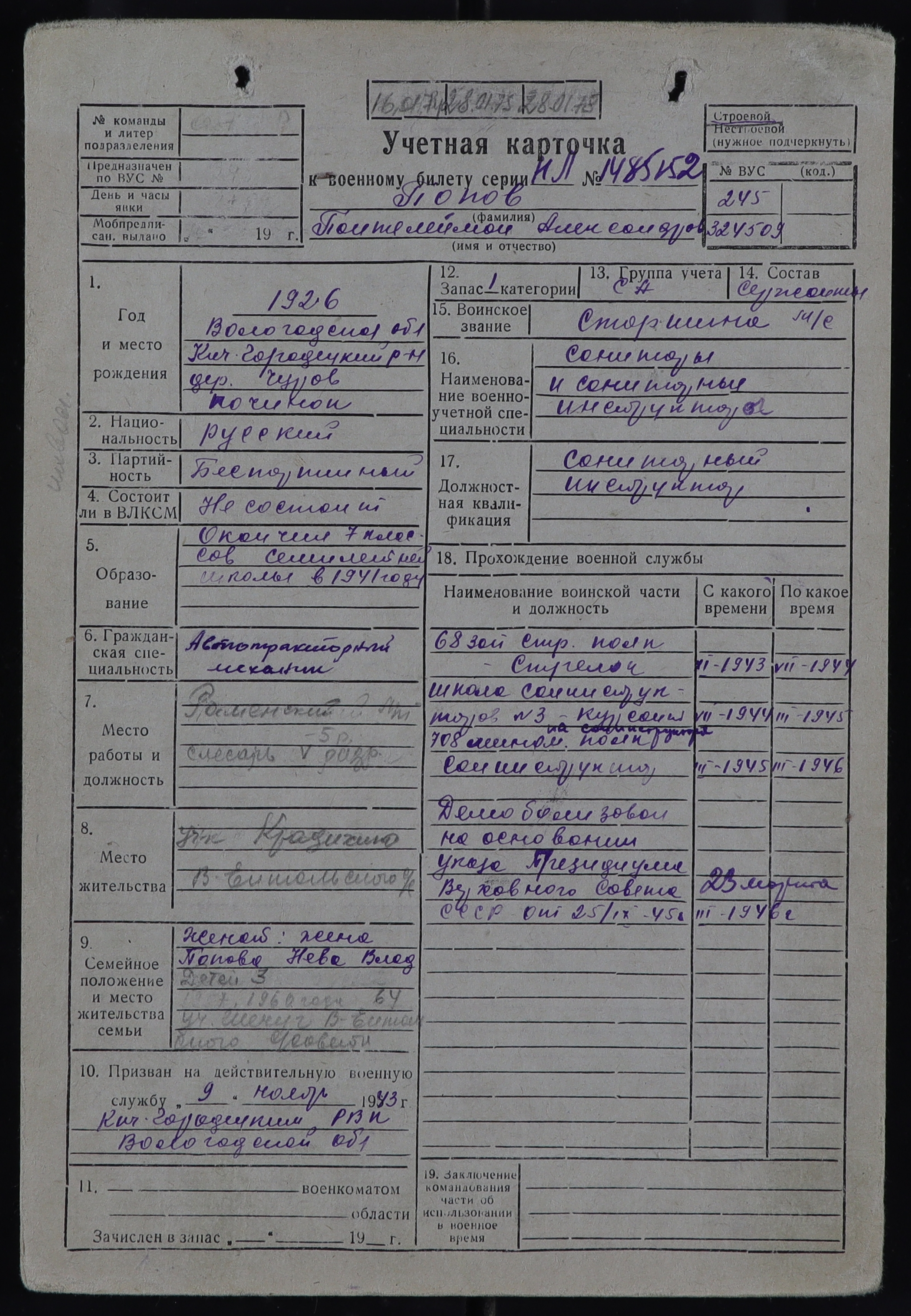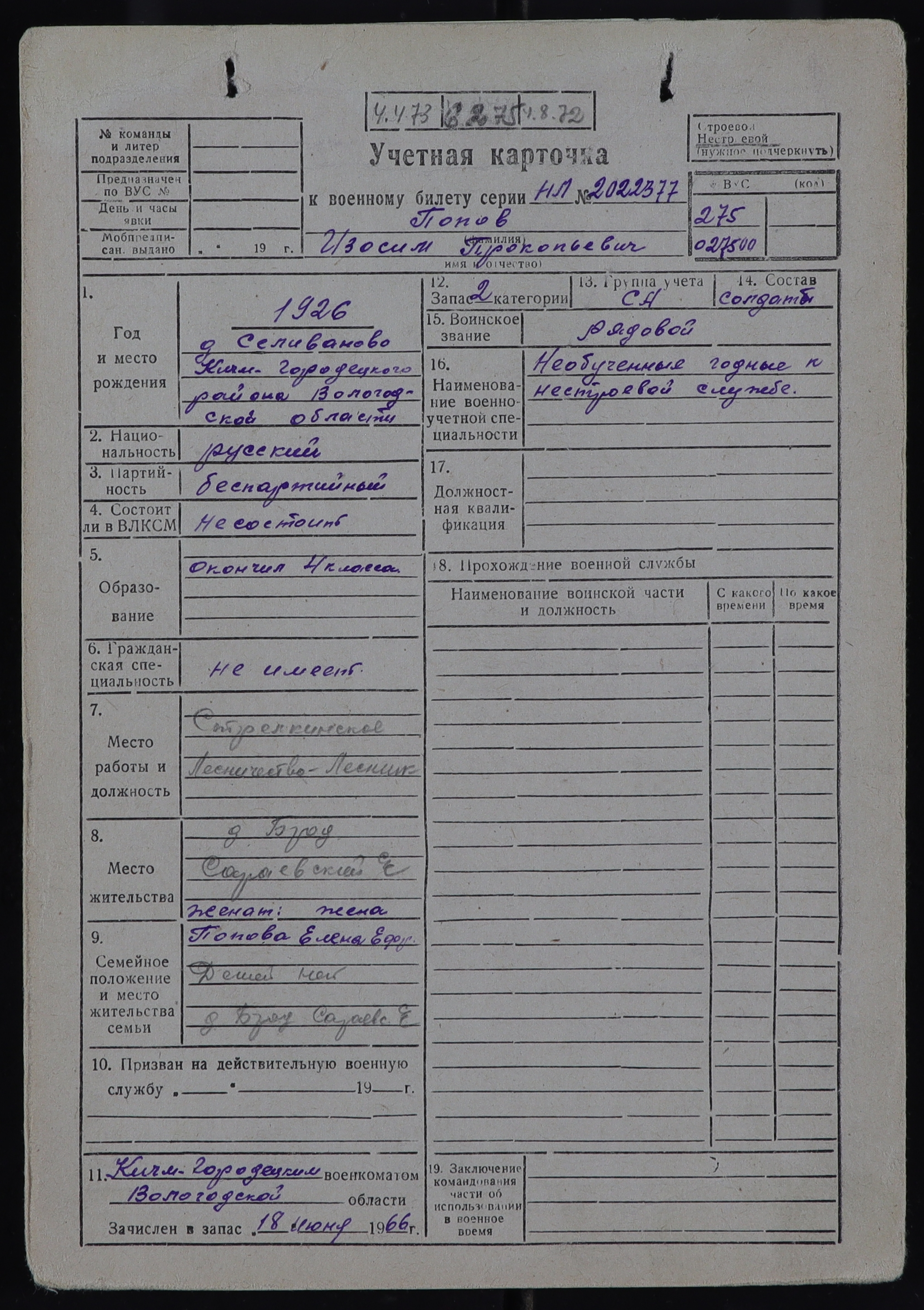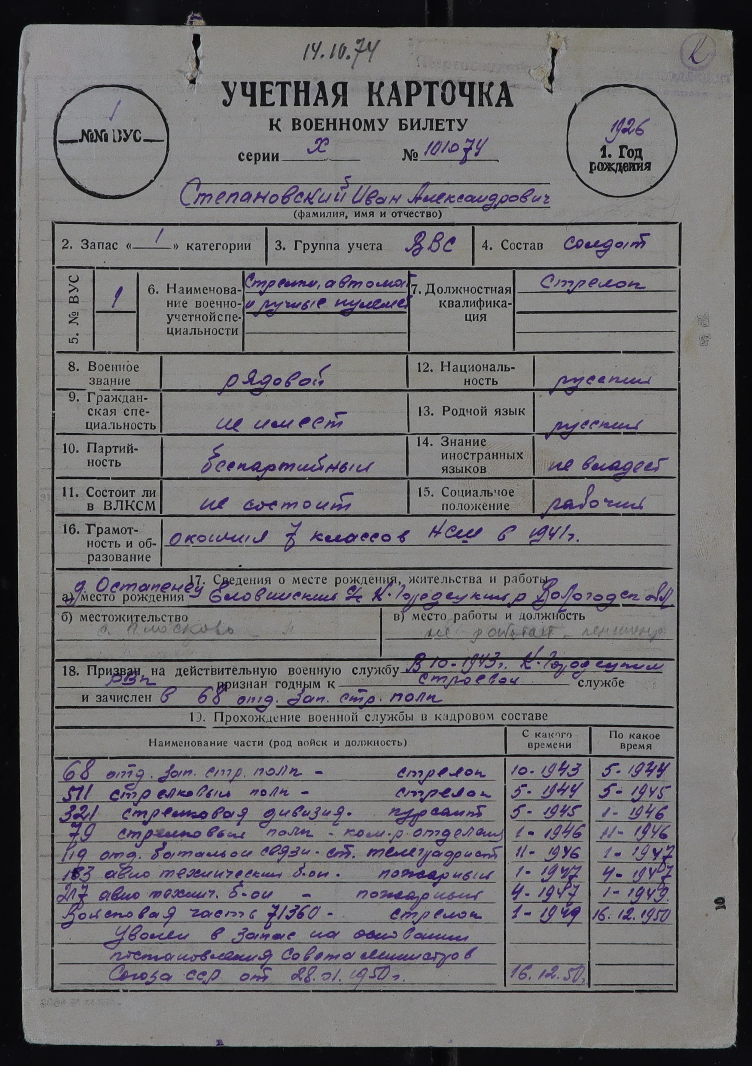 КИЧ-РВК_УЧЕТНЫЕ КАРТОЧКИ_1926