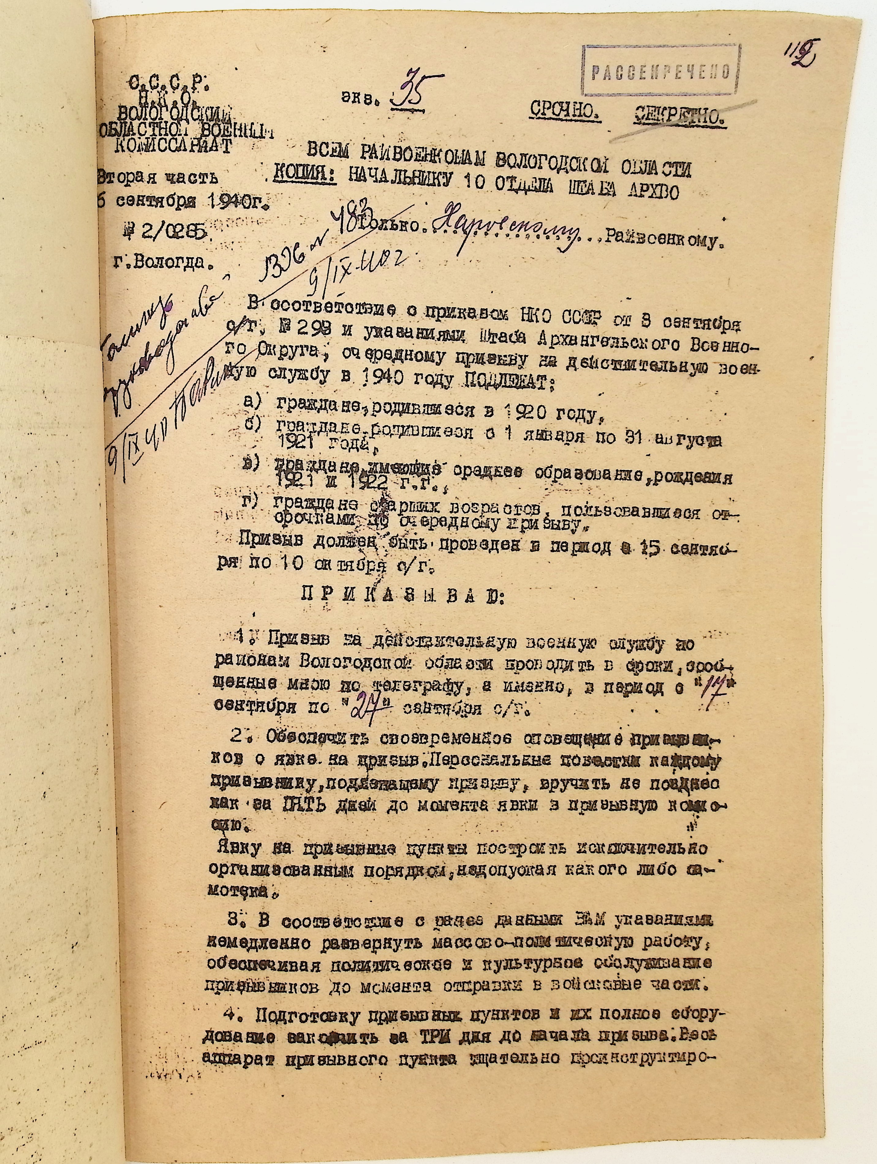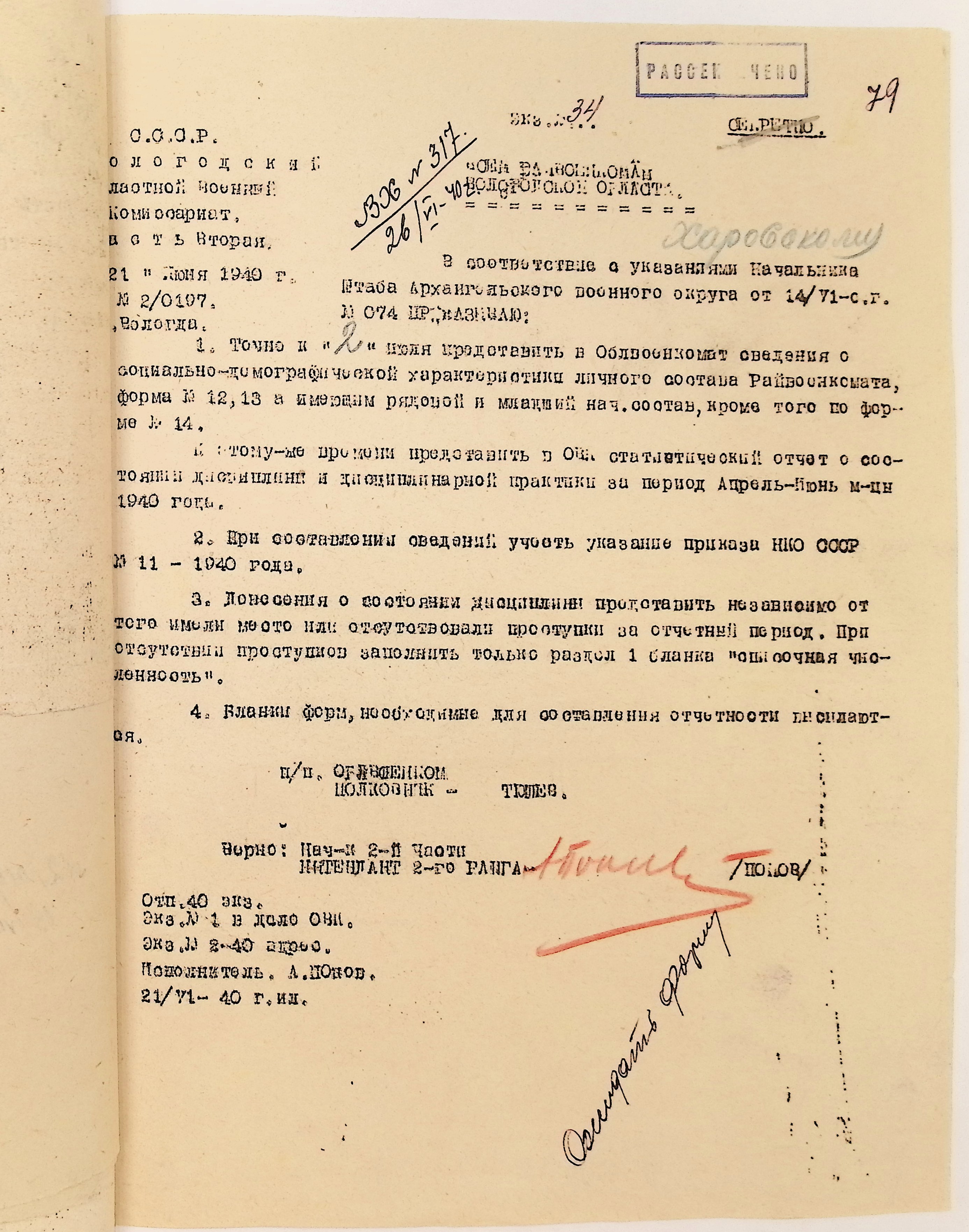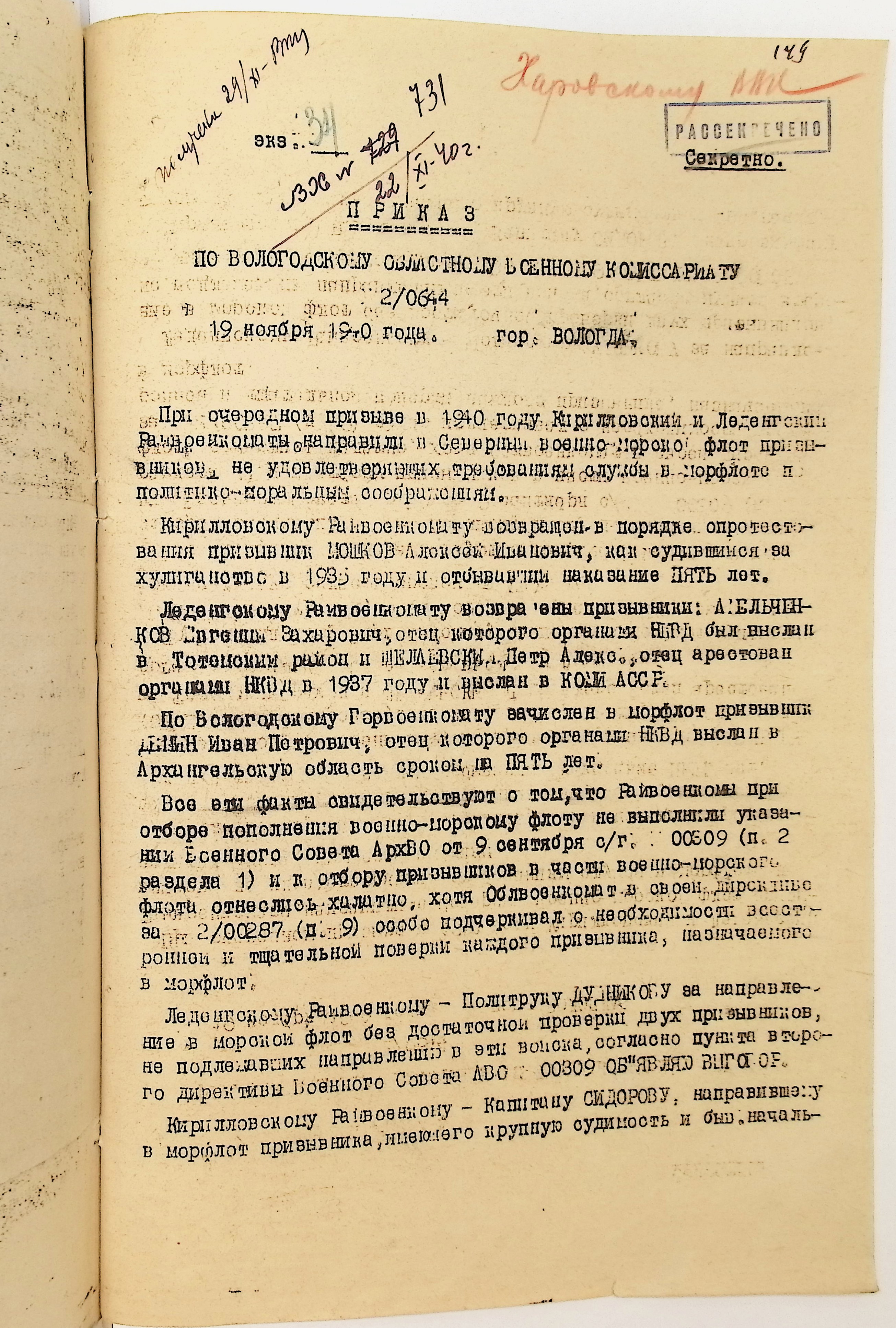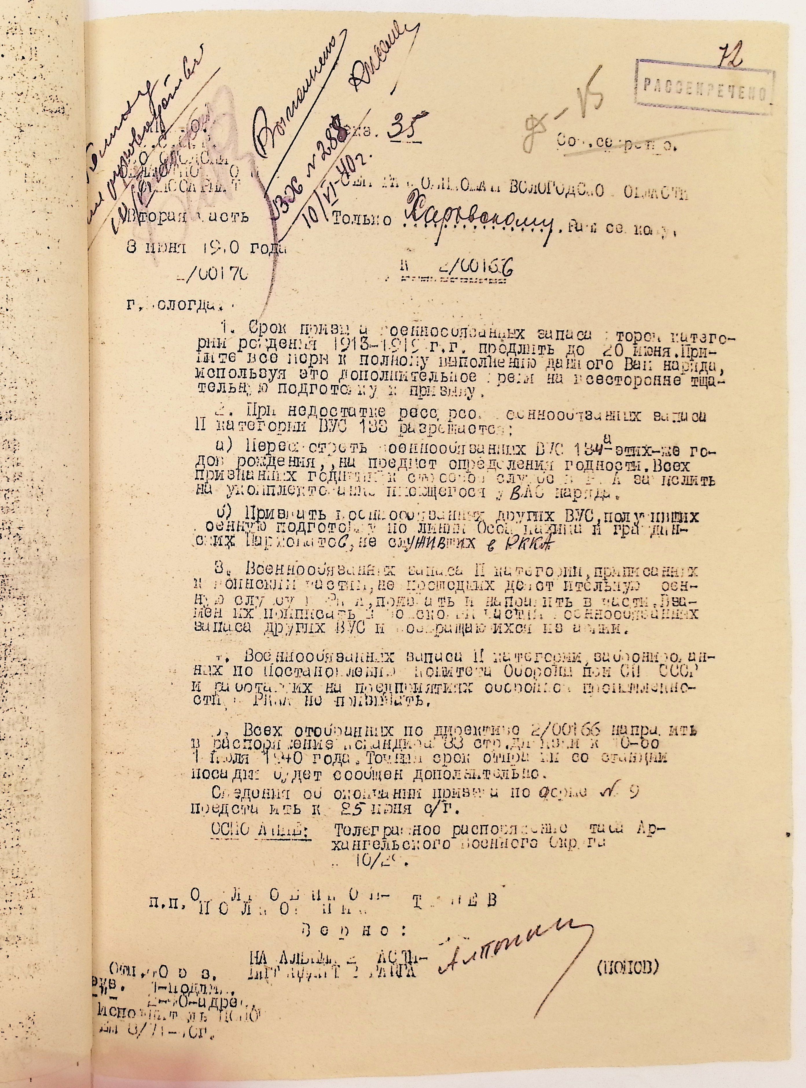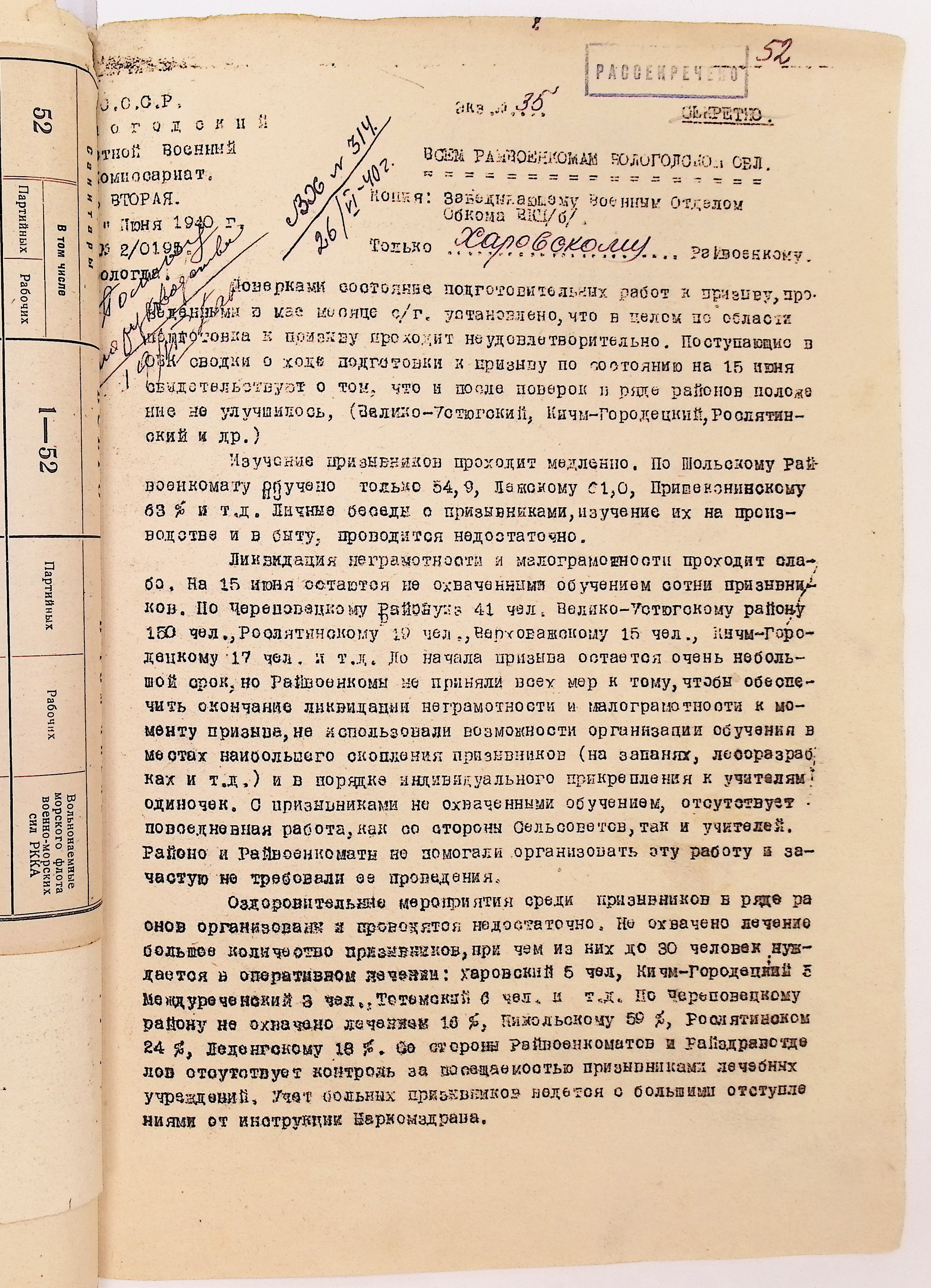 Руководящие указания по призыву. Харовский РВК (ГАВО. Ф. 1795 Оп. 1 Д. 7)