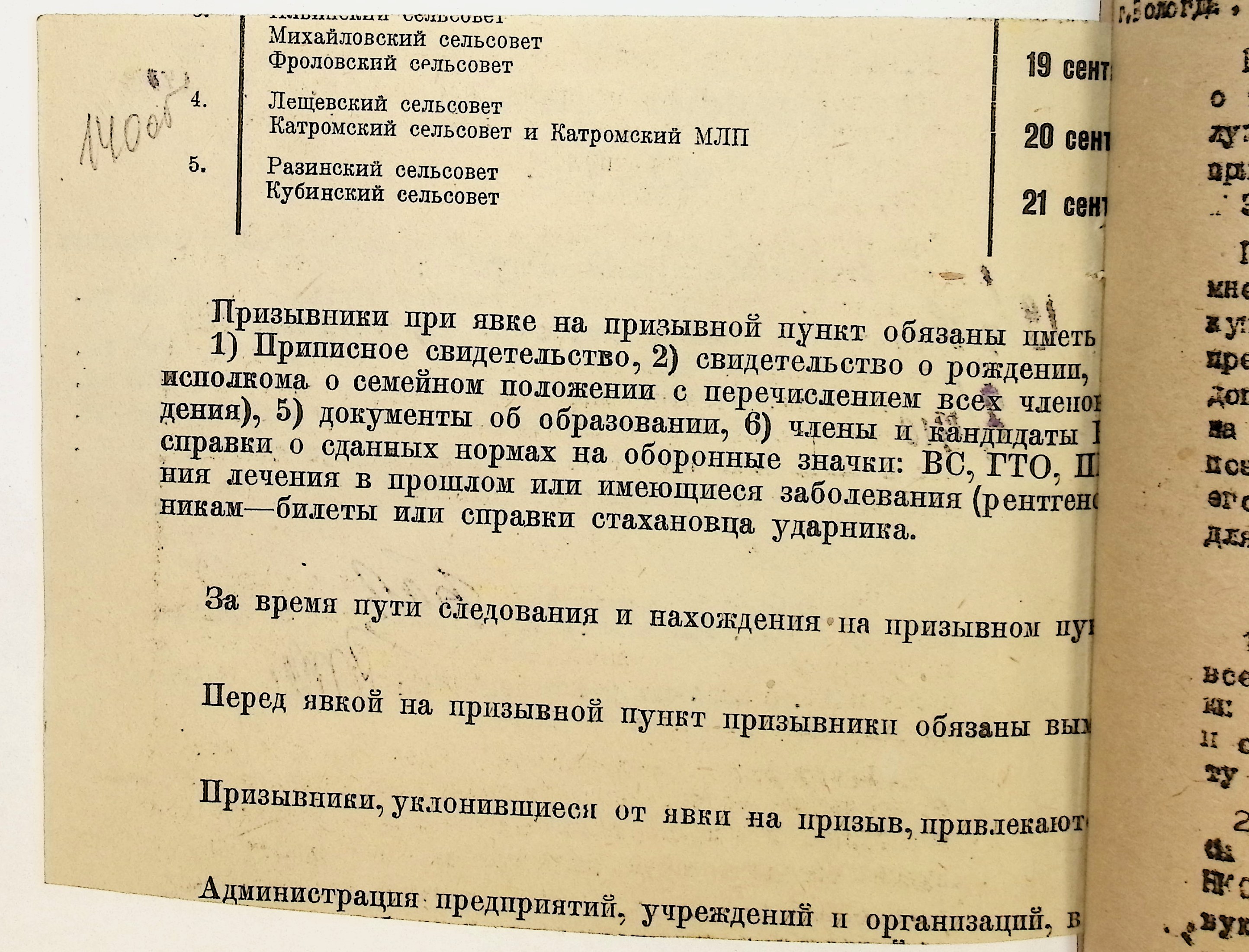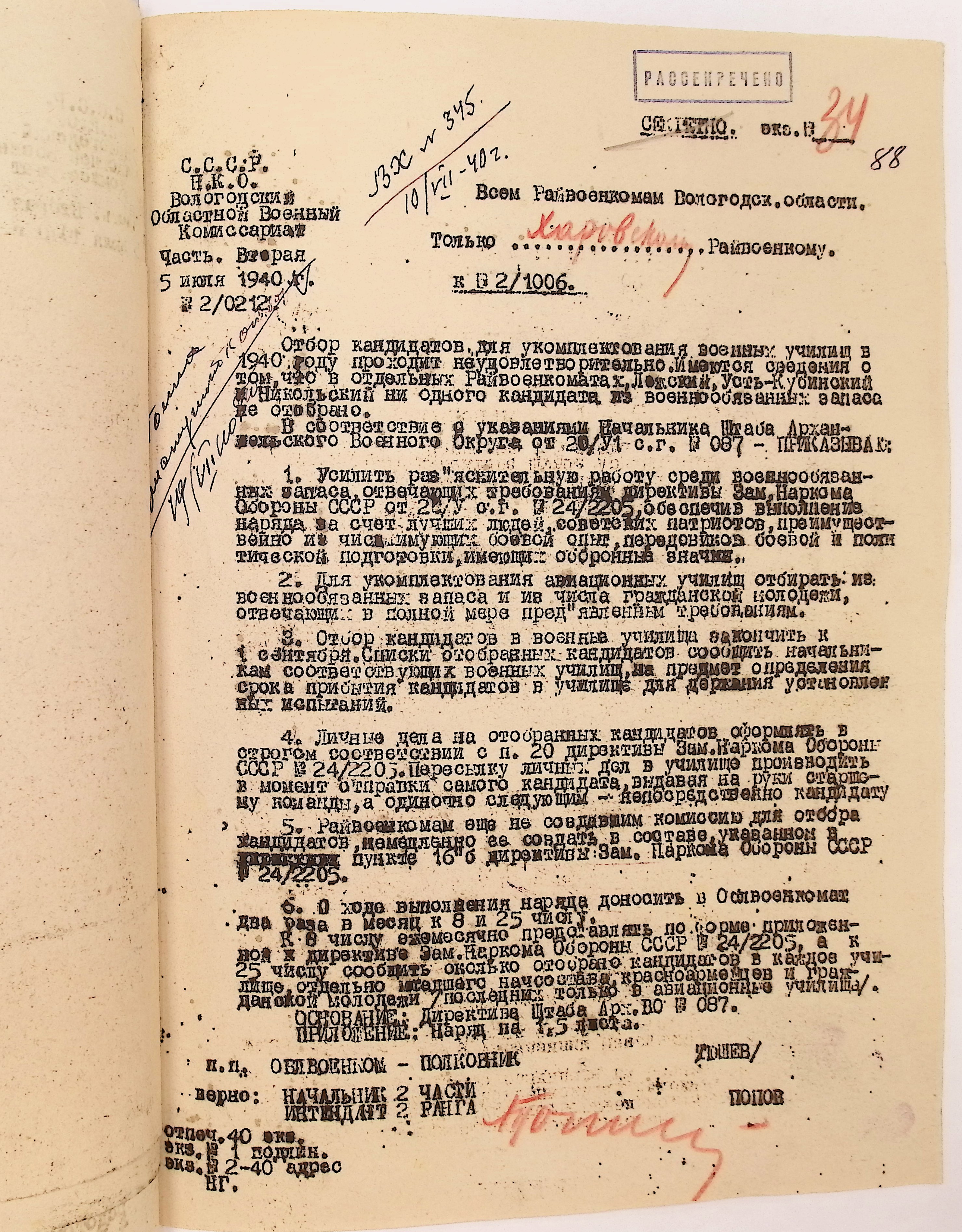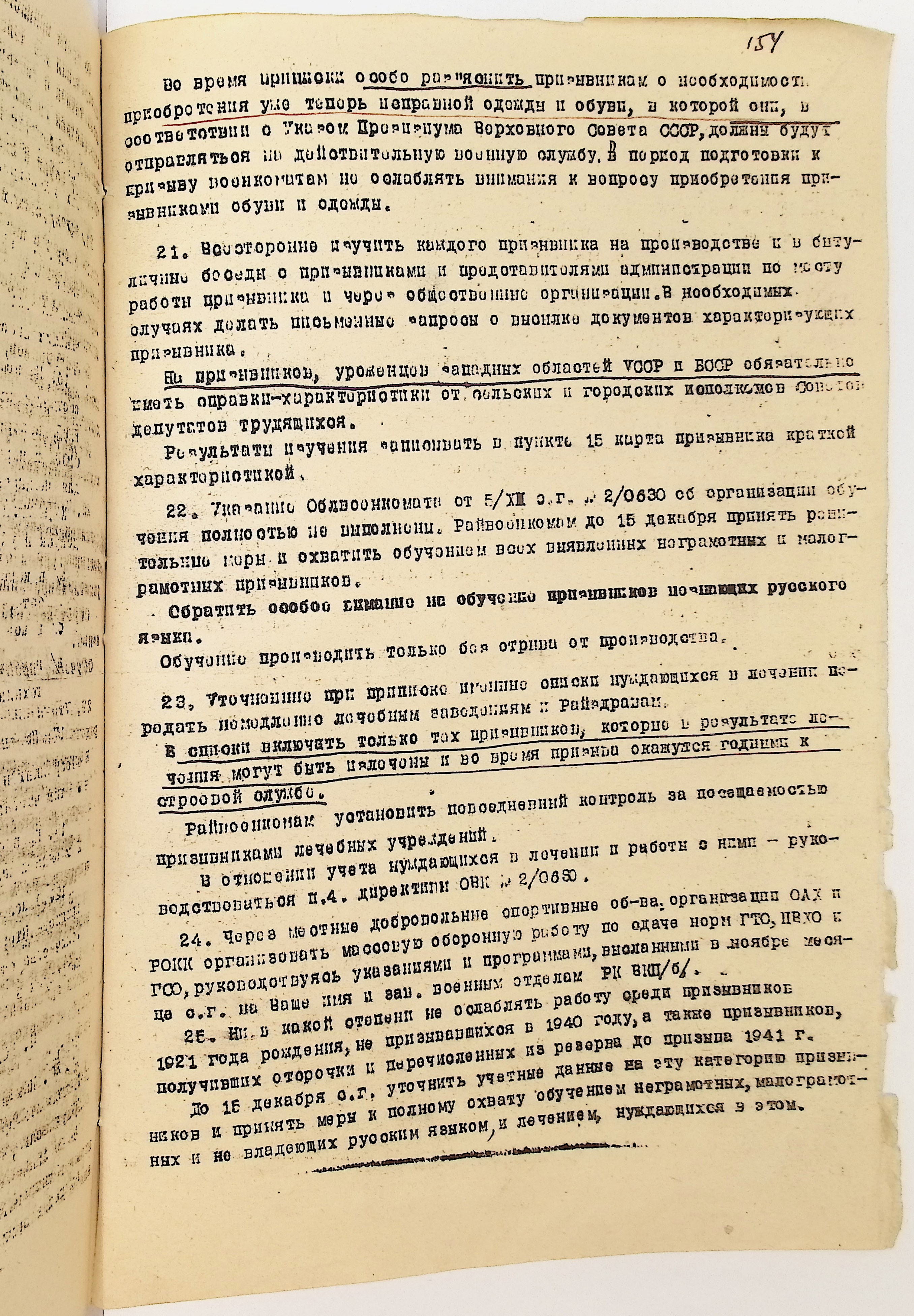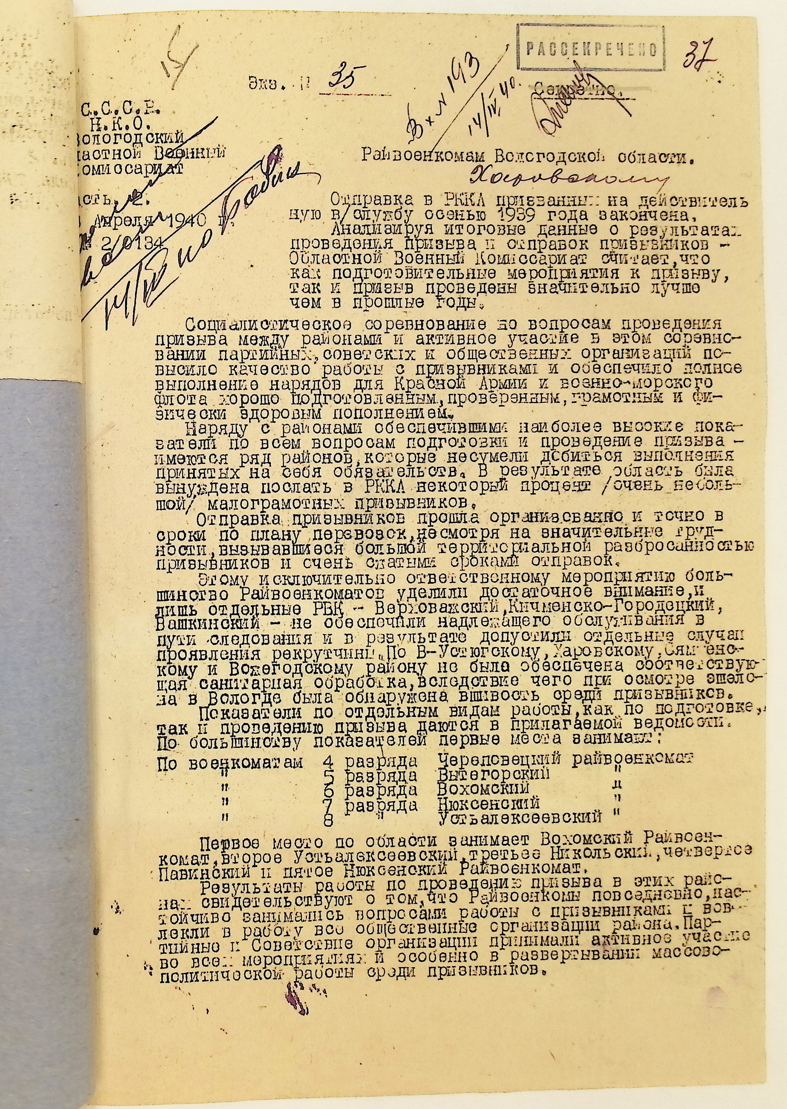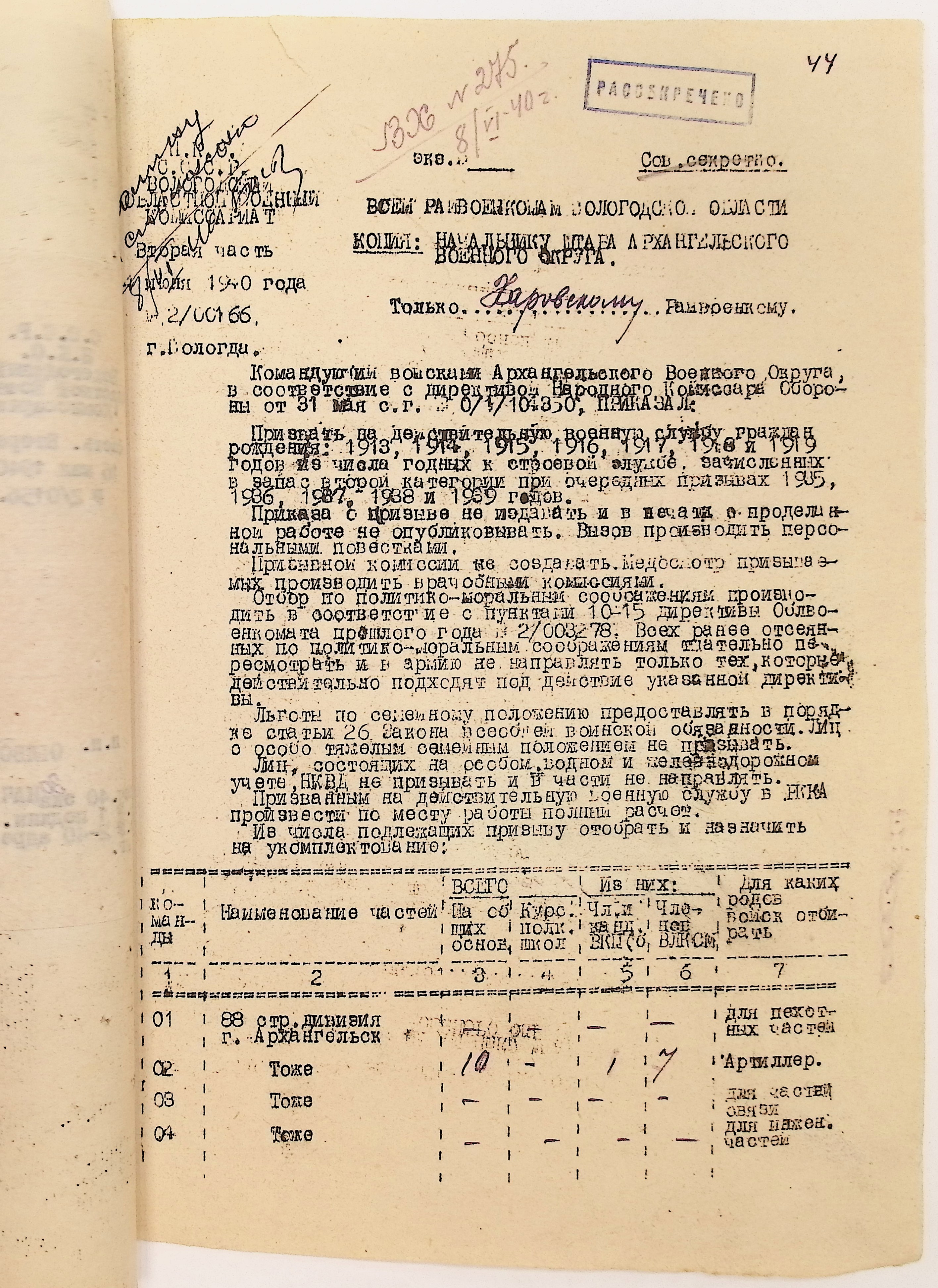 Руководящие указания по призыву. Харовский РВК (ГАВО. Ф. 1795 Оп. 1 Д. 7)