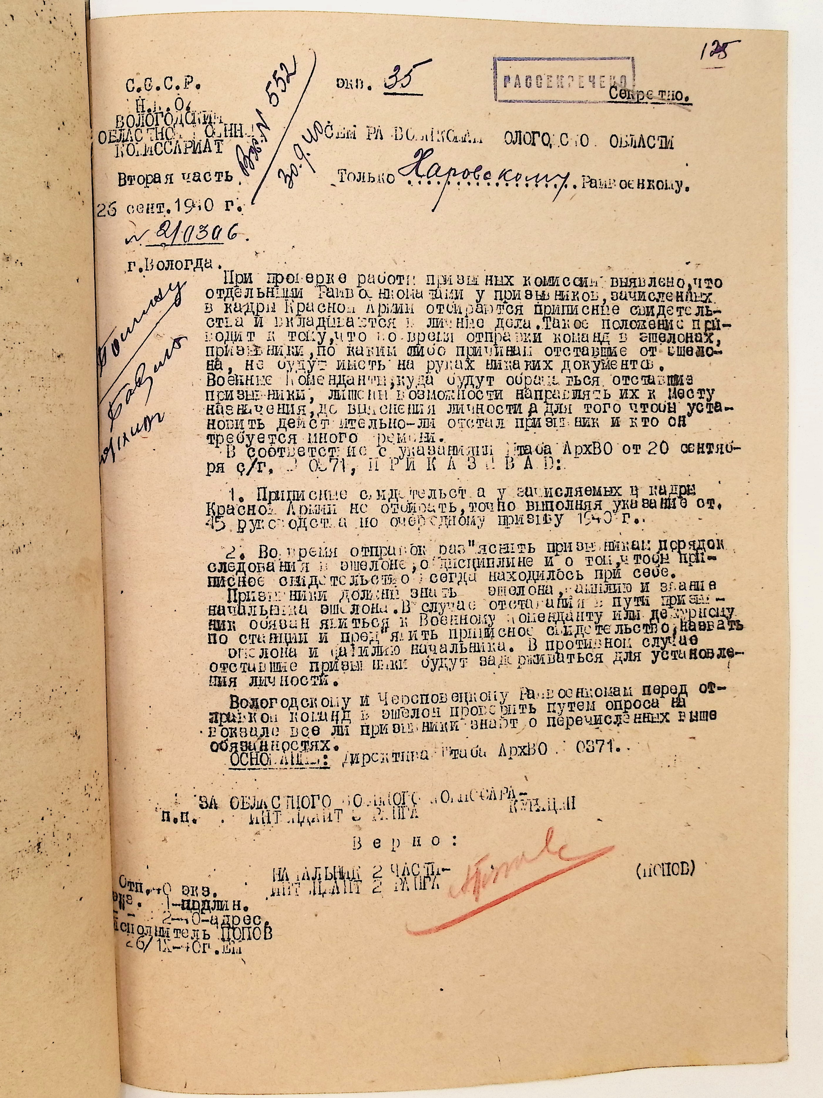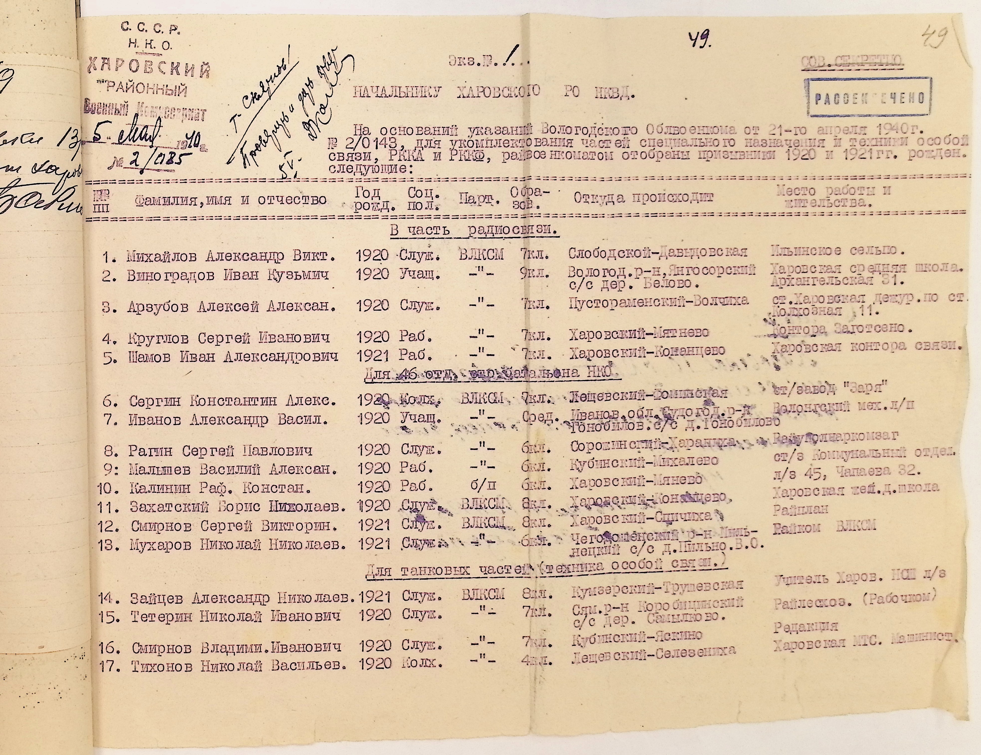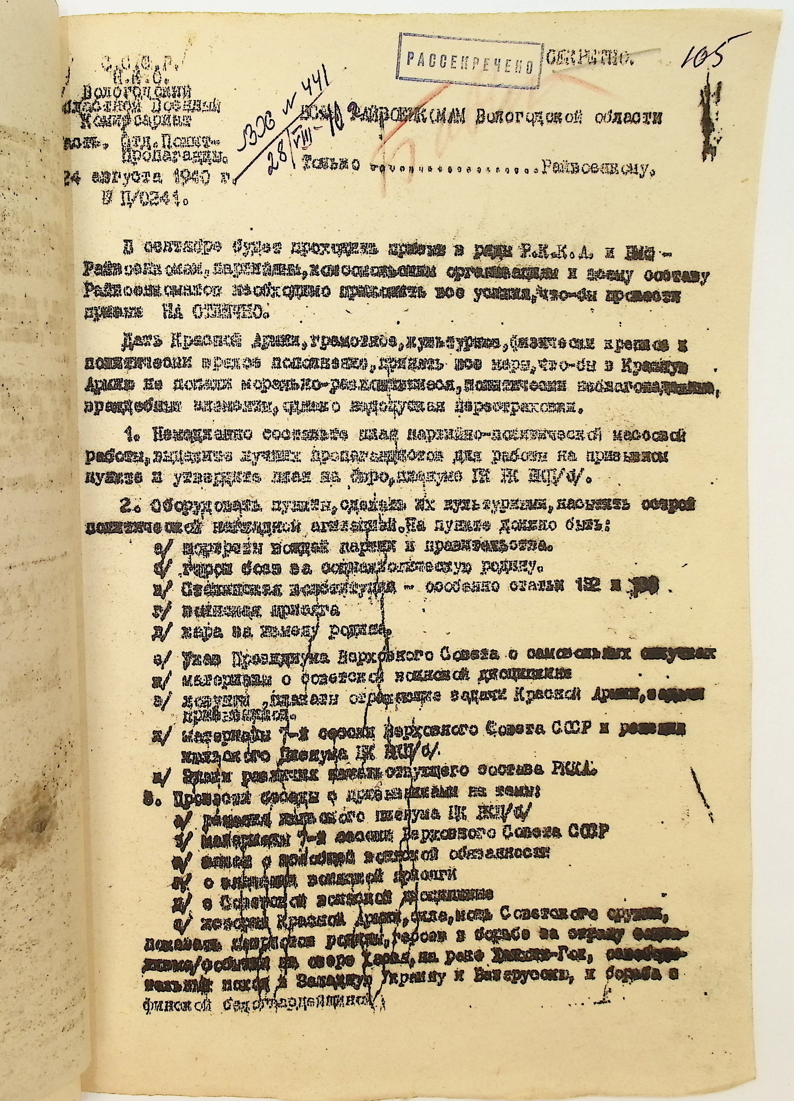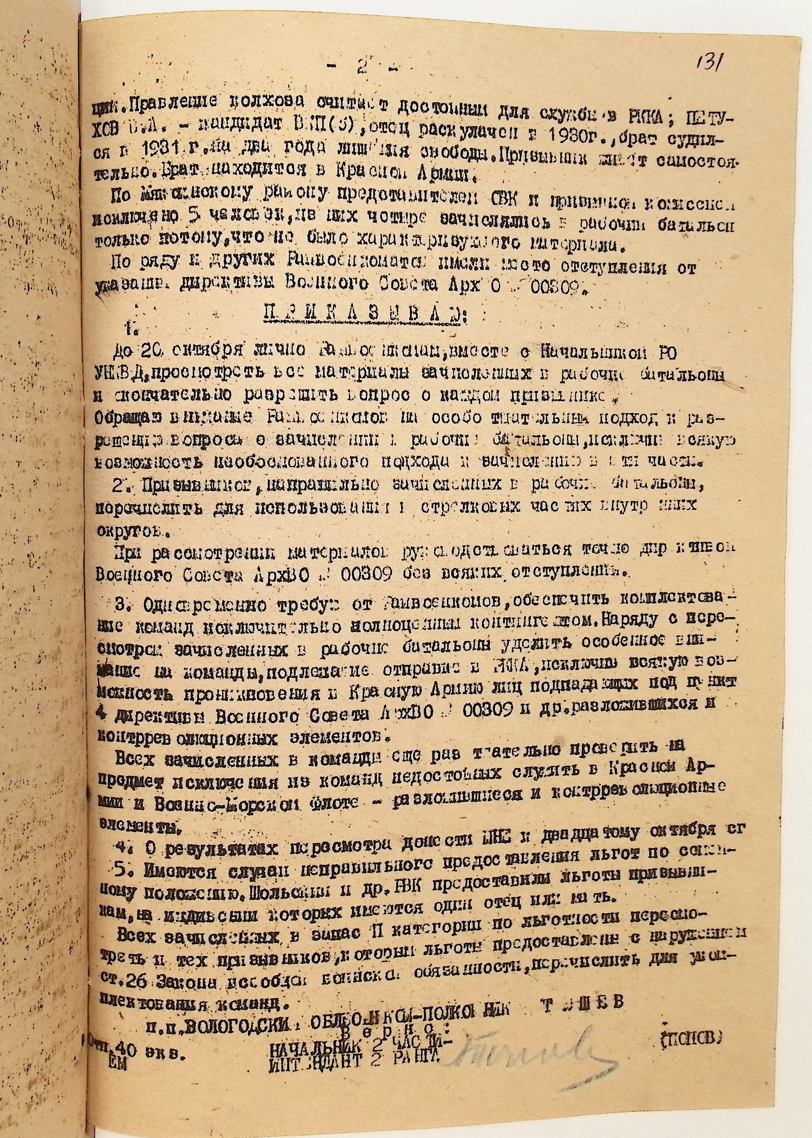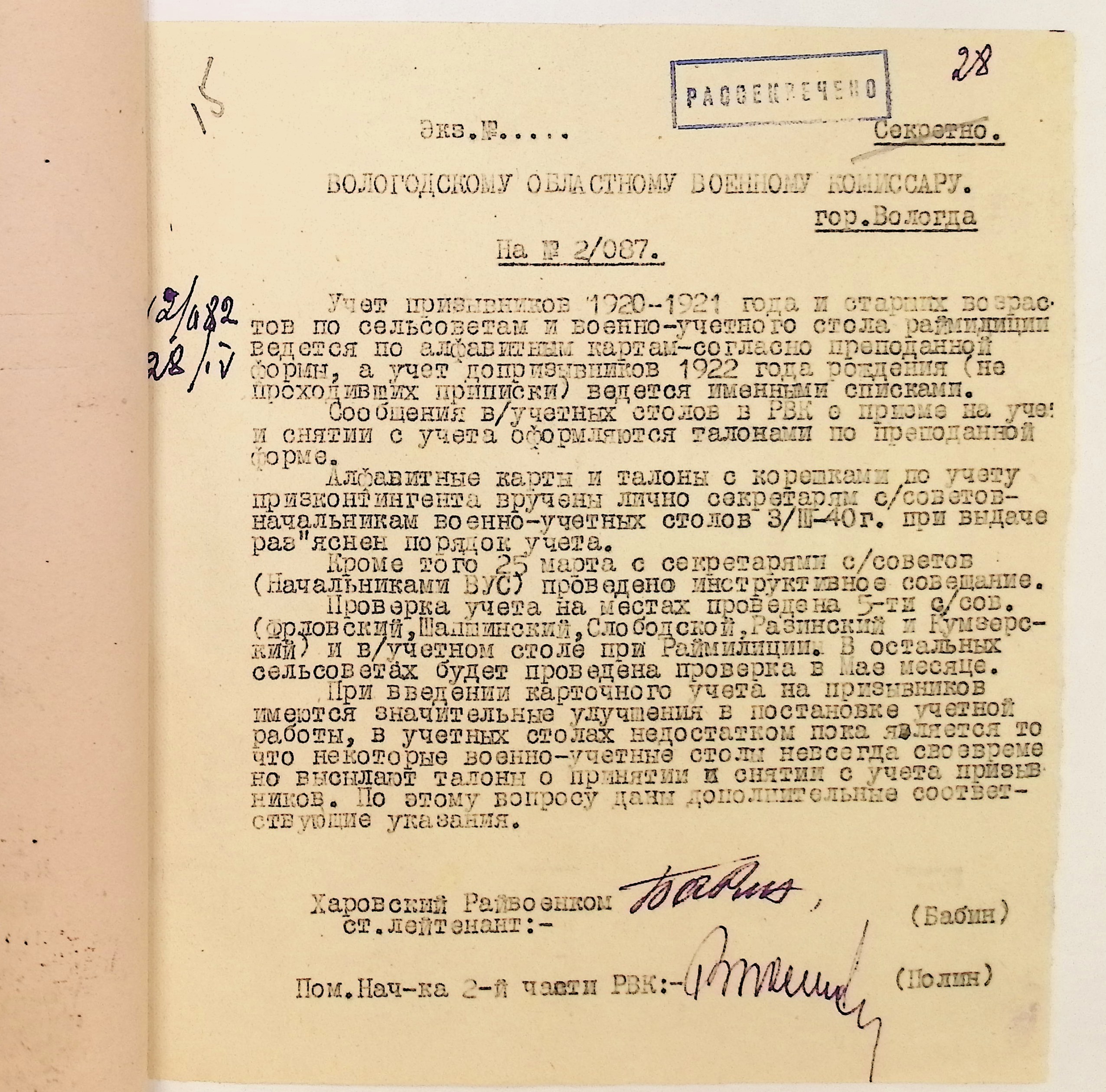 Руководящие указания по призыву. Харовский РВК (ГАВО. Ф. 1795 Оп. 1 Д. 7)