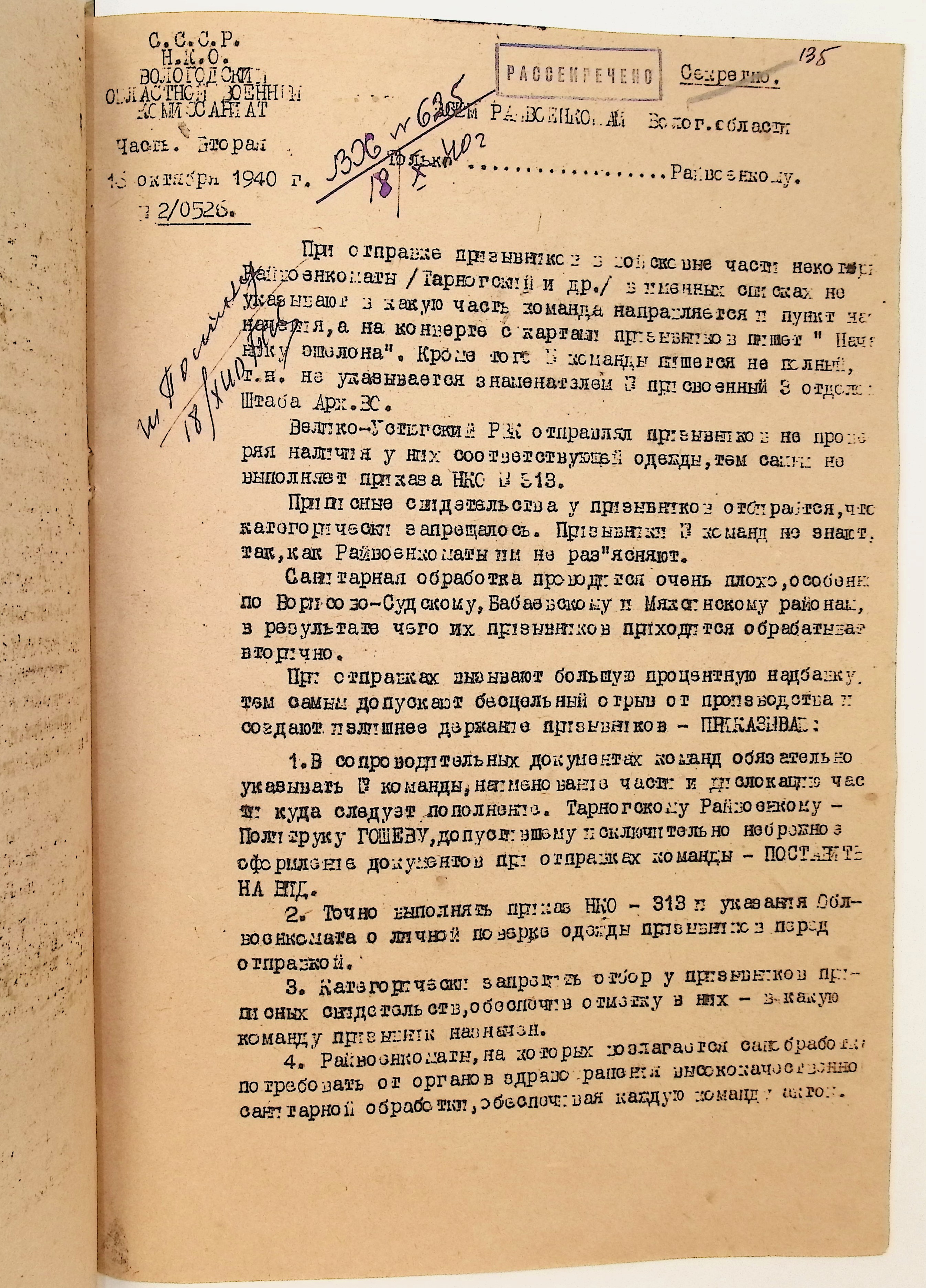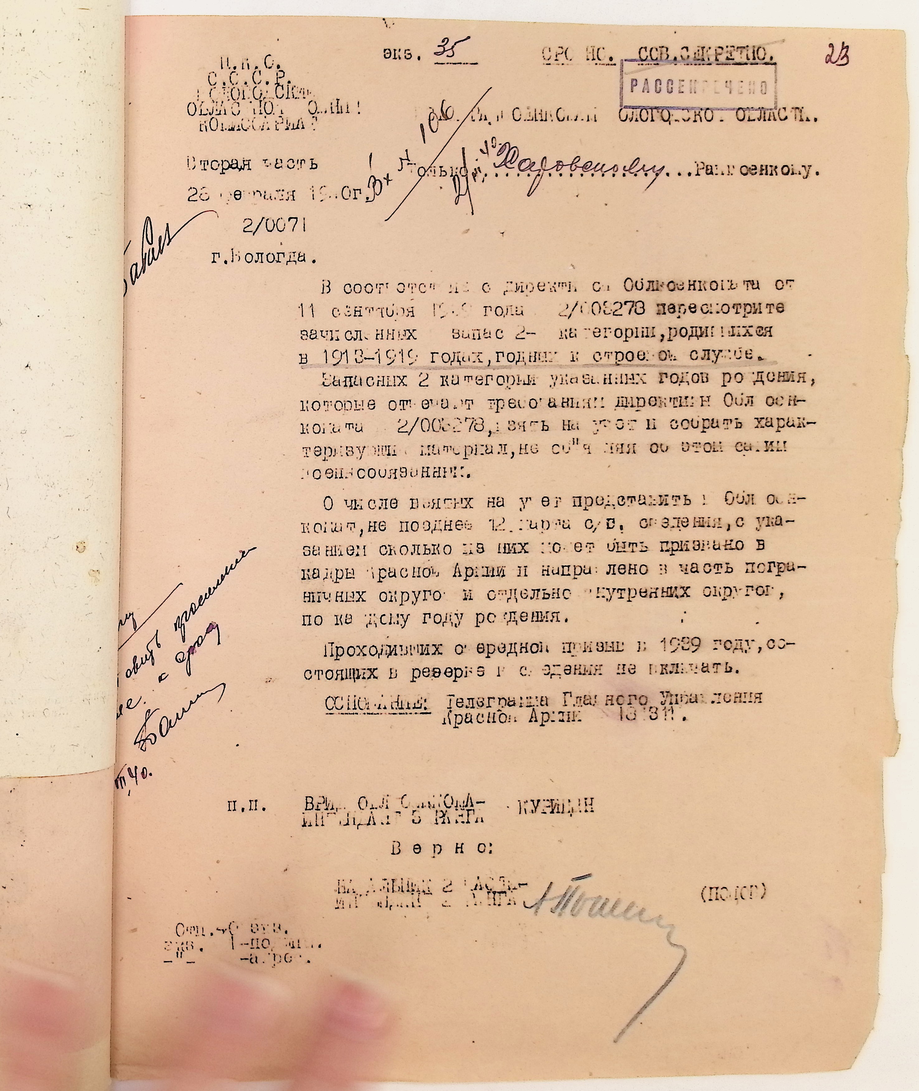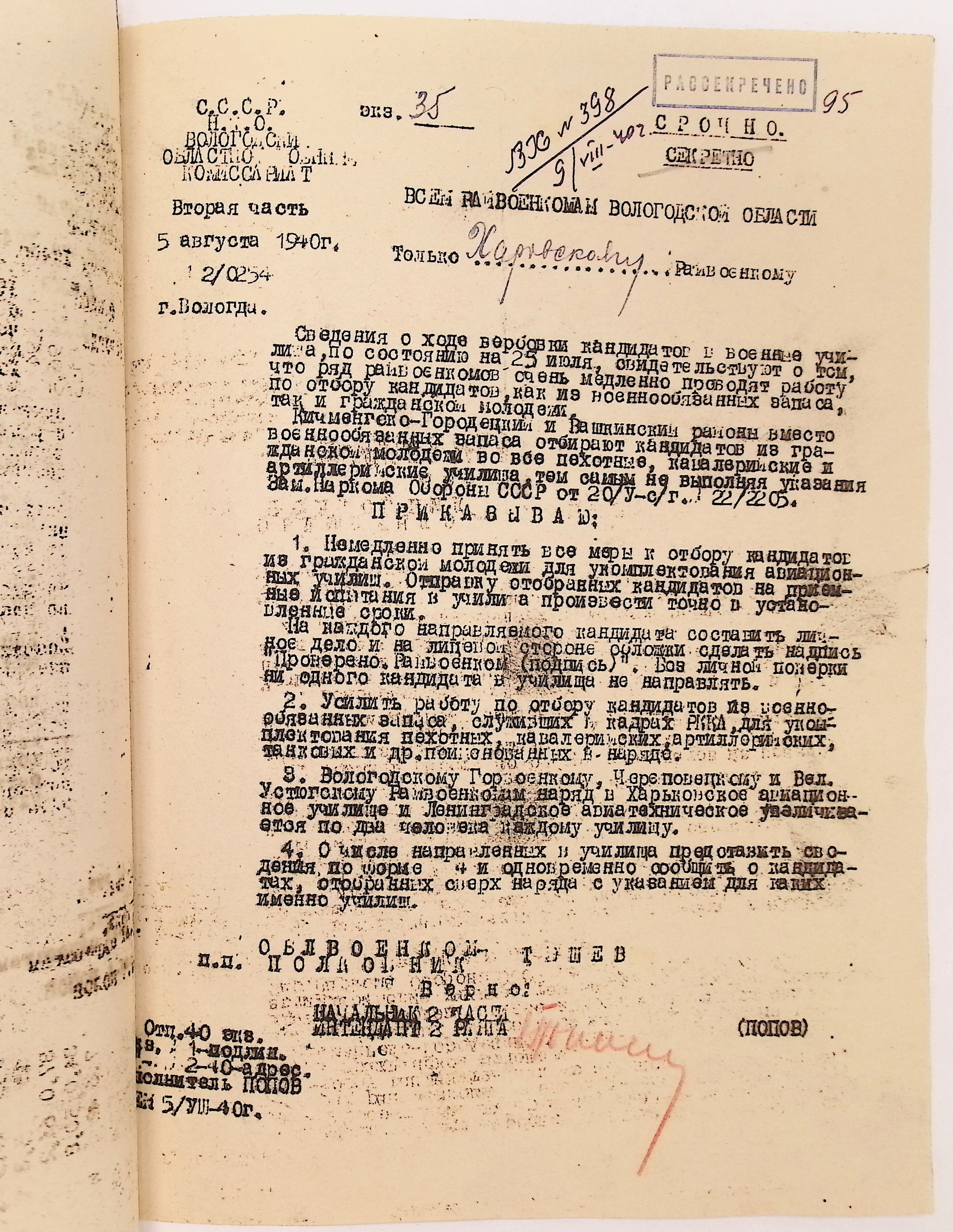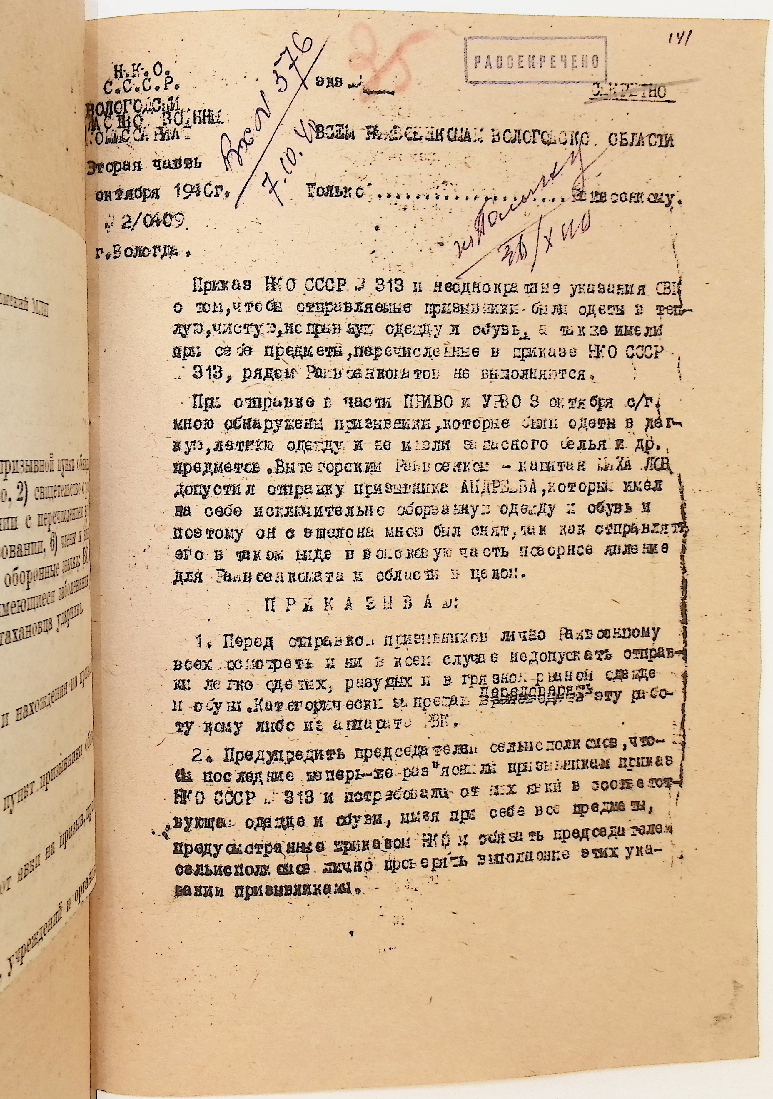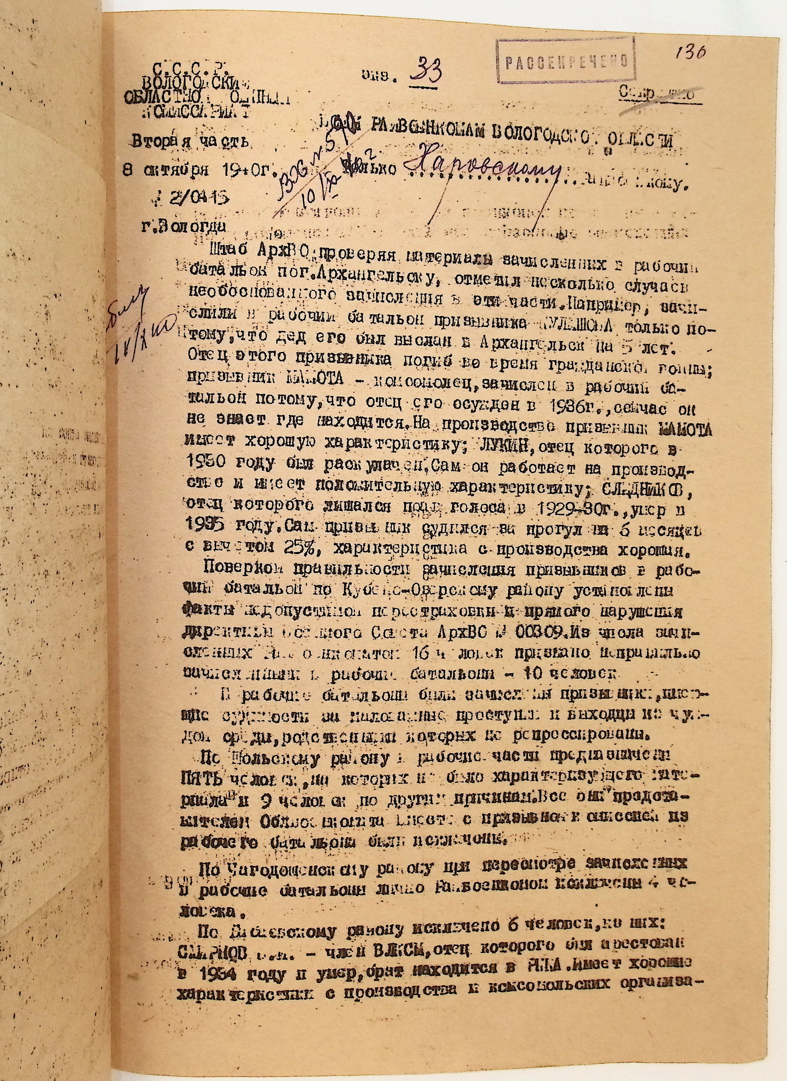 Руководящие указания по призыву. Харовский РВК (ГАВО. Ф. 1795 Оп. 1 Д. 7)