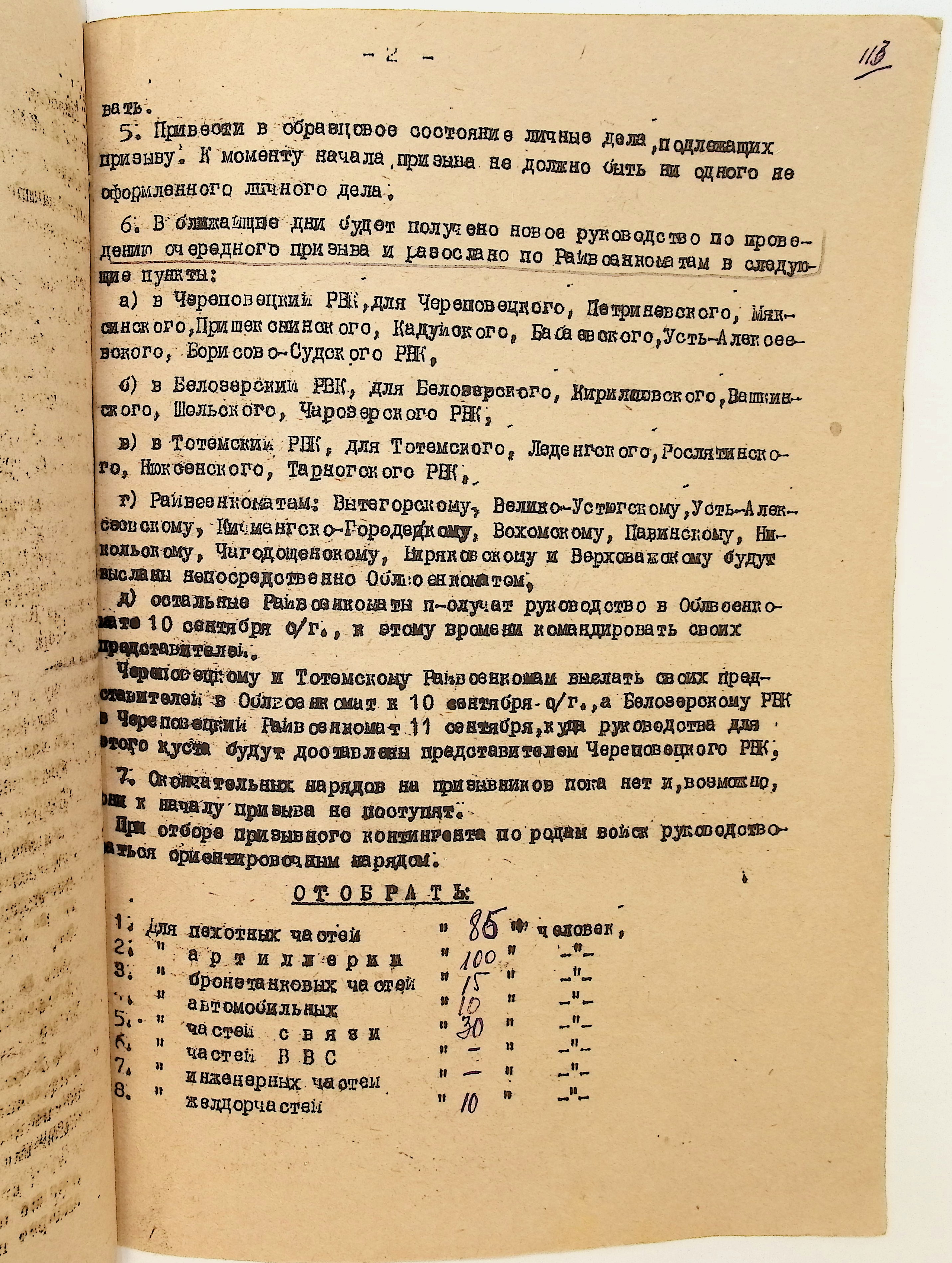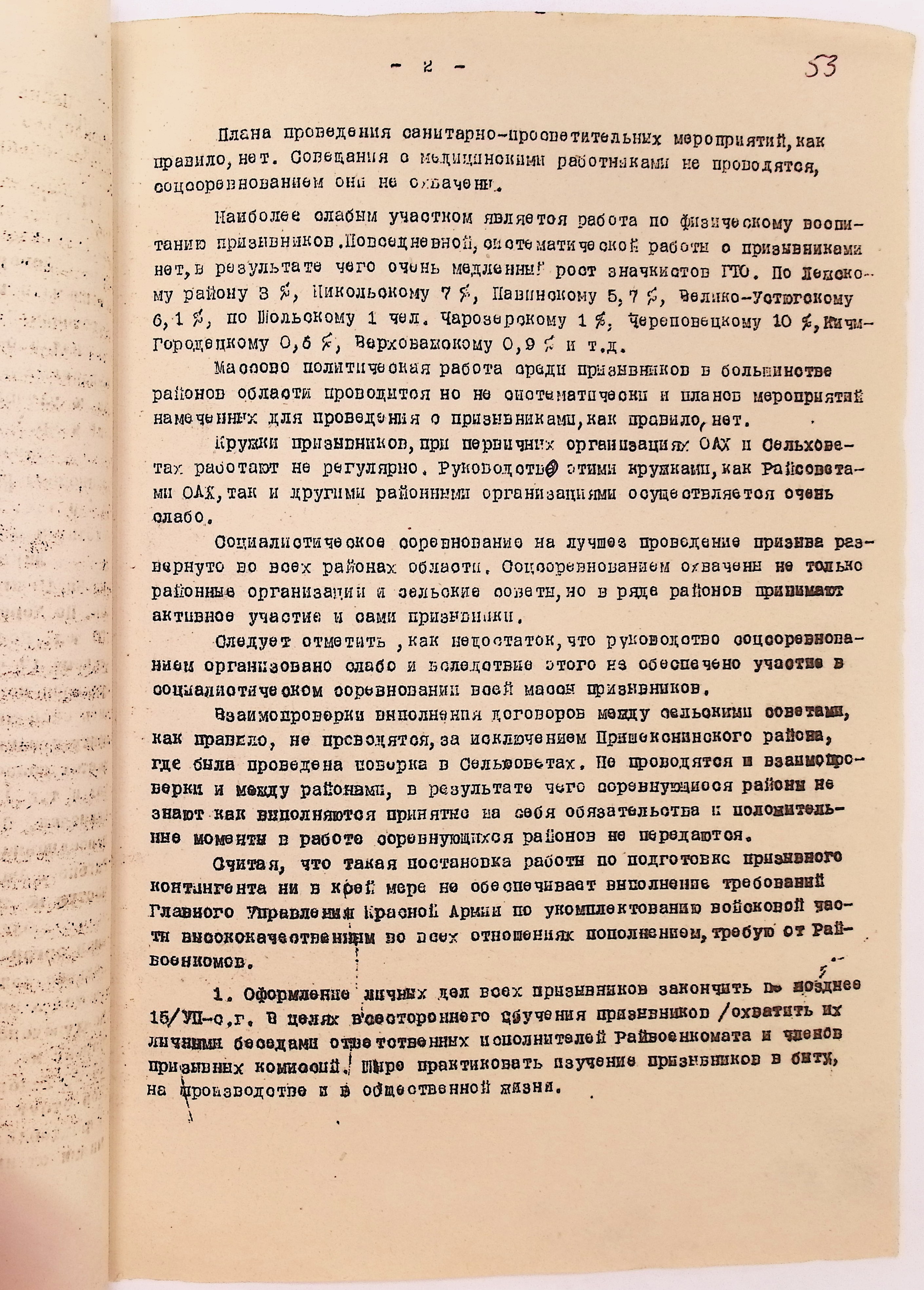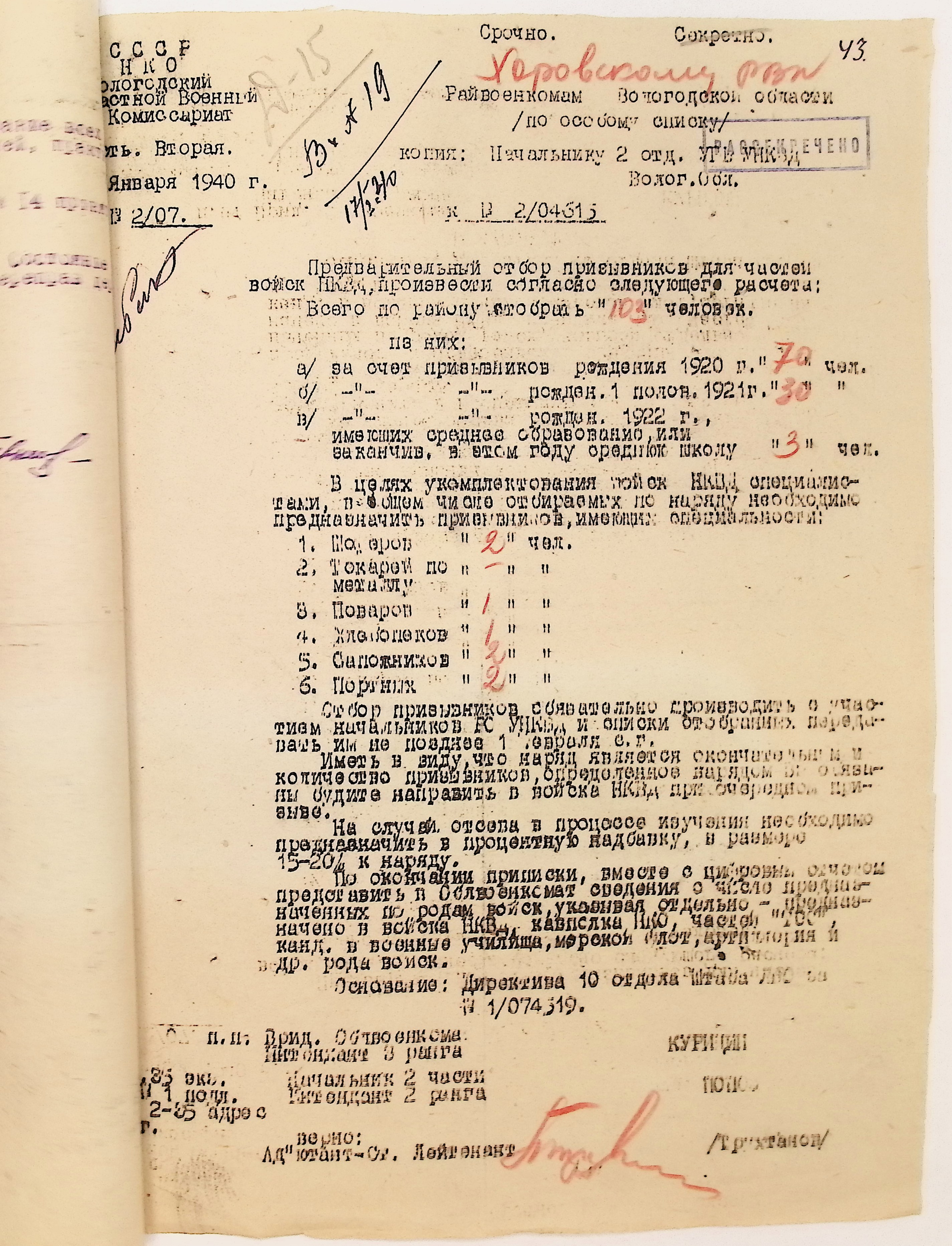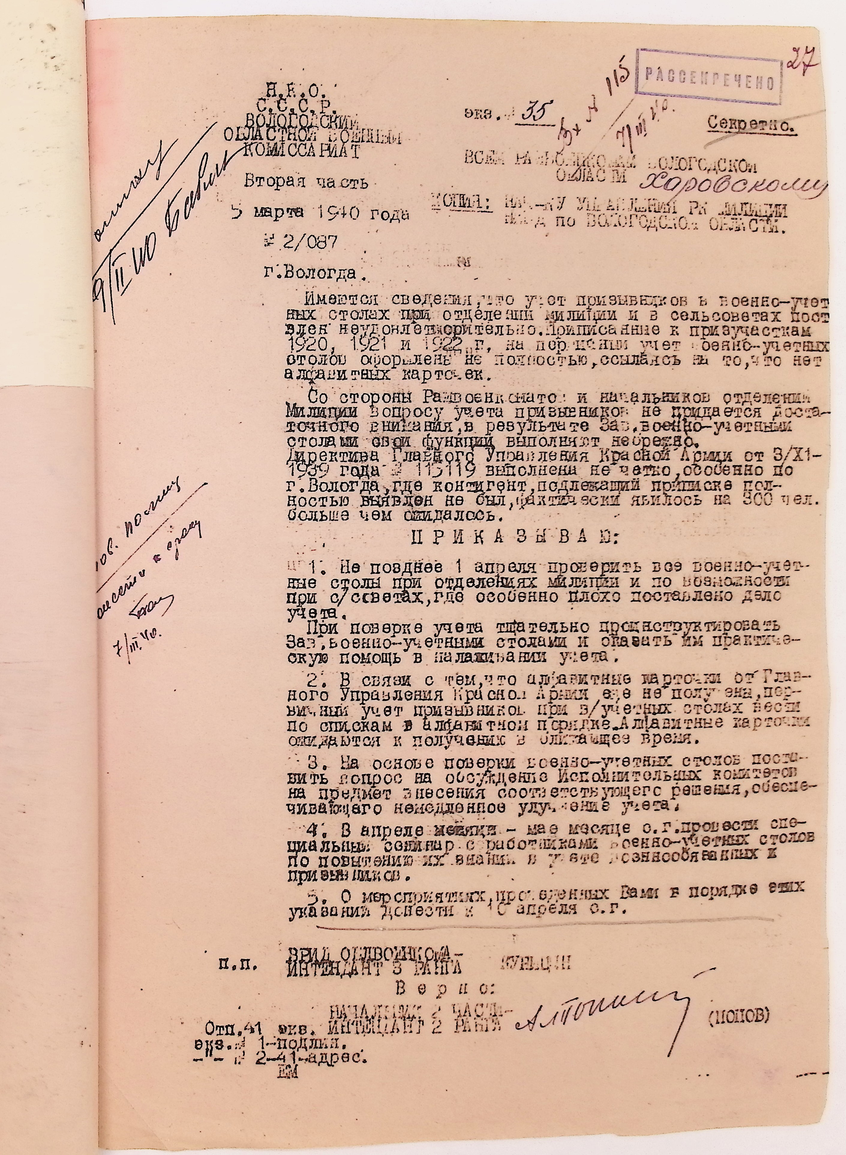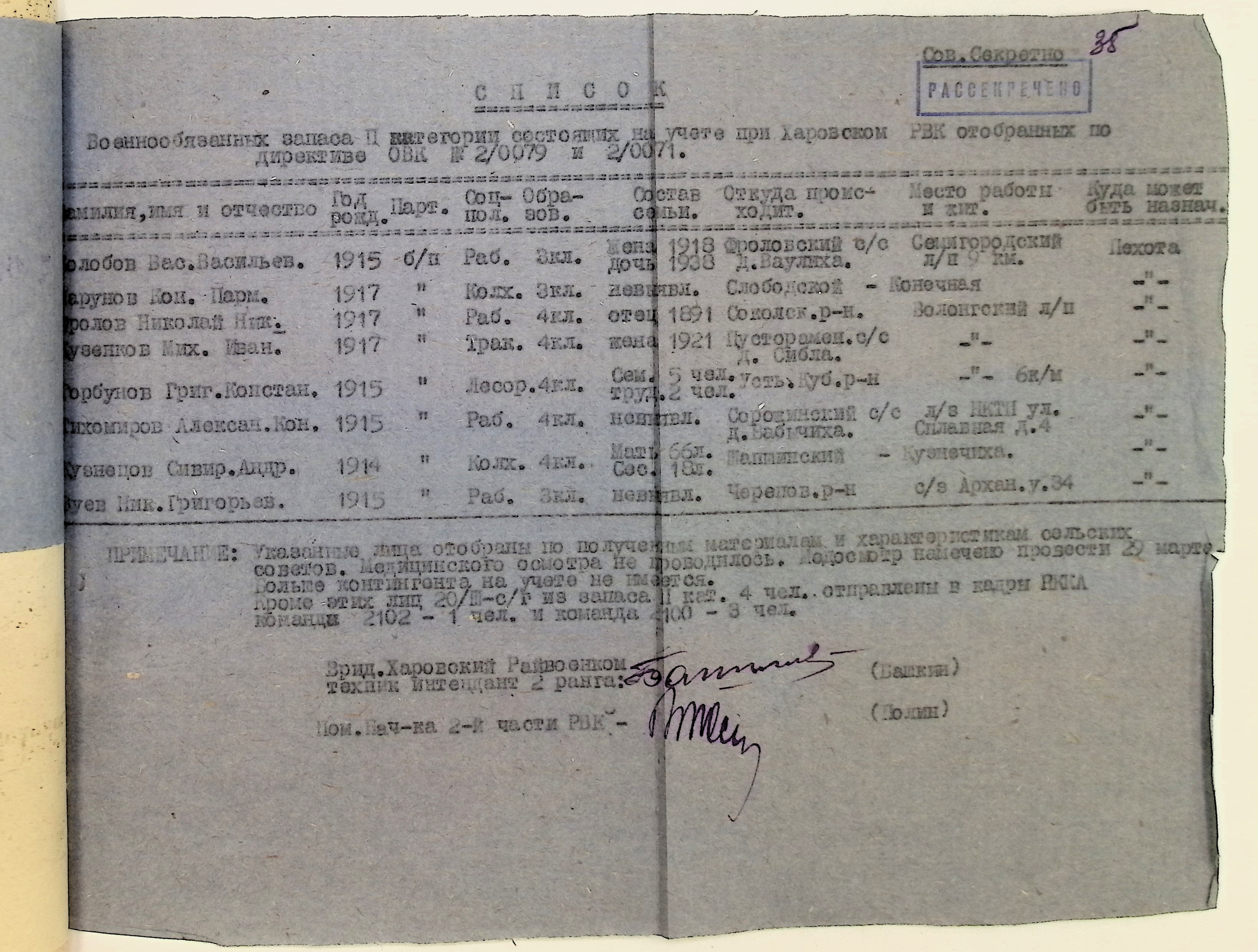Руководящие указания по призыву. Харовский РВК (ГАВО. Ф. 1795 Оп. 1 Д. 7)