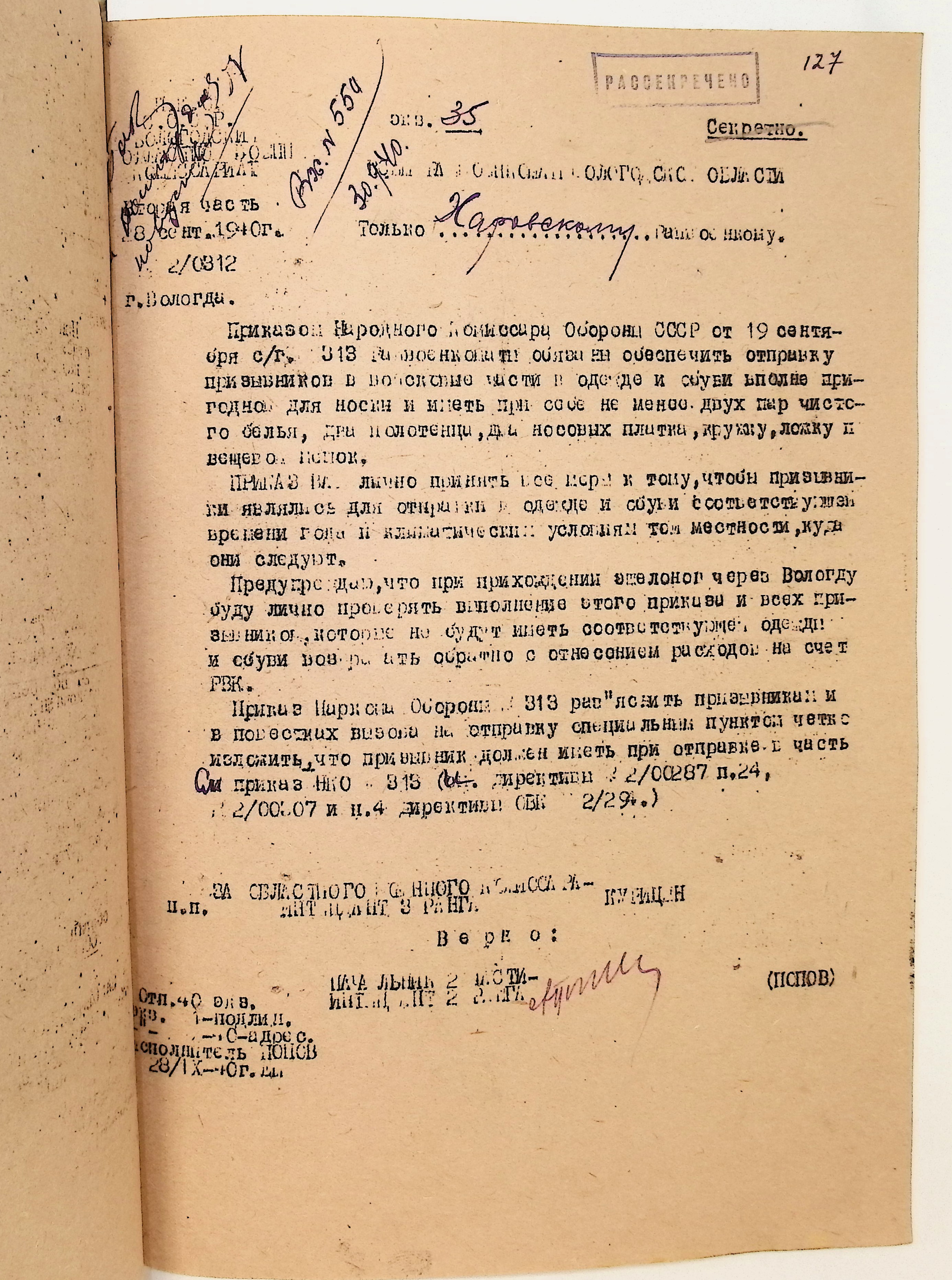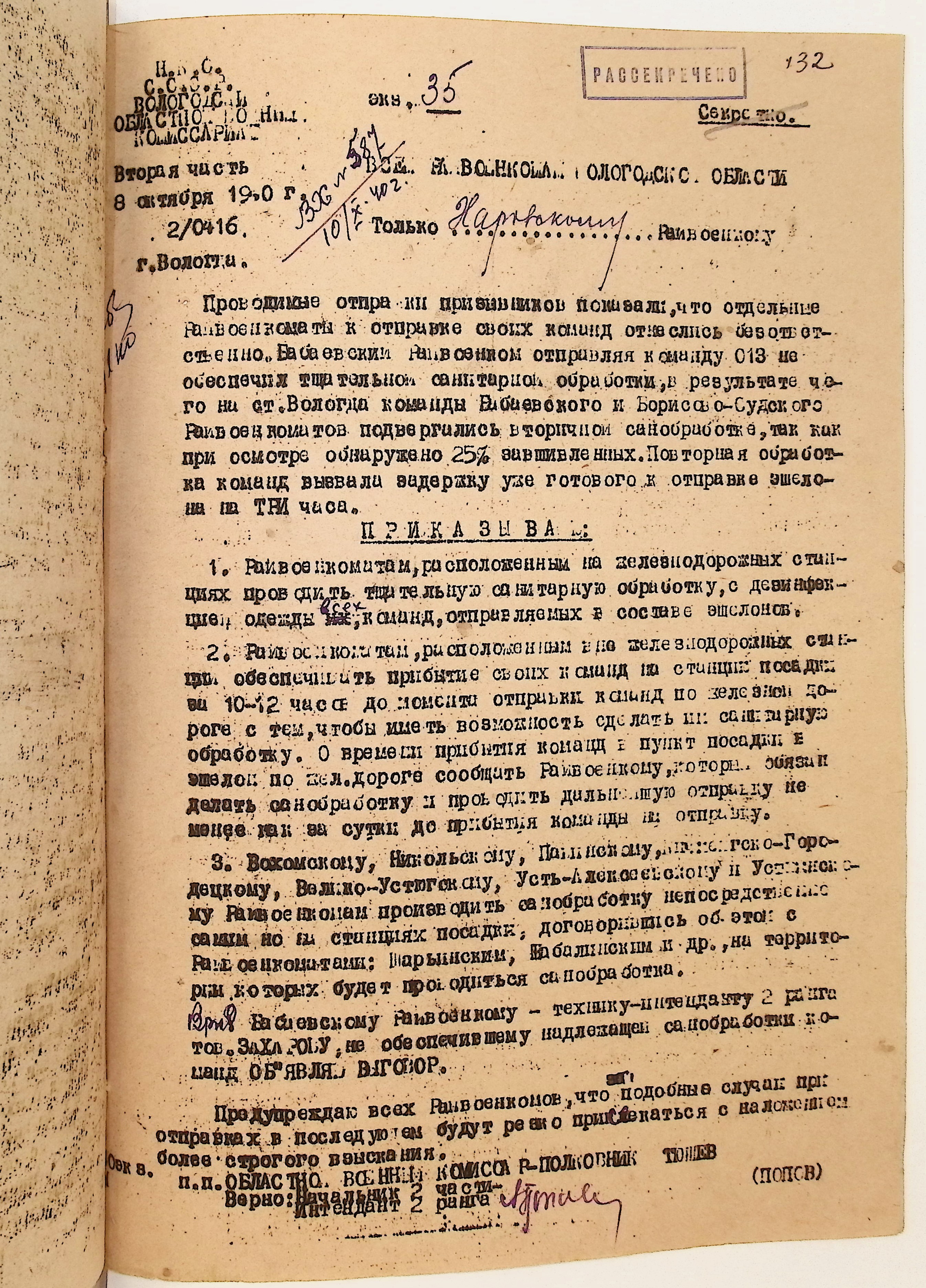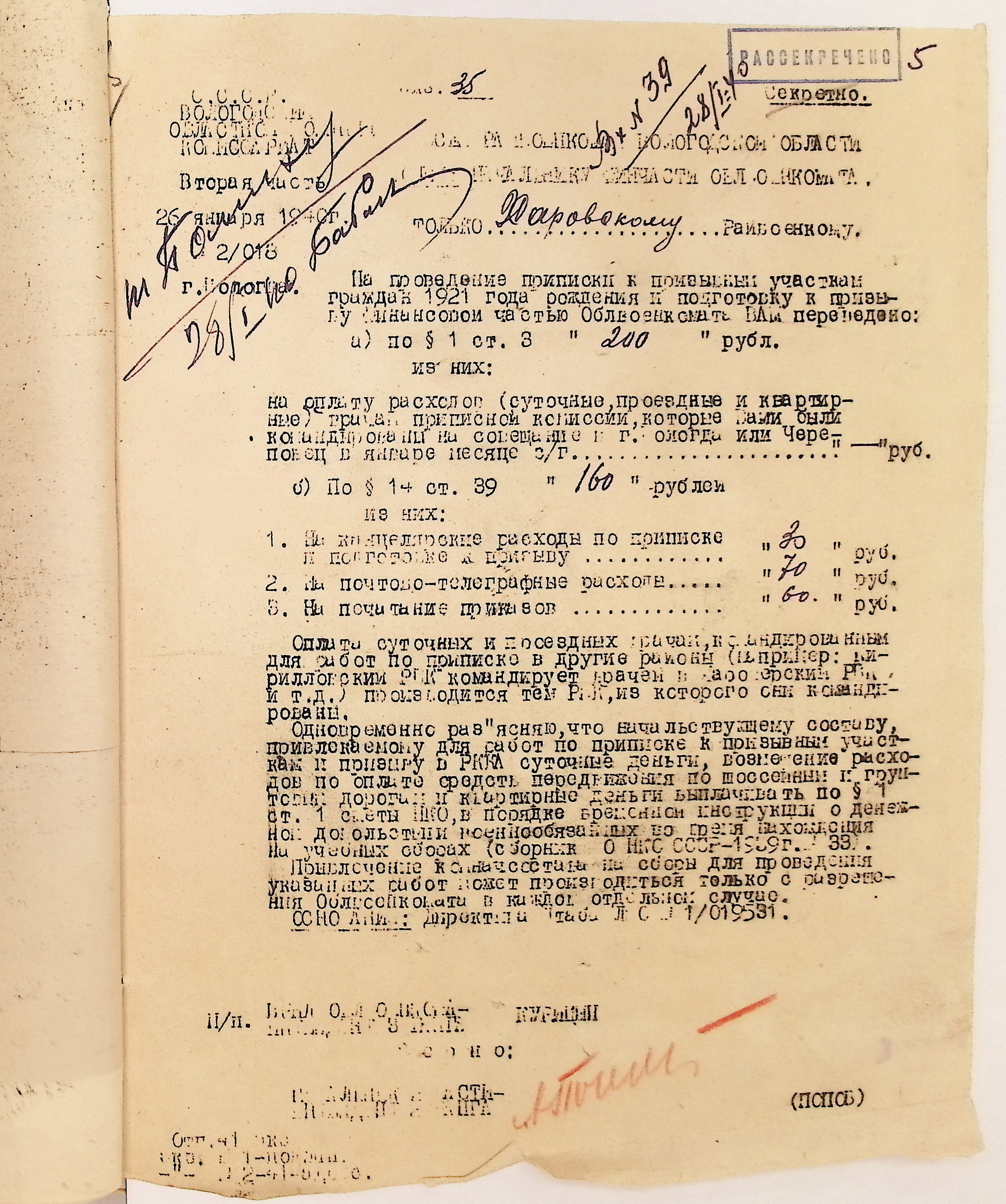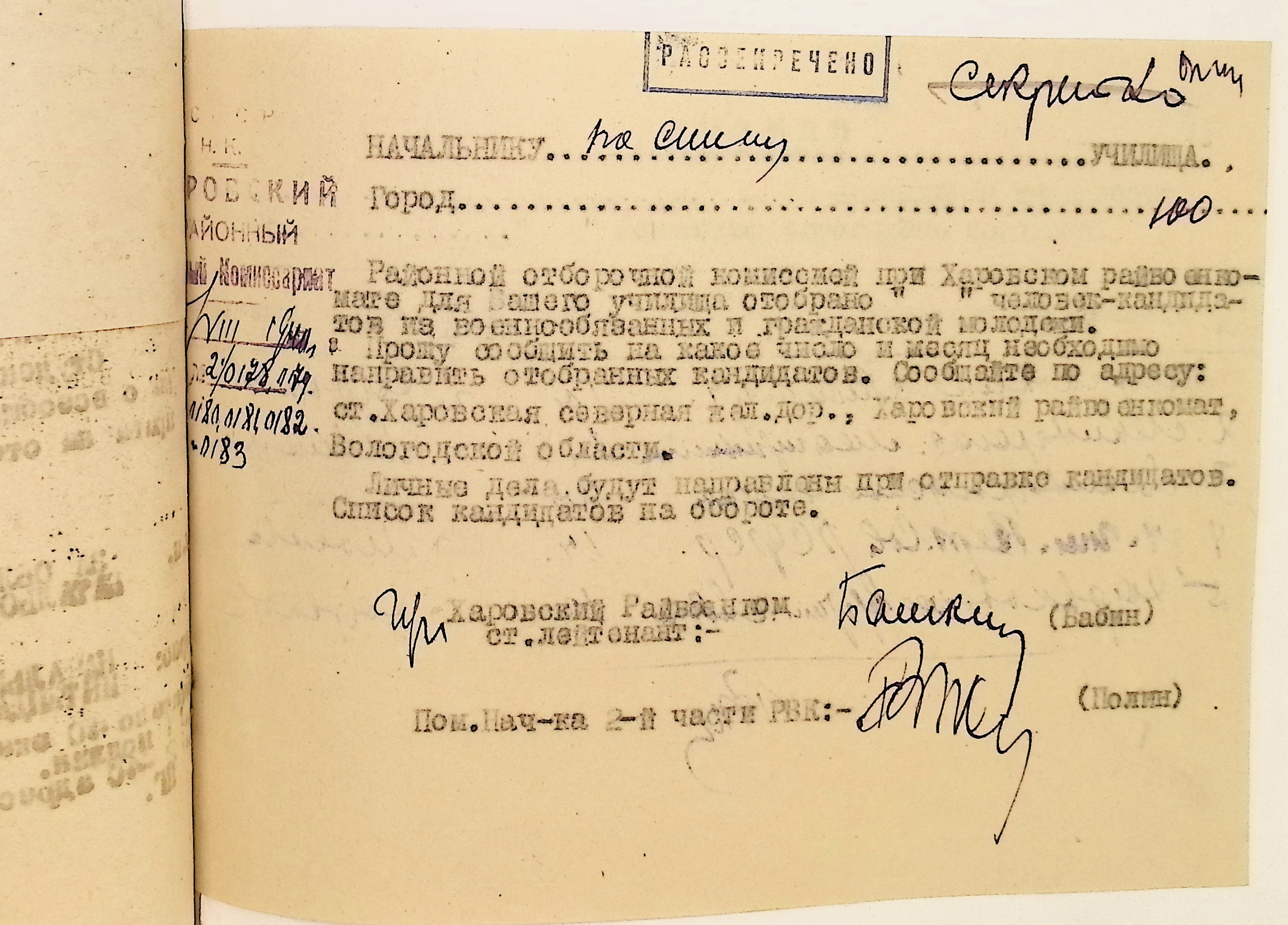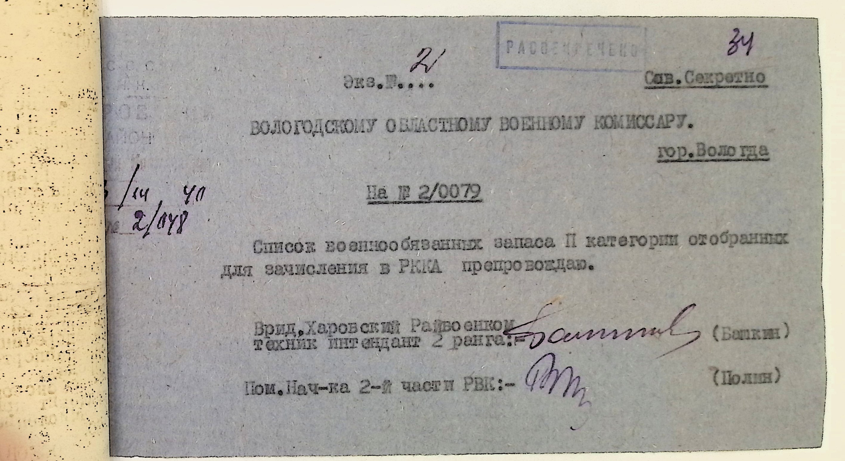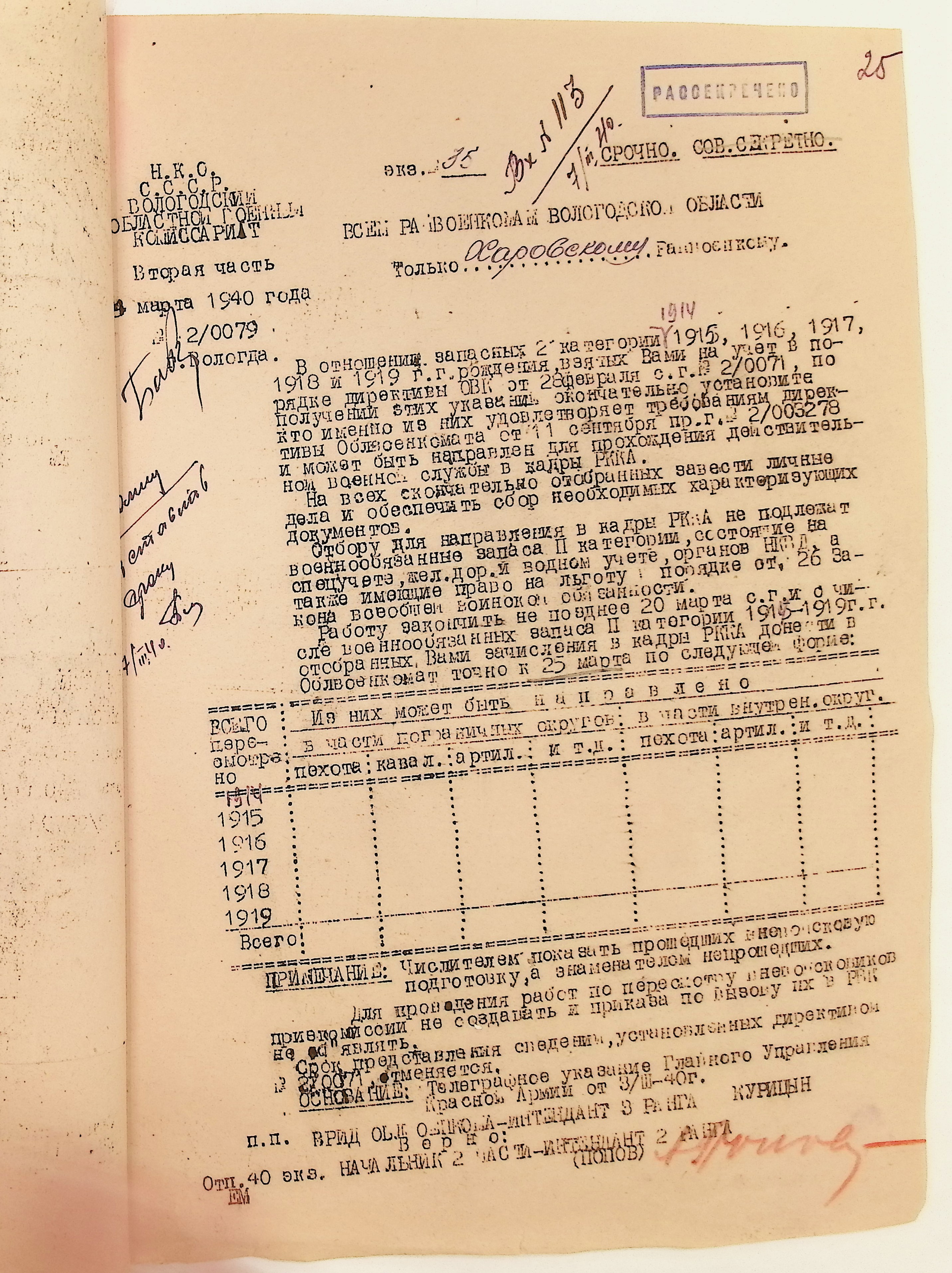Руководящие указания по призыву. Харовский РВК (ГАВО. Ф. 1795 Оп. 1 Д. 7)