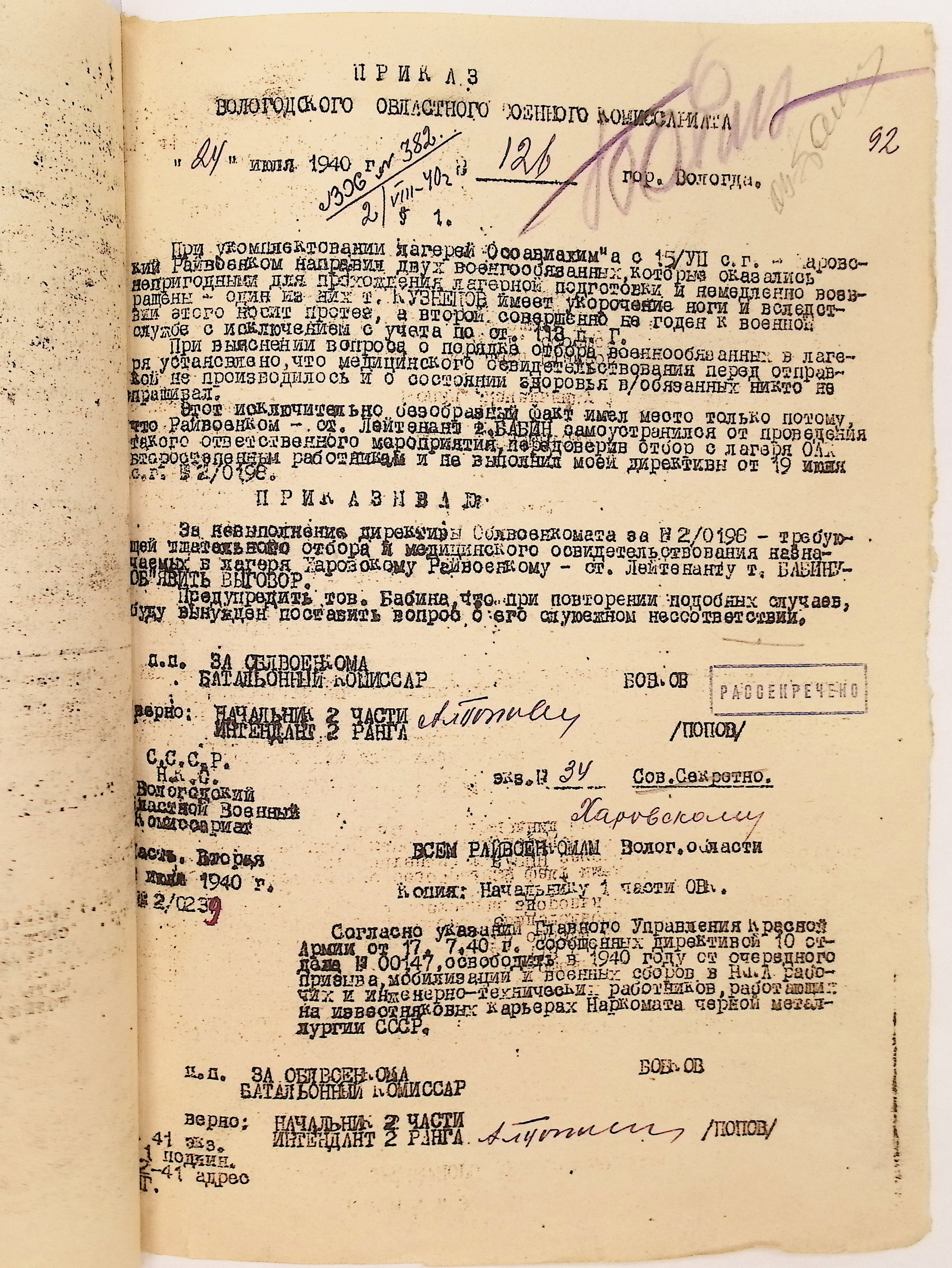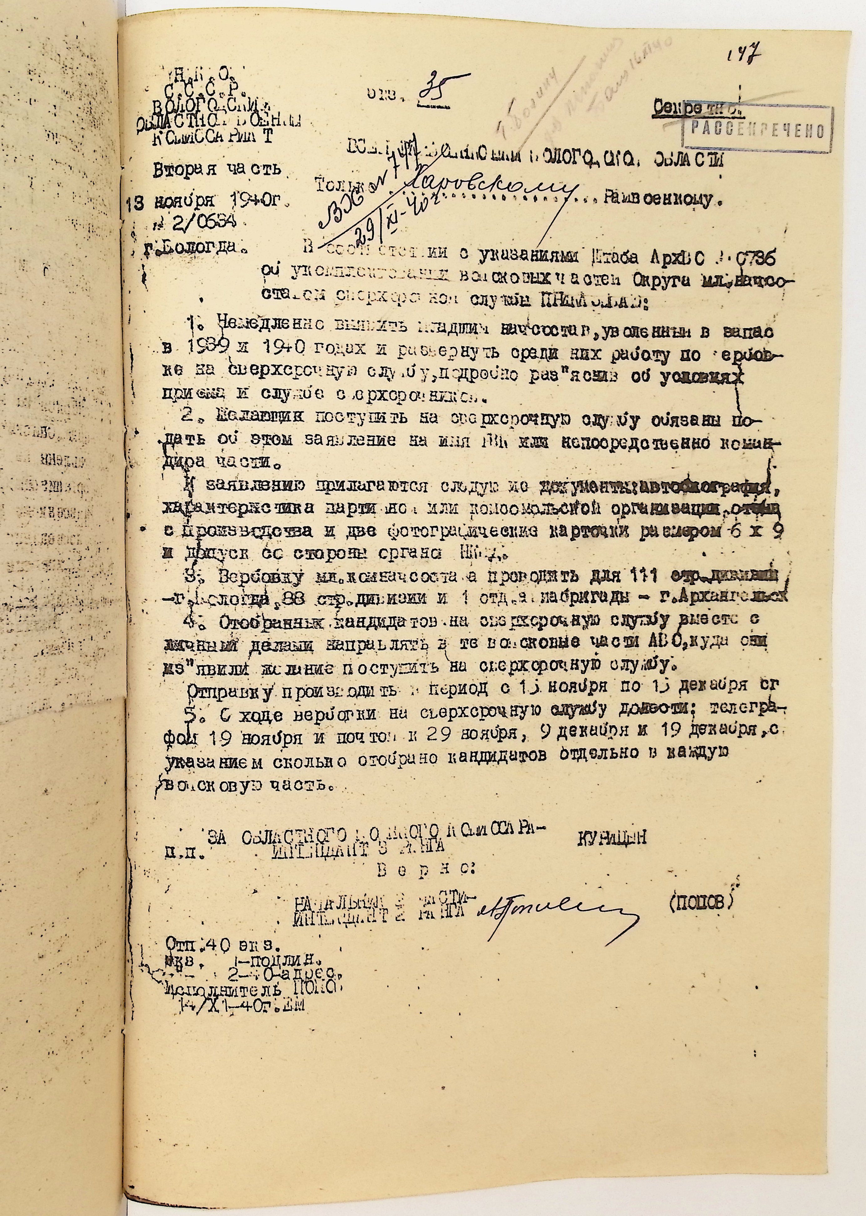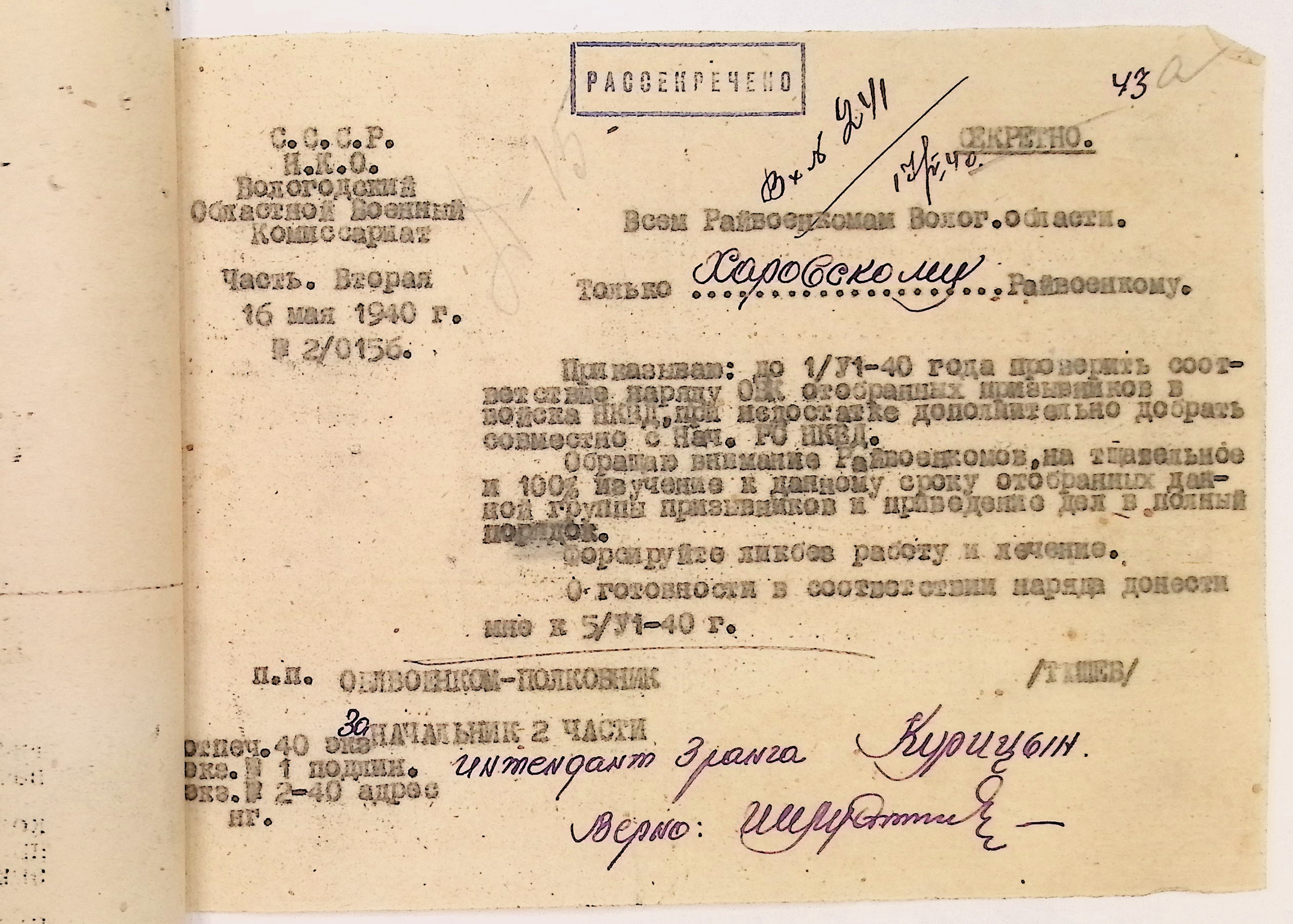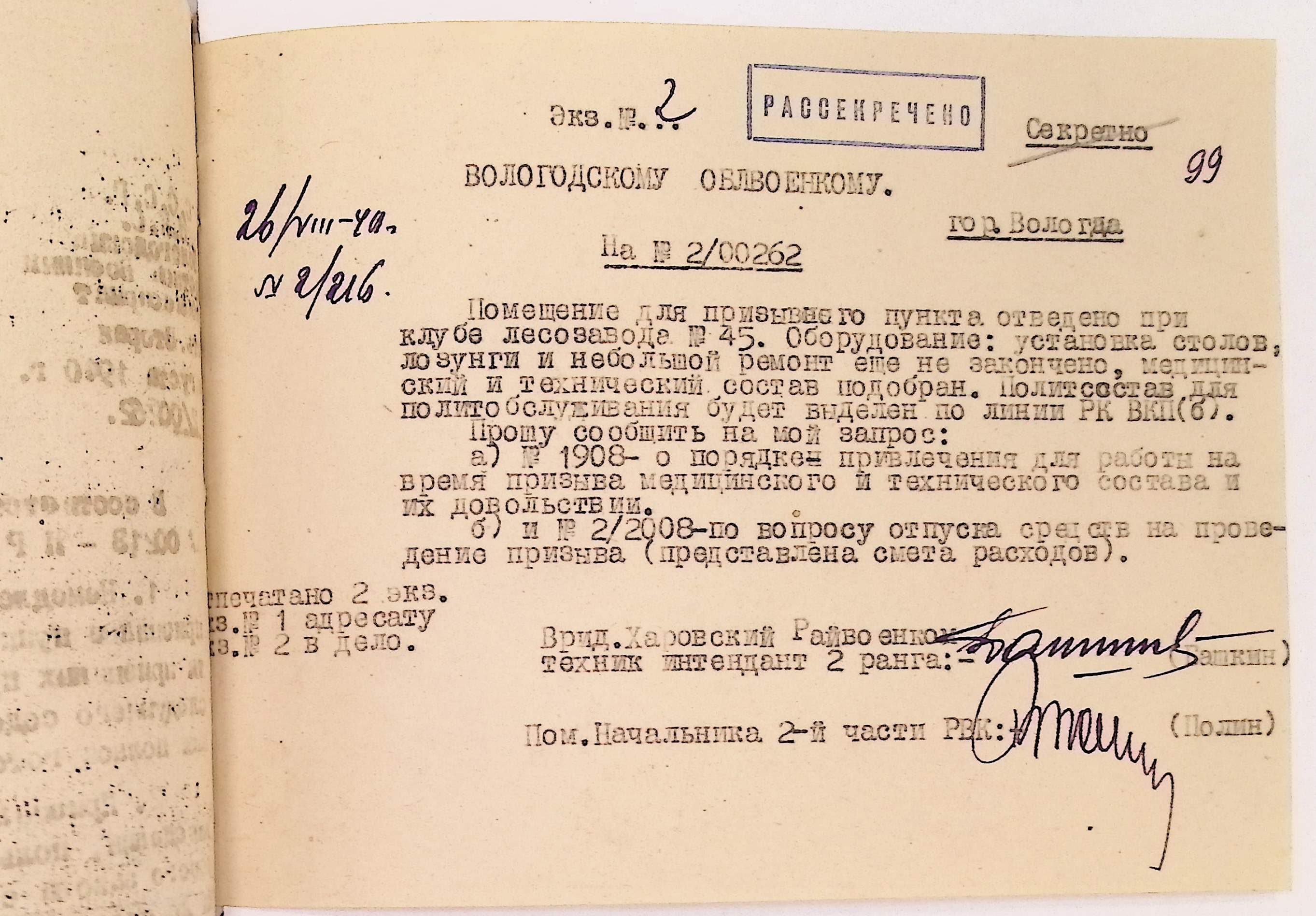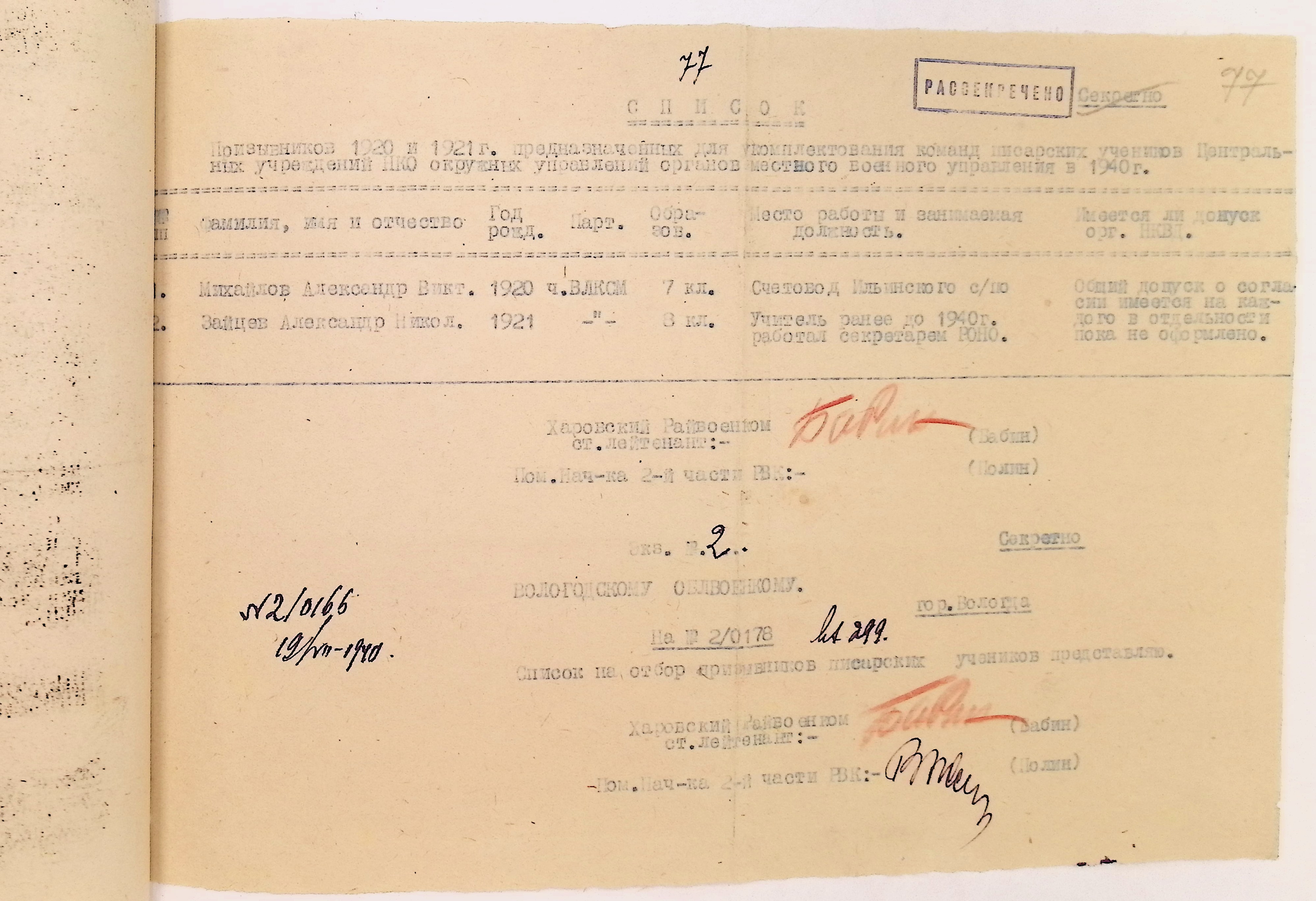 Руководящие указания по призыву. Харовский РВК (ГАВО. Ф. 1795 Оп. 1 Д. 7)