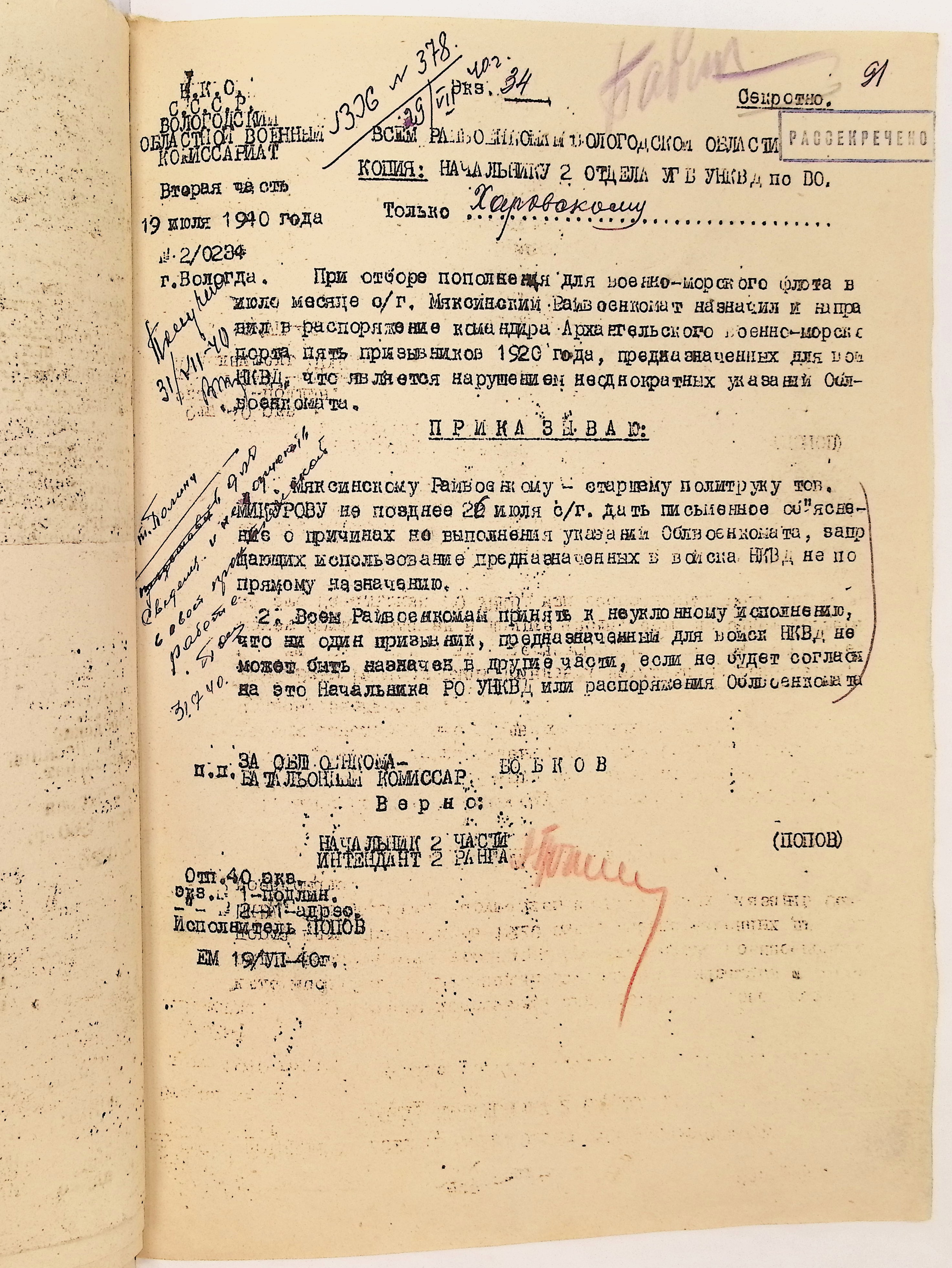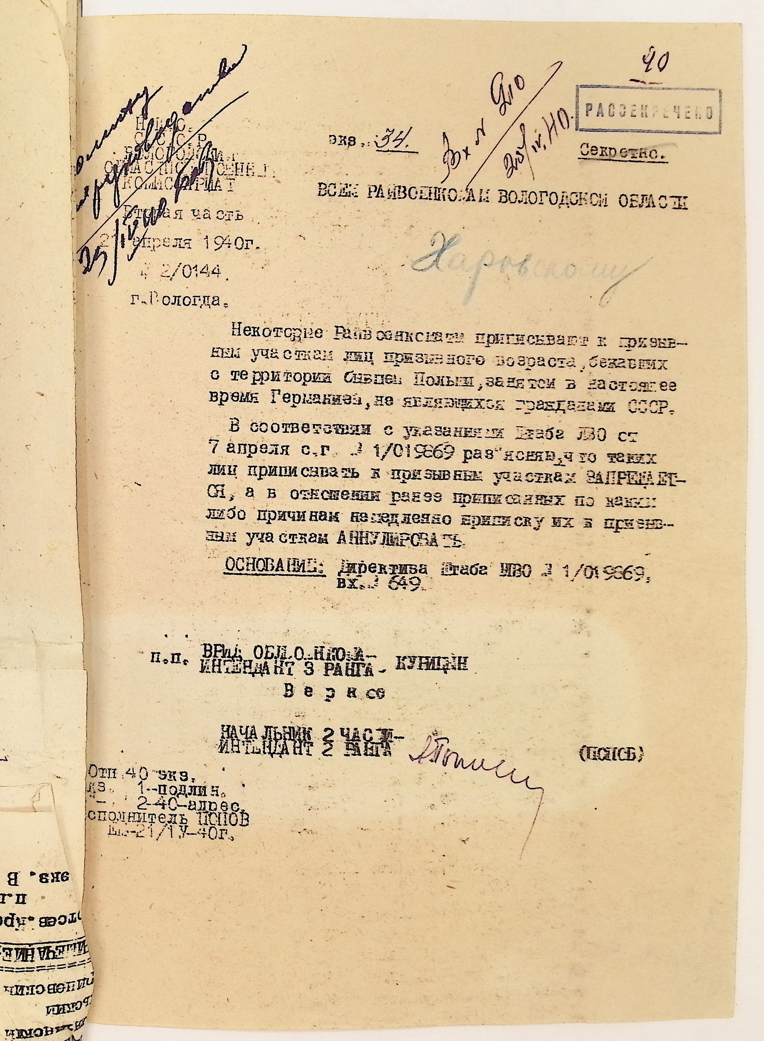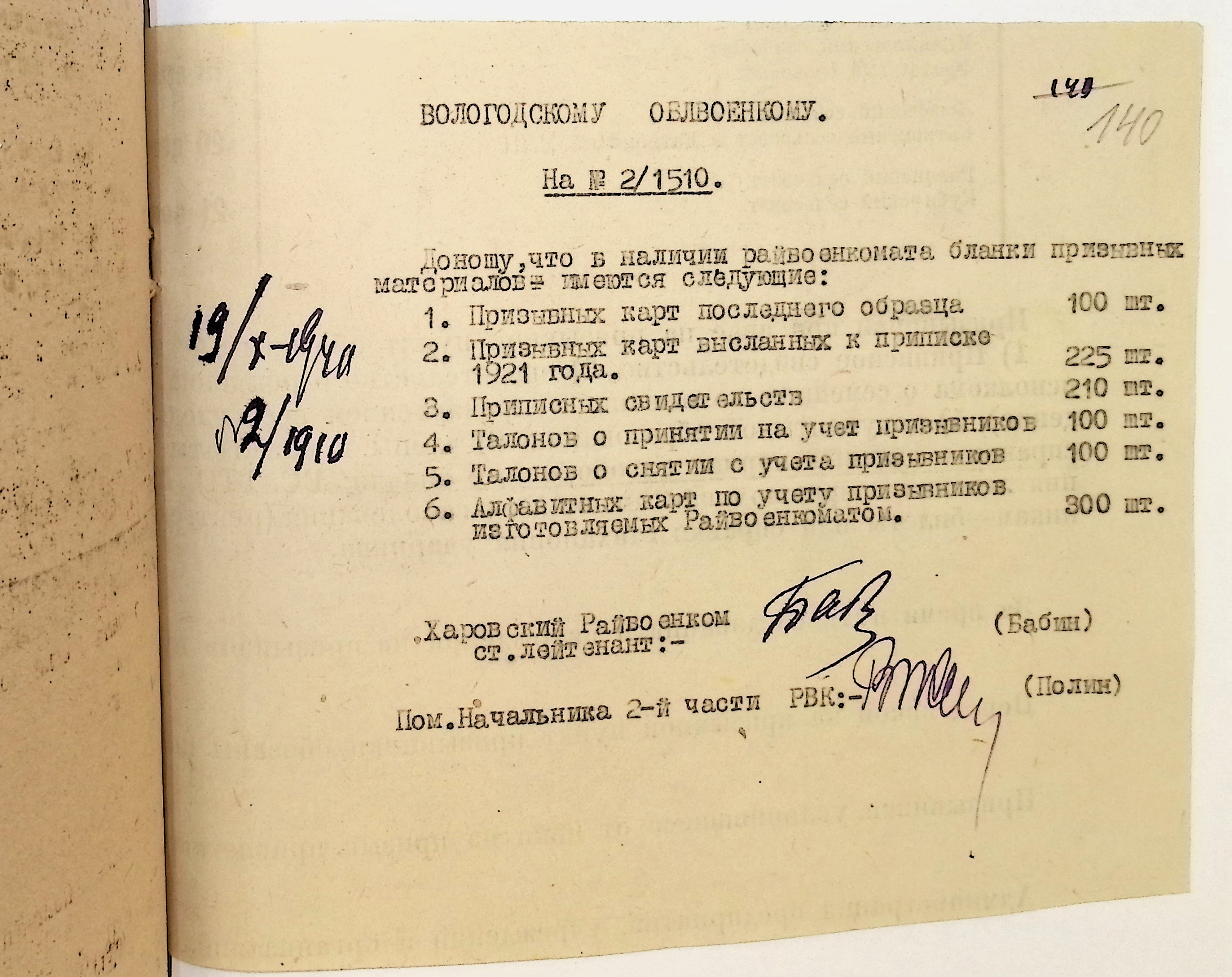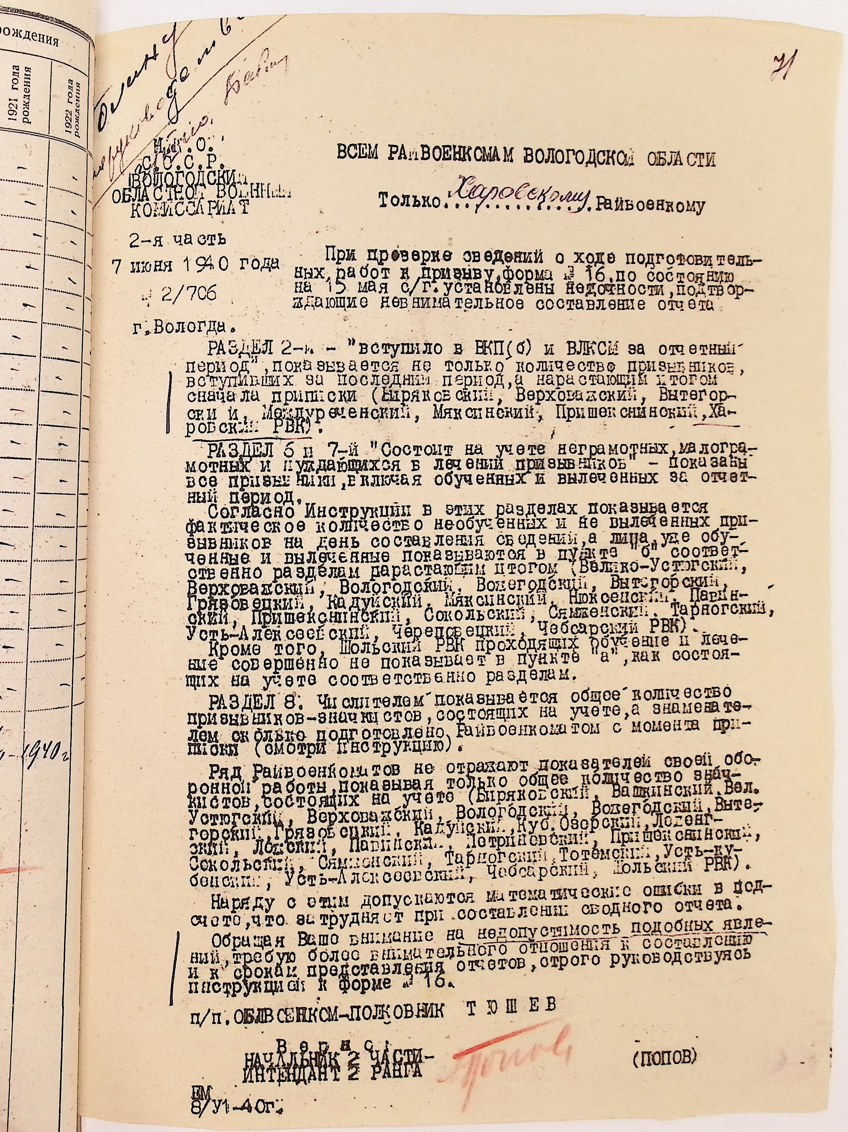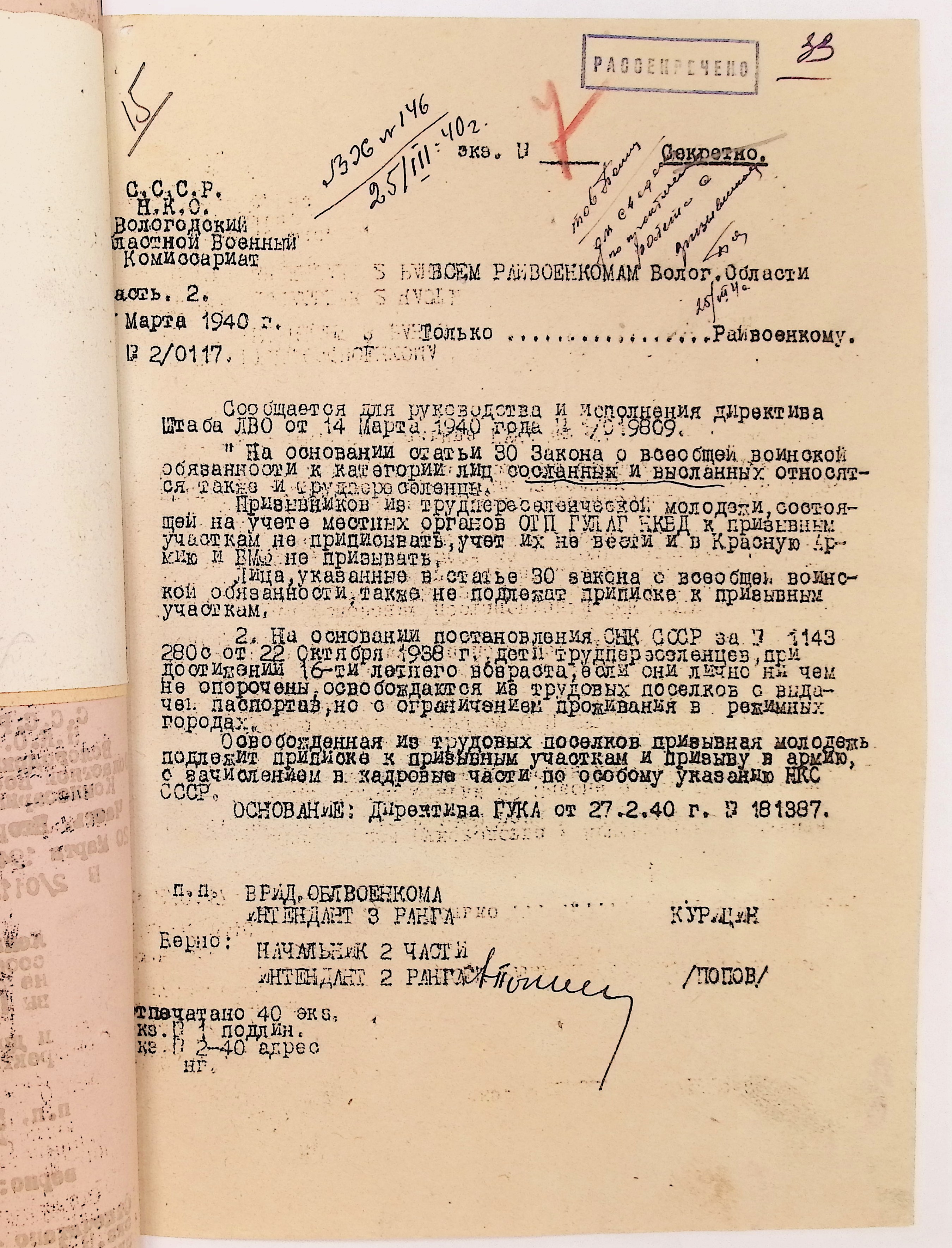 Руководящие указания по призыву. Харовский РВК (ГАВО. Ф. 1795 Оп. 1 Д. 7)
