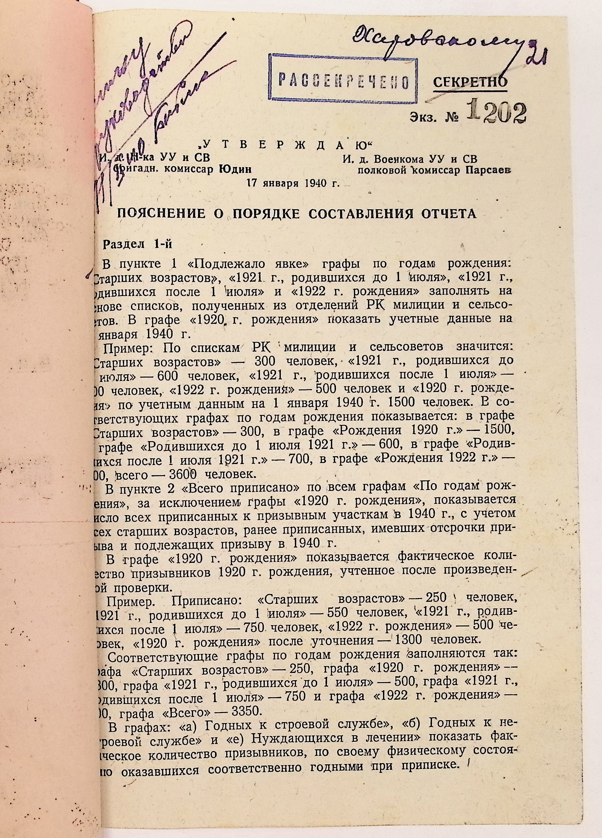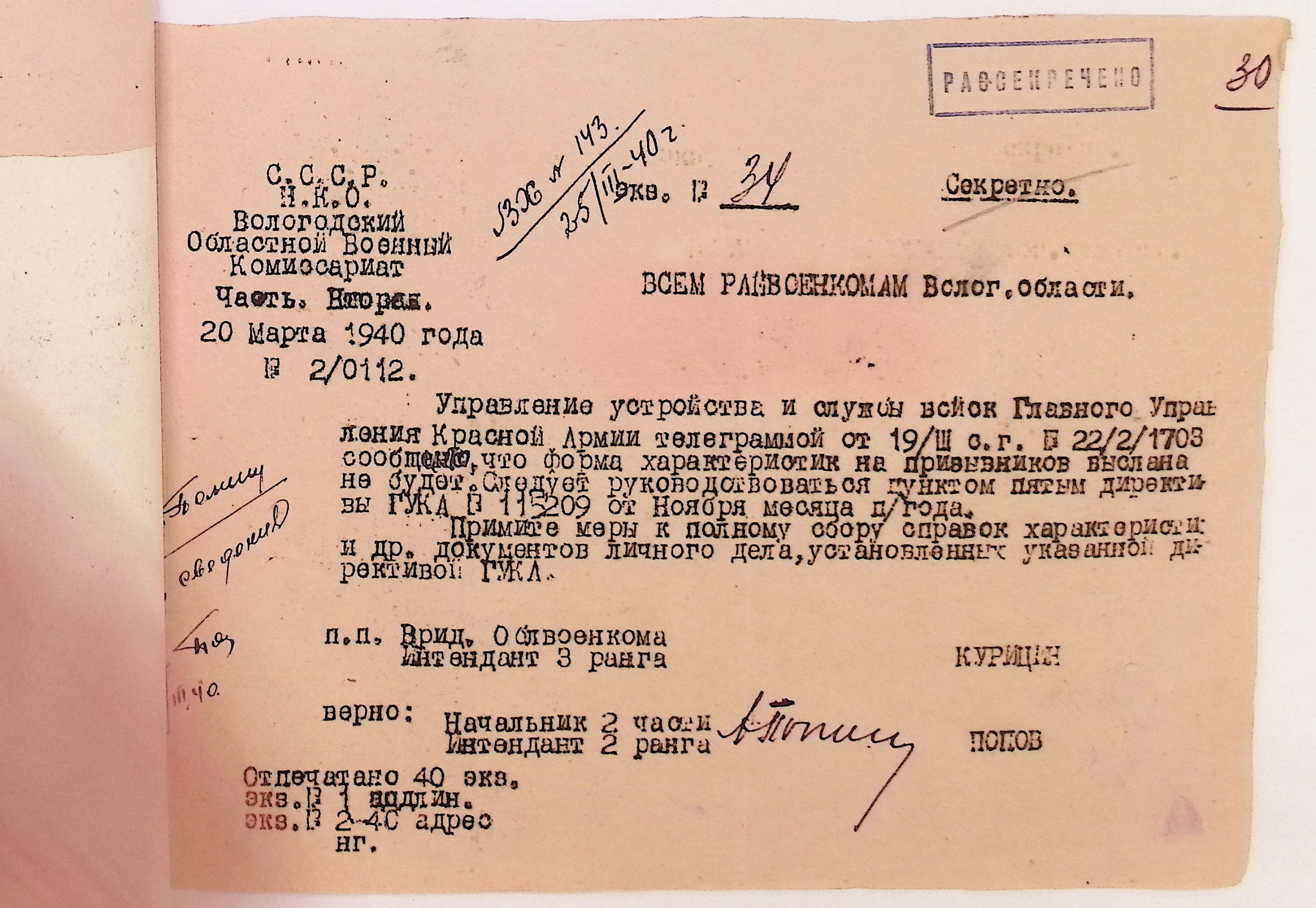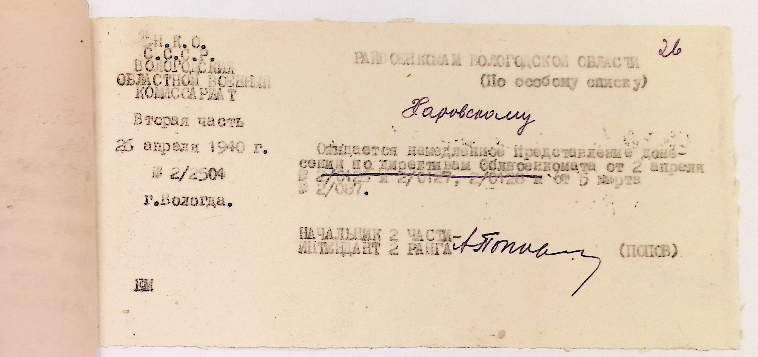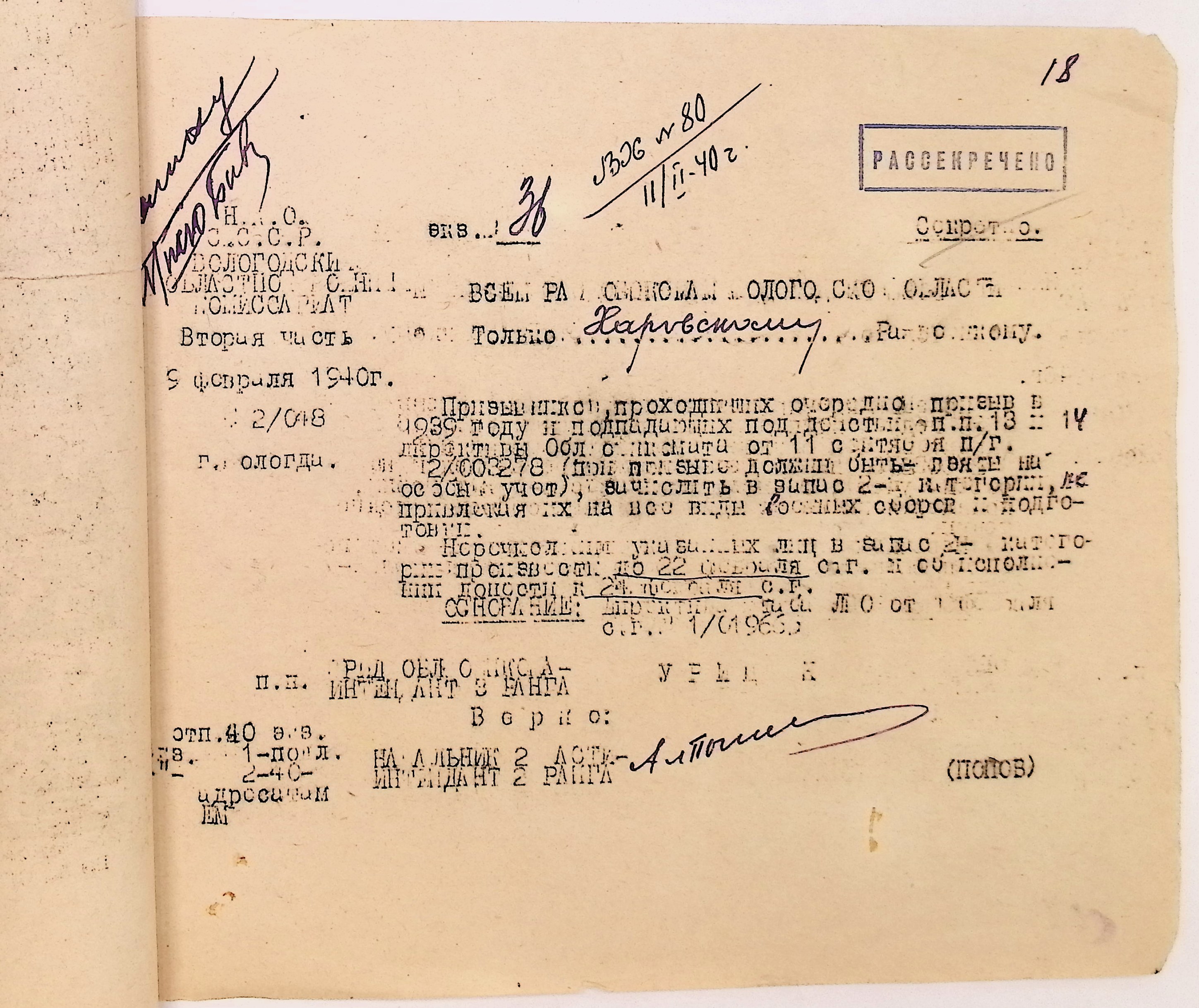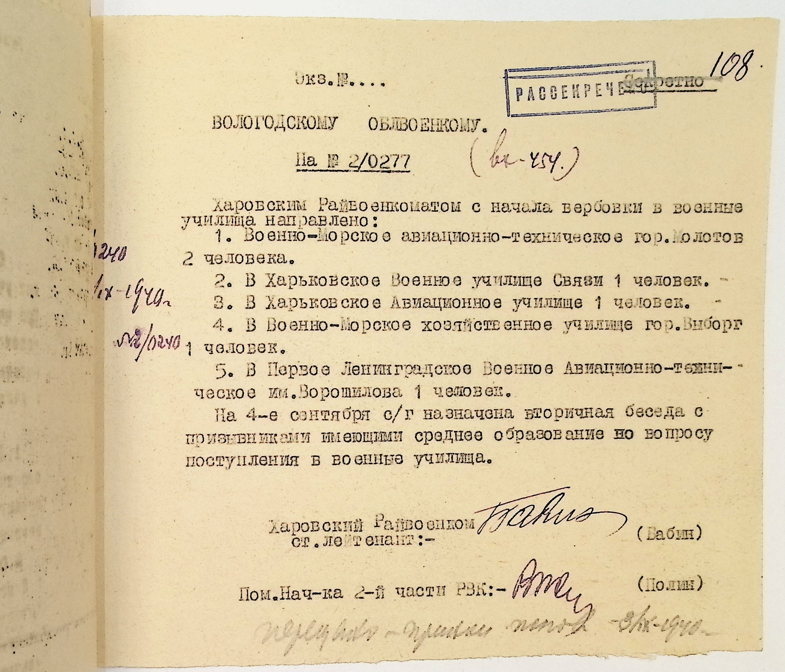Руководящие указания по призыву. Харовский РВК (ГАВО. Ф. 1795 Оп. 1 Д. 7)