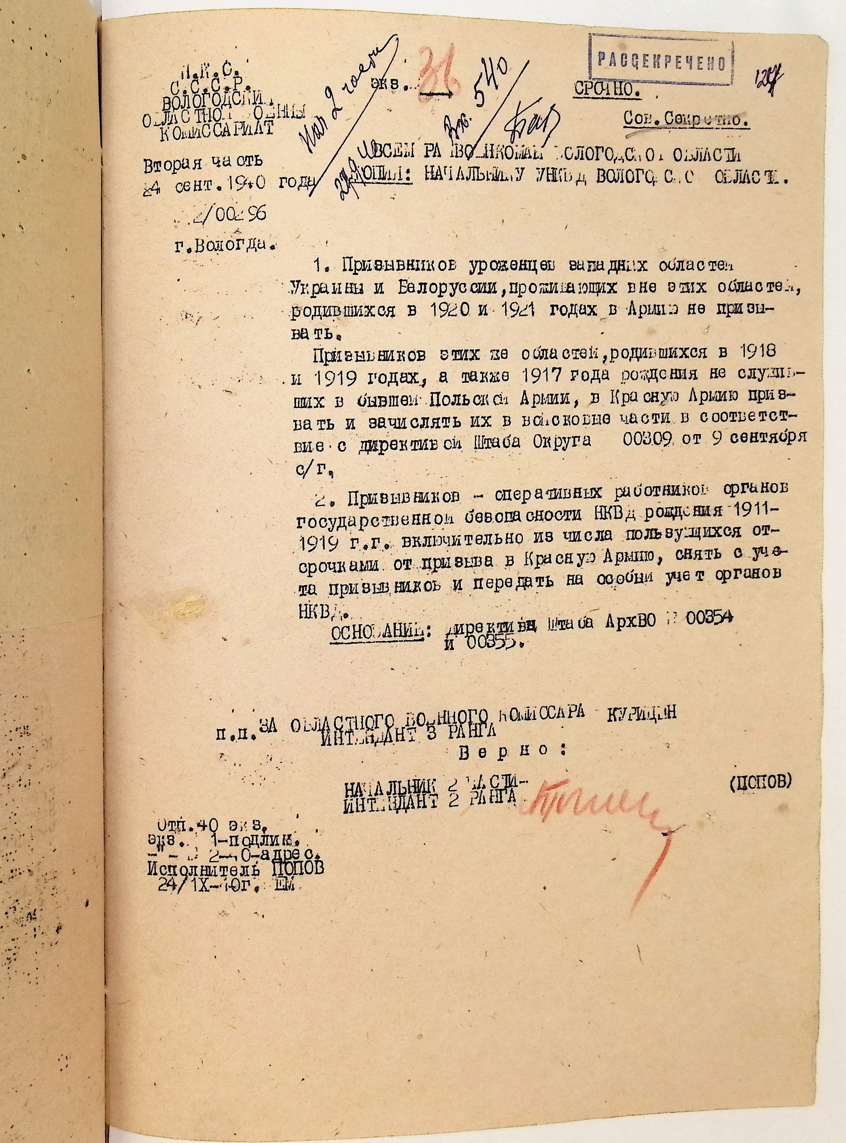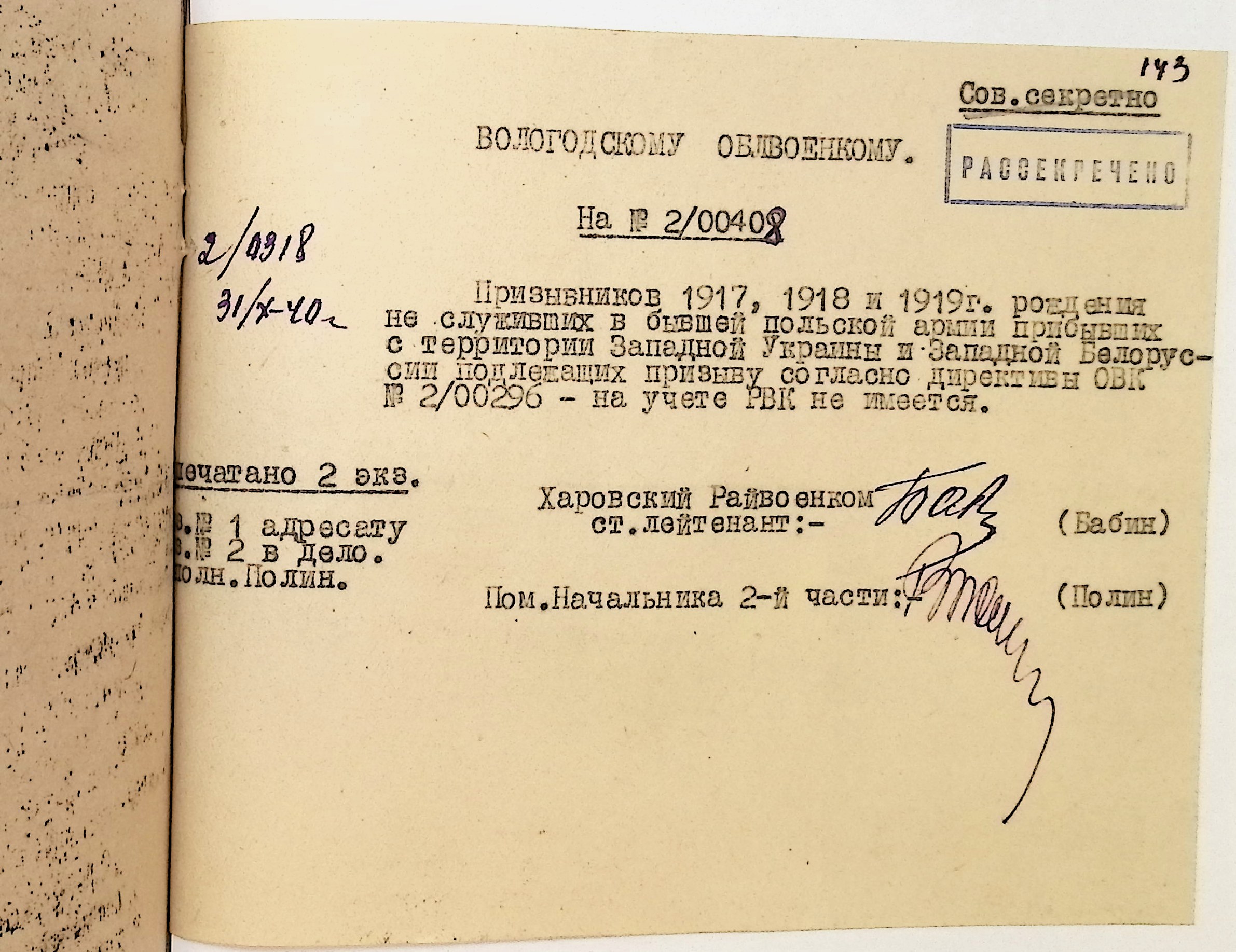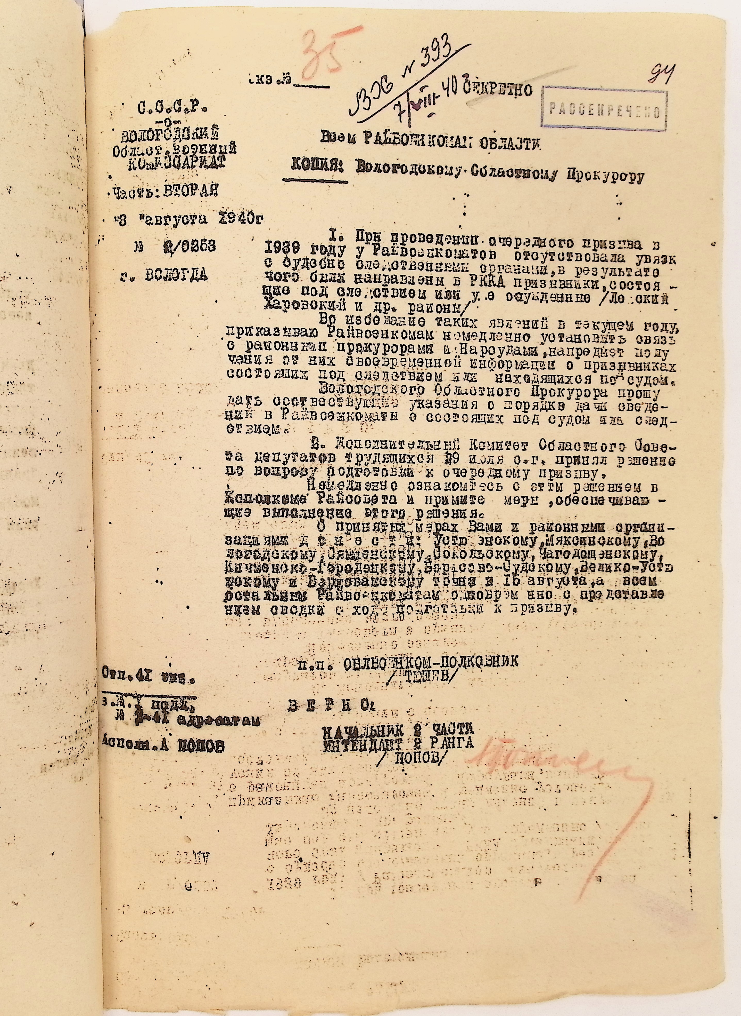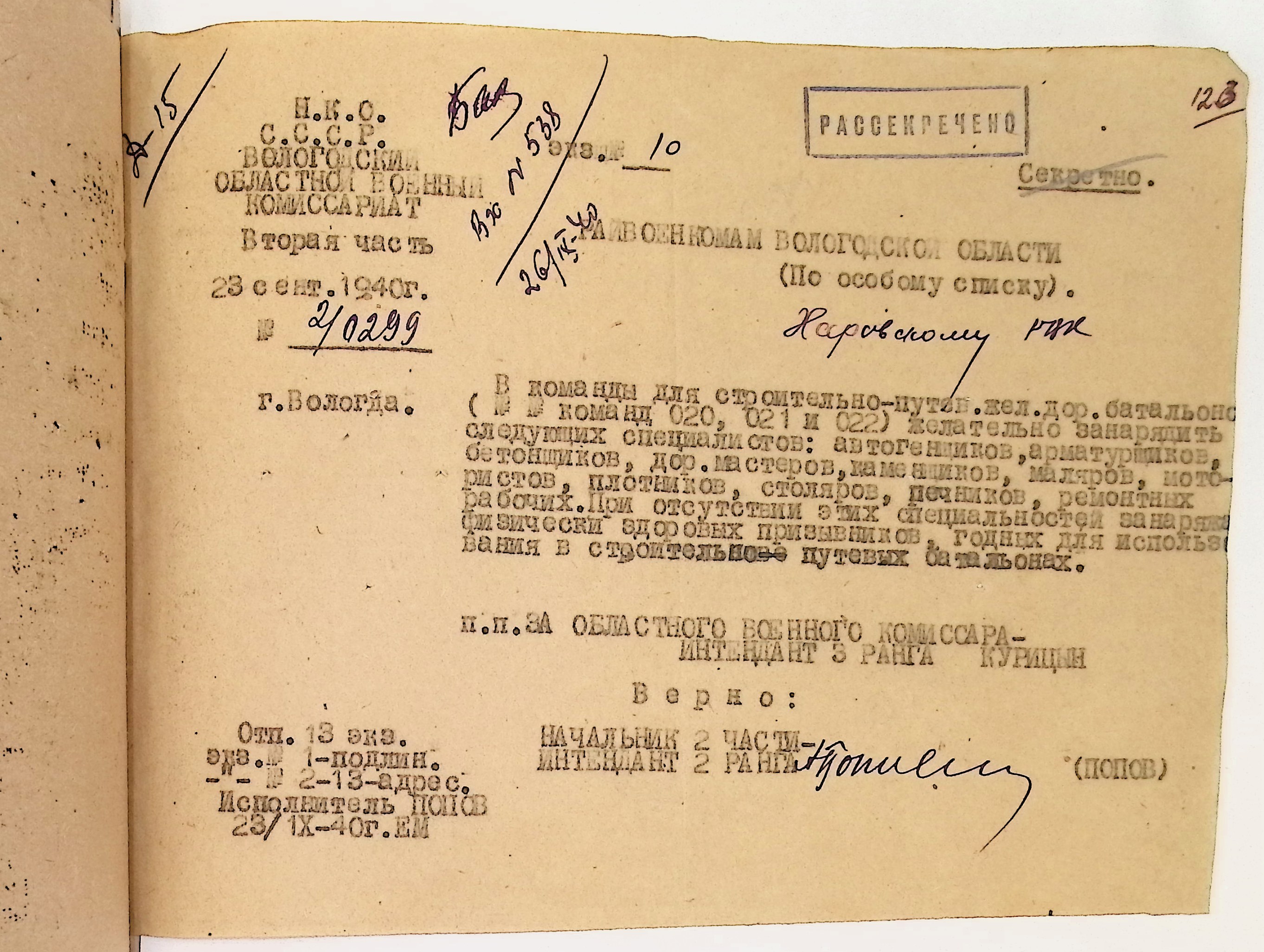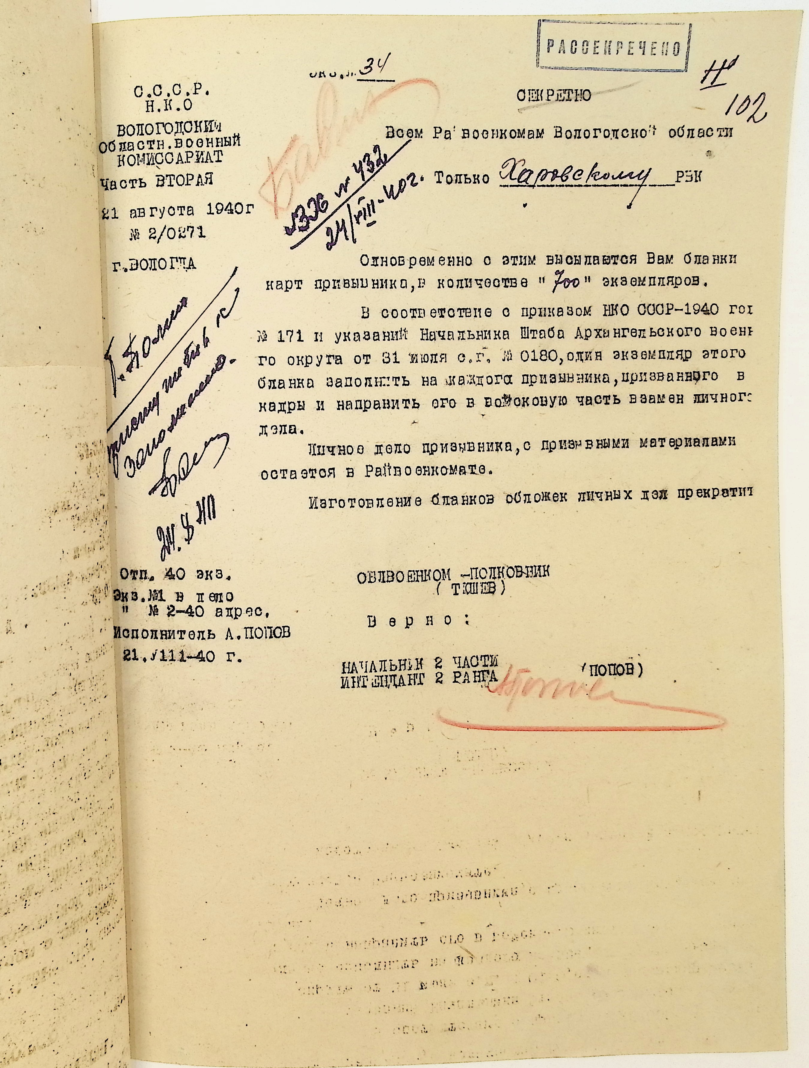 Руководящие указания по призыву. Харовский РВК (ГАВО. Ф. 1795 Оп. 1 Д. 7)