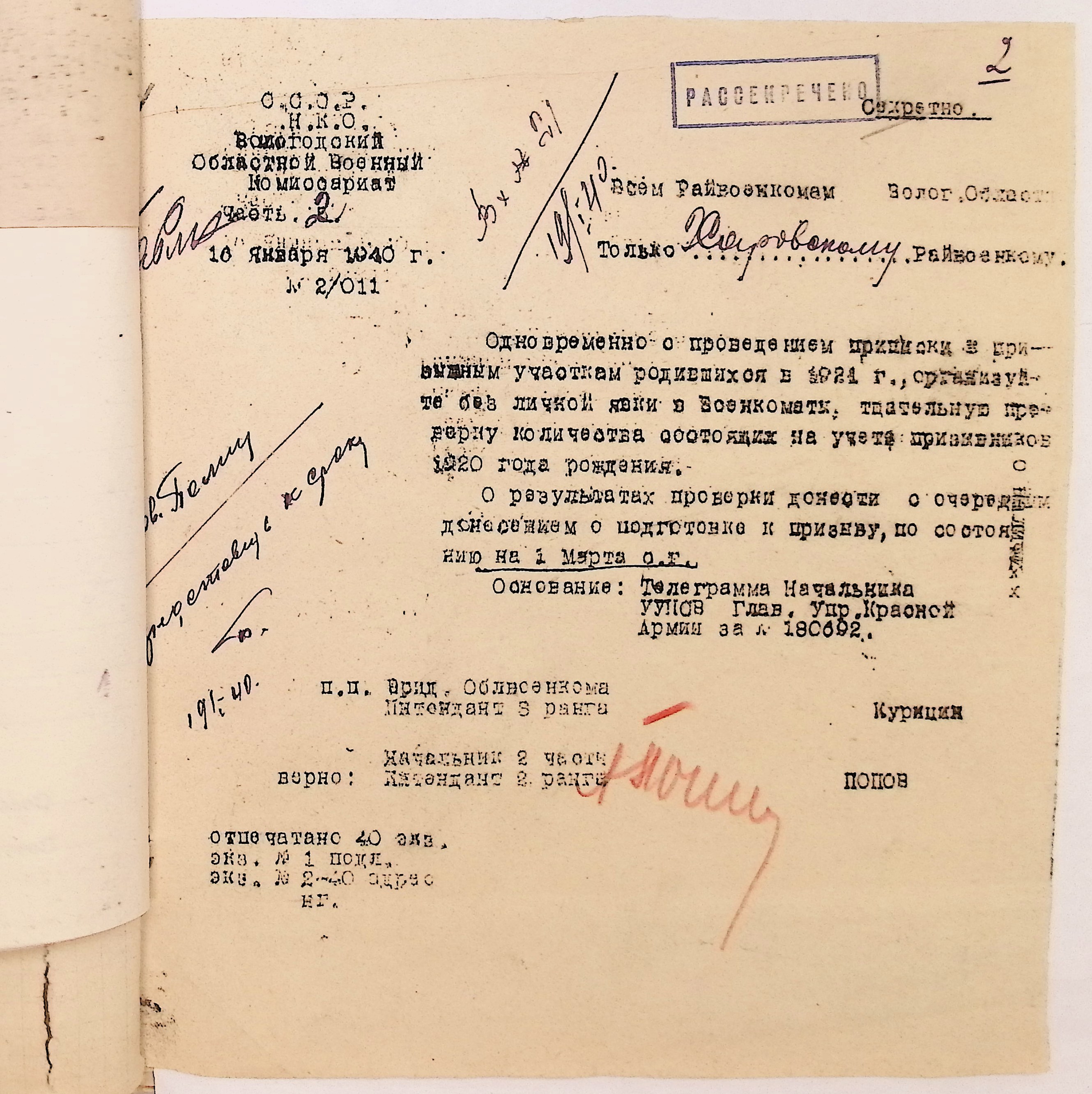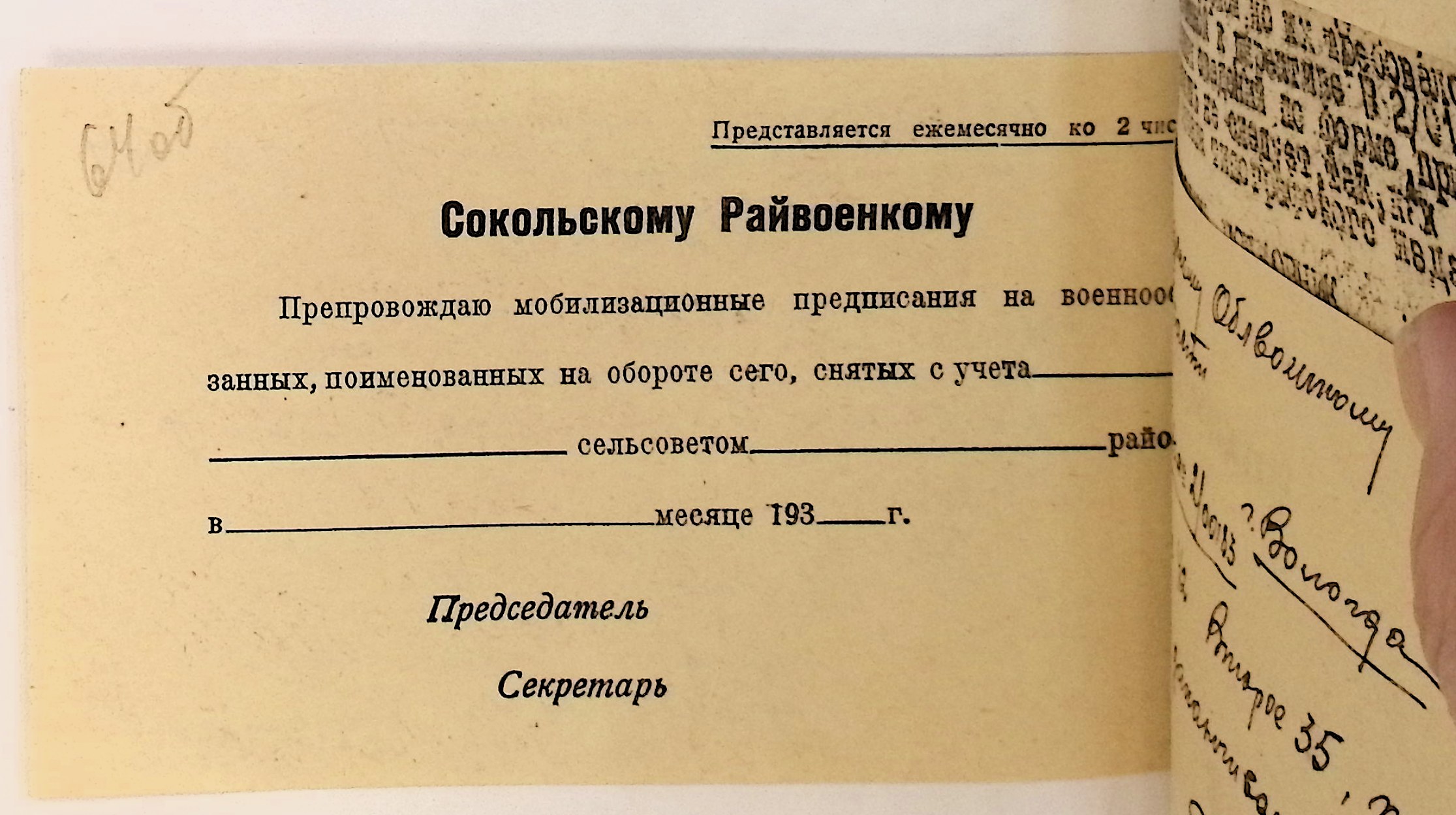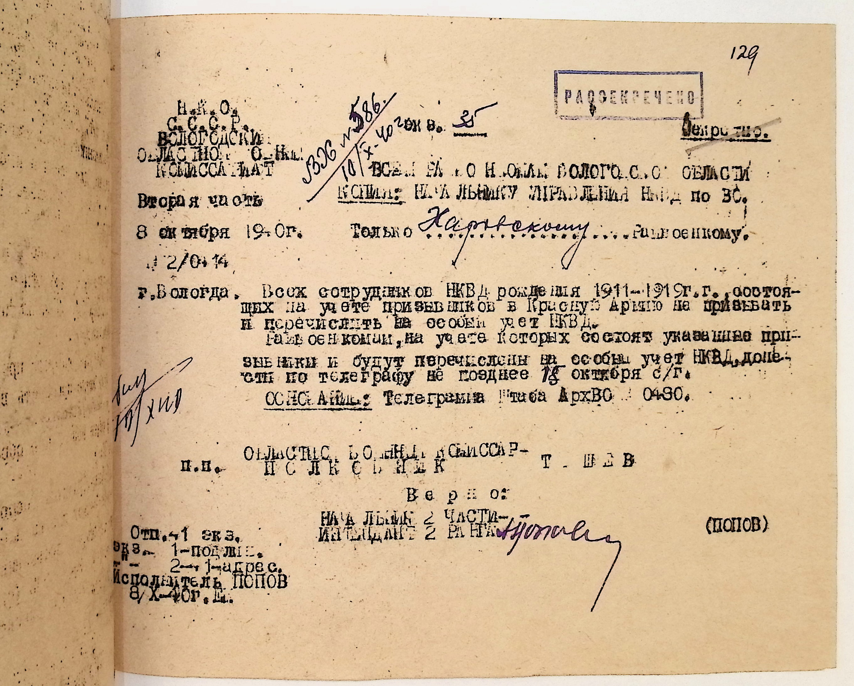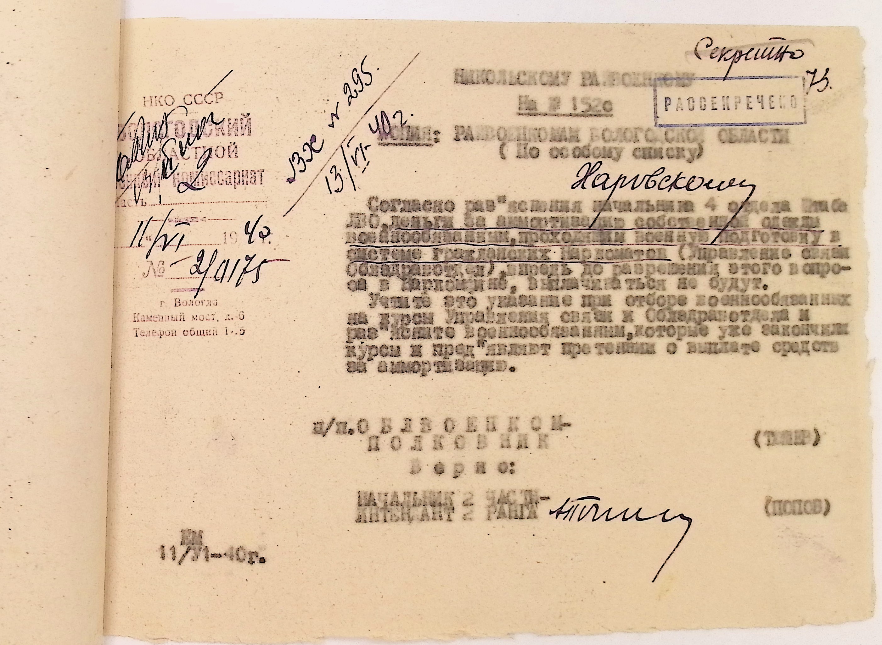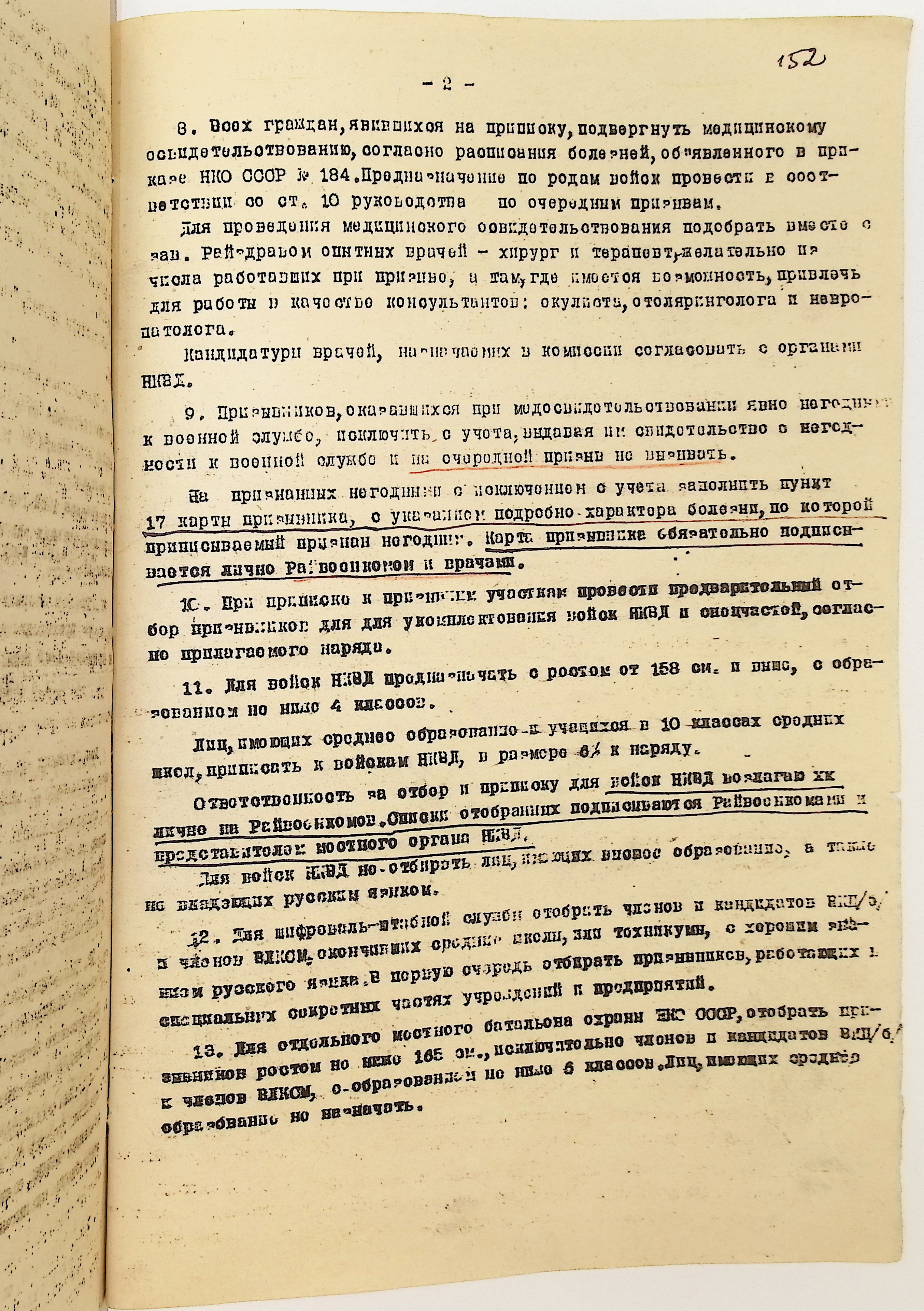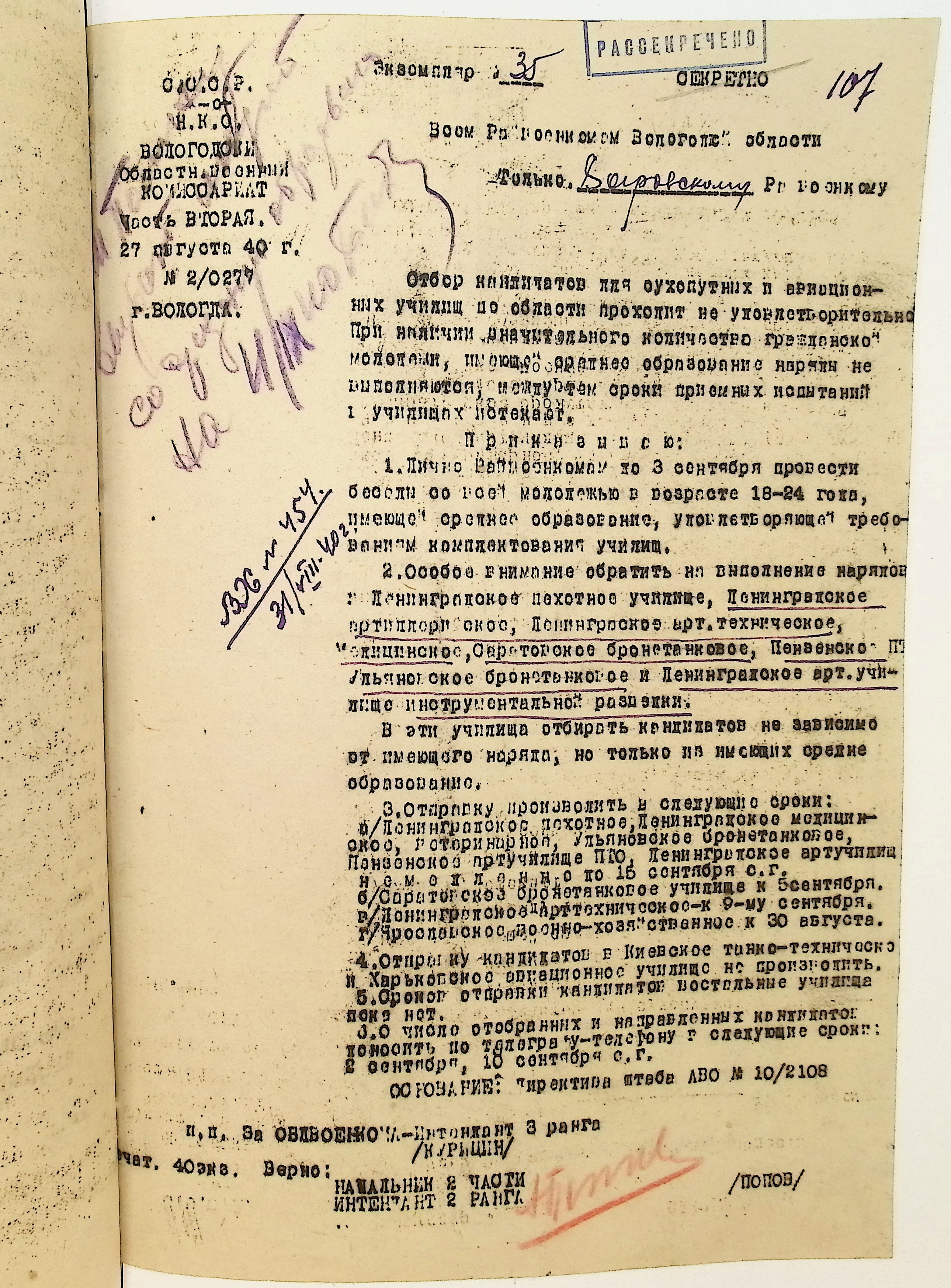 Руководящие указания по призыву. Харовский РВК (ГАВО. Ф. 1795 Оп. 1 Д. 7)