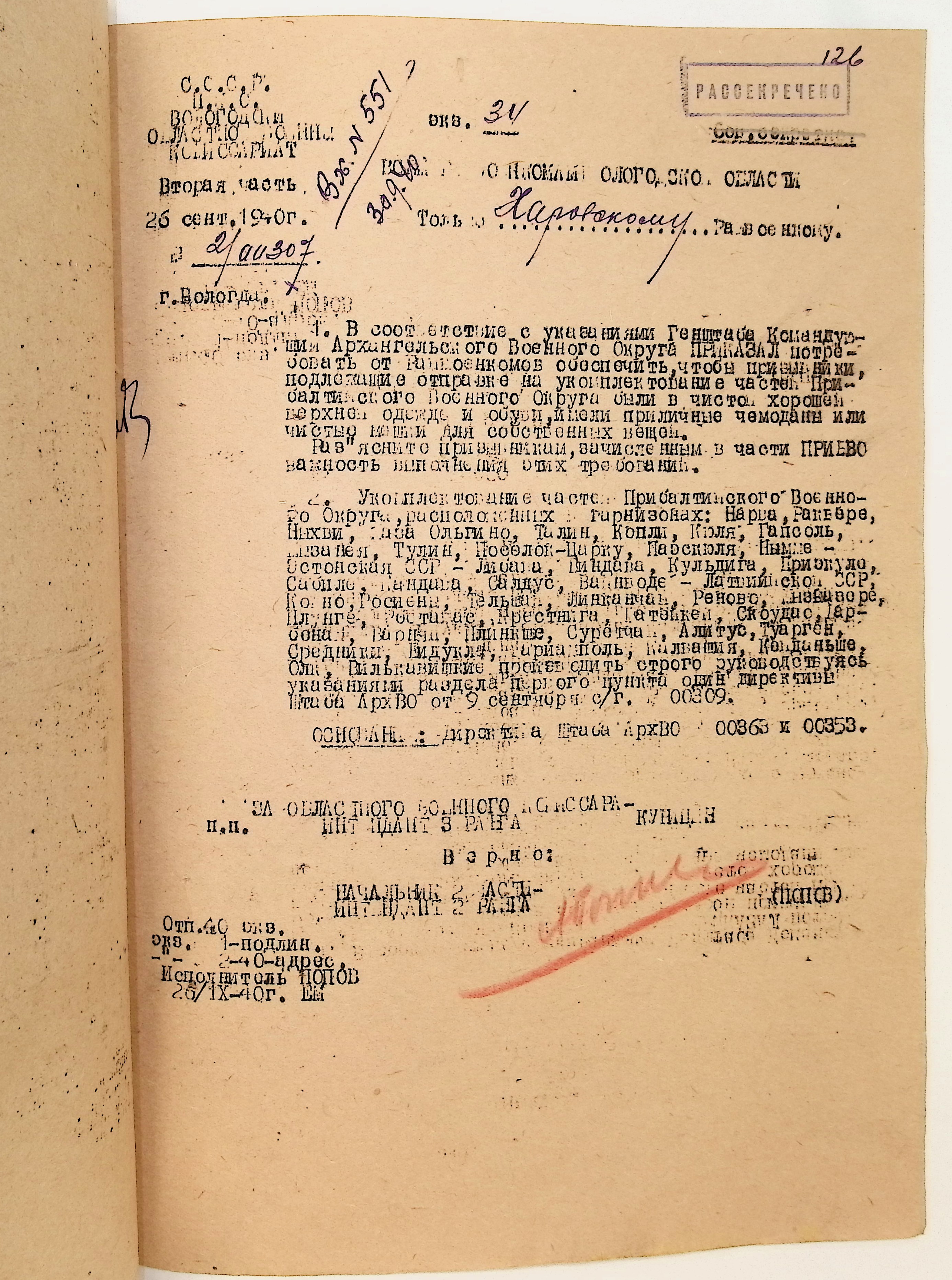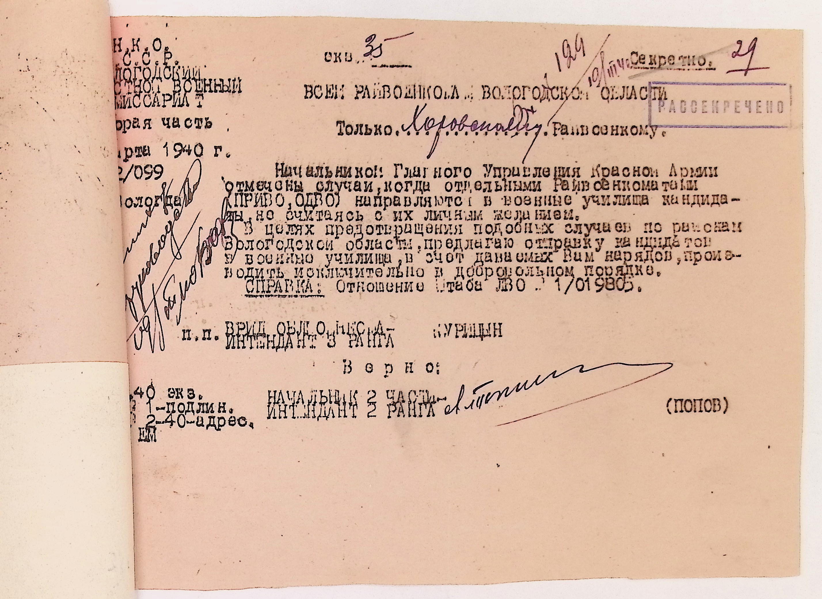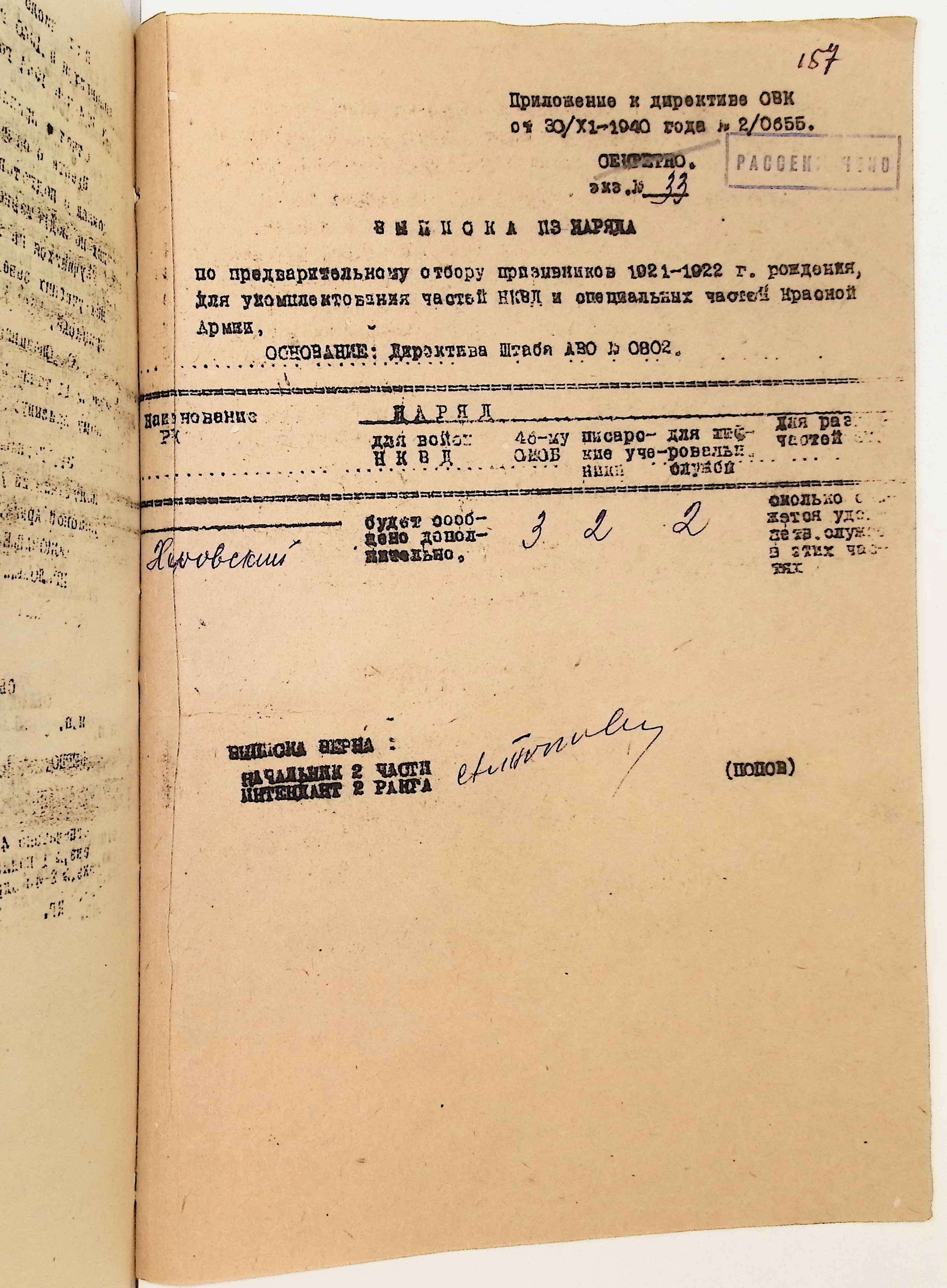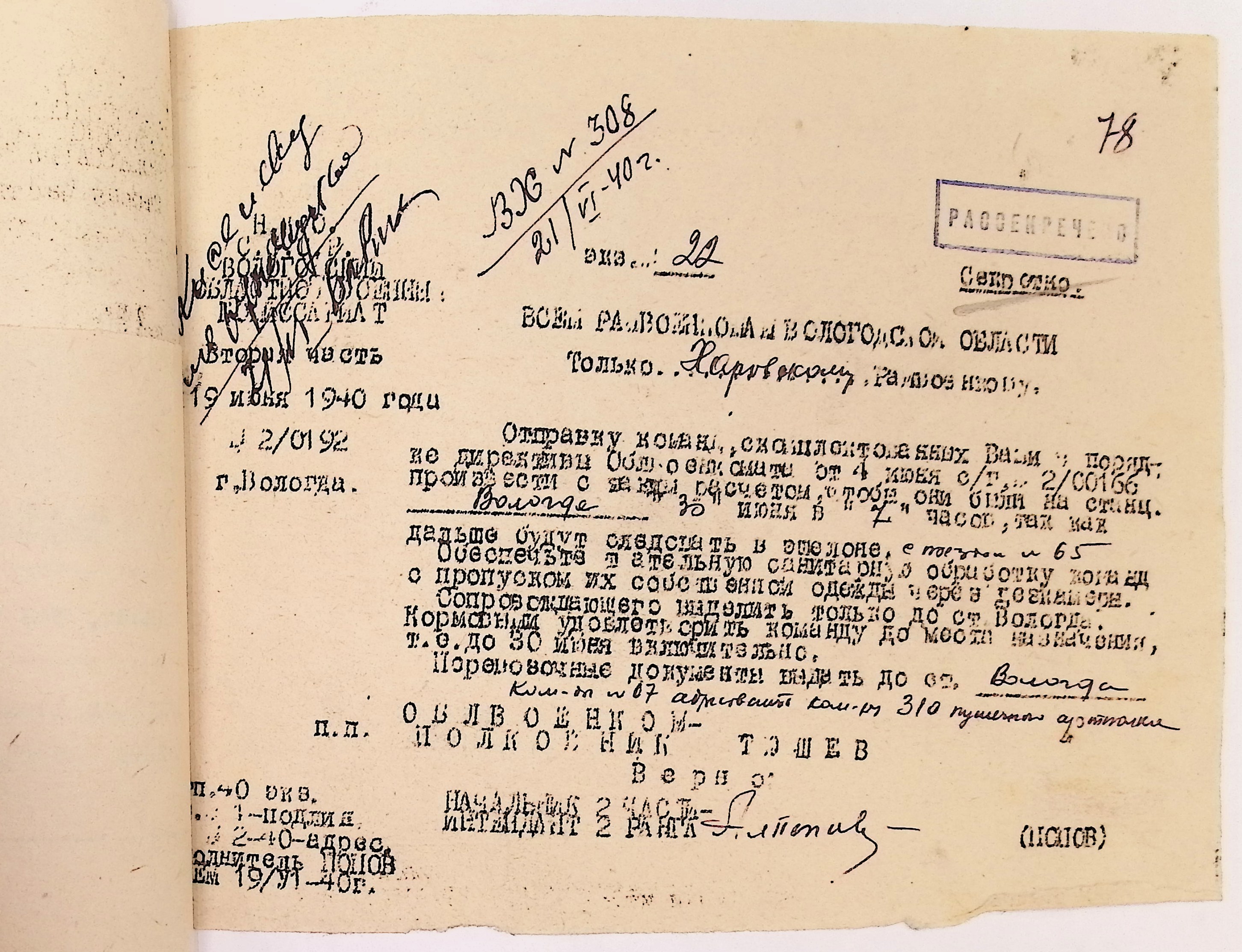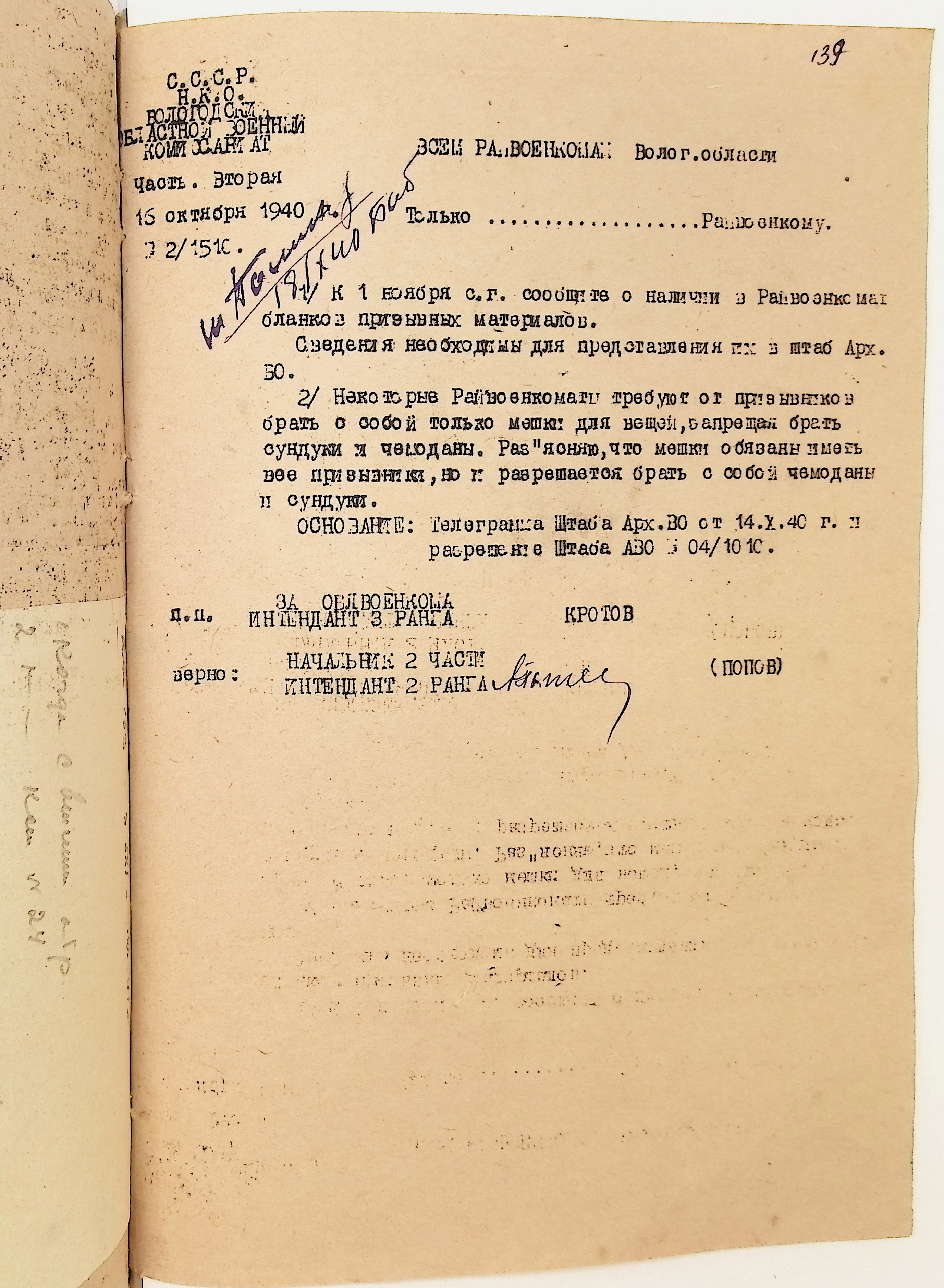 Руководящие указания по призыву. Харовский РВК (ГАВО. Ф. 1795 Оп. 1 Д. 7)