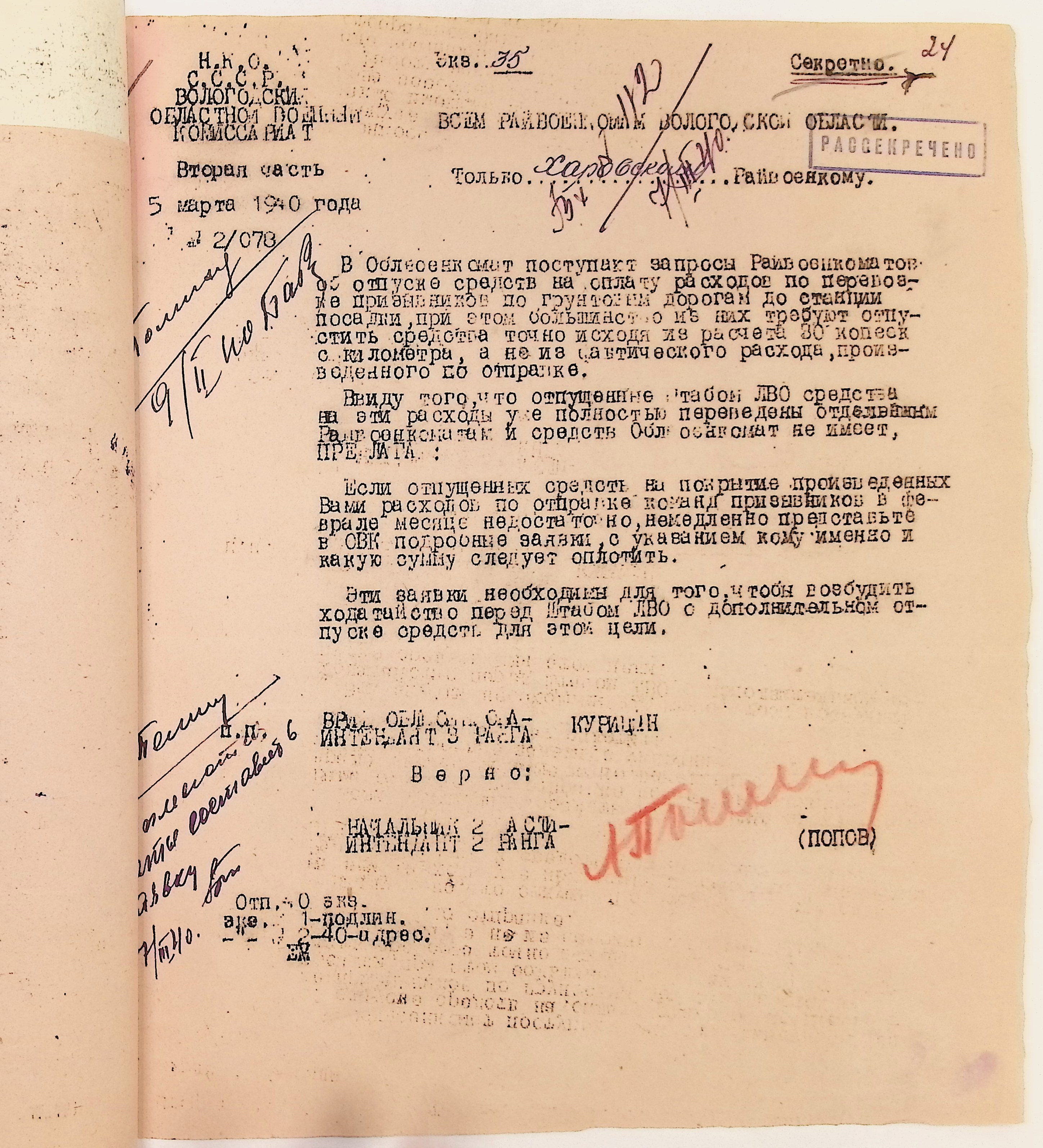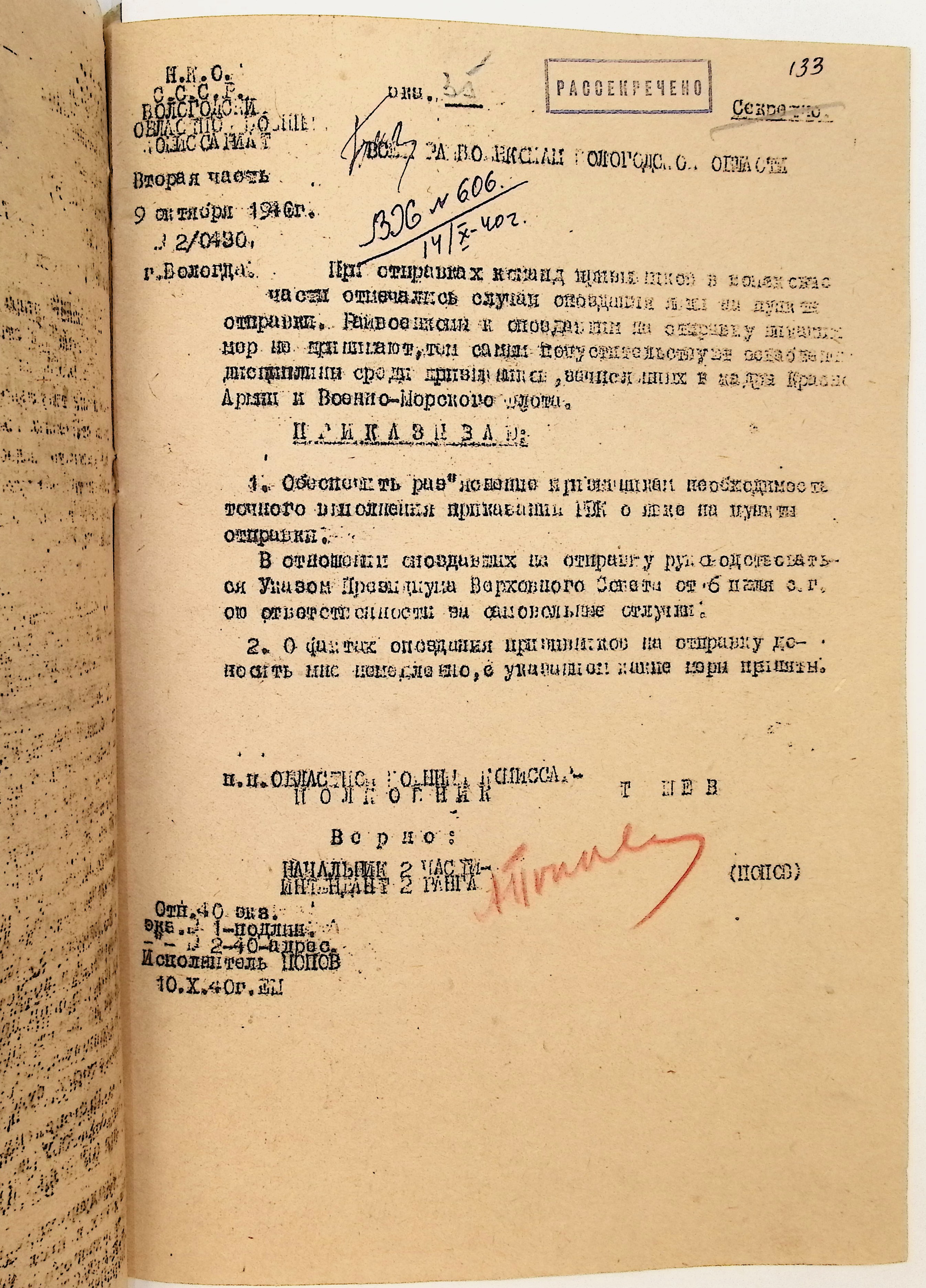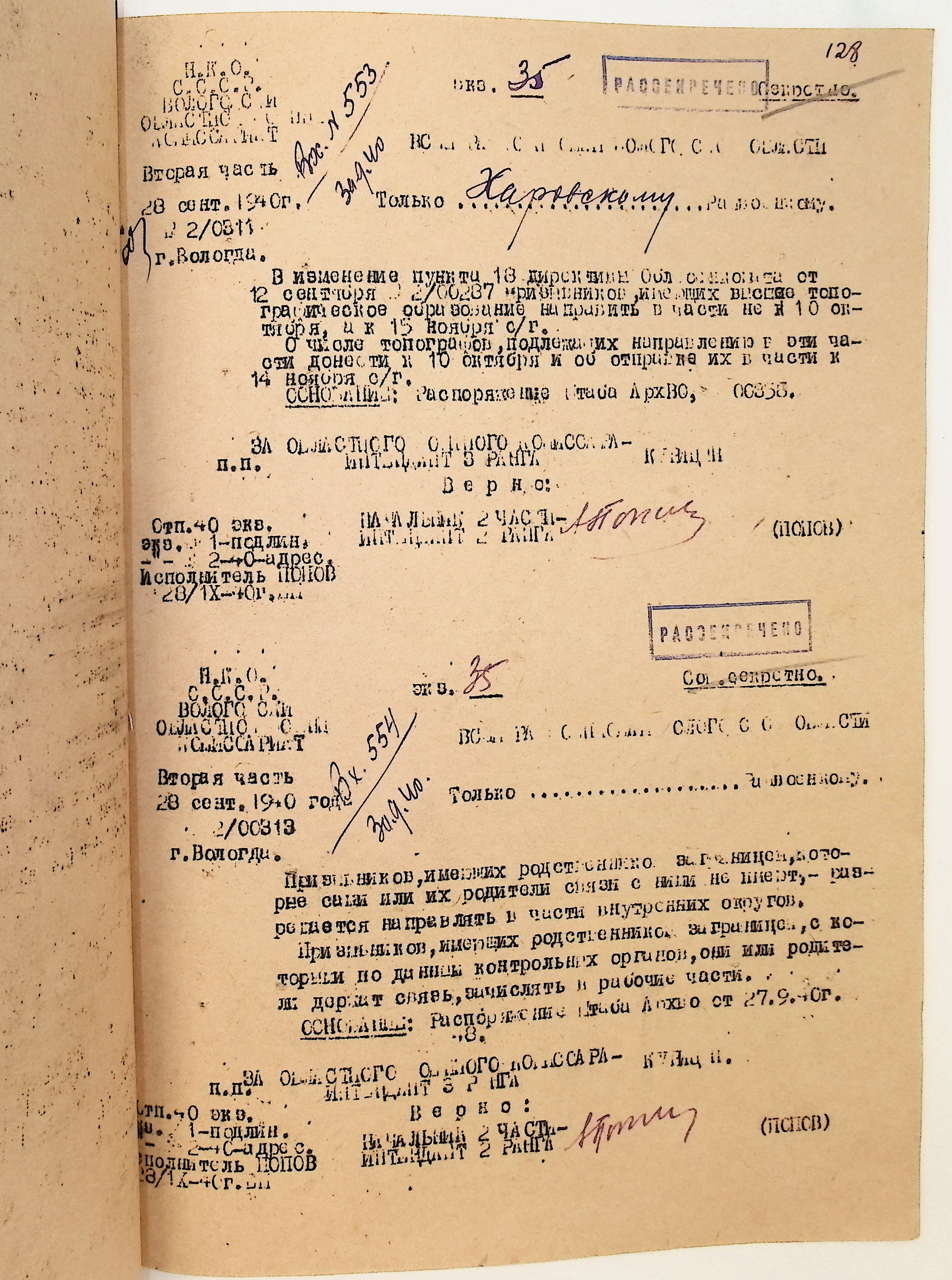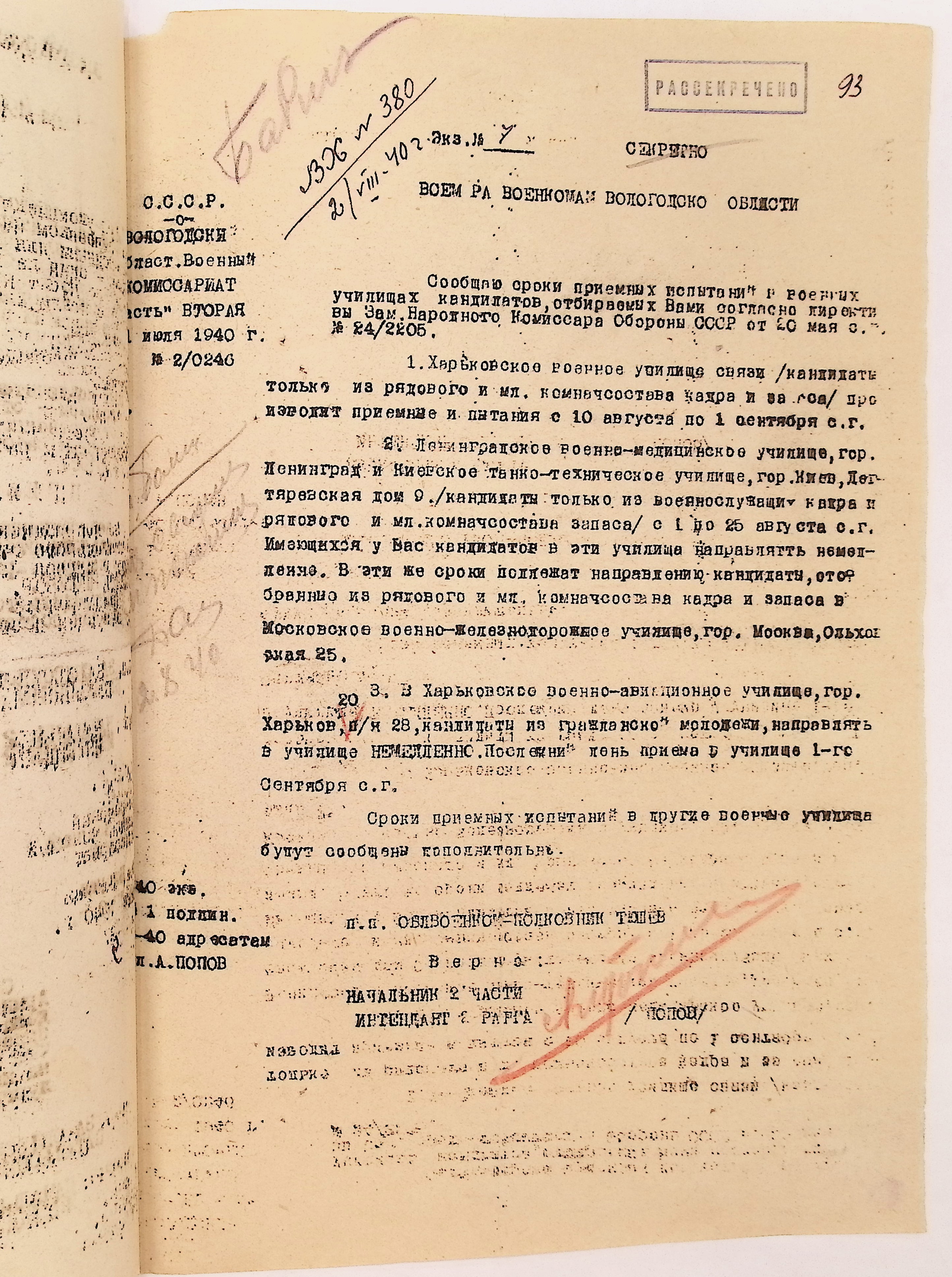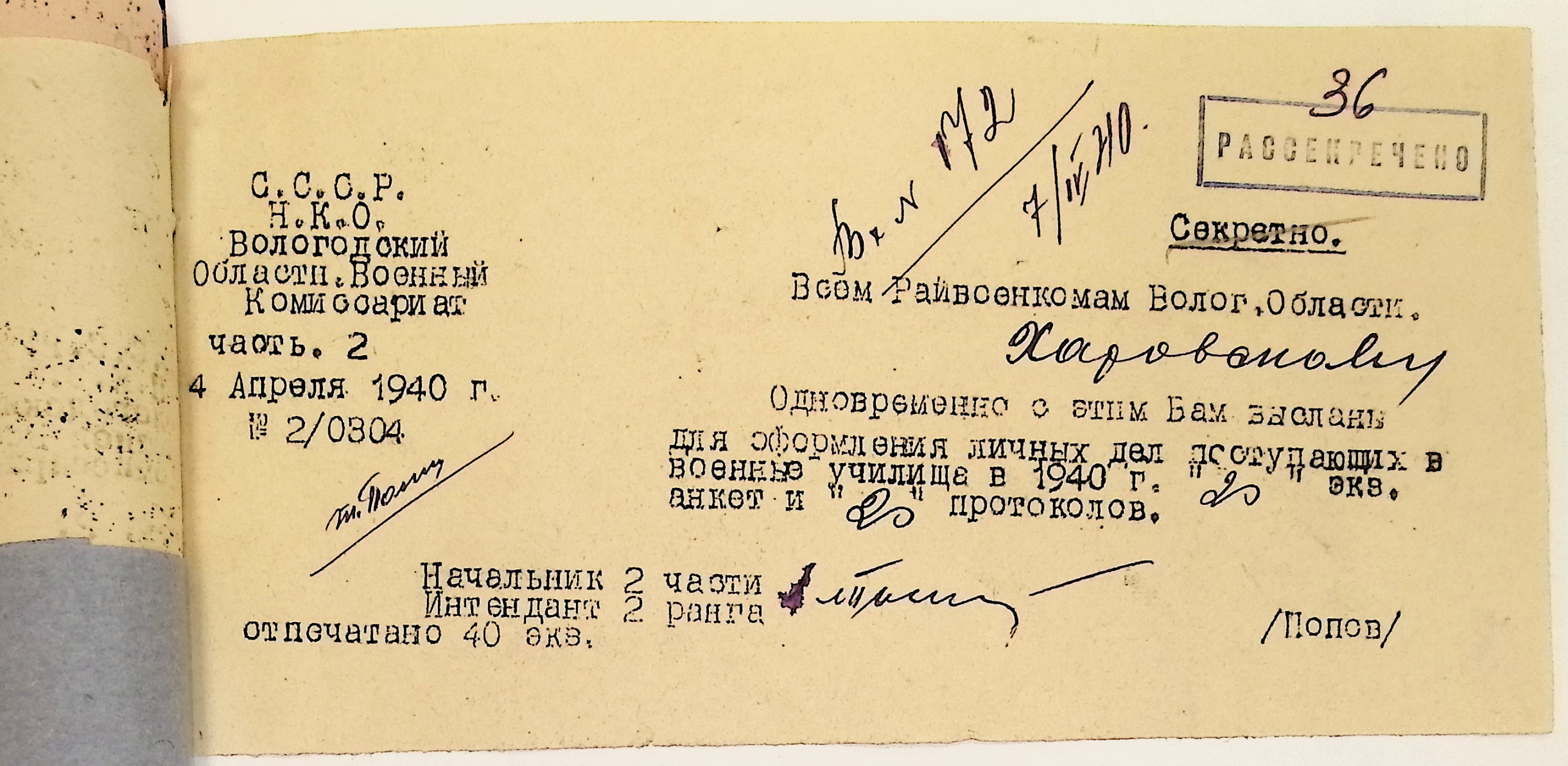 Руководящие указания по призыву. Харовский РВК (ГАВО. Ф. 1795 Оп. 1 Д. 7)